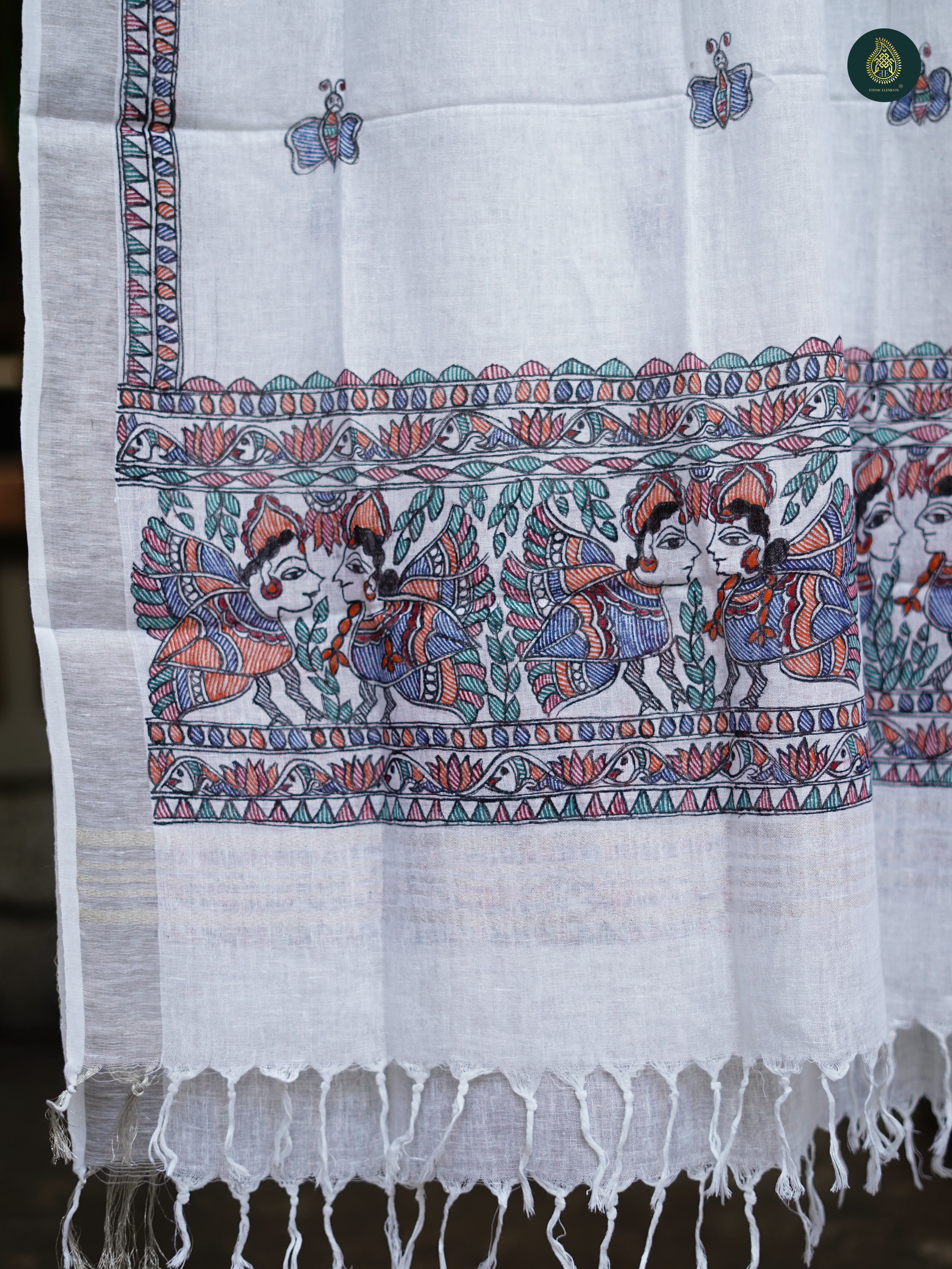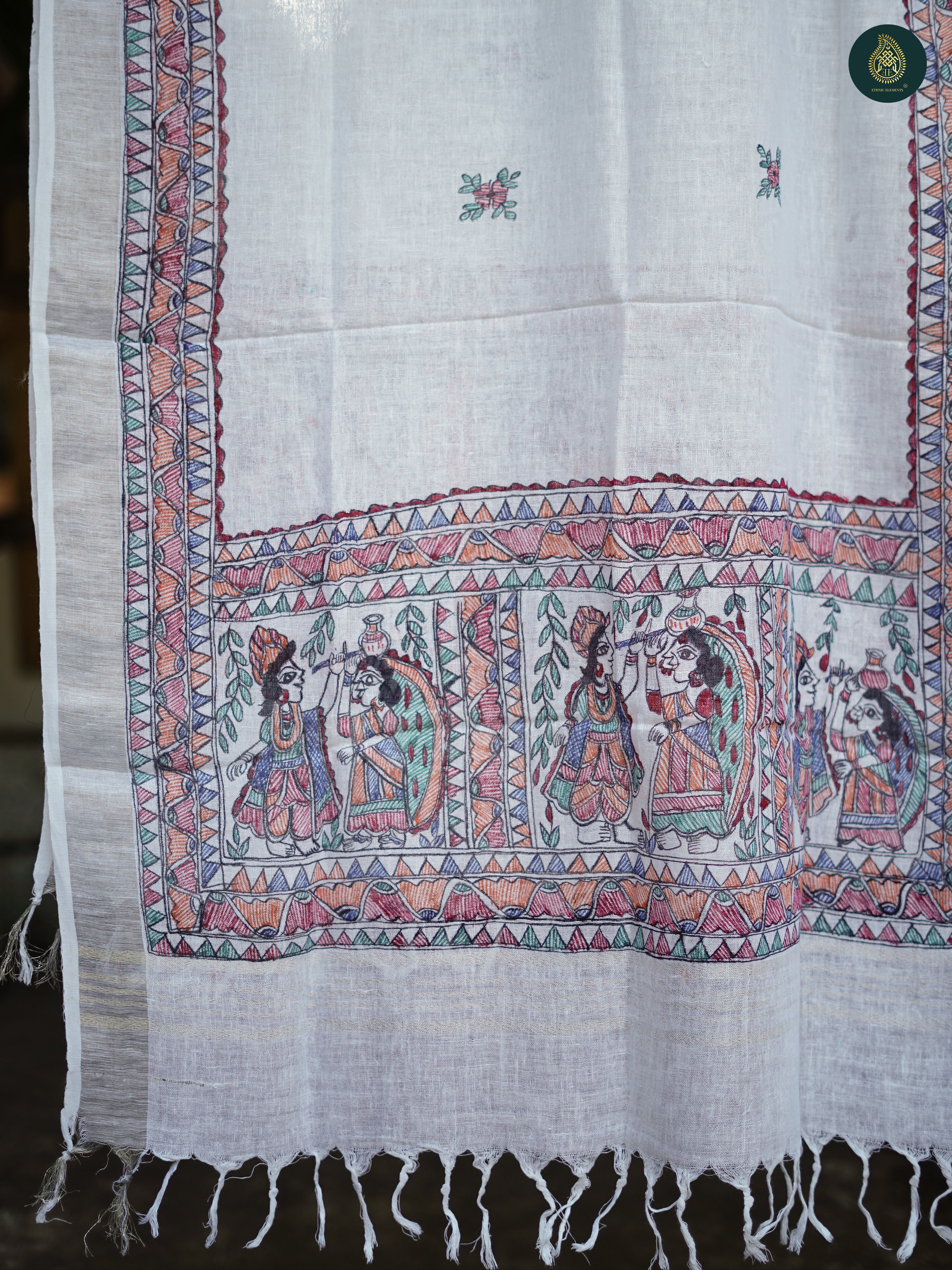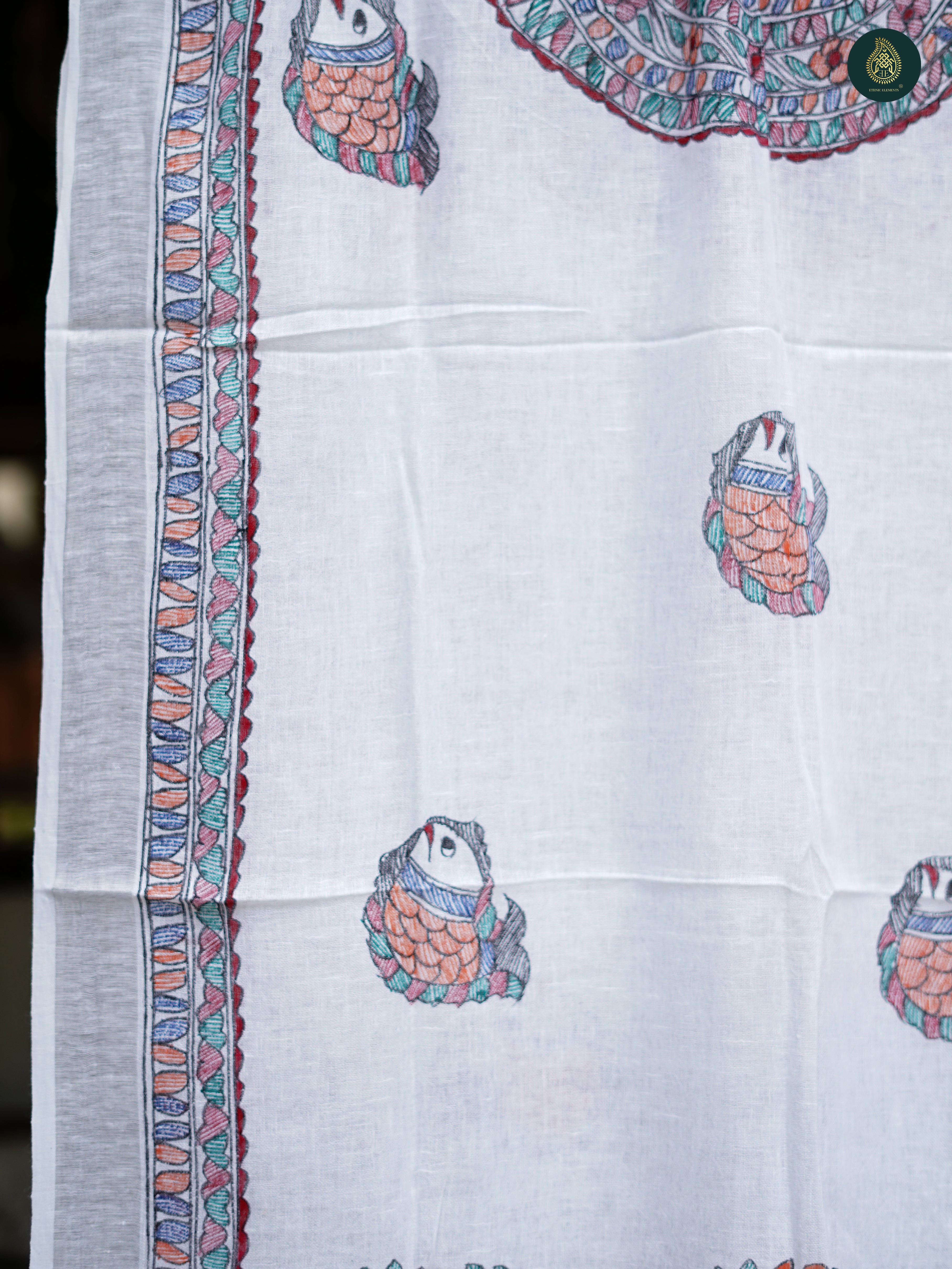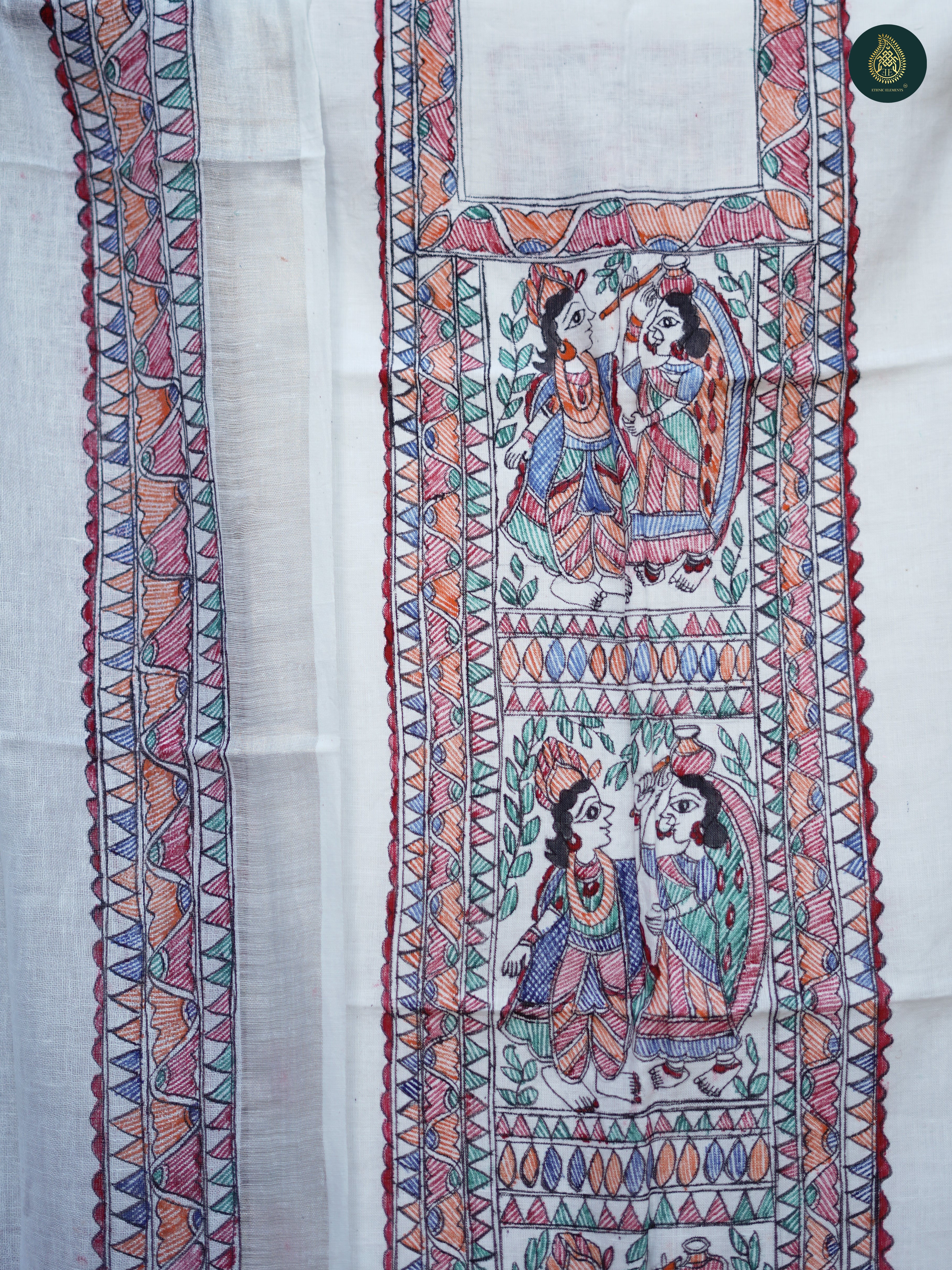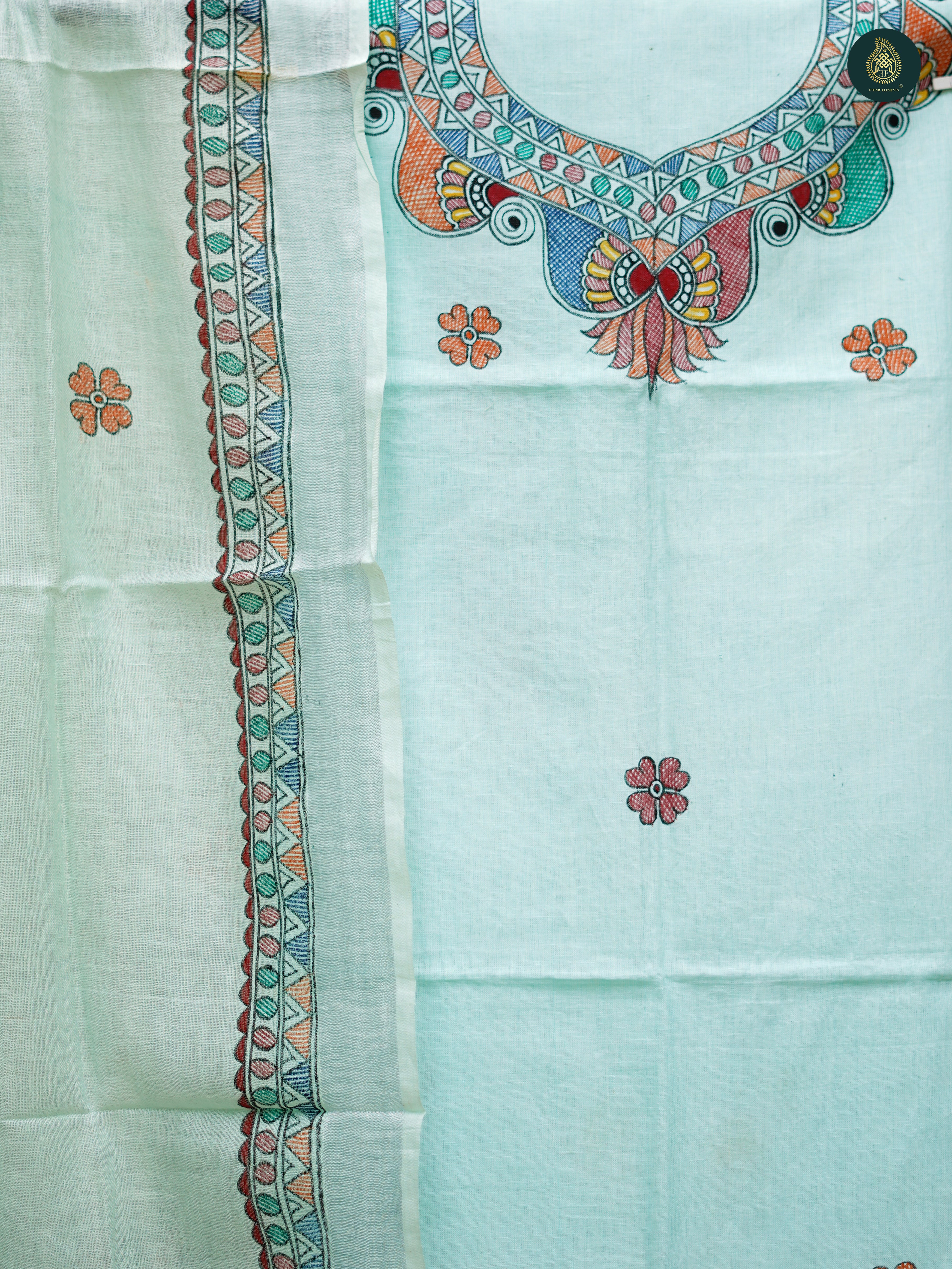 Authentic Original Hand-Painted Madhubani Suit Sets made from pure woven fabrics. Madhubani Art is a type of folk-art form. Each suit consists of line drawings filled with bright colors and contrasts or patterns. Only natural dyes and pigments are used for fabric color and painting.