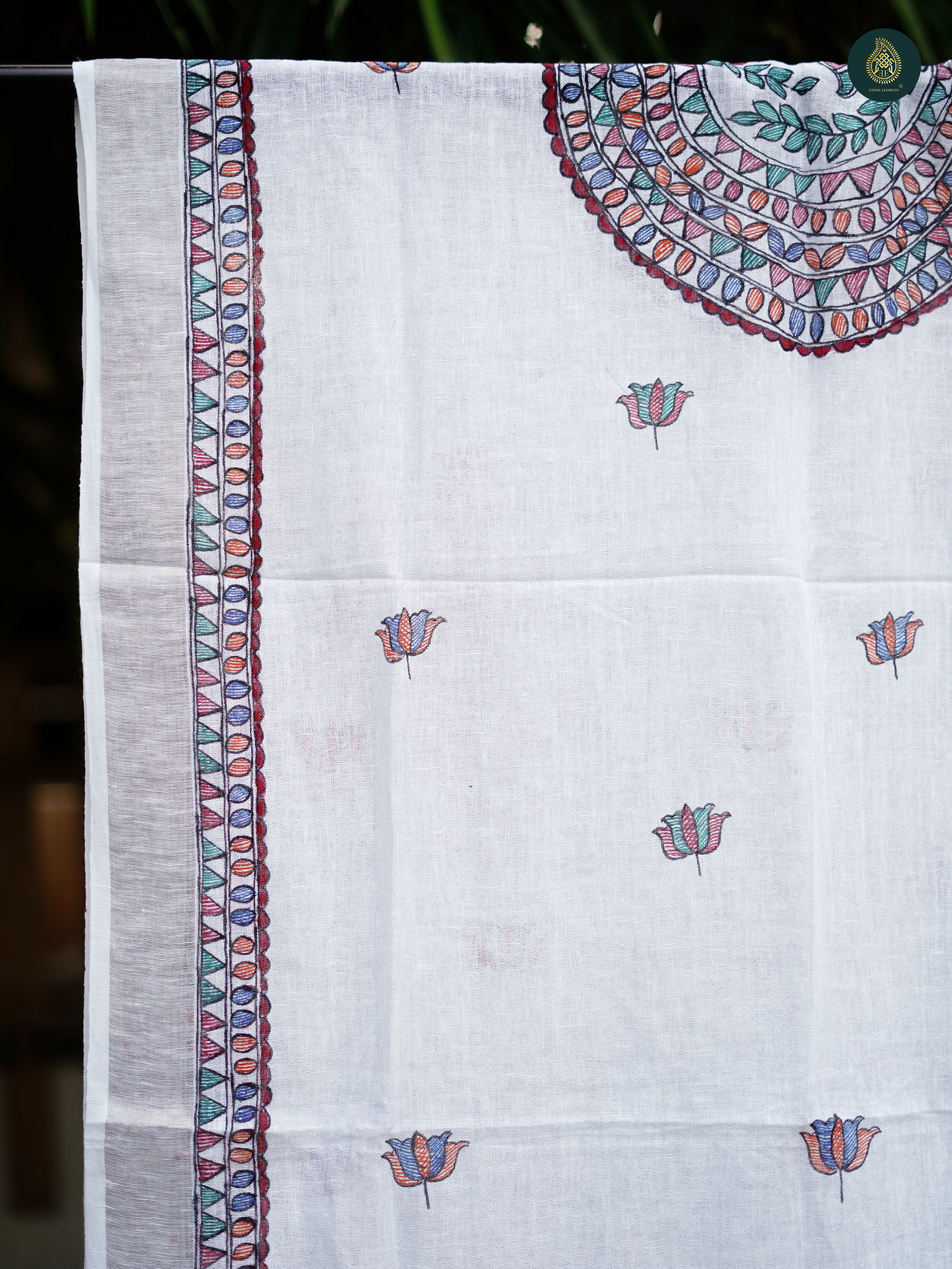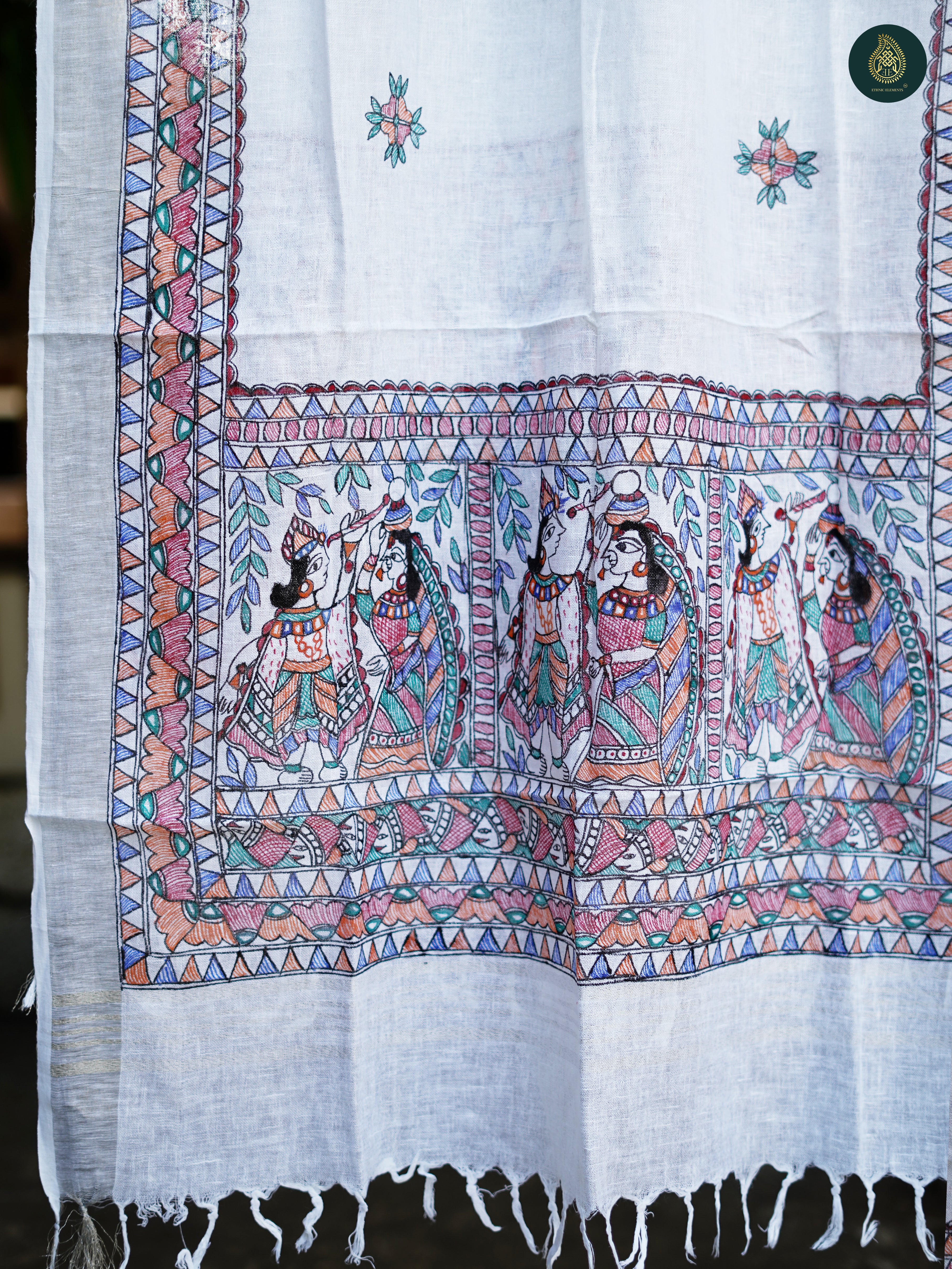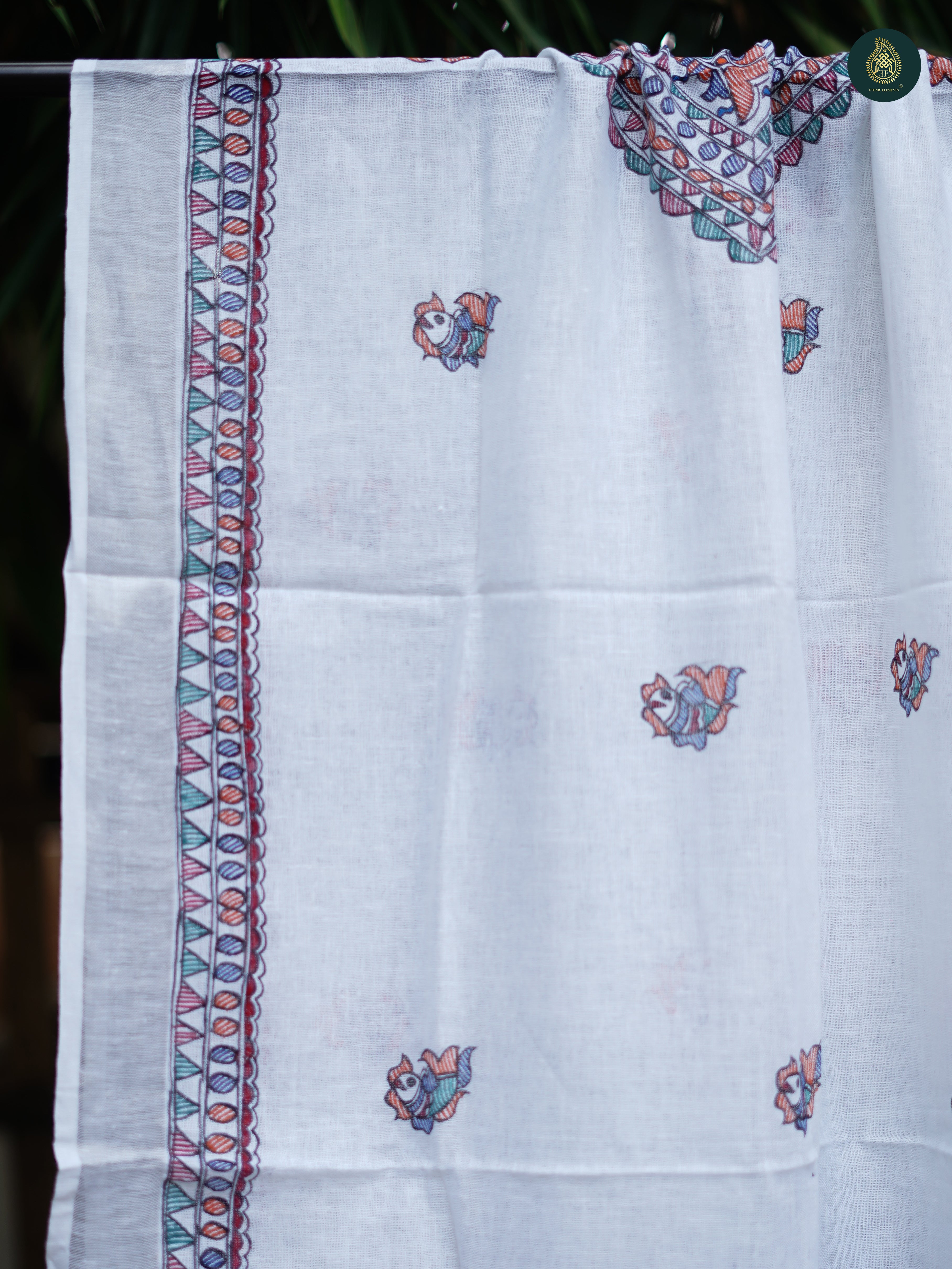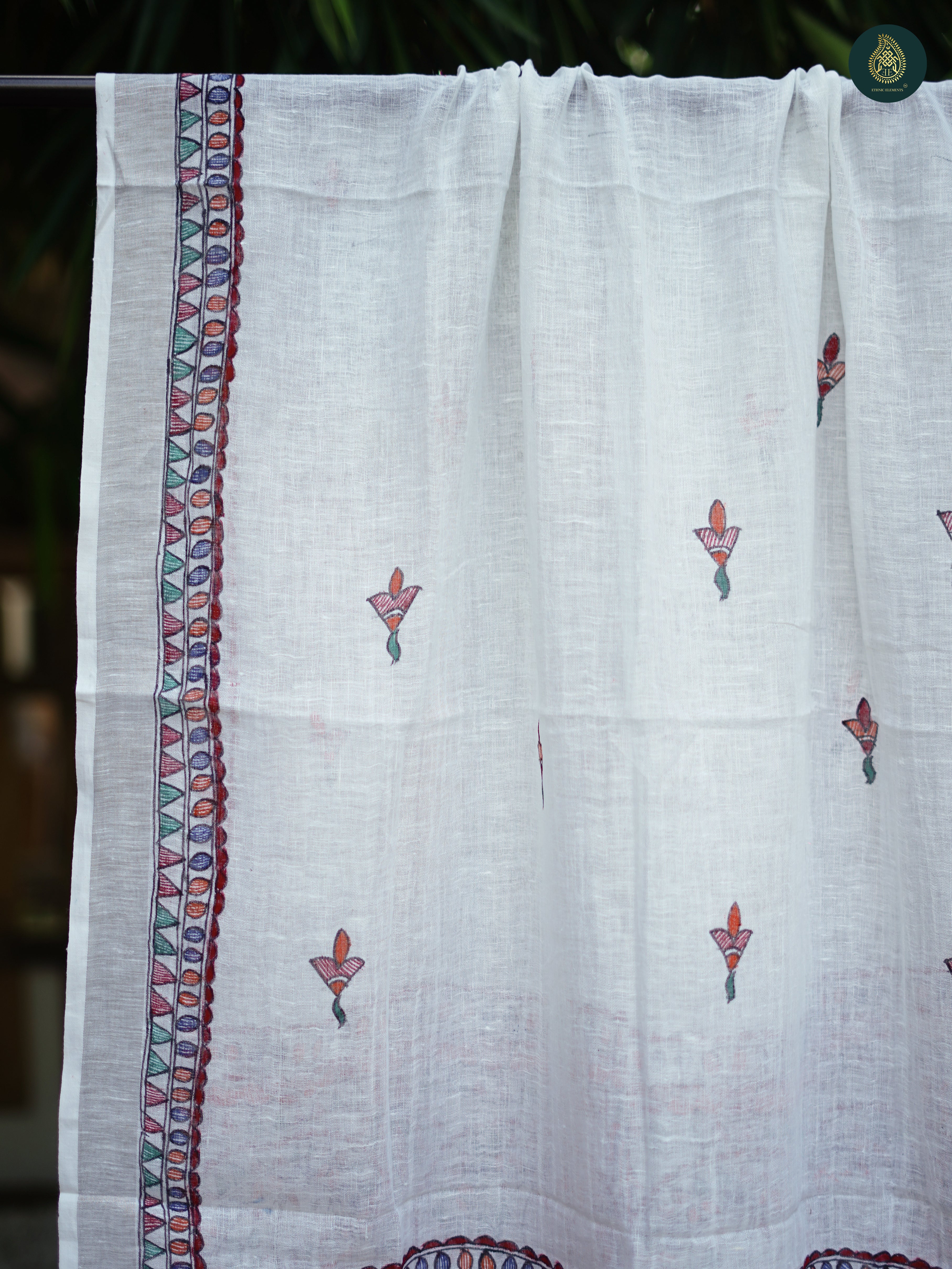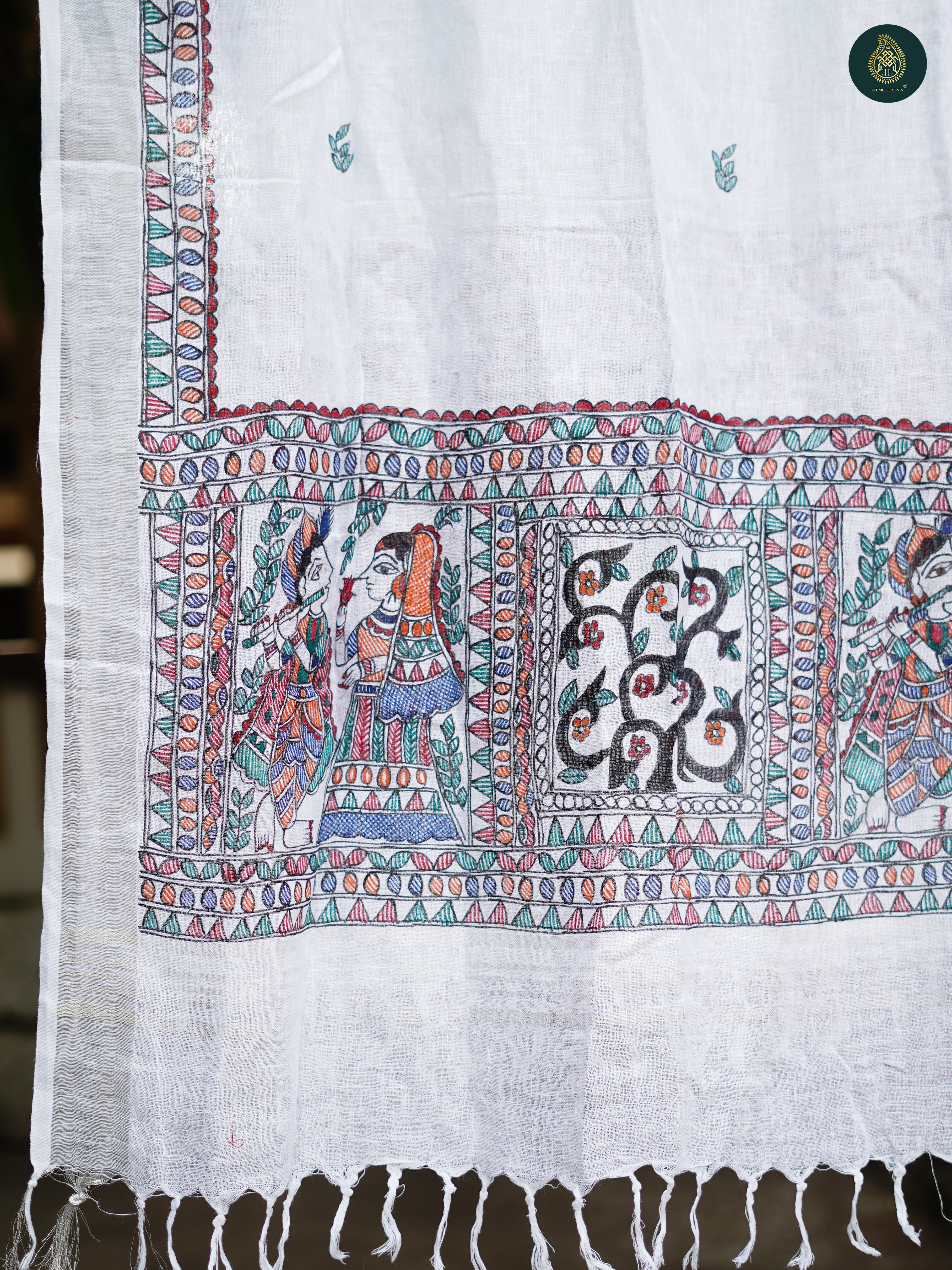 Authentic Original Hand-Painted Madhubani Suit Sets made from pure woven fabrics. Madhubani Art is a type of folk-art form. Each suit consists of line drawings filled with bright colors and contrasts or patterns. Only natural dyes and pigments are used for fabric color and painting.
