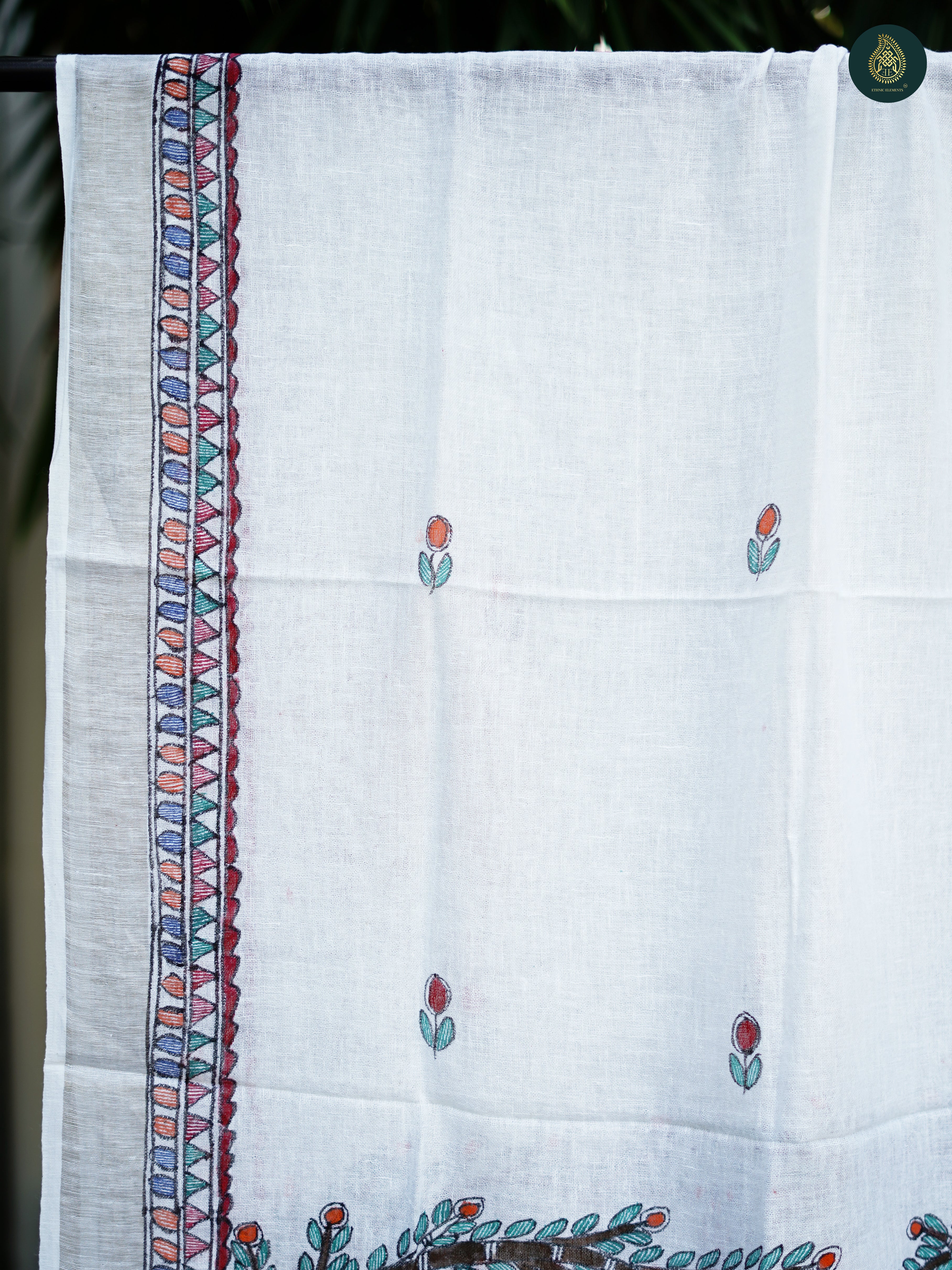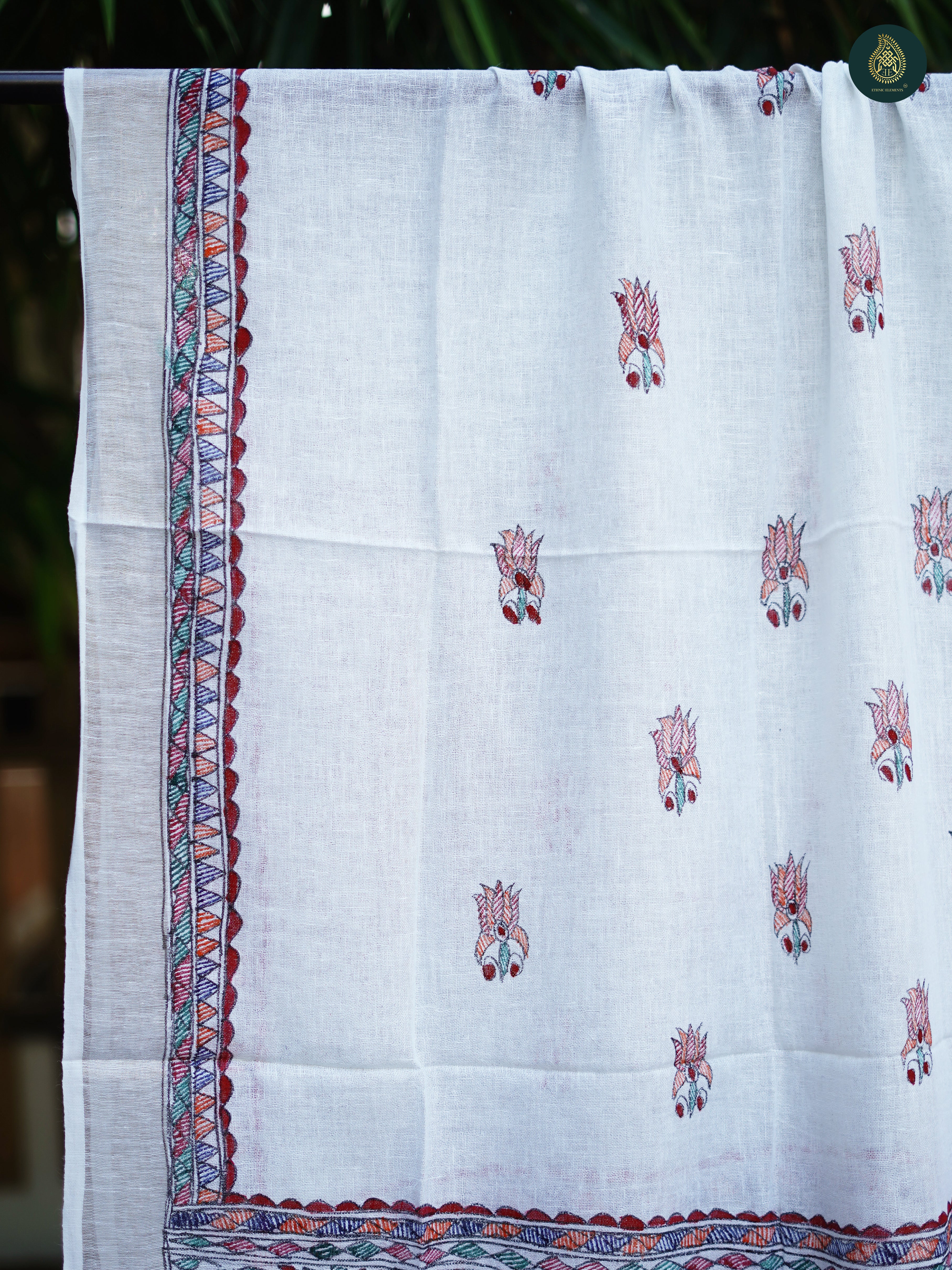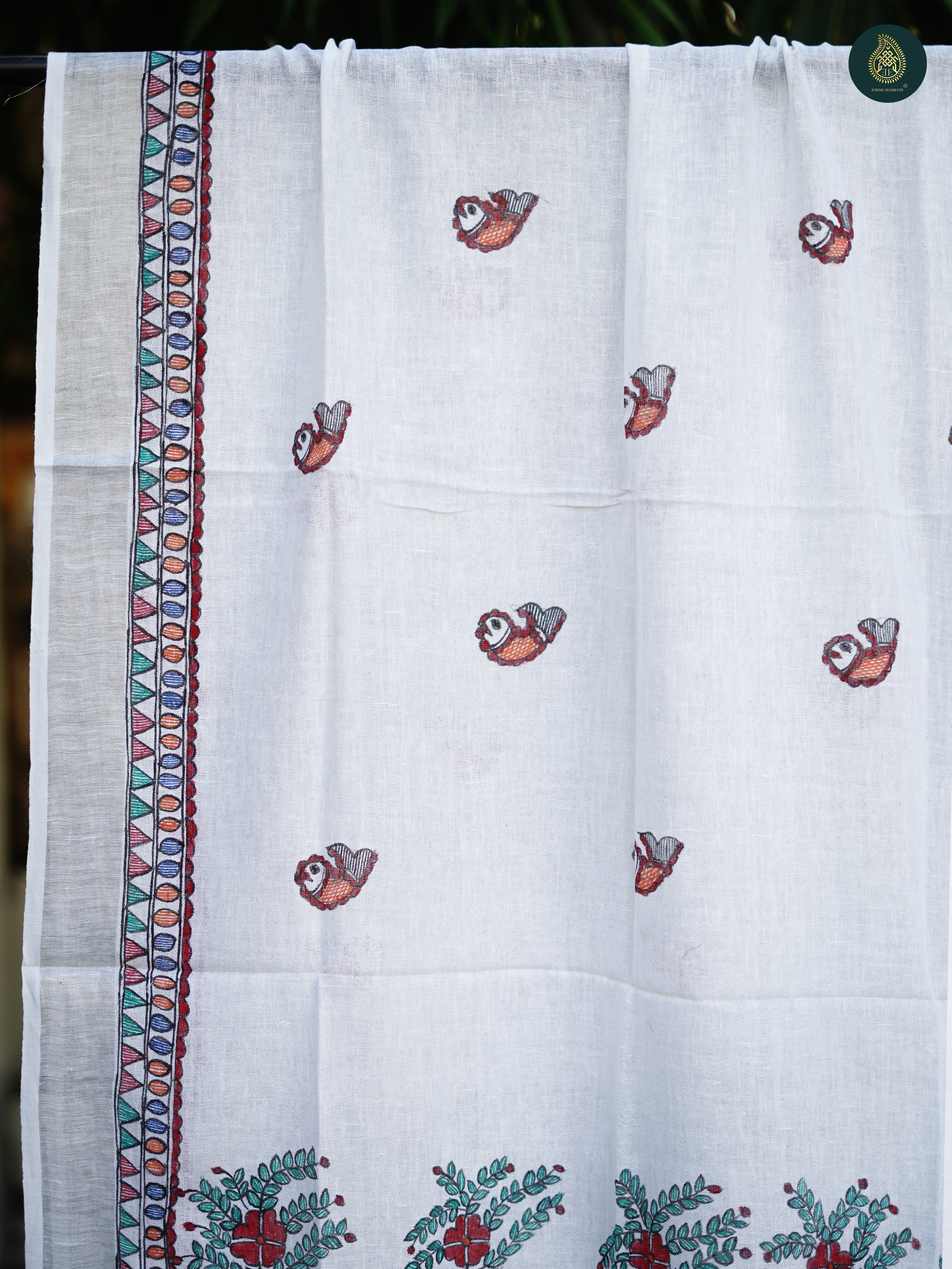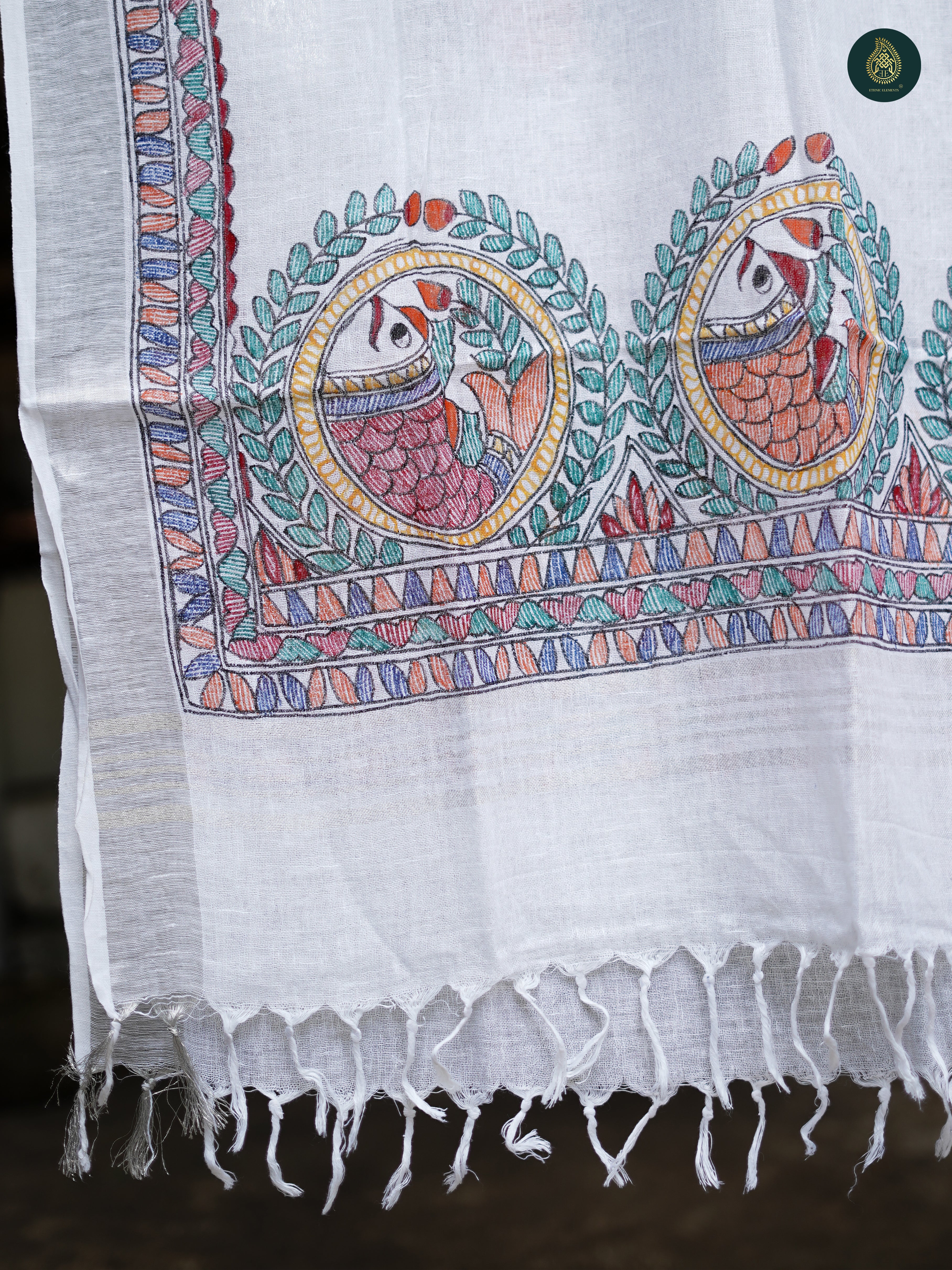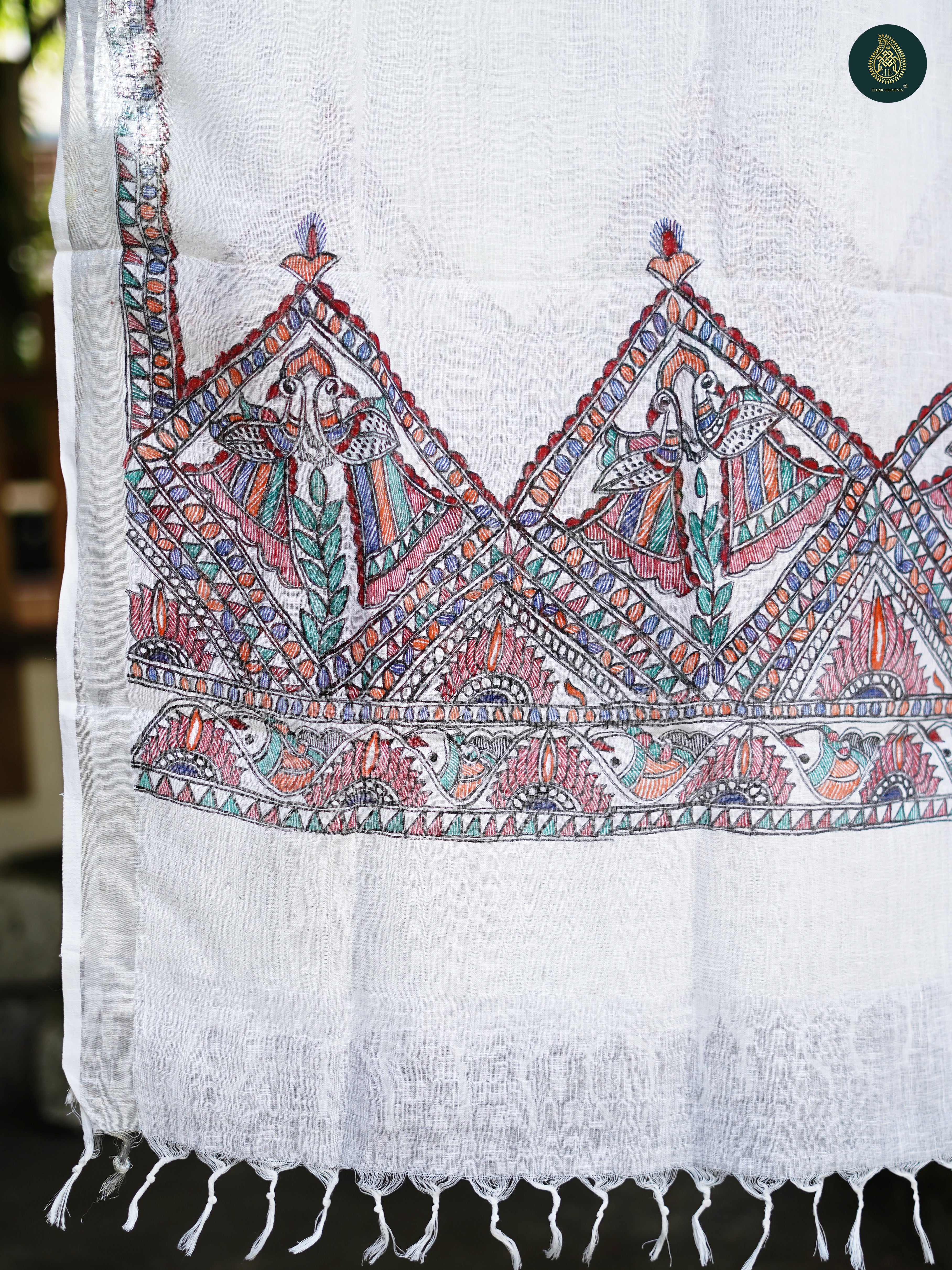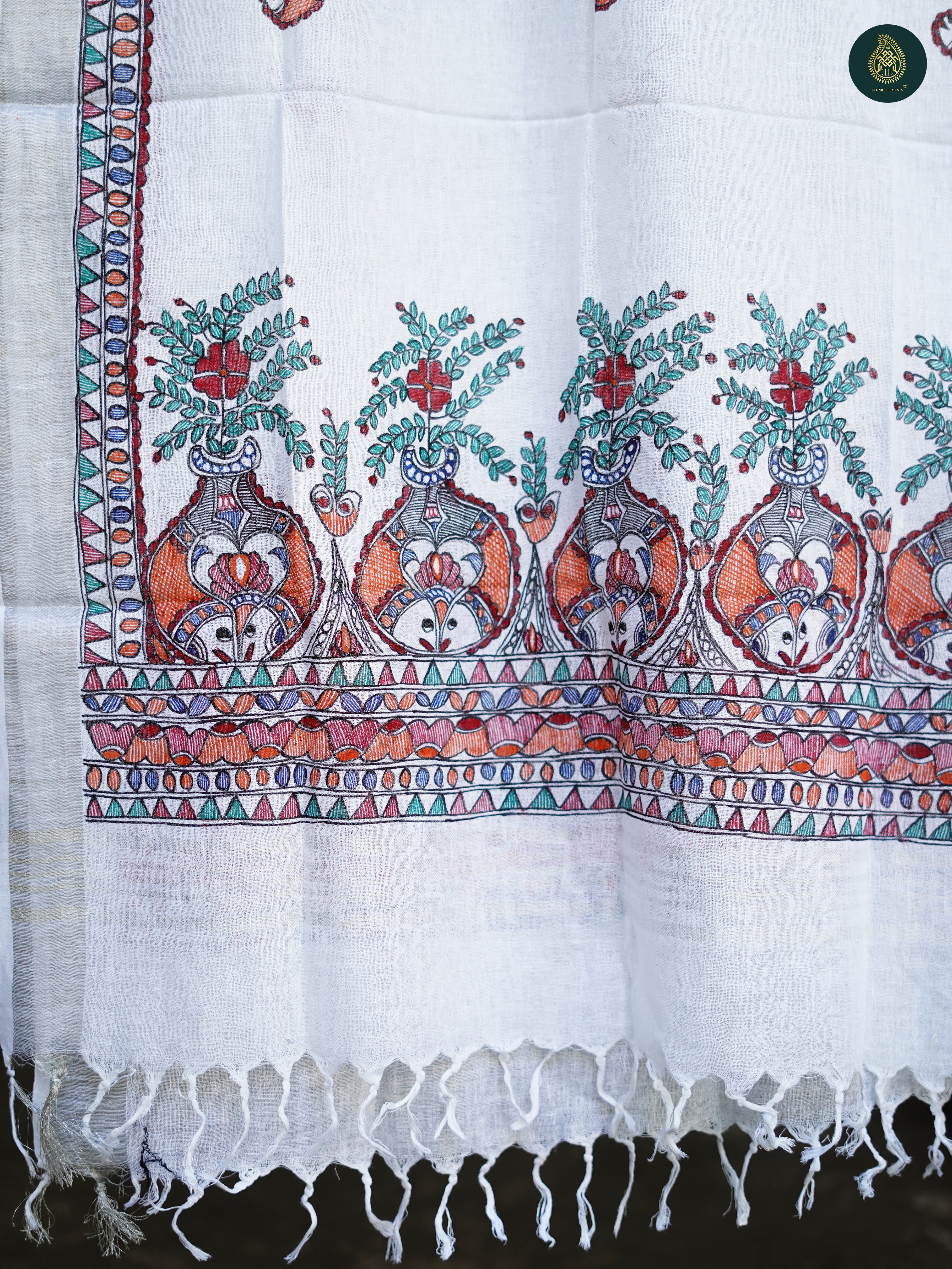 Authentic Original Hand-Painted Madhubani Suit Sets made from pure woven fabrics. Madhubani Art is a type of folk-art form. Each suit consists of line drawings filled with bright colors and contrasts or patterns. Only natural dyes and pigments are used for fabric color and painting.