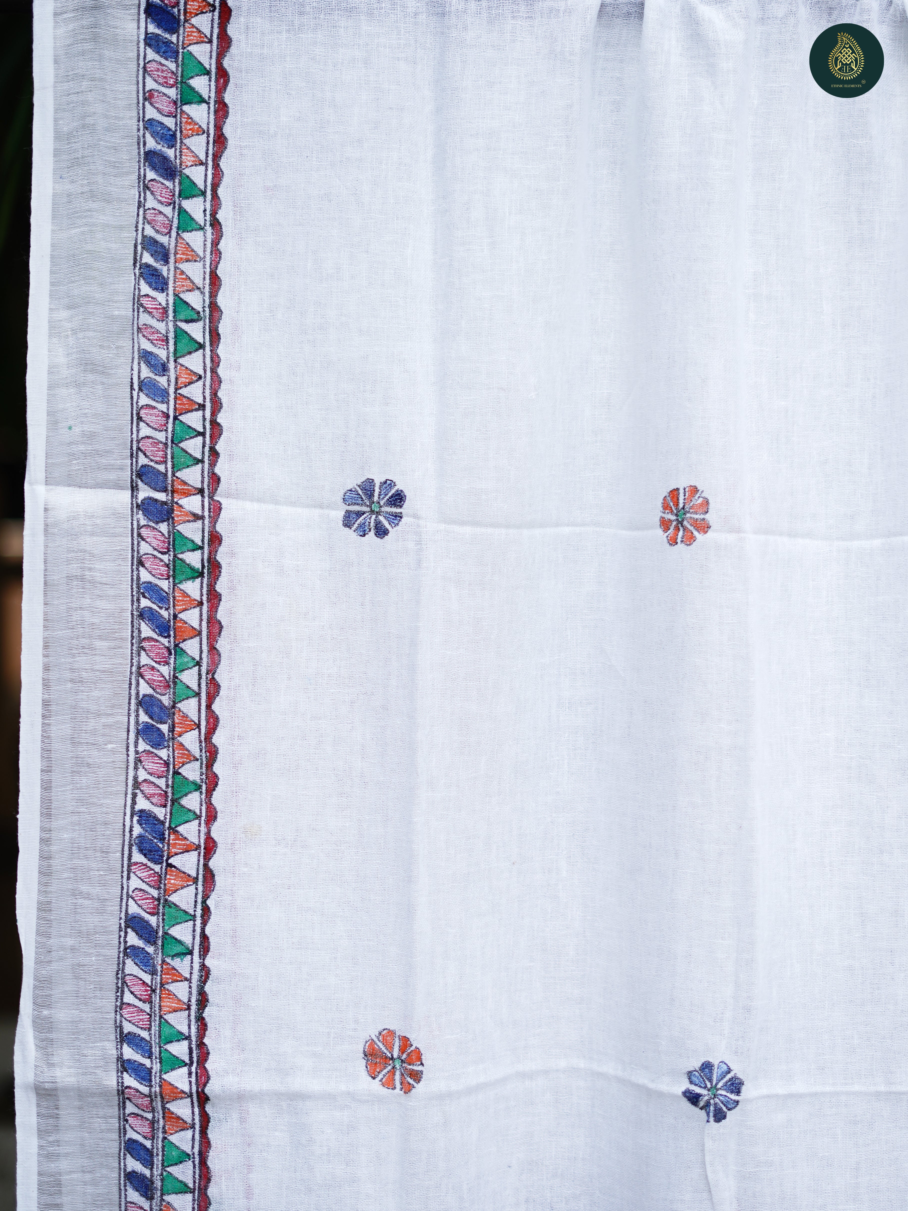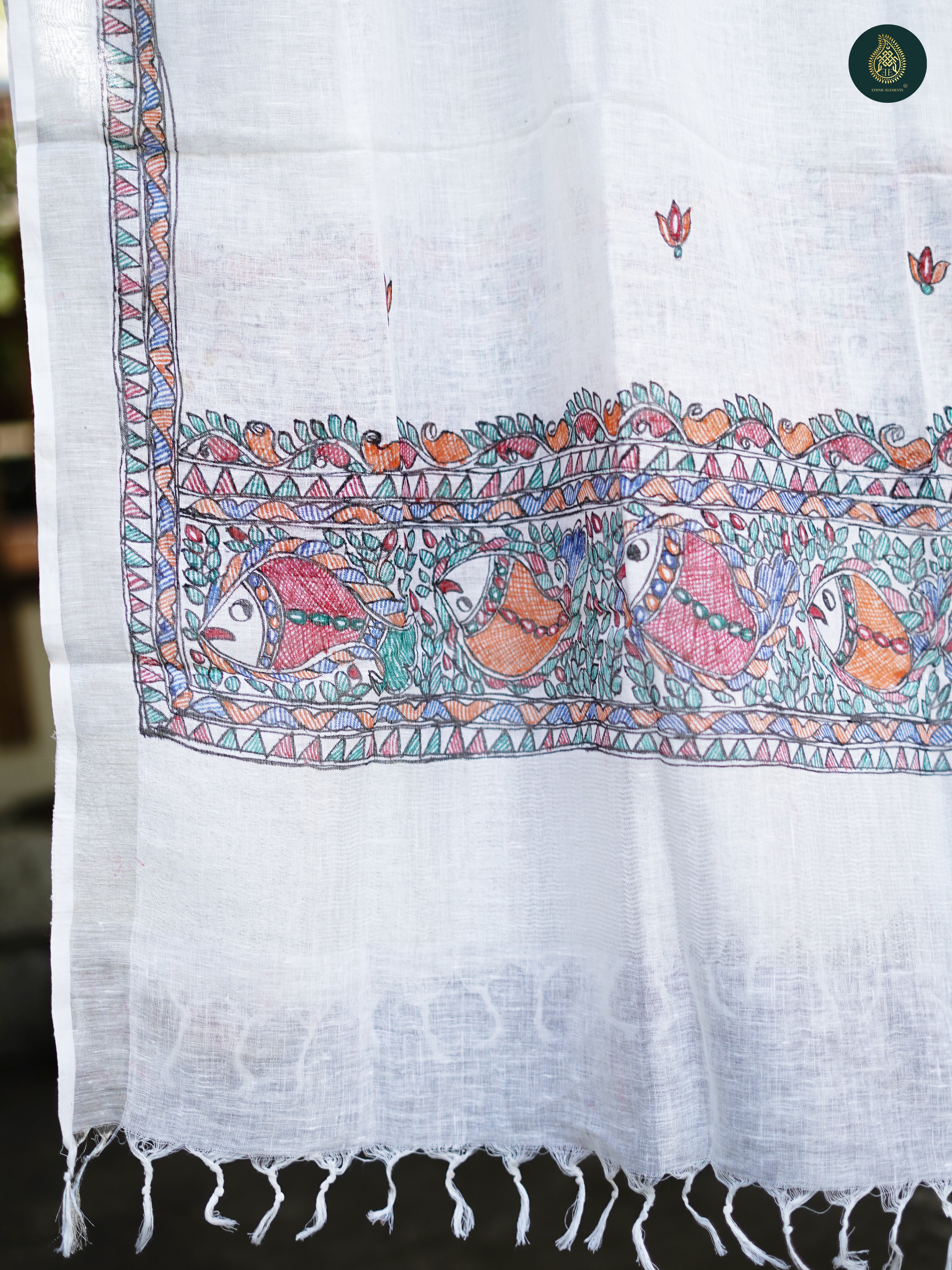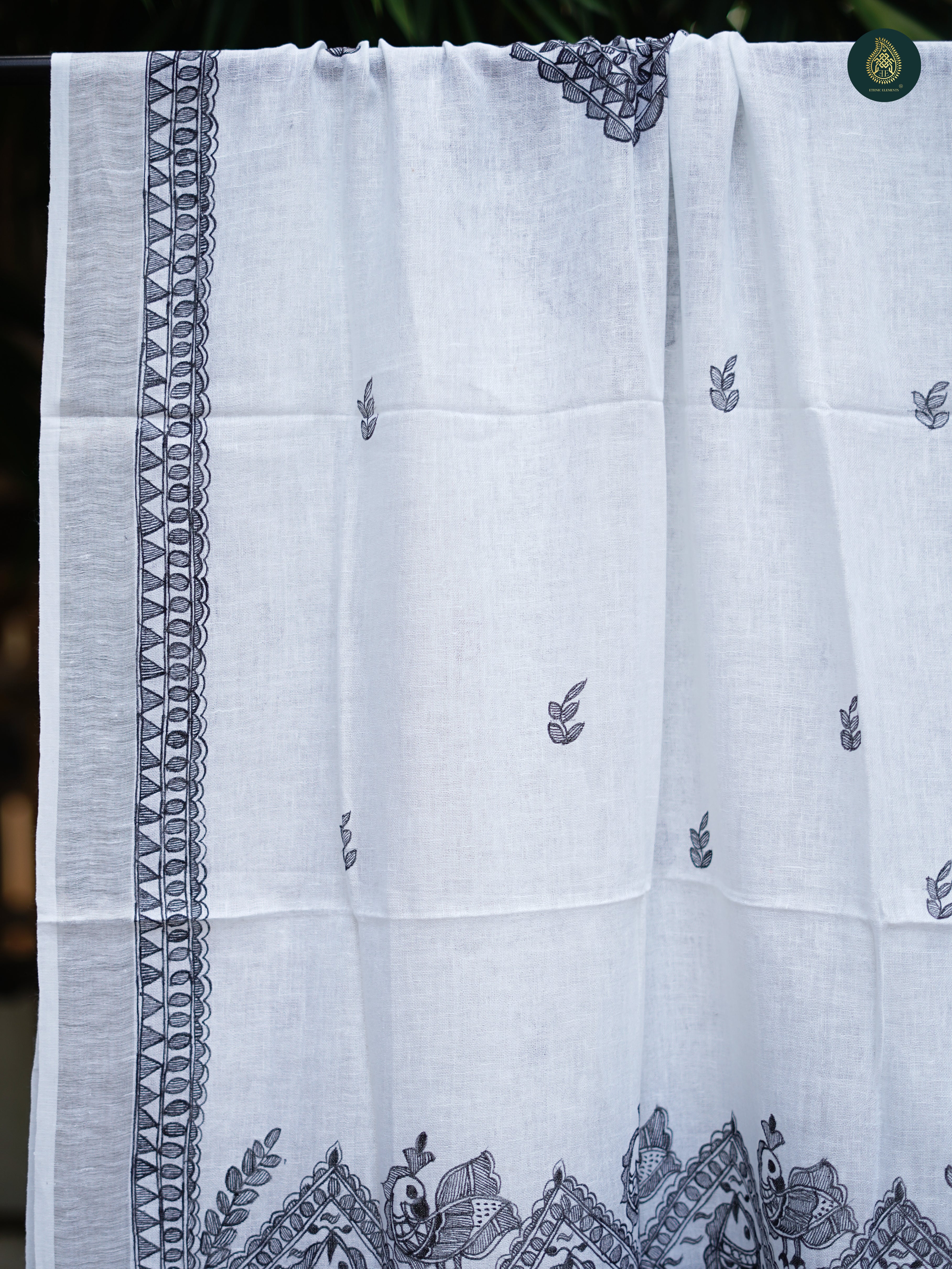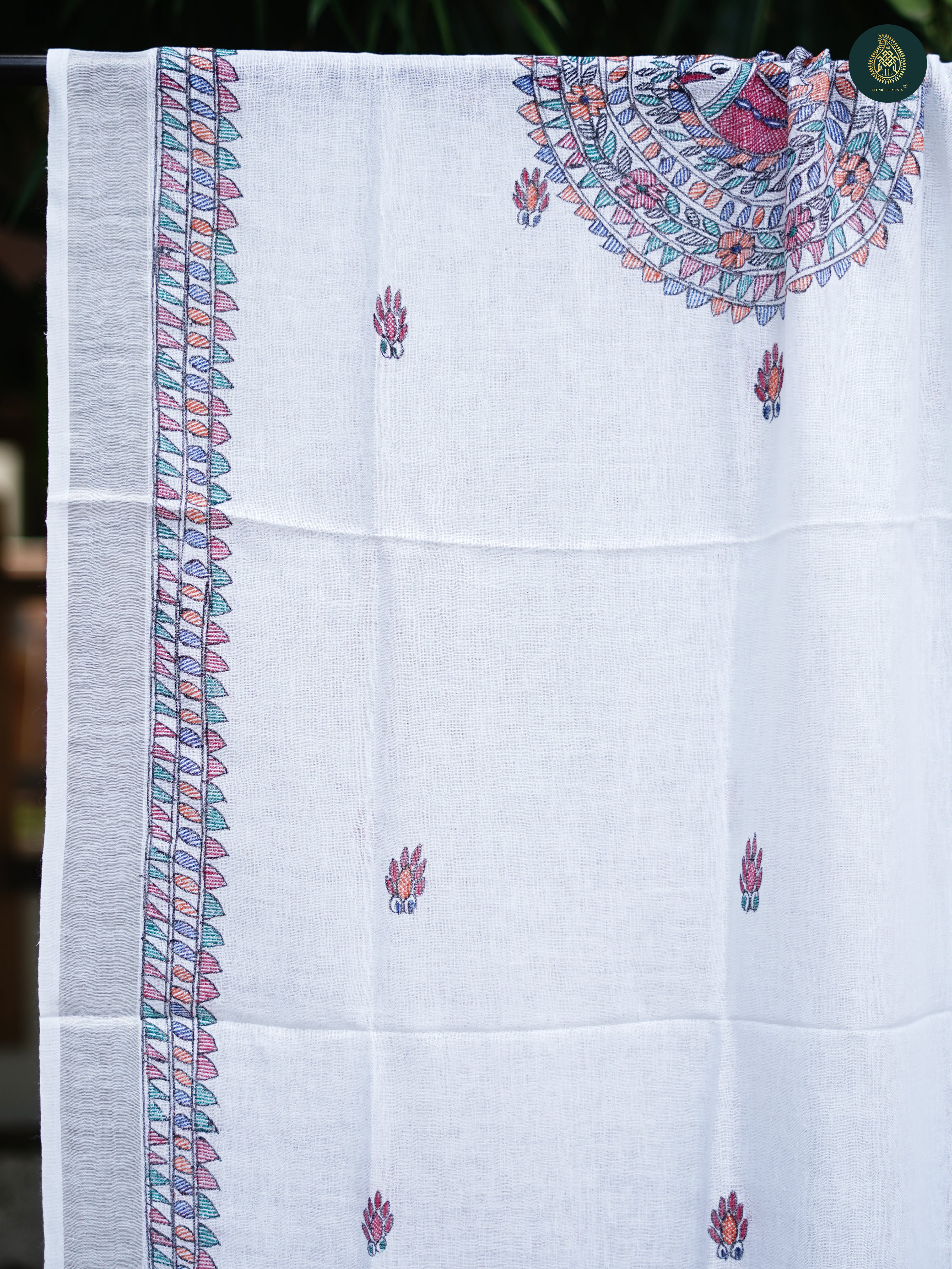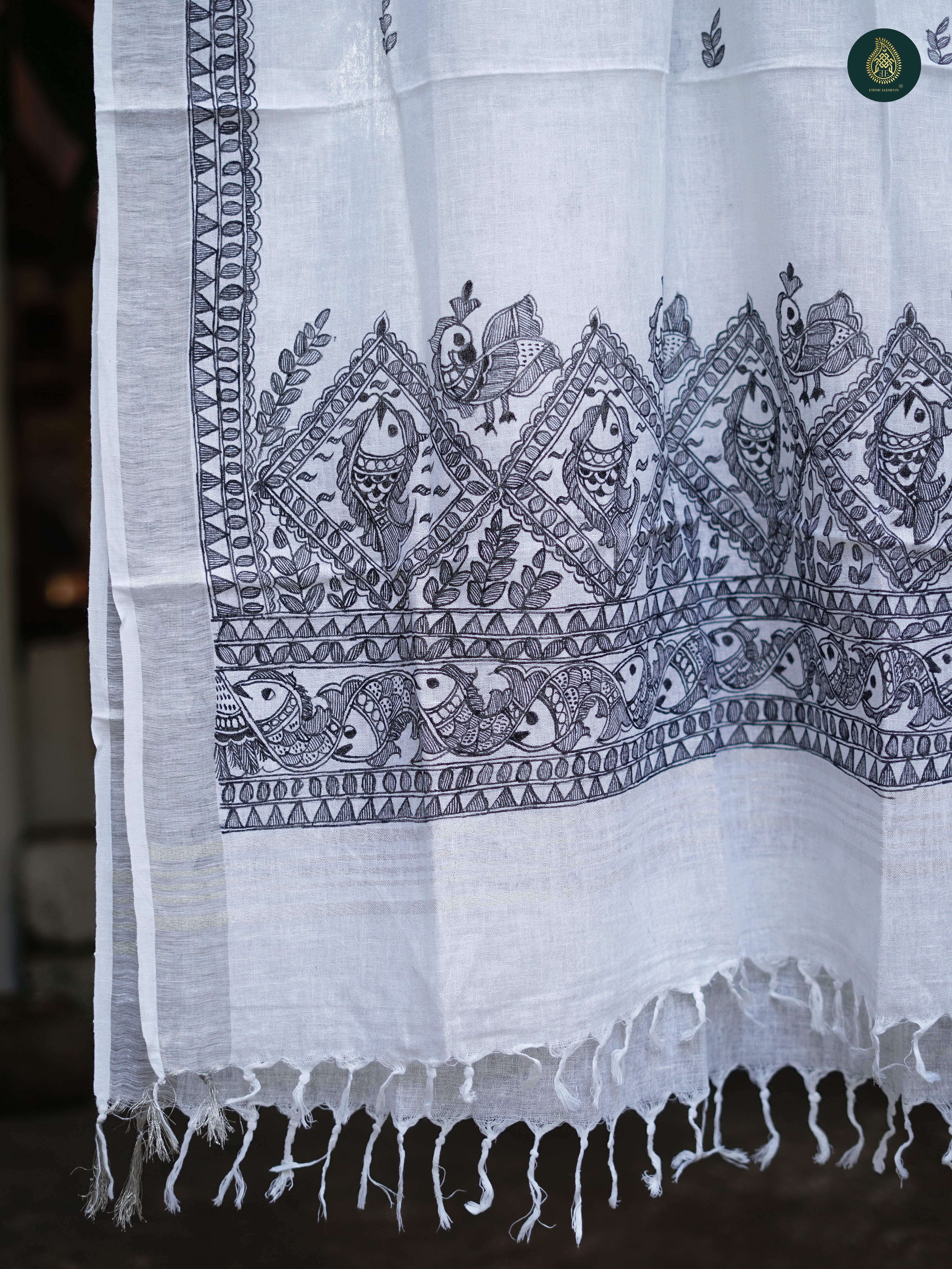 Authentic Original Hand-Painted Madhubani Suit Sets made from pure woven fabrics. Madhubani Art is a type of folk-art form. Each suit consists of line drawings filled with bright colors and contrasts or patterns. Only natural dyes and pigments are used for fabric color and painting.