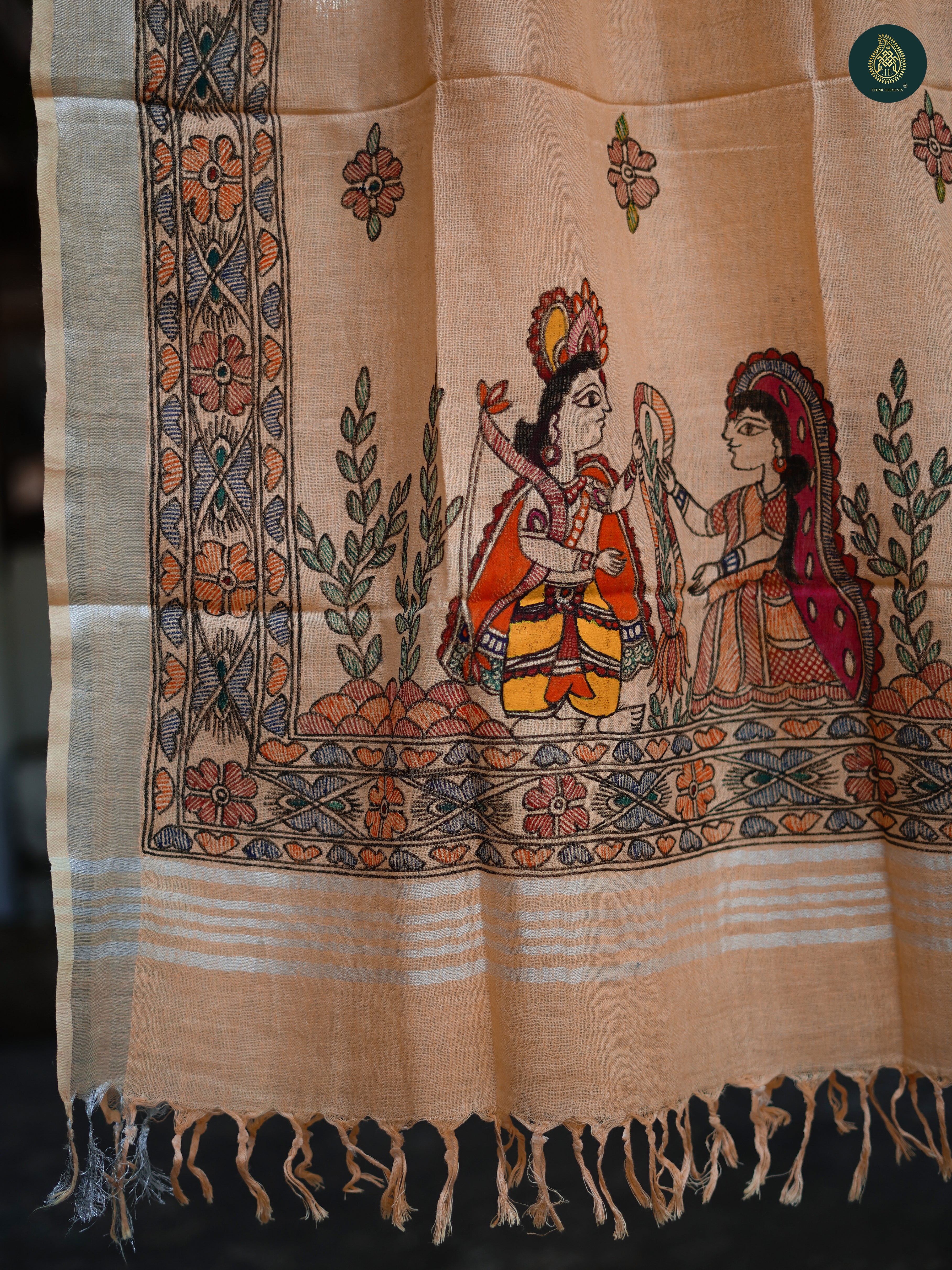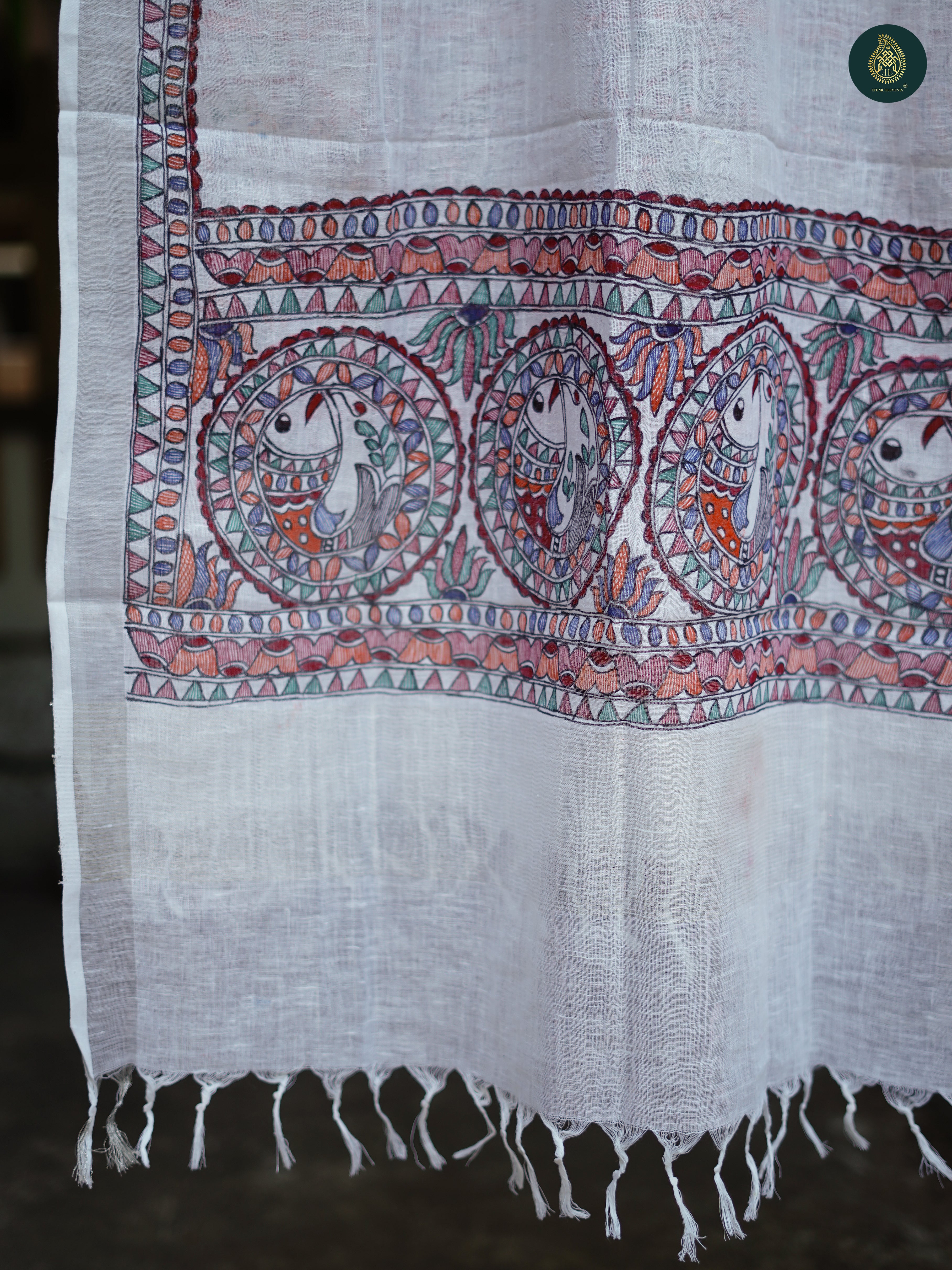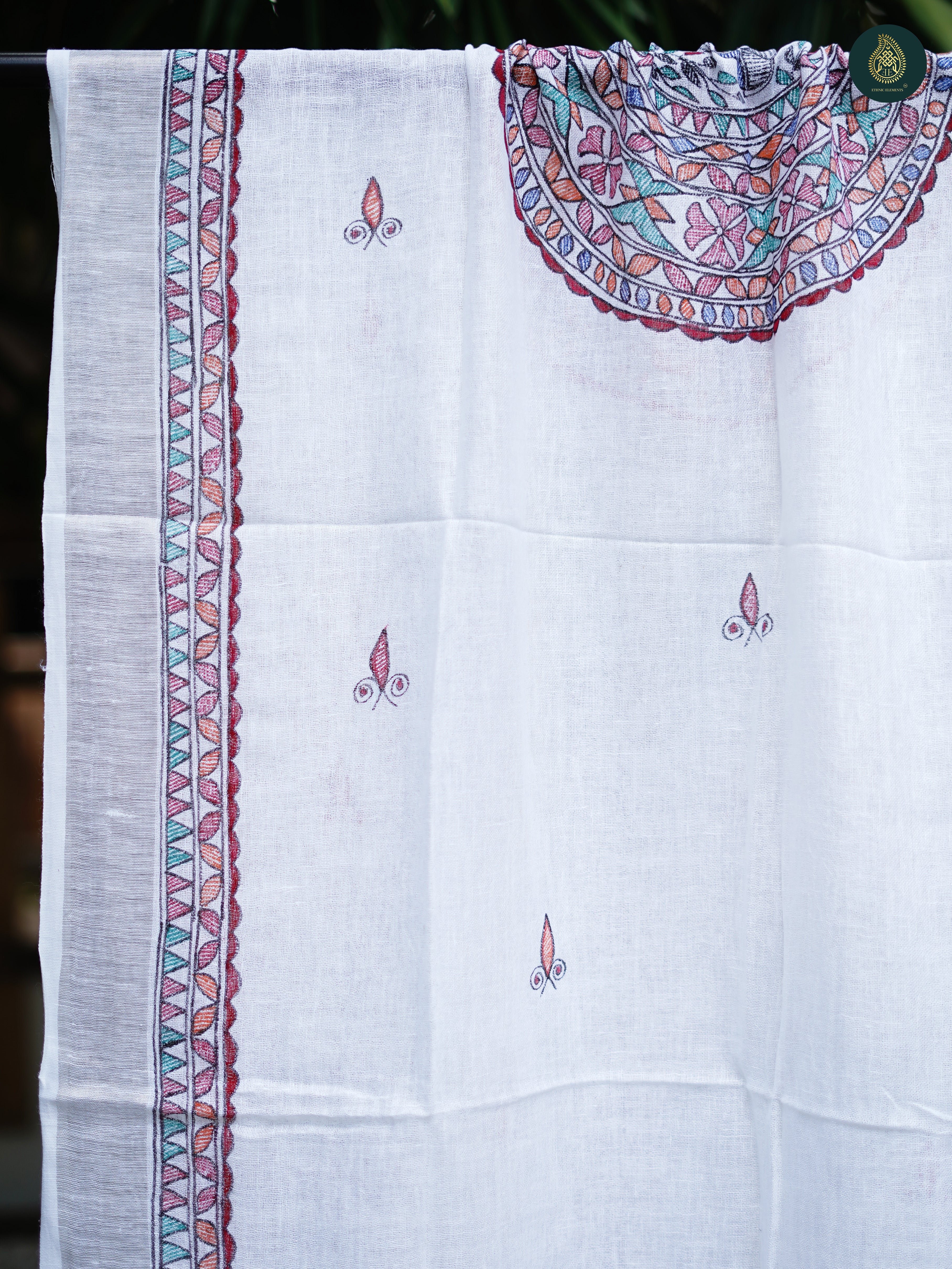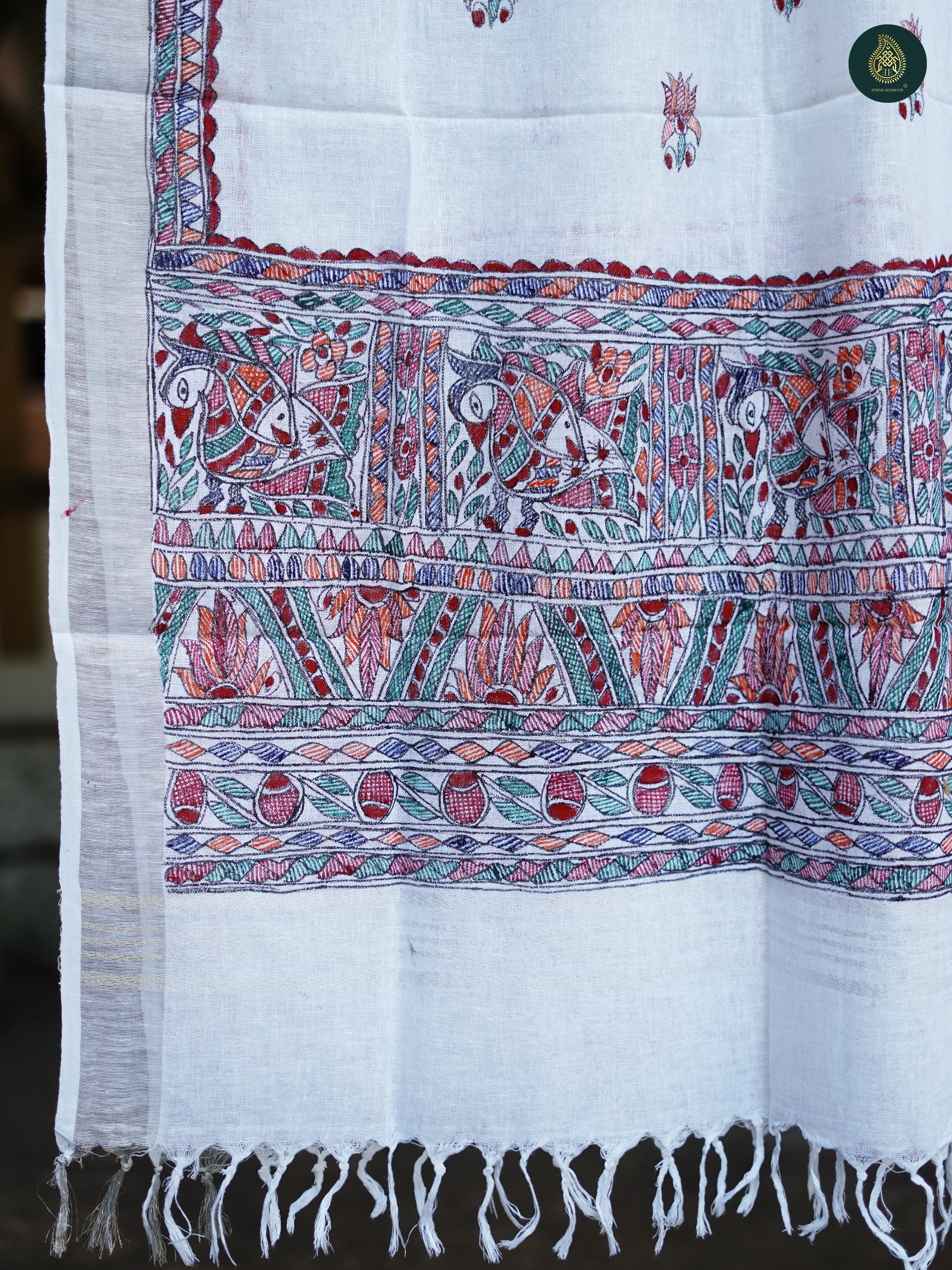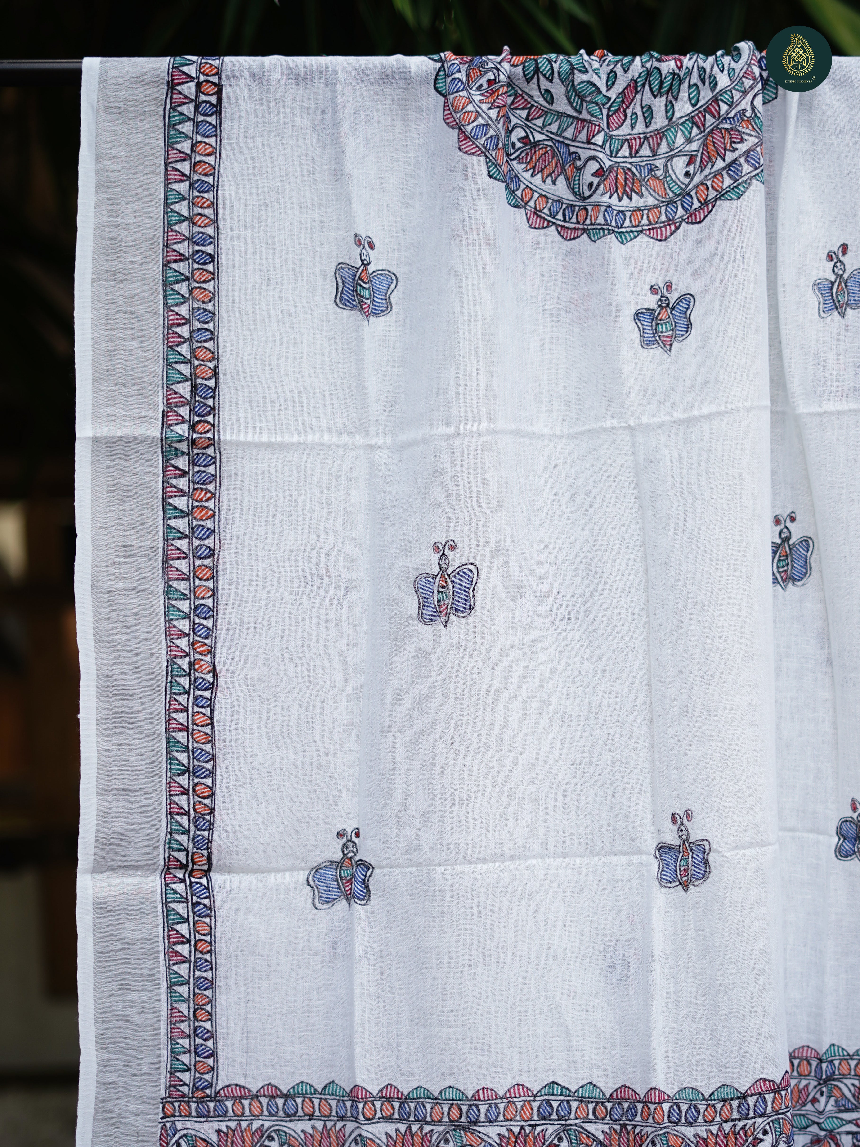 Authentic Original Hand-Painted Madhubani Suit Sets made from pure woven fabrics. Madhubani Art is a type of folk-art form. Each suit consists of line drawings filled with bright colors and contrasts or patterns. Only natural dyes and pigments are used for fabric color and painting.