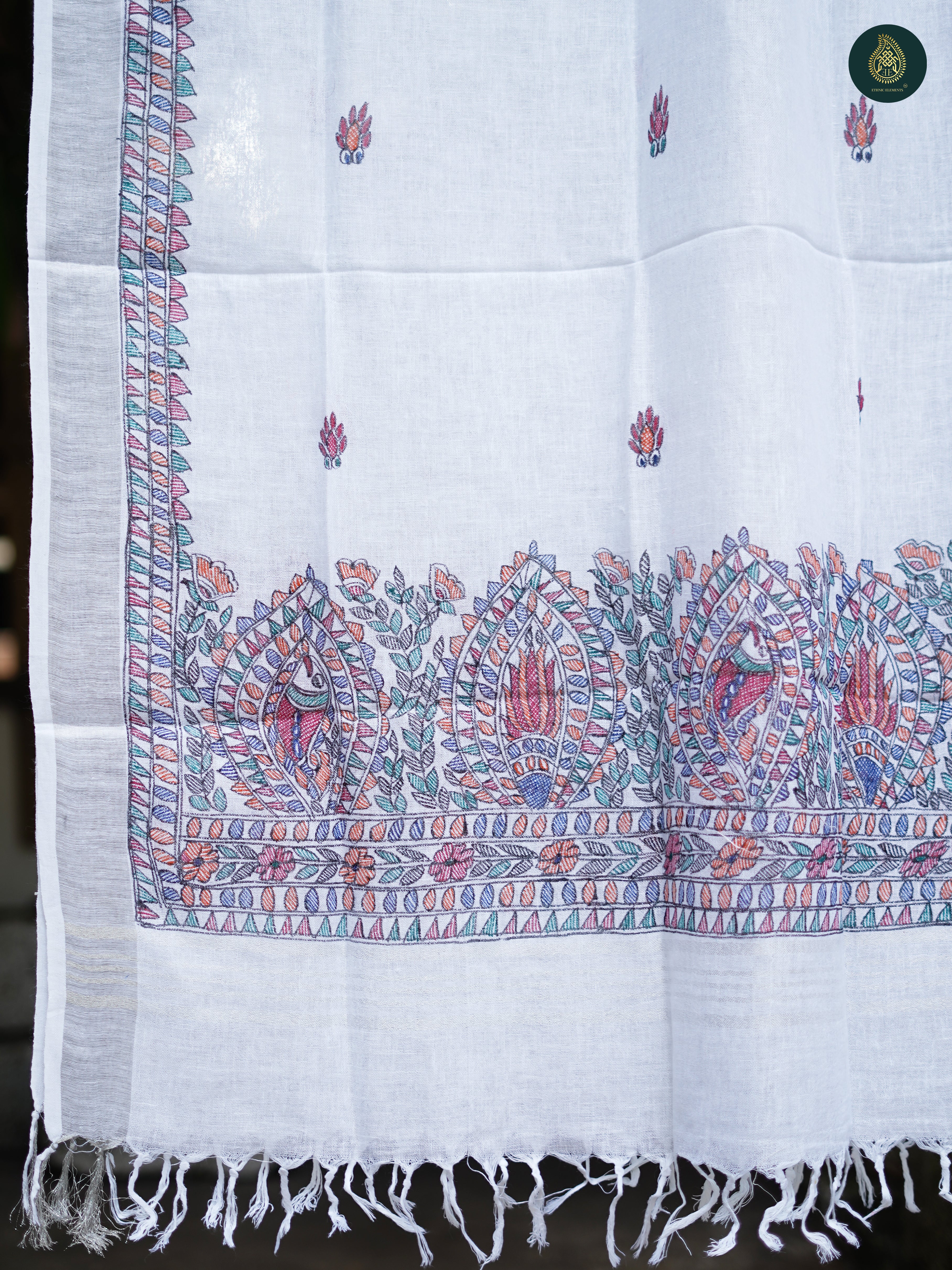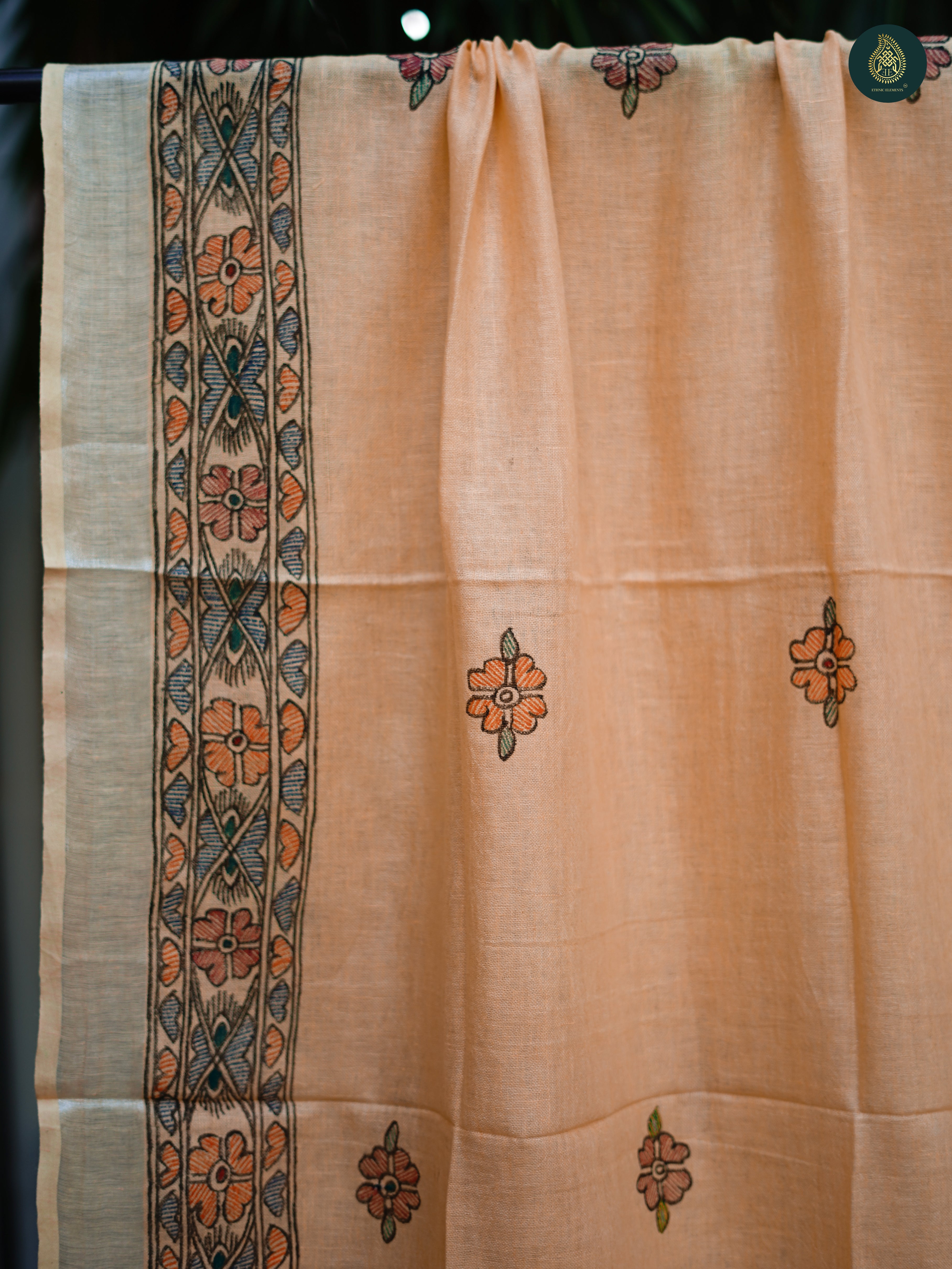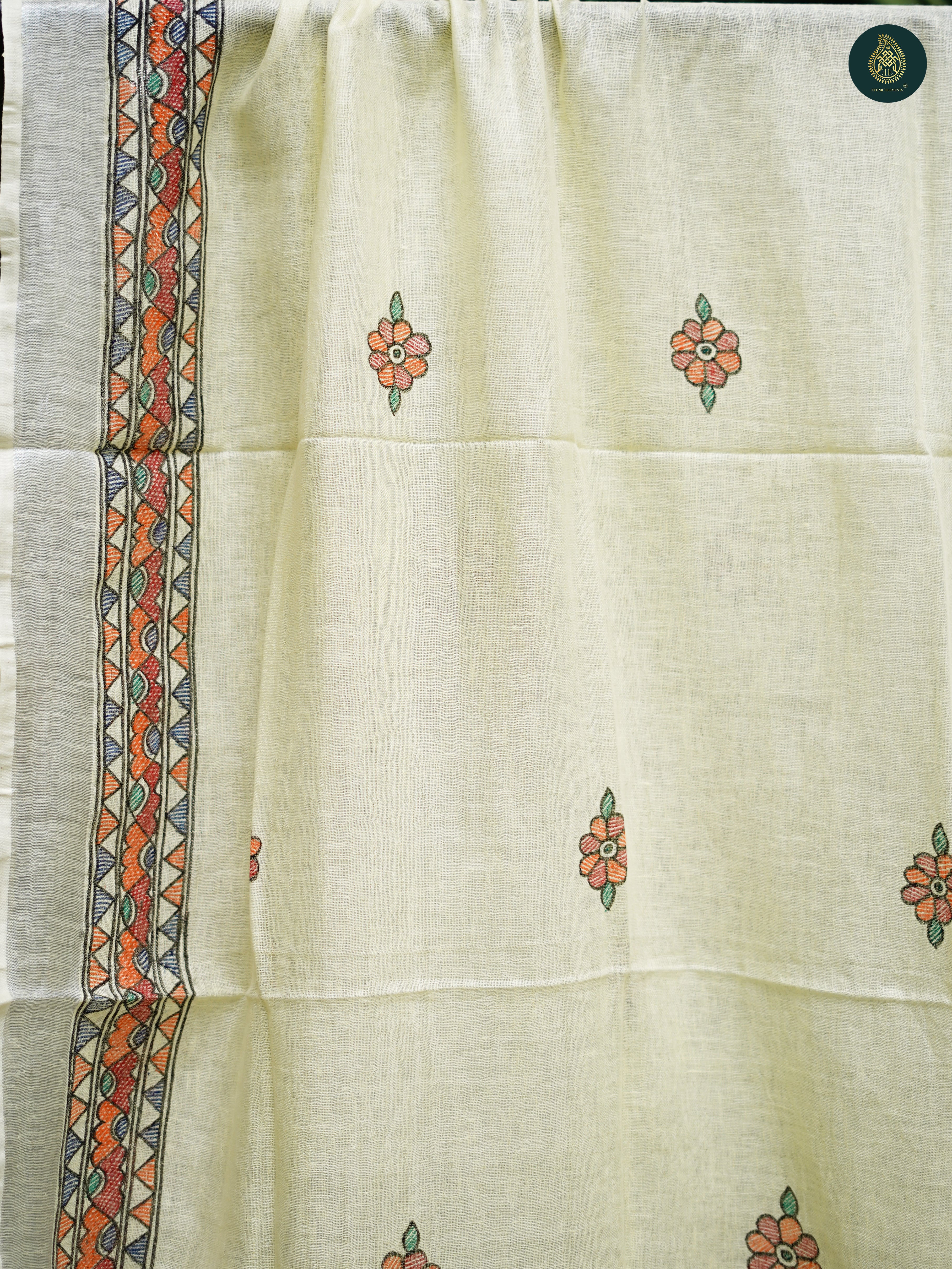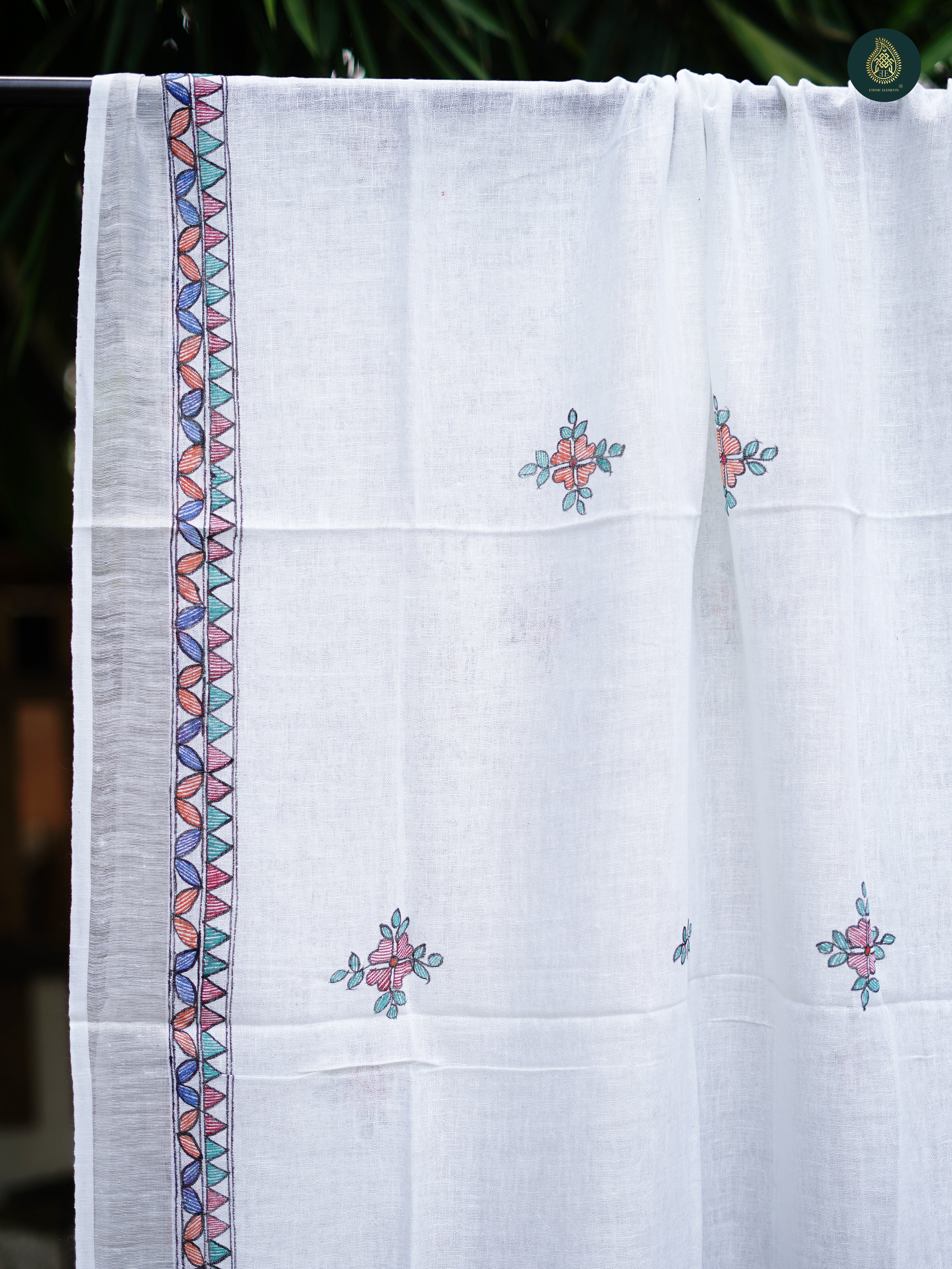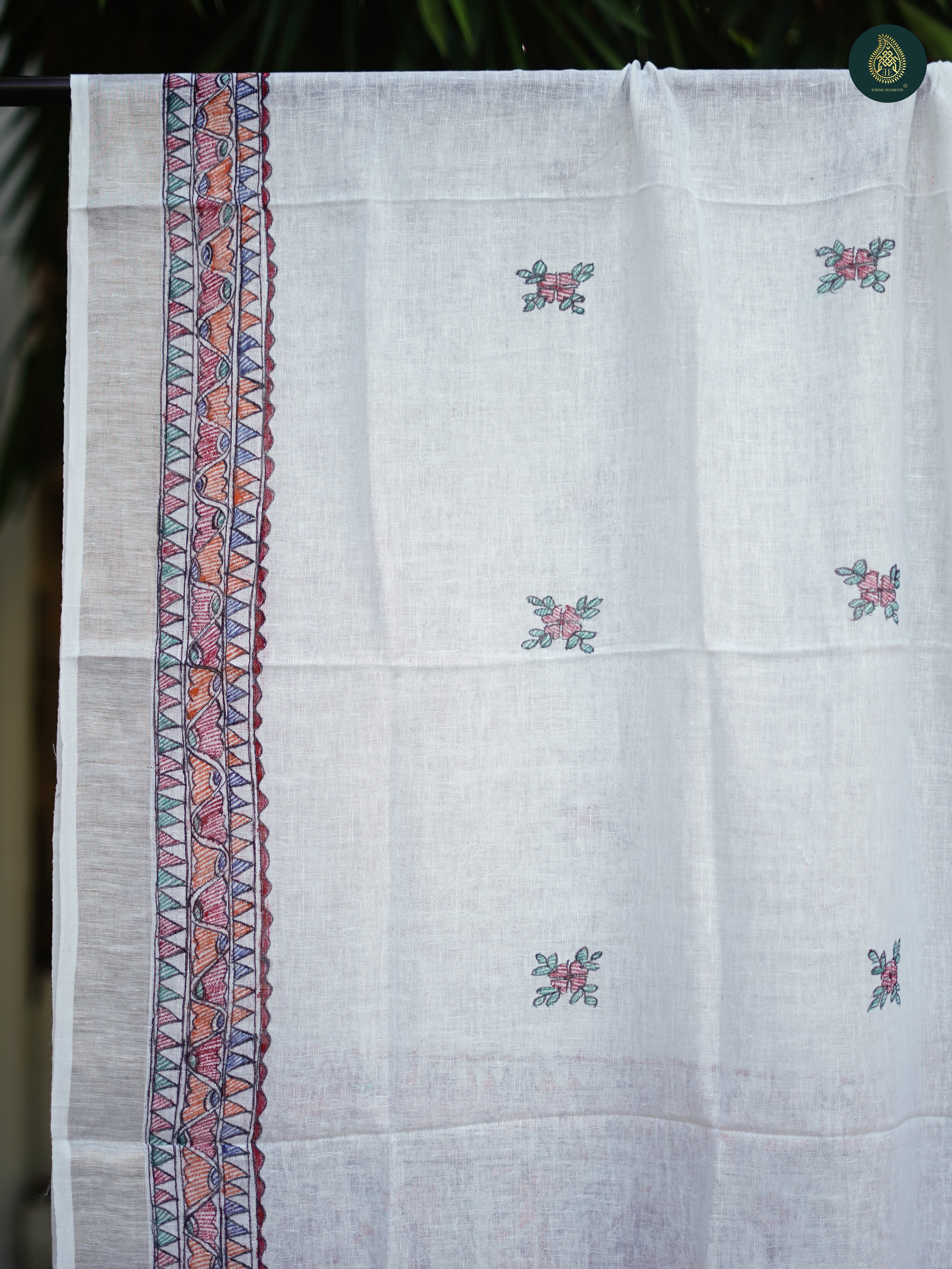 Authentic Original Hand-Painted Madhubani Suit Sets made from pure woven fabrics. Madhubani Art is a type of folk-art form. Each suit consists of line drawings filled with bright colors and contrasts or patterns. Only natural dyes and pigments are used for fabric color and painting.