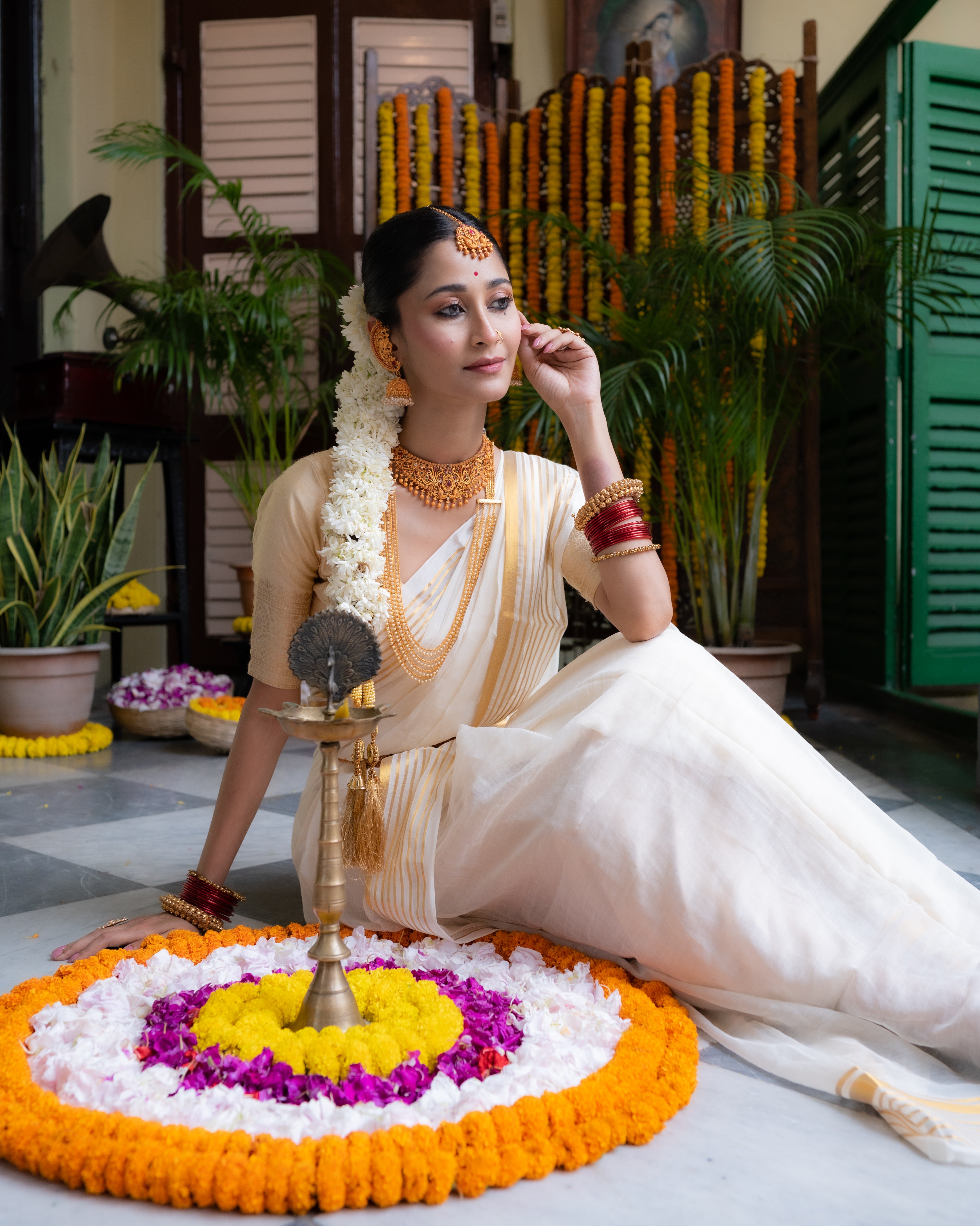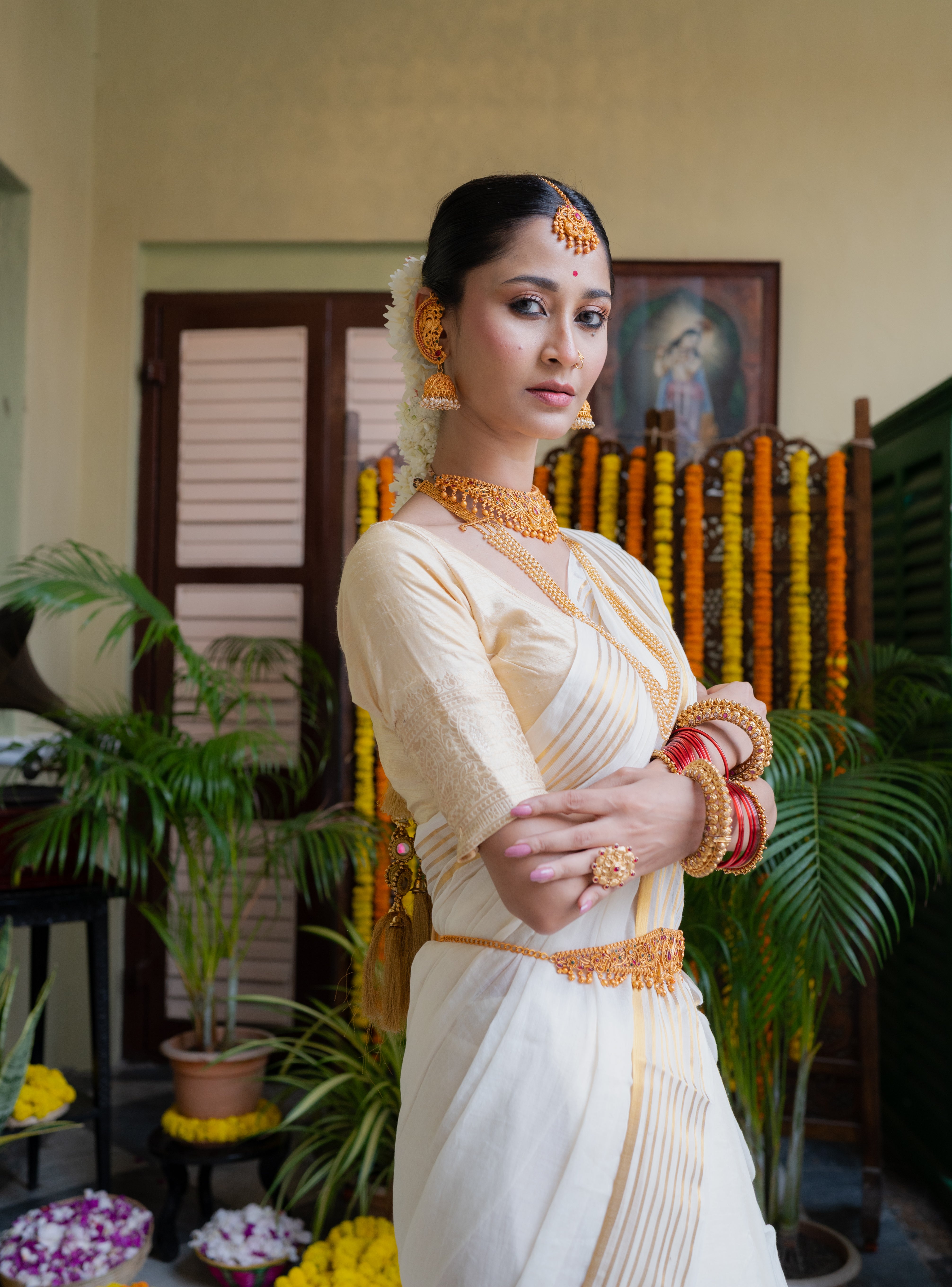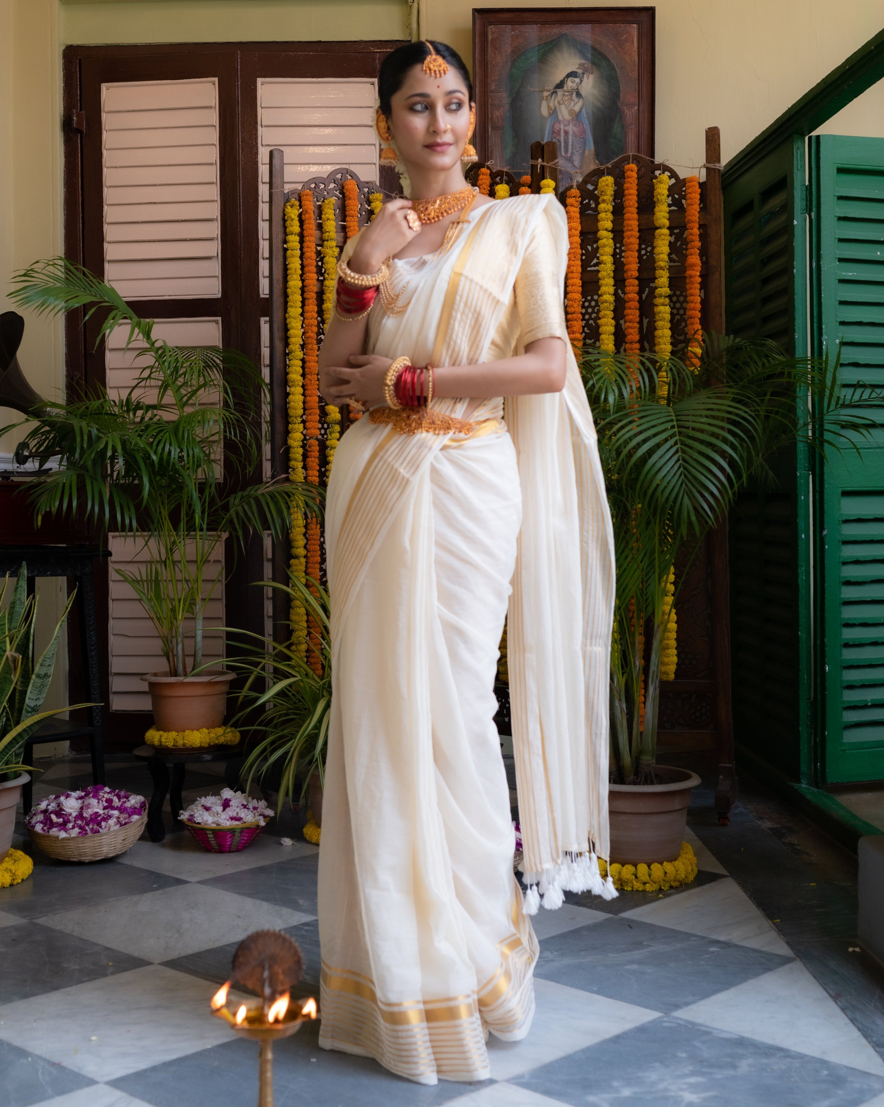 Mul Cotton Saree with Gold Zari Border -Swarna Vella