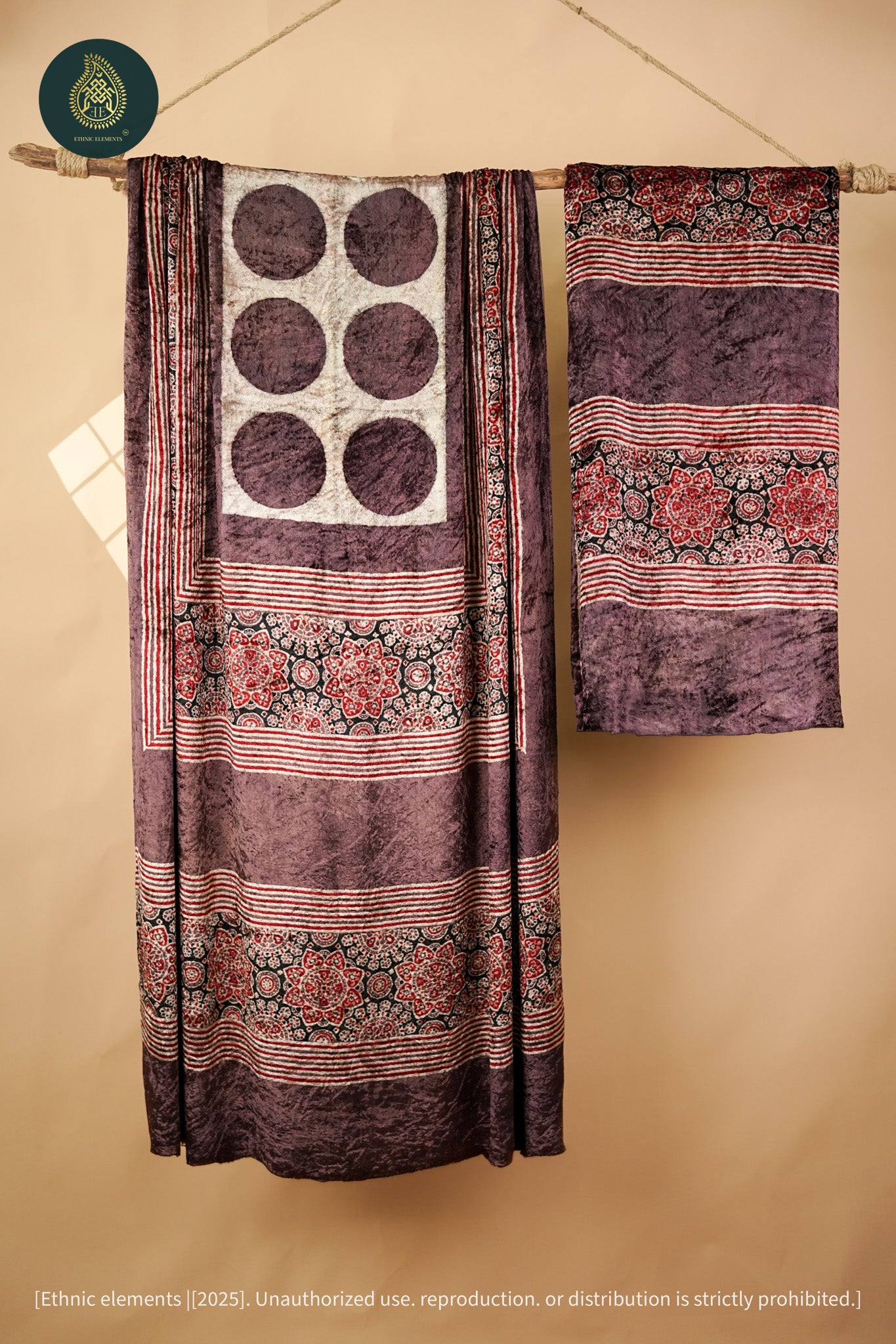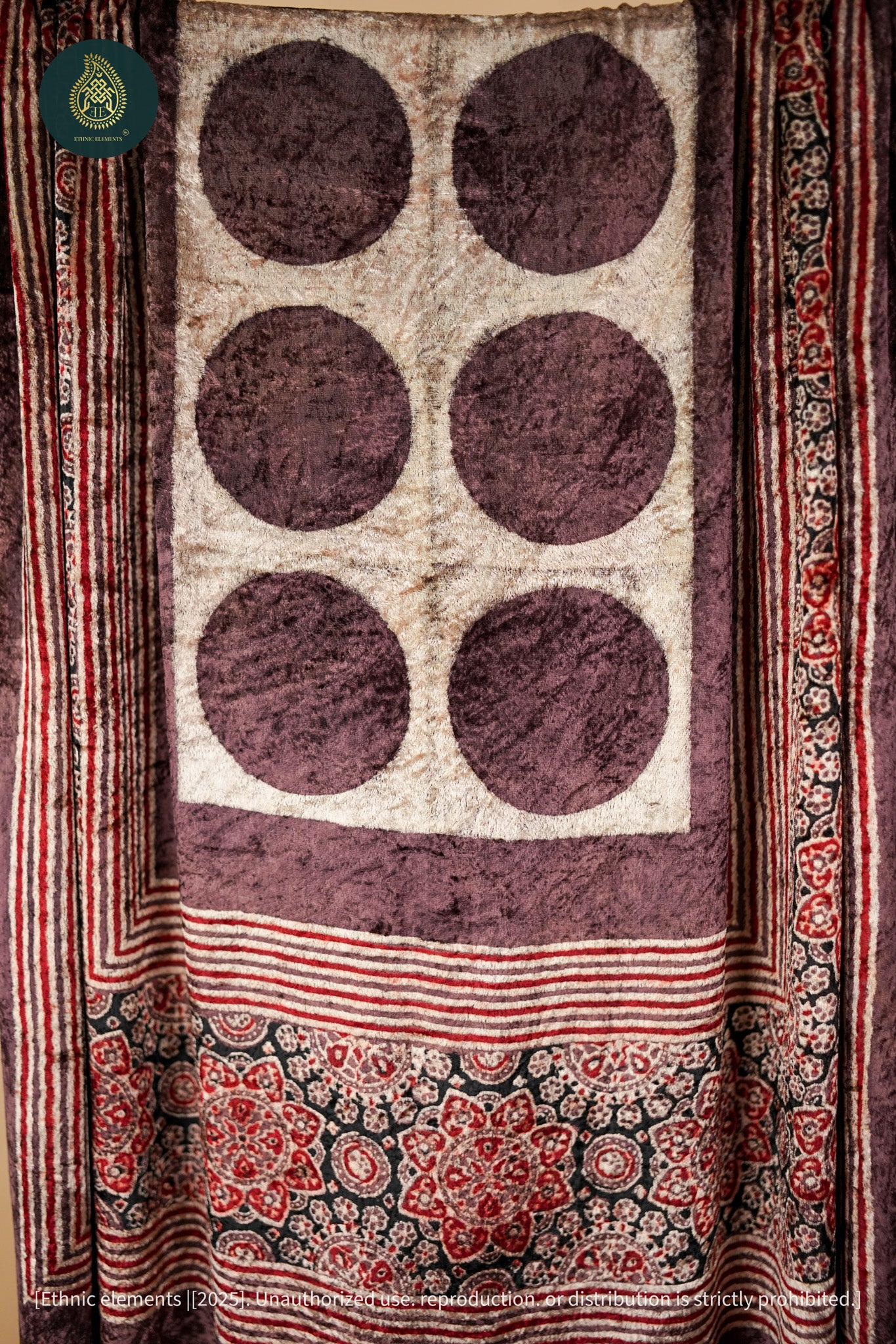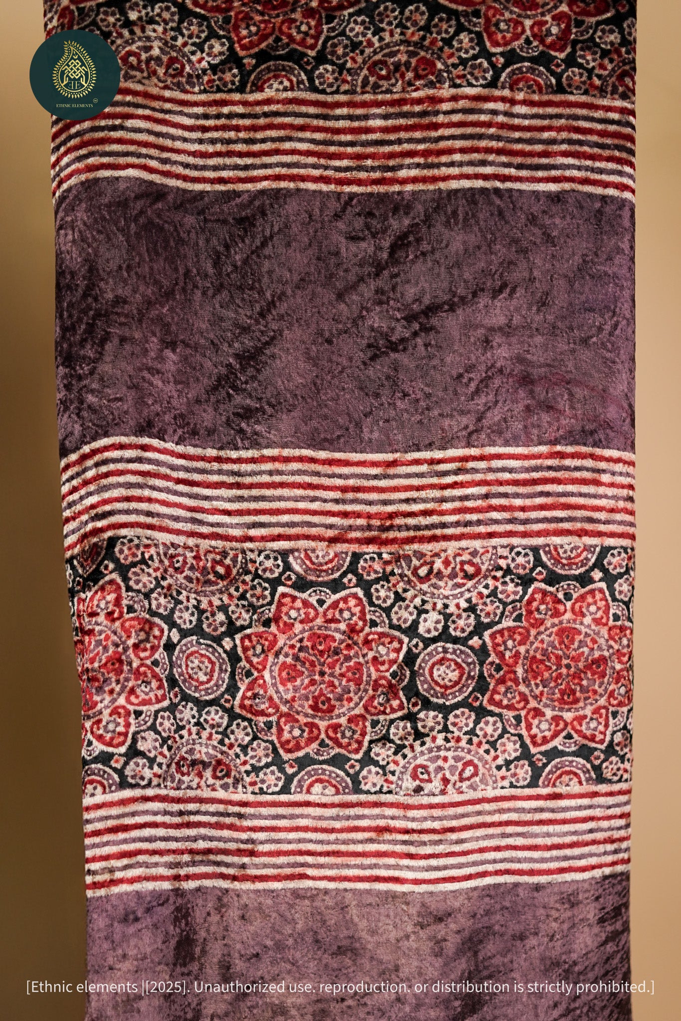 Velvet Ajrakh/Ajrak fabric for kurta. The Ajrakh blocks are made using wooden blocks and organic natural colors. This is only a kurta fabric piece.