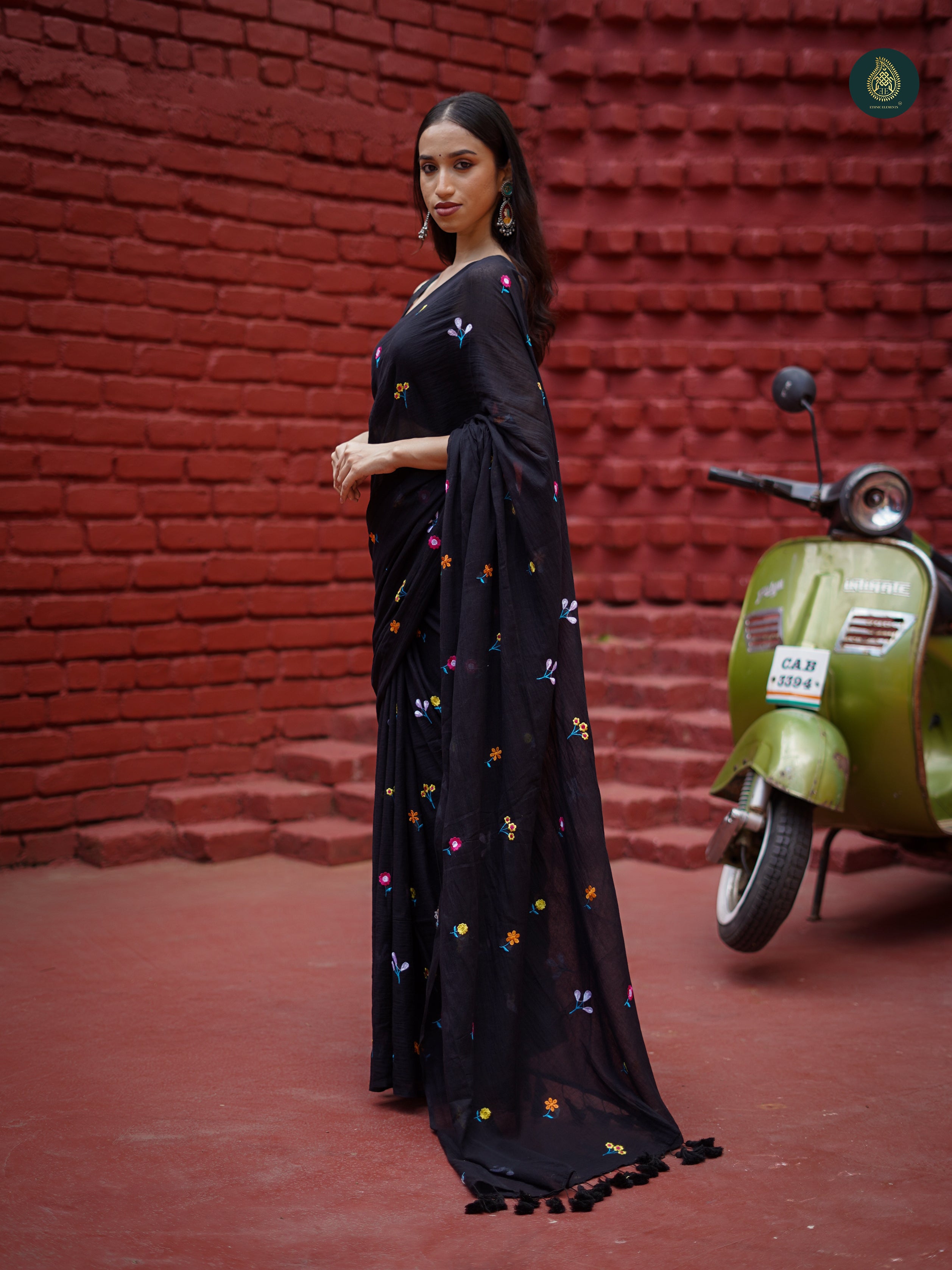📦 One Pure Mul Cotton Hand-Embroidered Saree