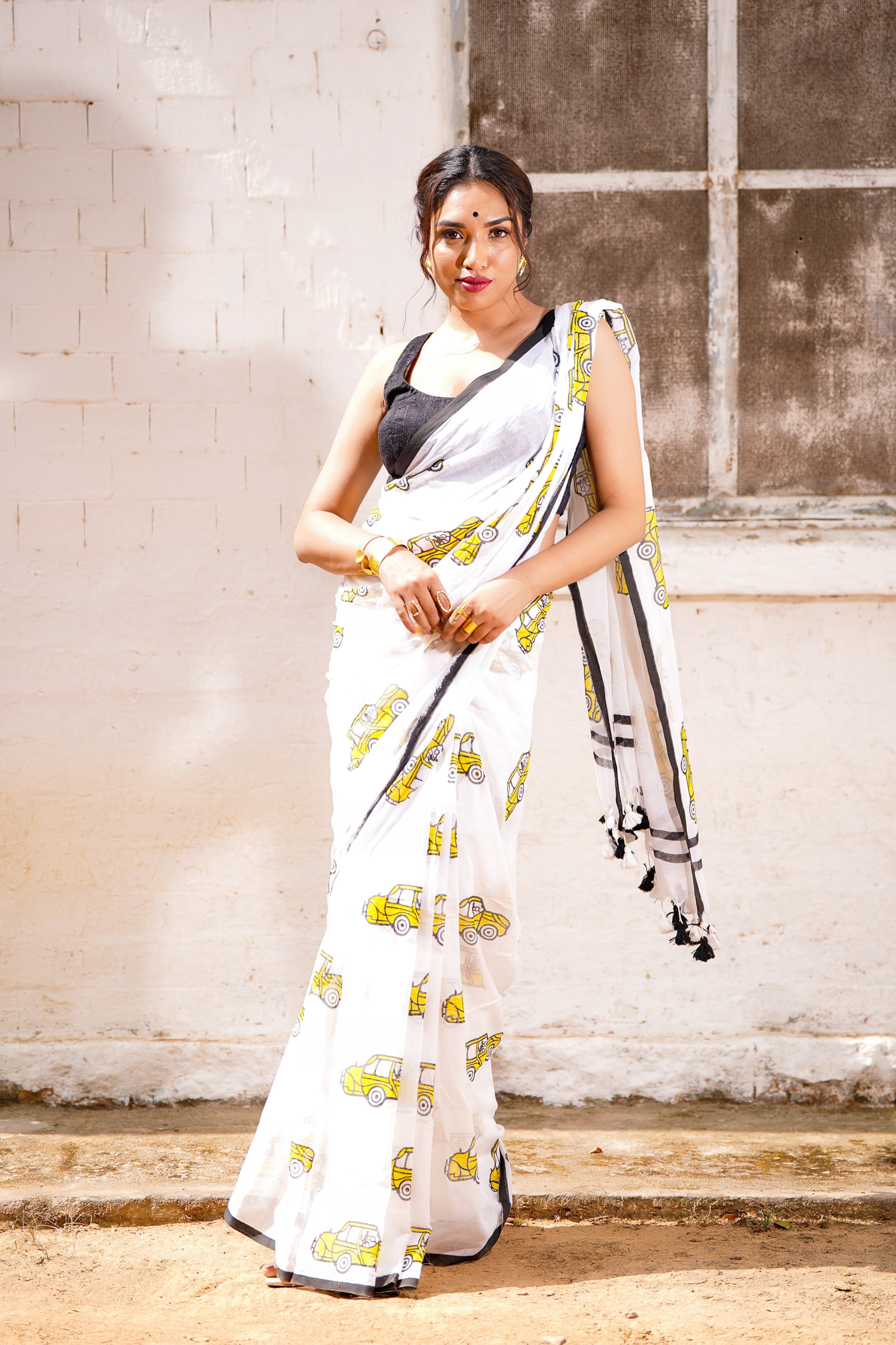 Mul cotton handblock printed saree that is crafted with precision, adorned with tradition. Comes with blouse piece. It is a beauty in making when timeless artistry meets modern grace.