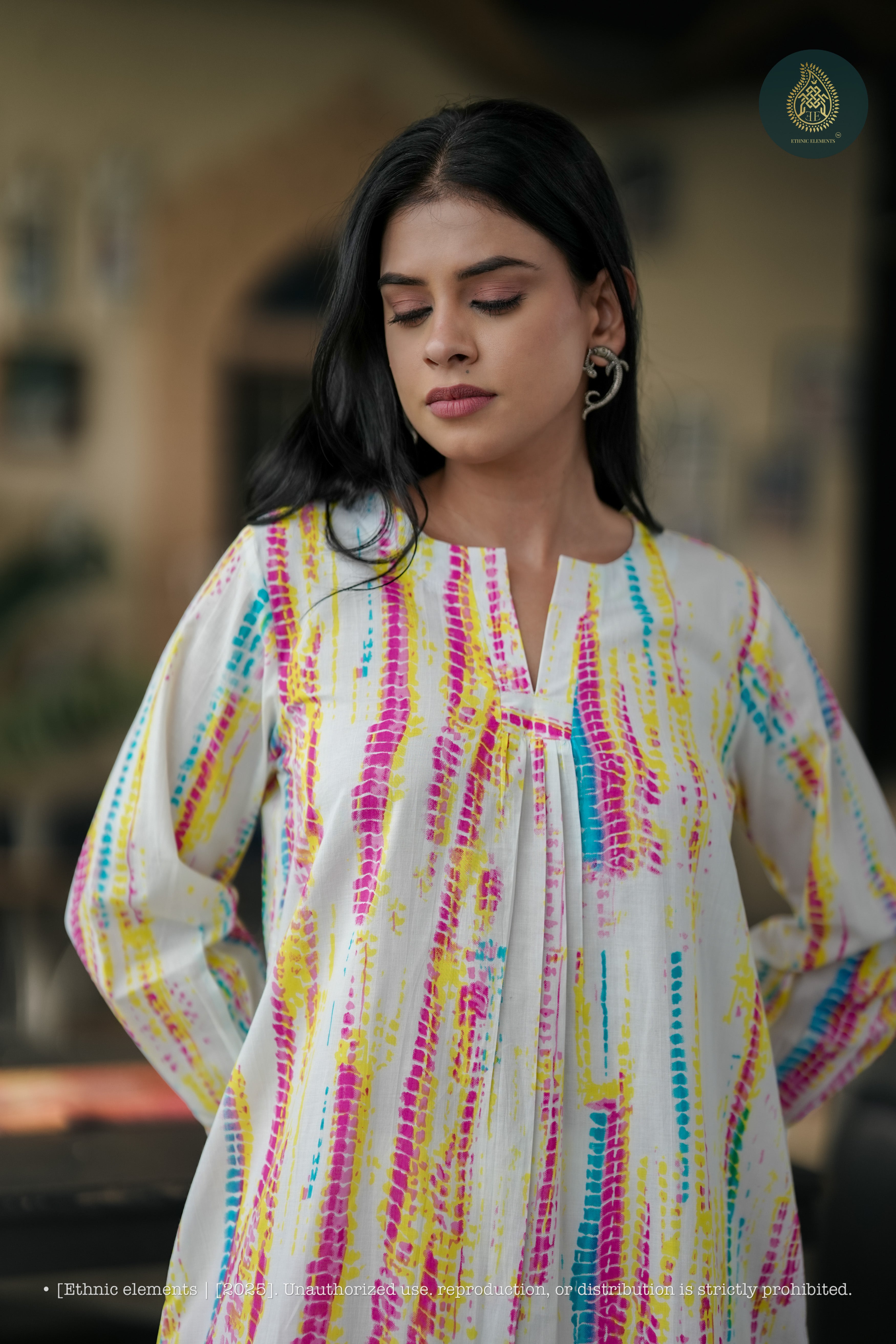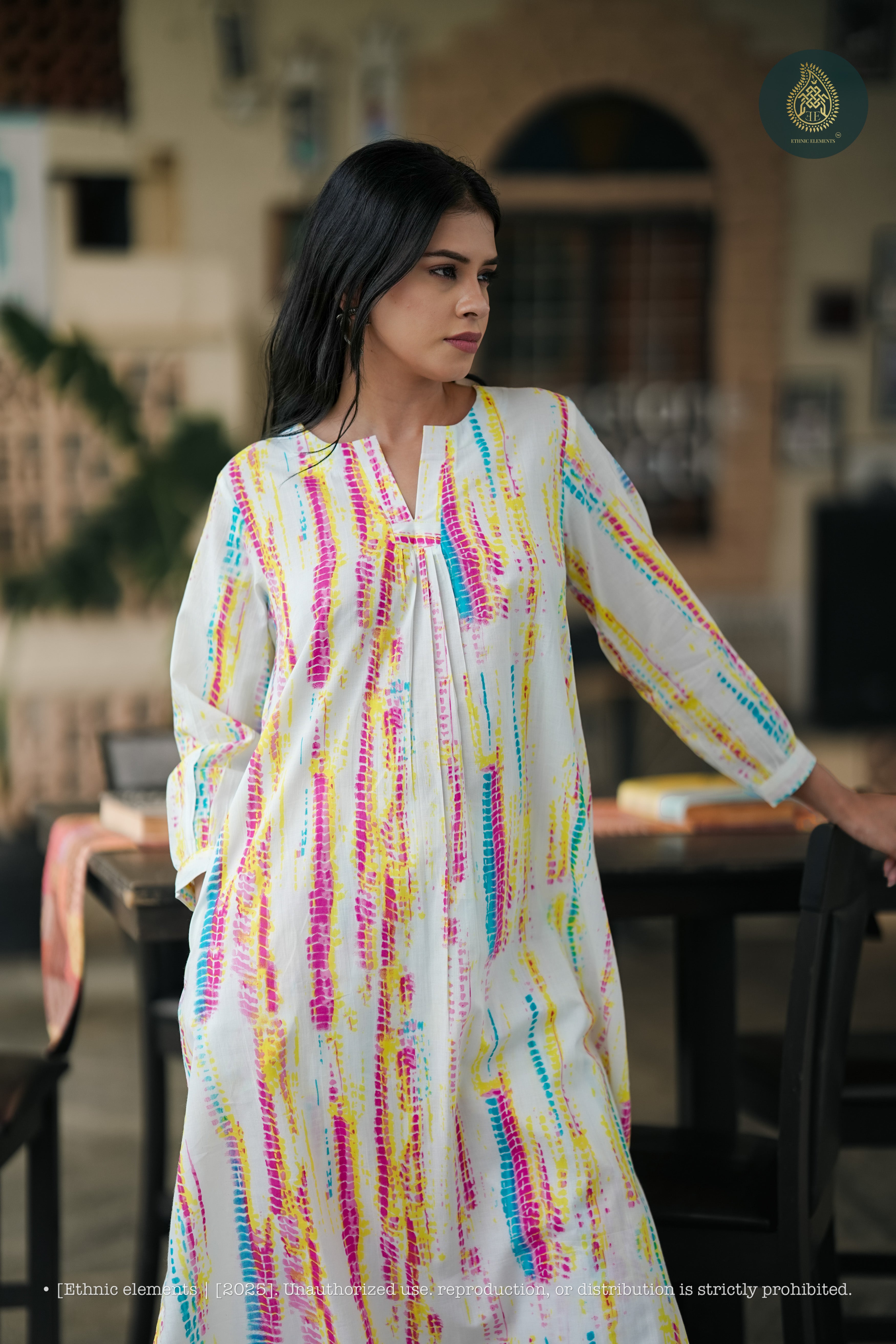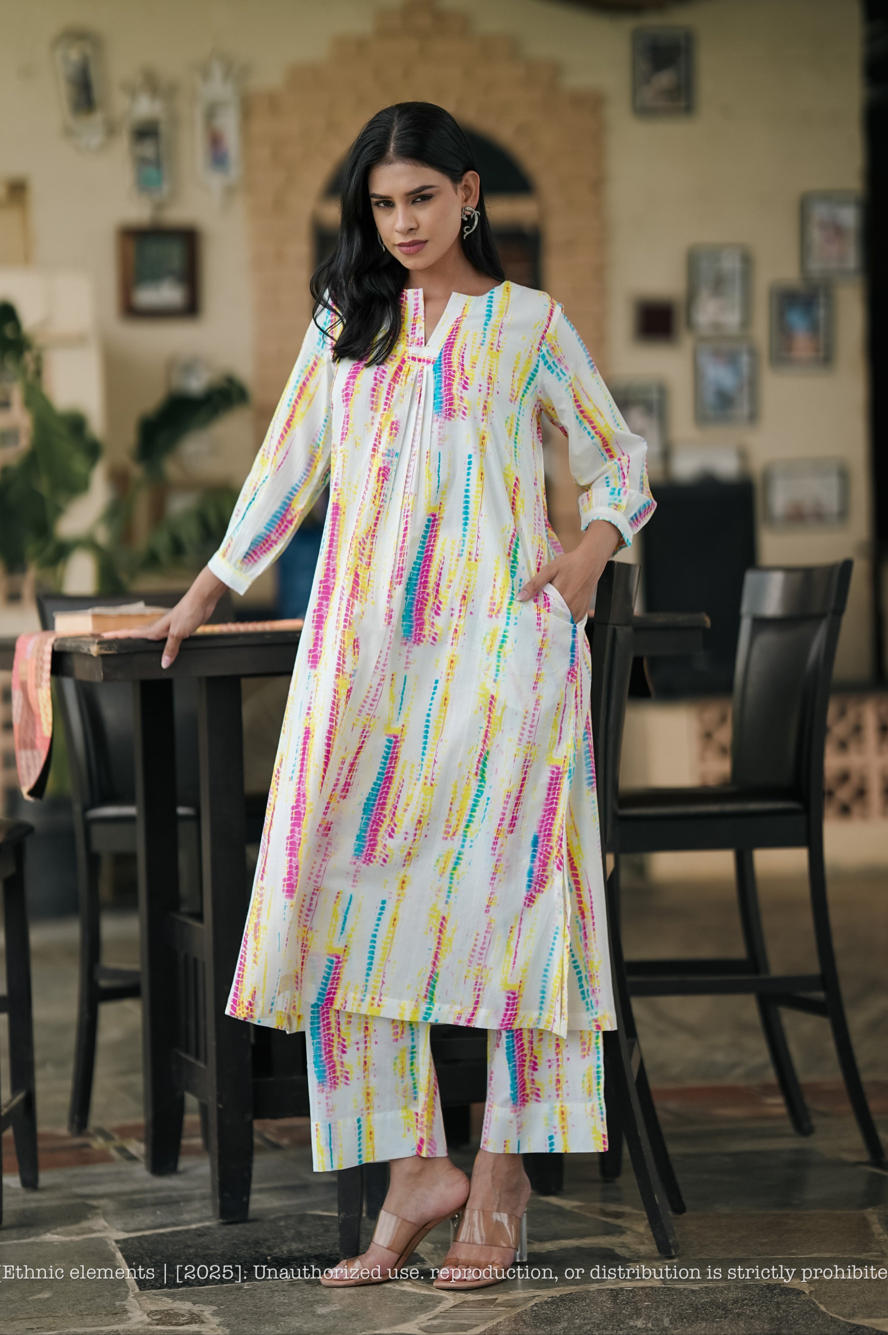 Step into the vibrant charm of this colourful Leheriya tie and dye cotton kurta set—a playful yet elegant take on everyday dressing. Crafted in breathable handwoven cotton, the kurta features a relaxed straight fit with soft gathers at the neckline, while lively prints in cheerful hues add personality and energy to your look. Paired with matching straight-fit pants, this set ensures all-day comfort while keeping a naturally poised, effortless vibe.