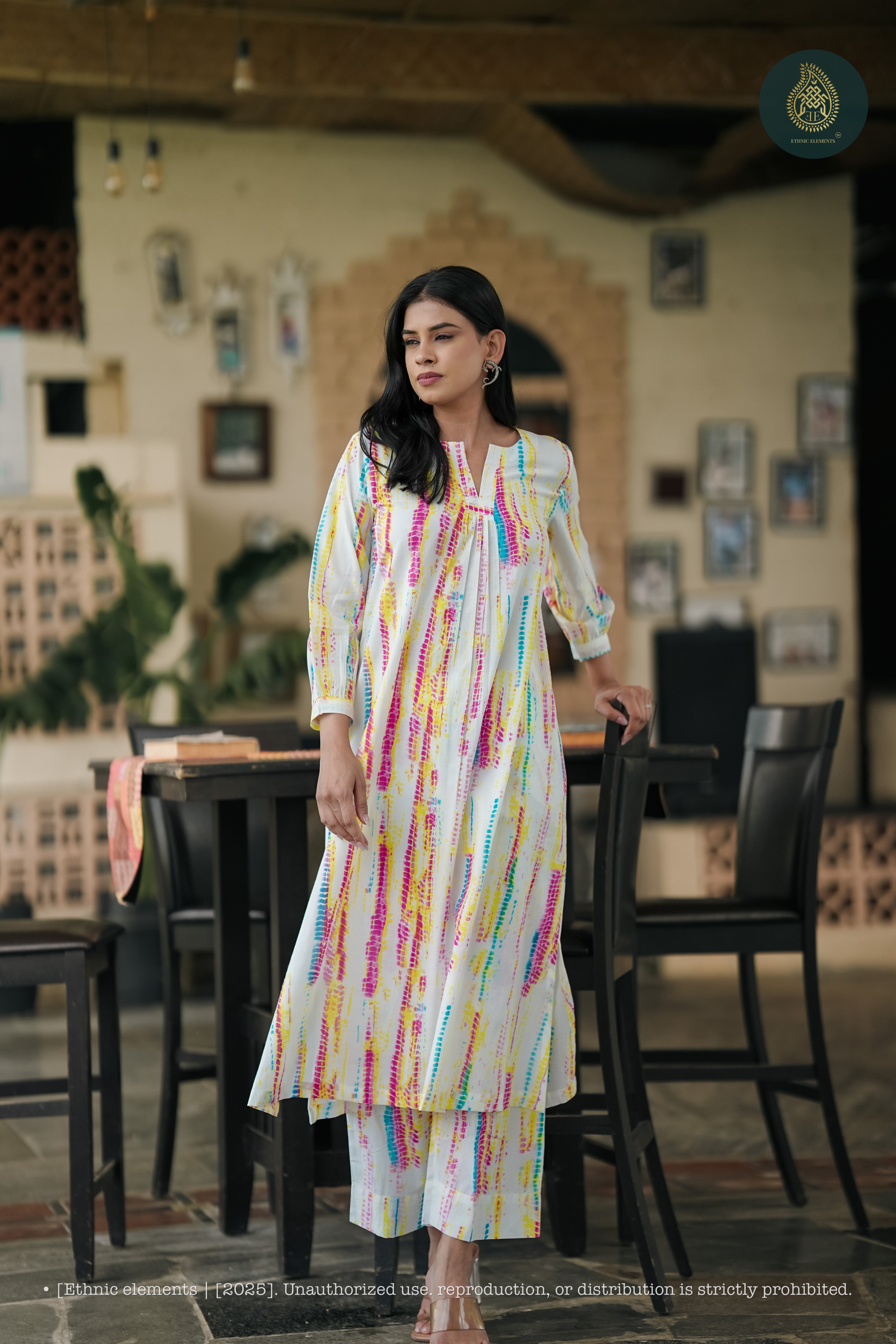Pair with oxidized jhumkas, a jute sling bag, and minimal tan sandals. Add a cotton stole in ivory or pastel for a soft, layered finish. Ideal for market strolls, sunlit brunches, or breezy afternoons at home.