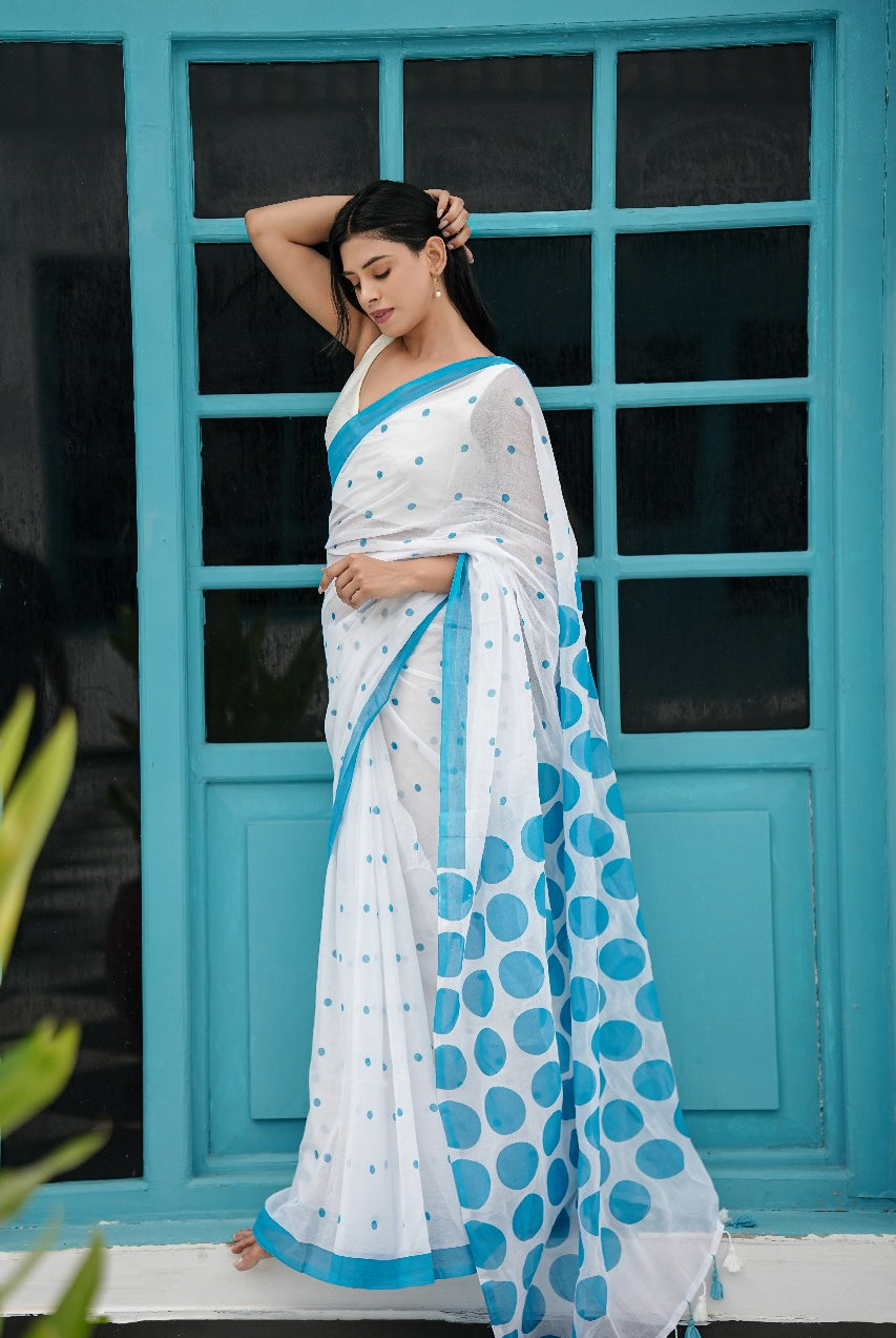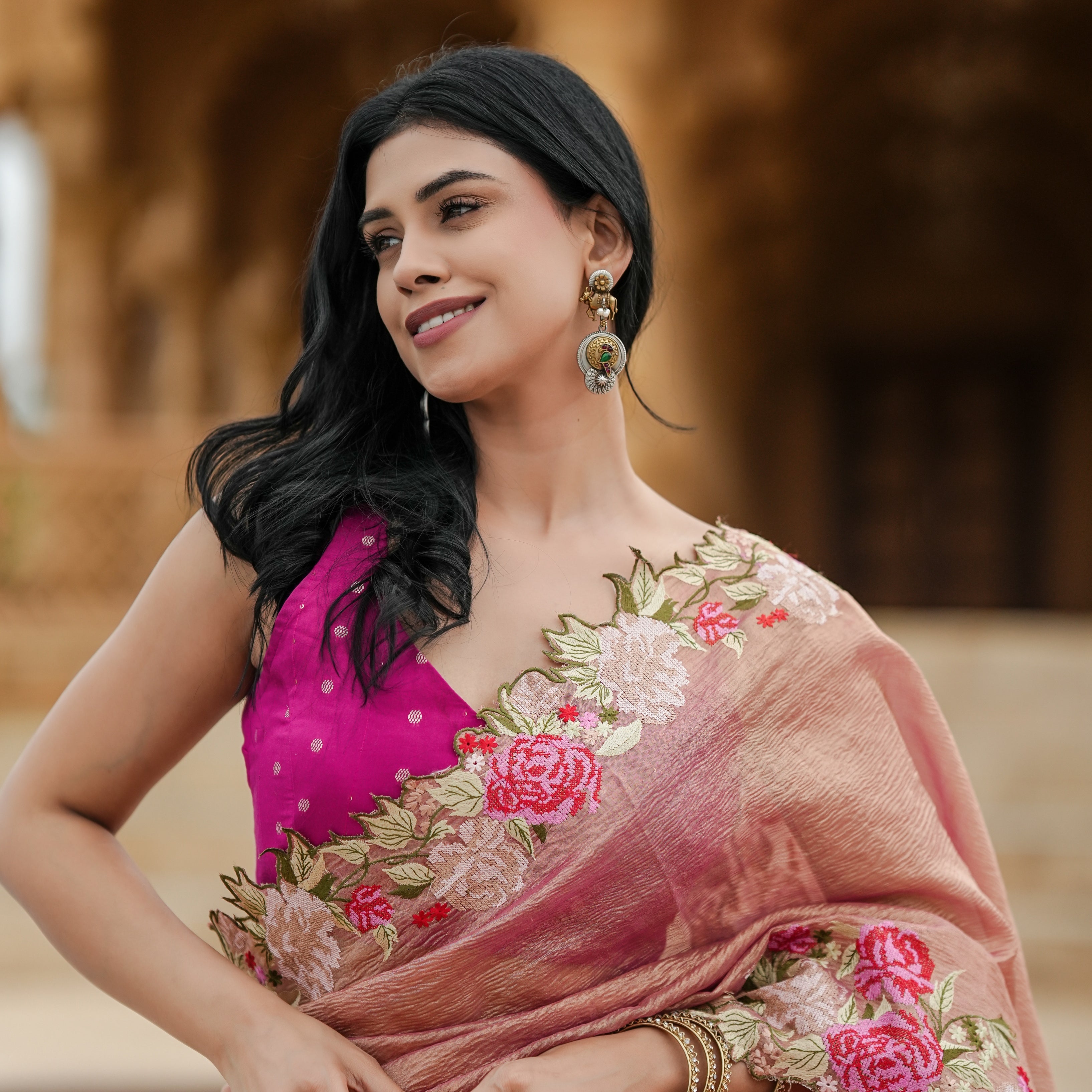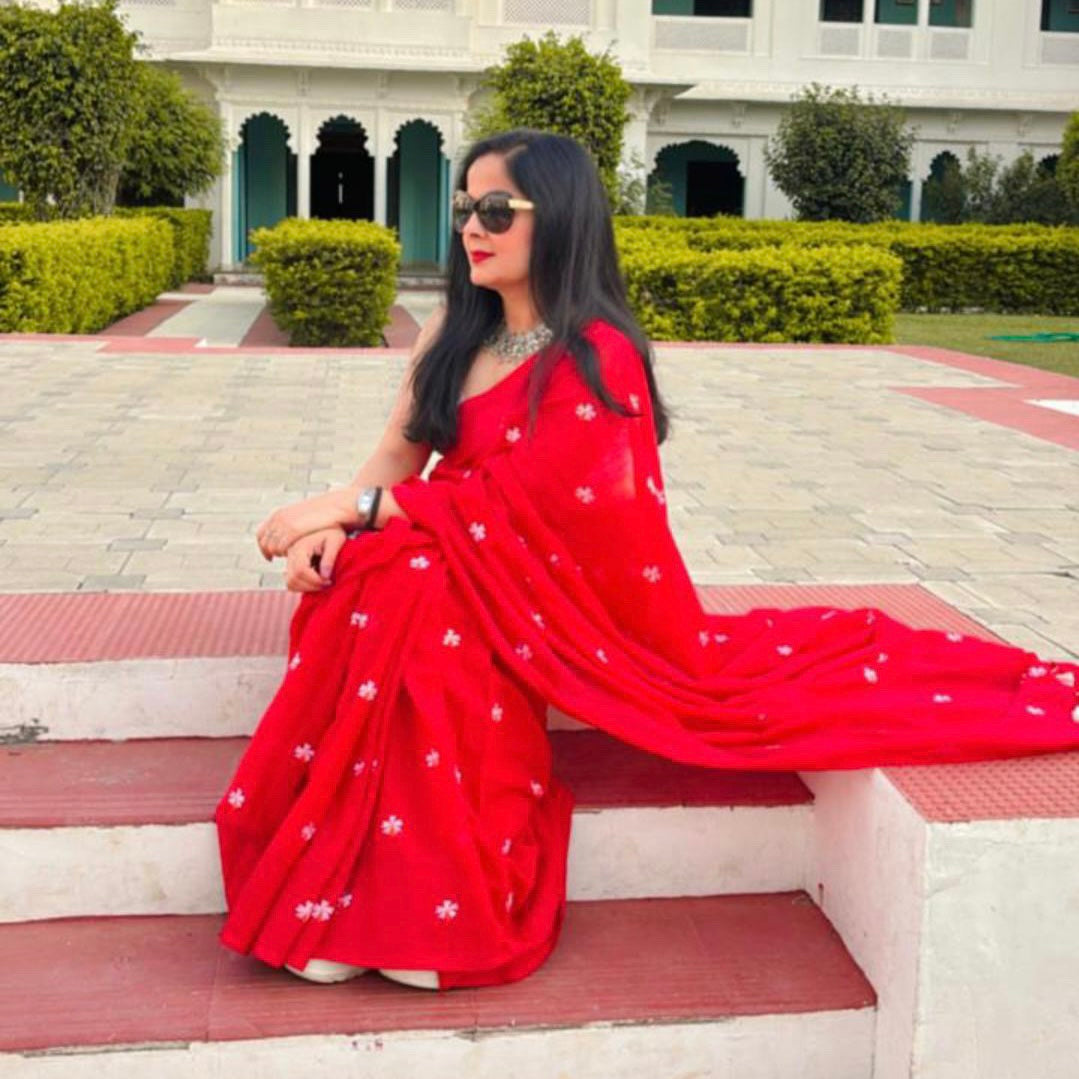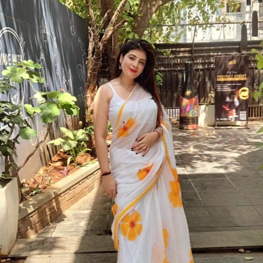 This saree is pure joy! The color is so fresh and vibrant, and the fabric feels light and breezy-perfect for all-day wear. I love how effortlessly elegant it makes me feel, whether I’m outdoors or at a casual gathering.