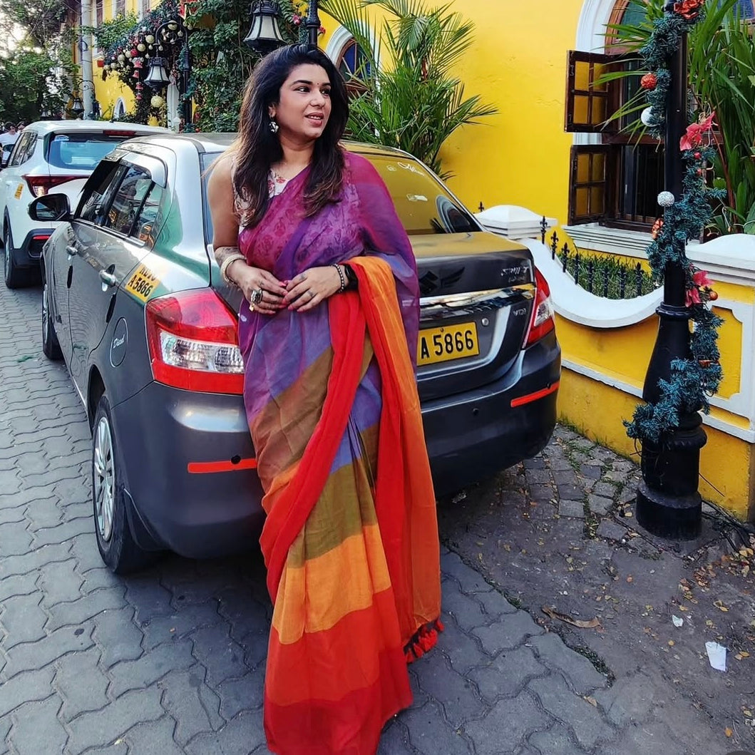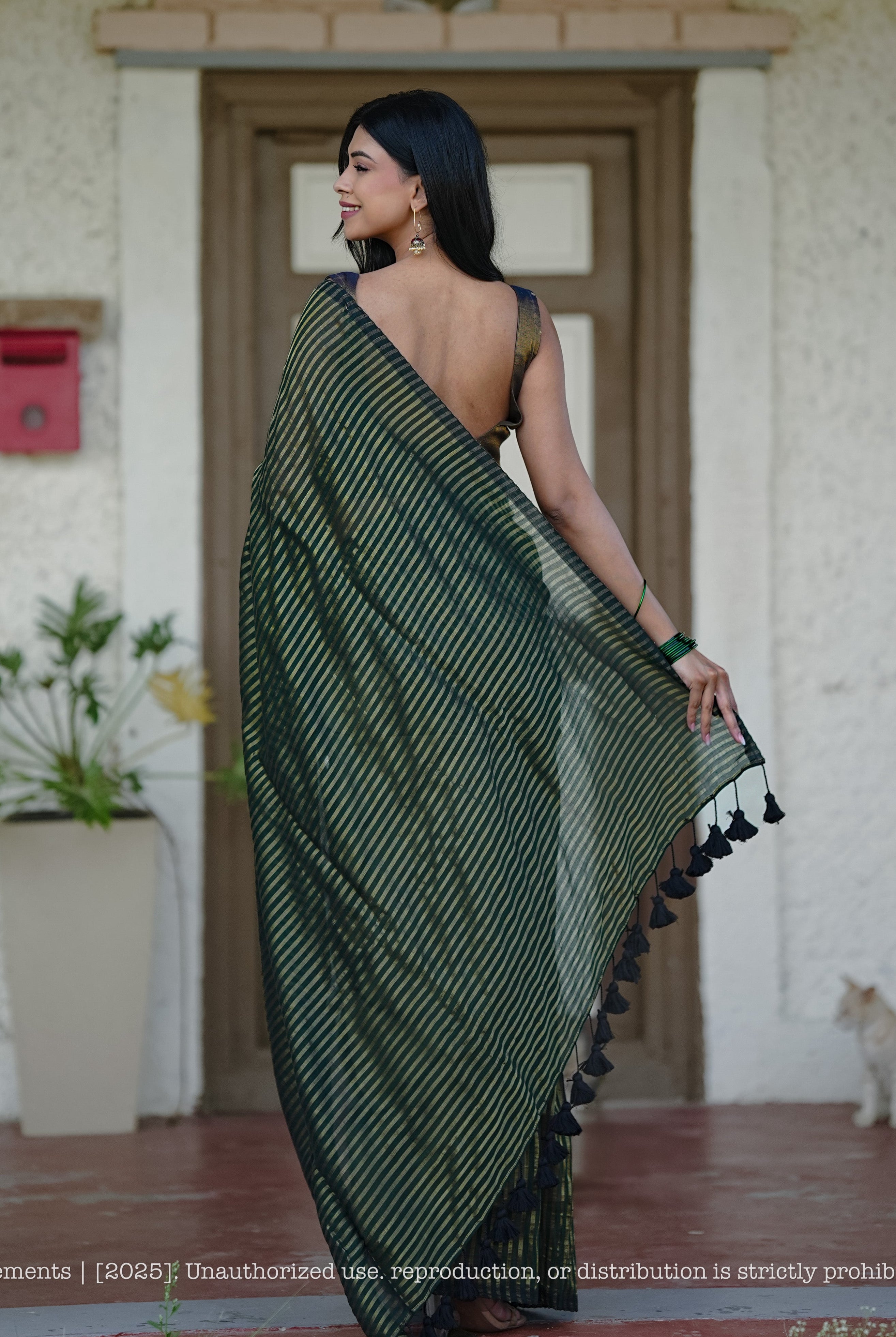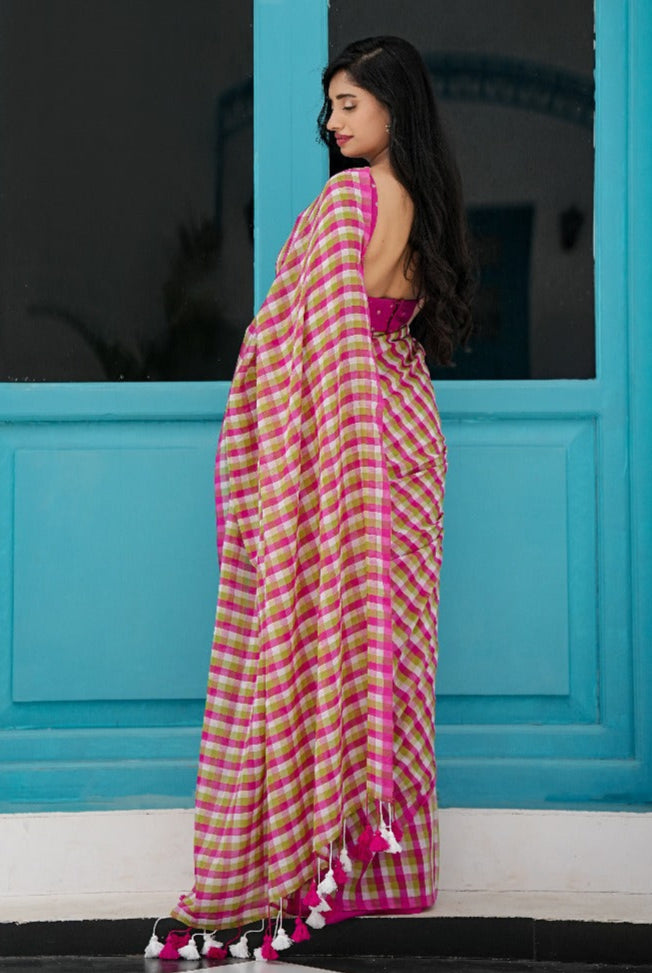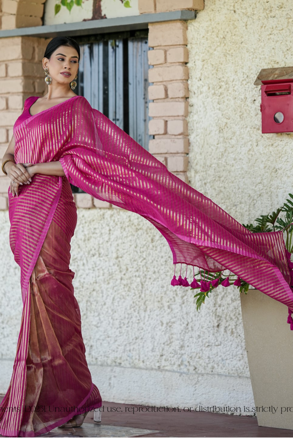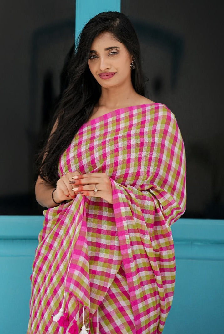 This saree is pure joy! The color is so fresh and vibrant, and the fabric feels light and breezy-perfect for all-day wear. I love how effortlessly elegant it makes me feel, whether I’m outdoors or at a casual gathering.