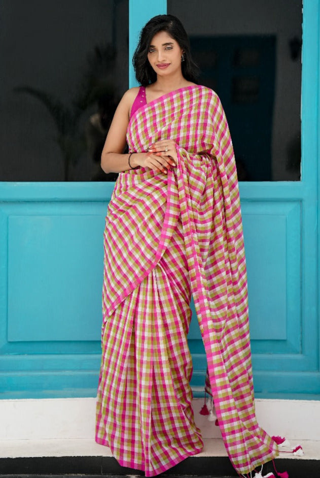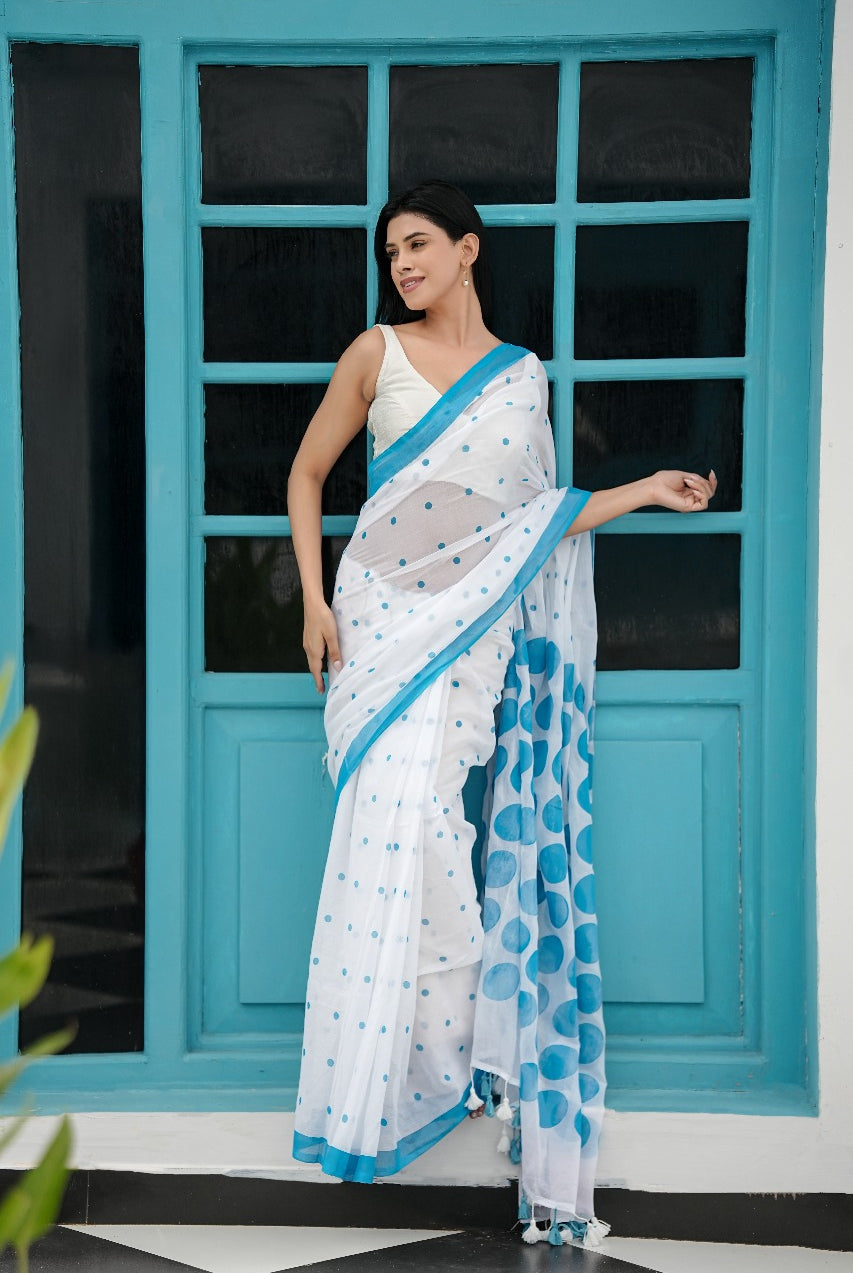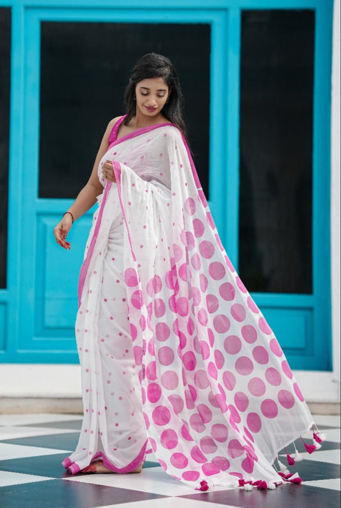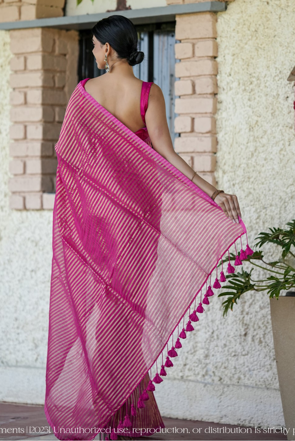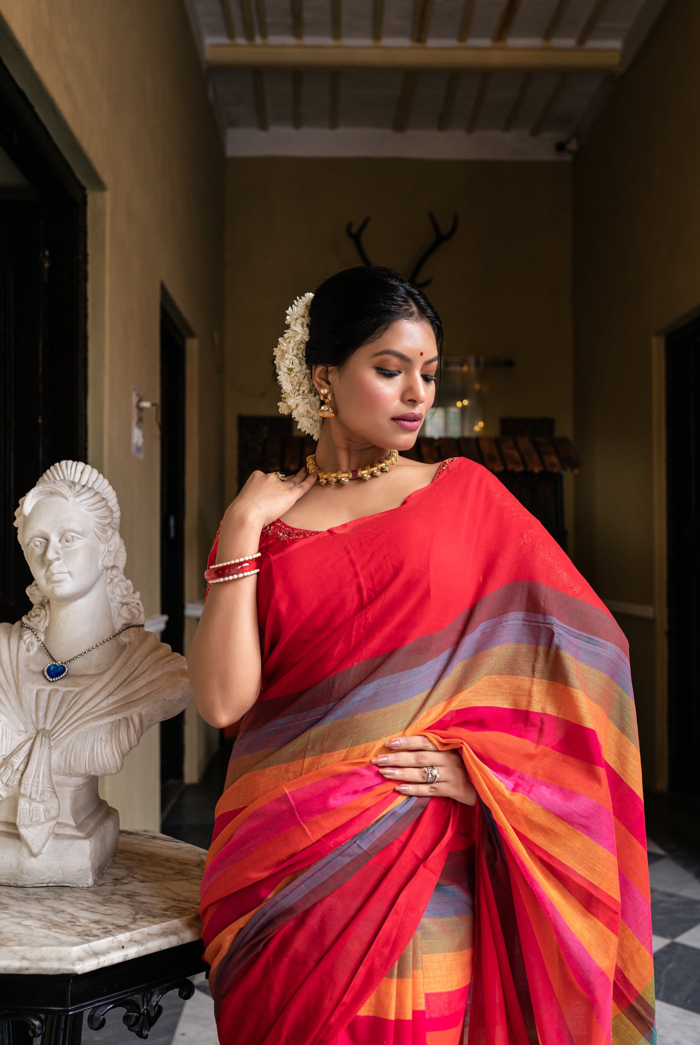 This saree is pure joy! The color is so fresh and vibrant, and the fabric feels light and breezy-perfect for all-day wear. I love how effortlessly elegant it makes me feel, whether I’m outdoors or at a casual gathering.