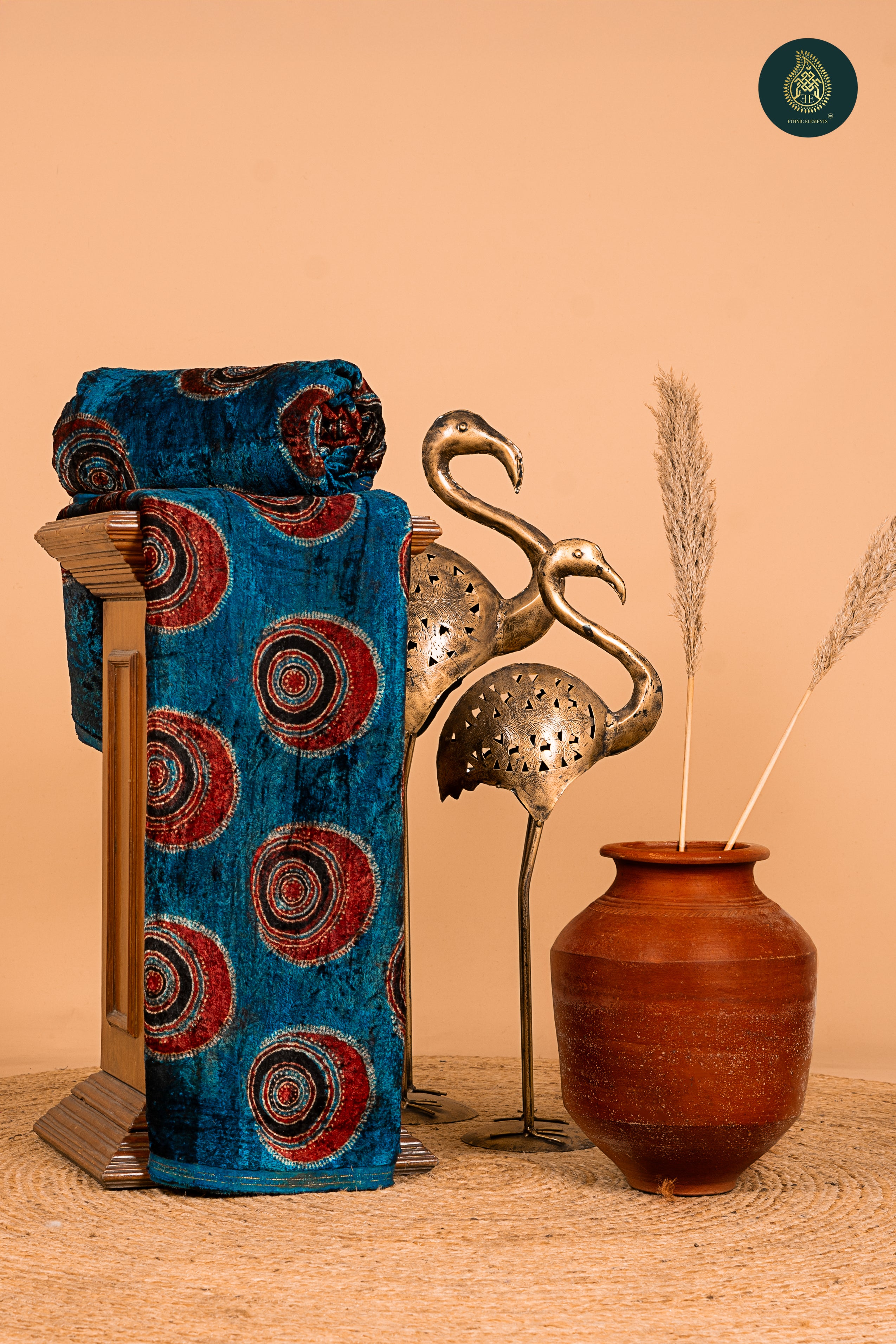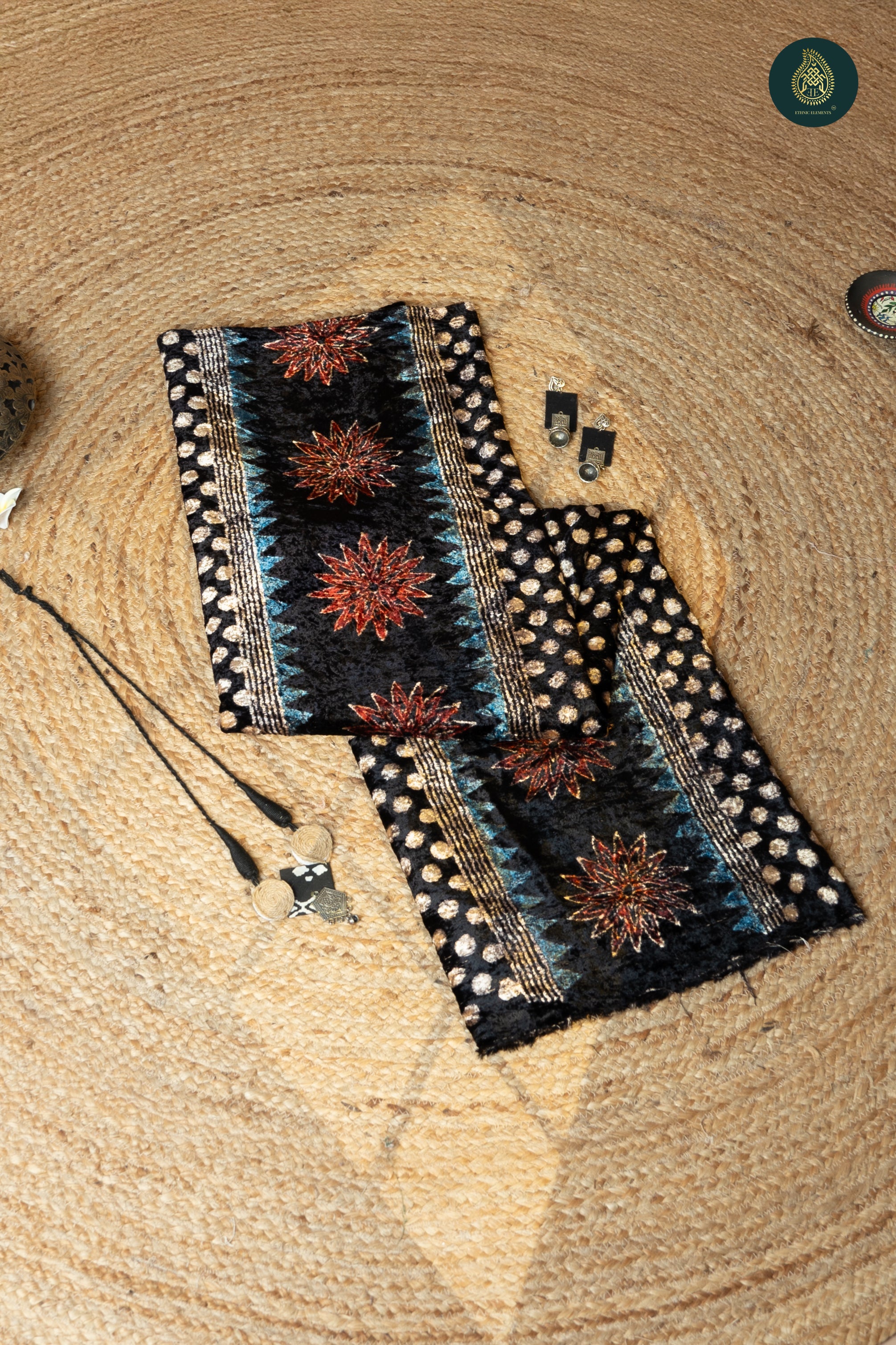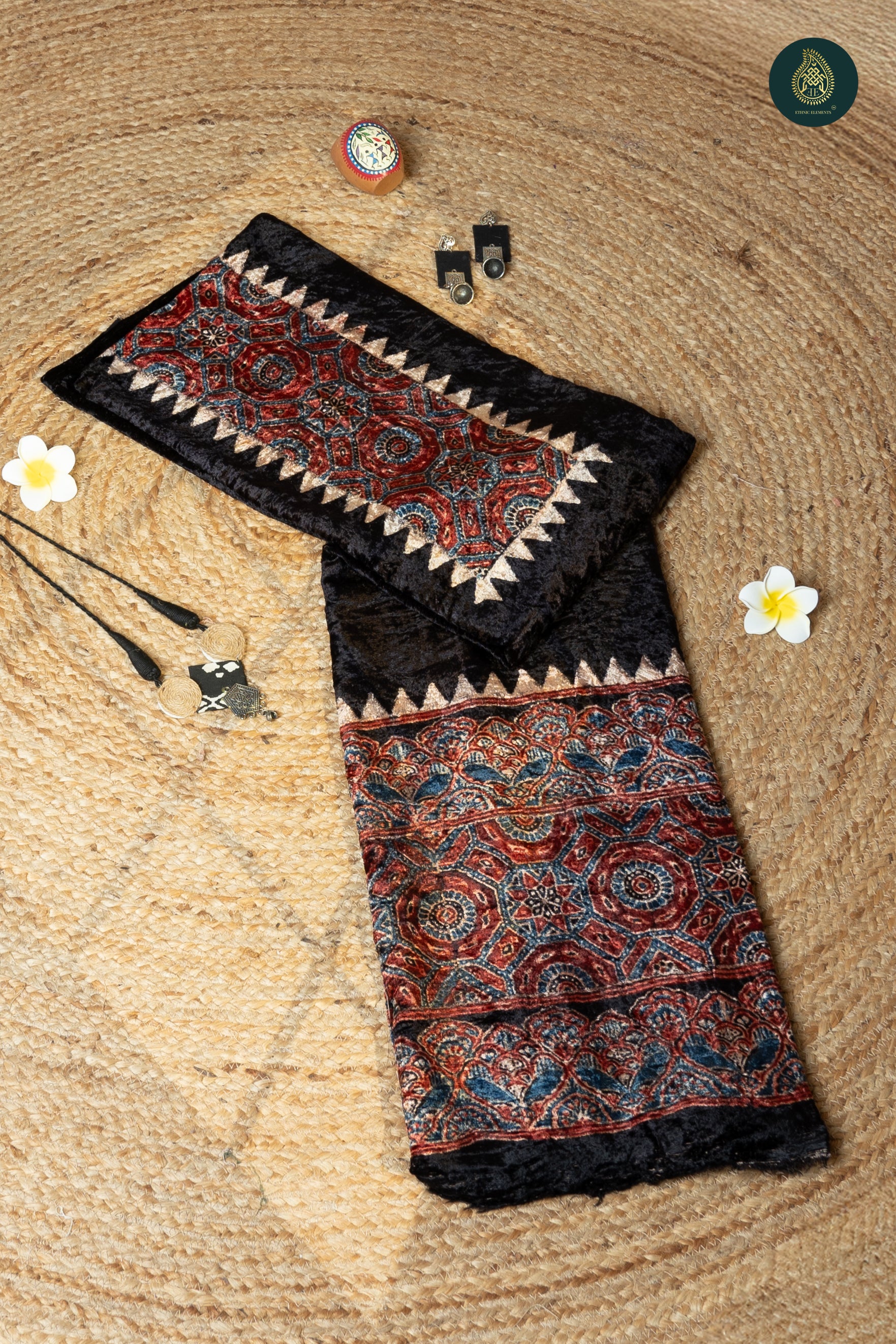 Ajrakh Velvet Anitique Flaming Pot of Passion