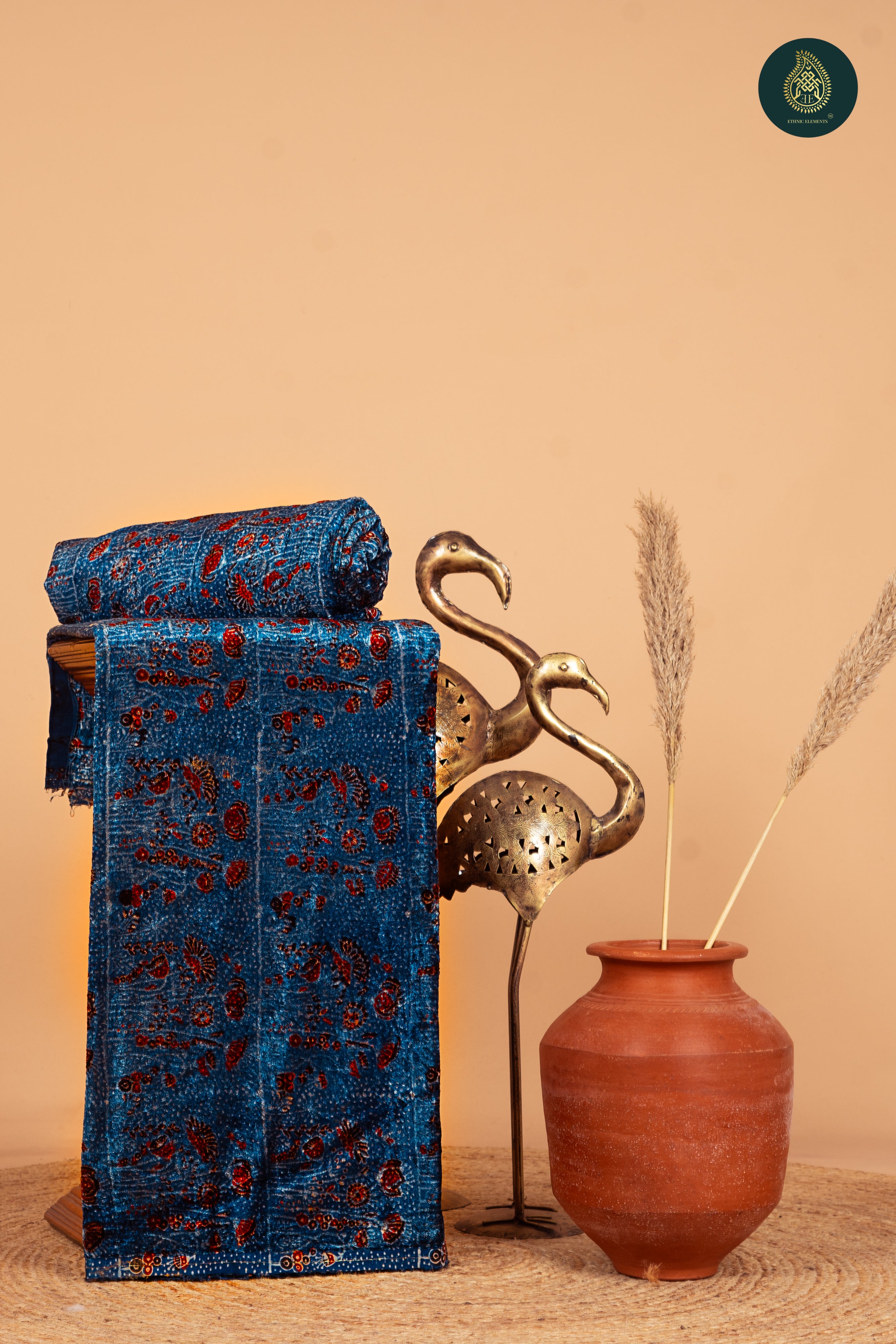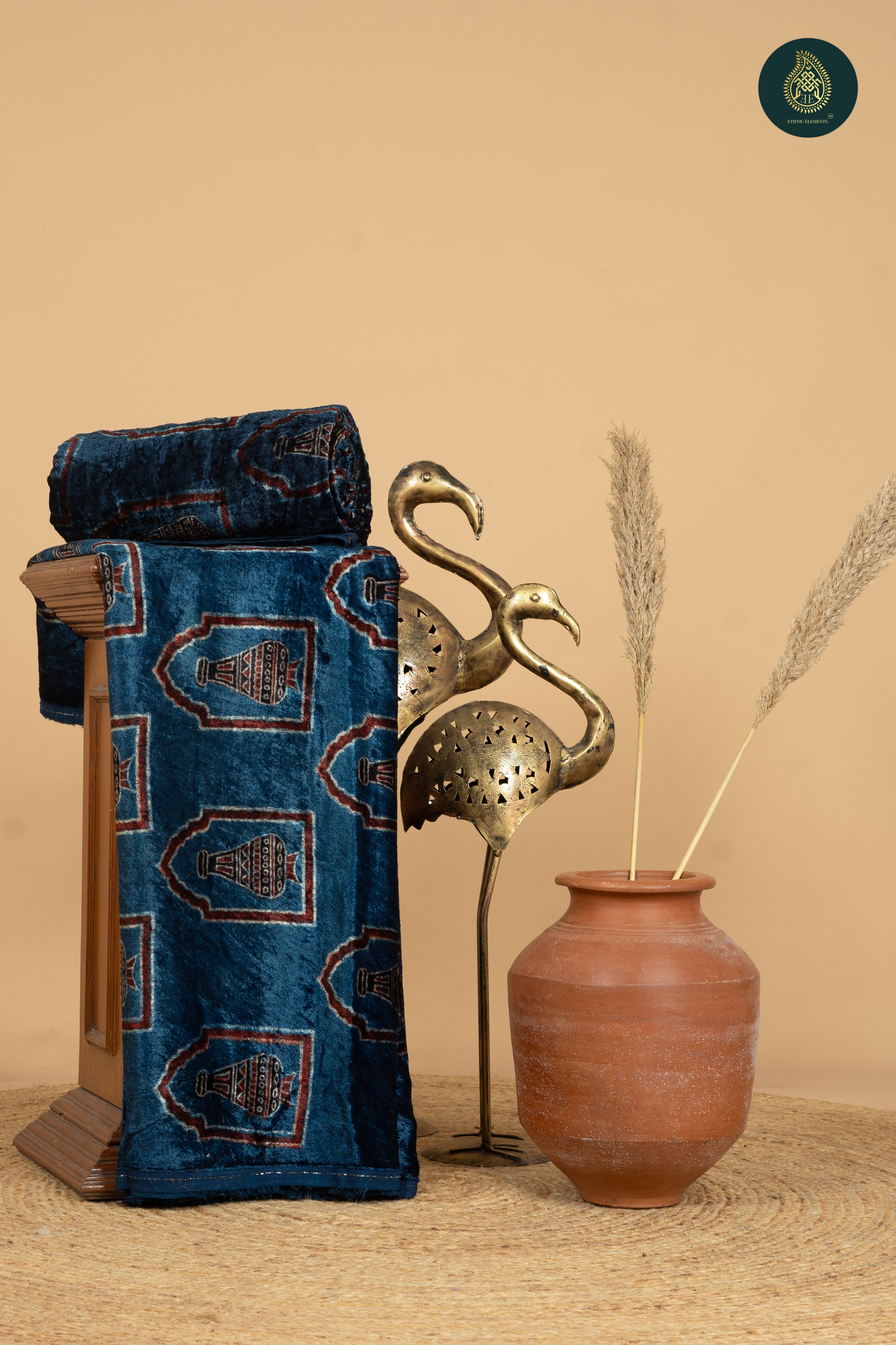 Ajrakh Velvet Anitique Brownie Blue Pot