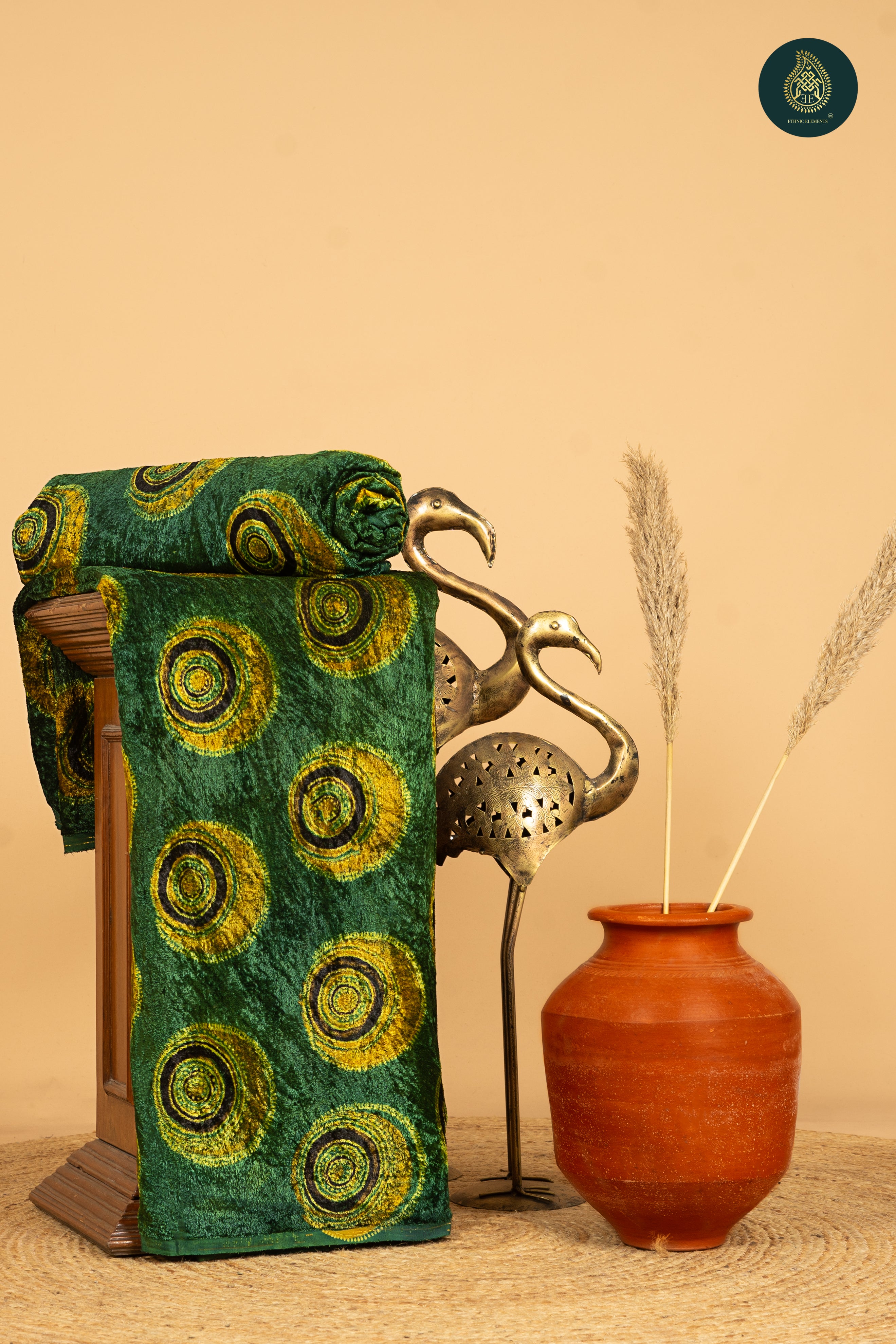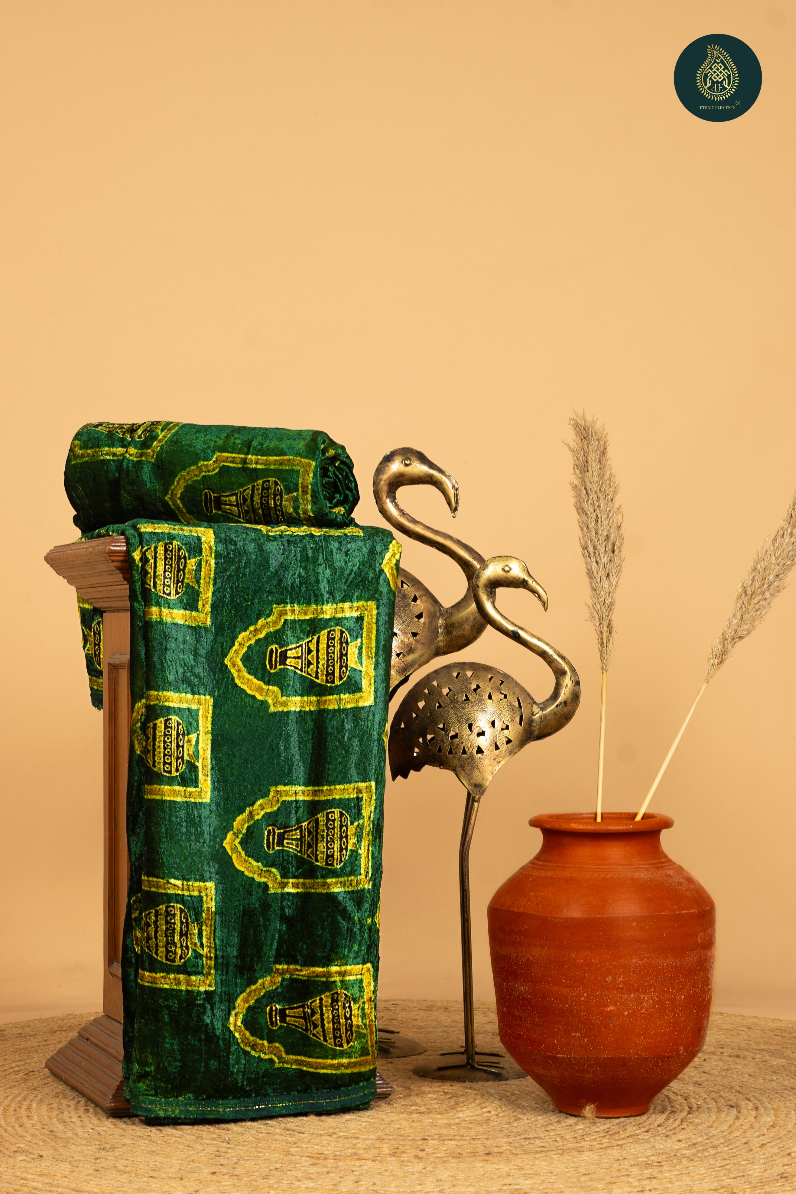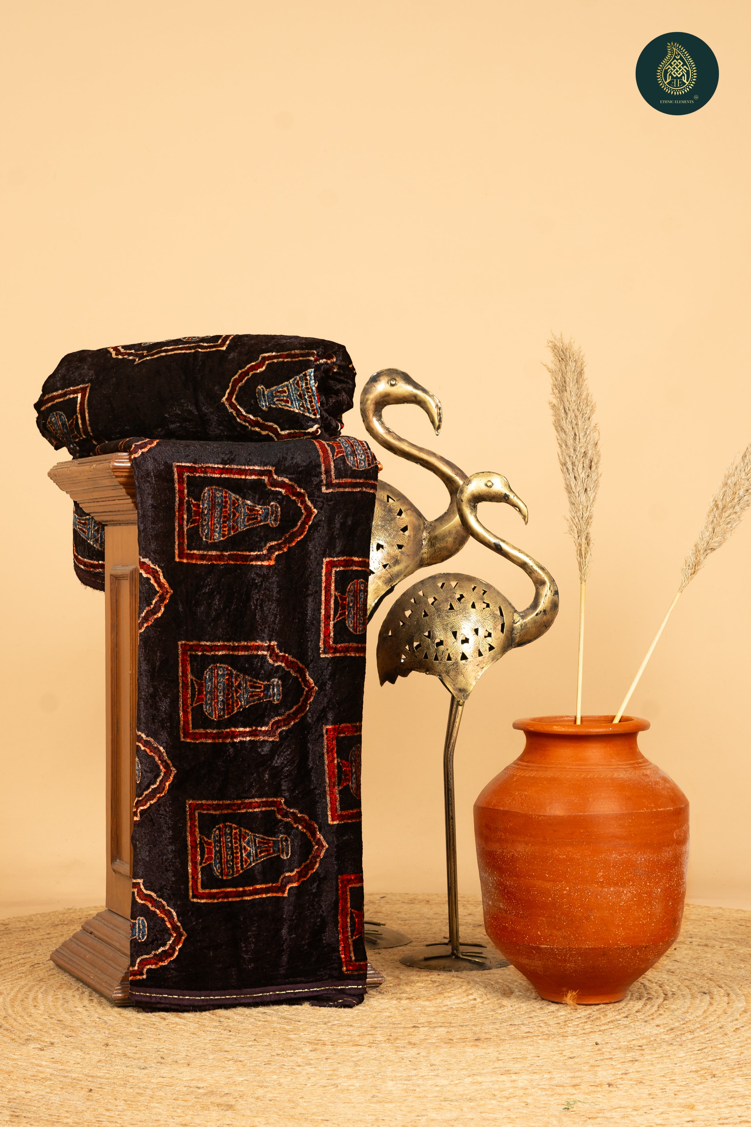 Ajrakh Velvet Anitique Verdant Pot Elegance