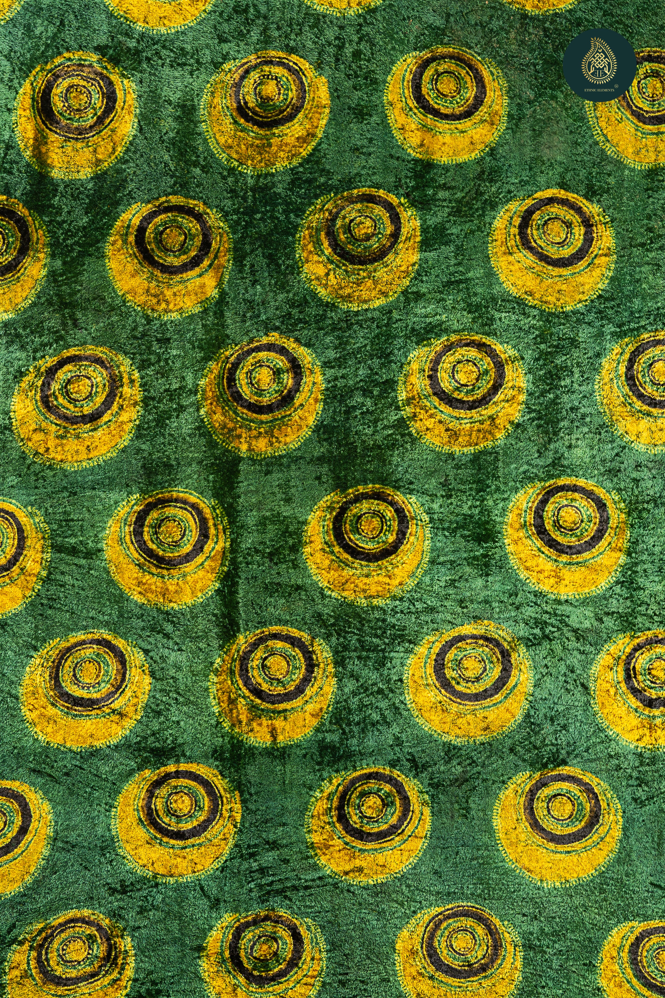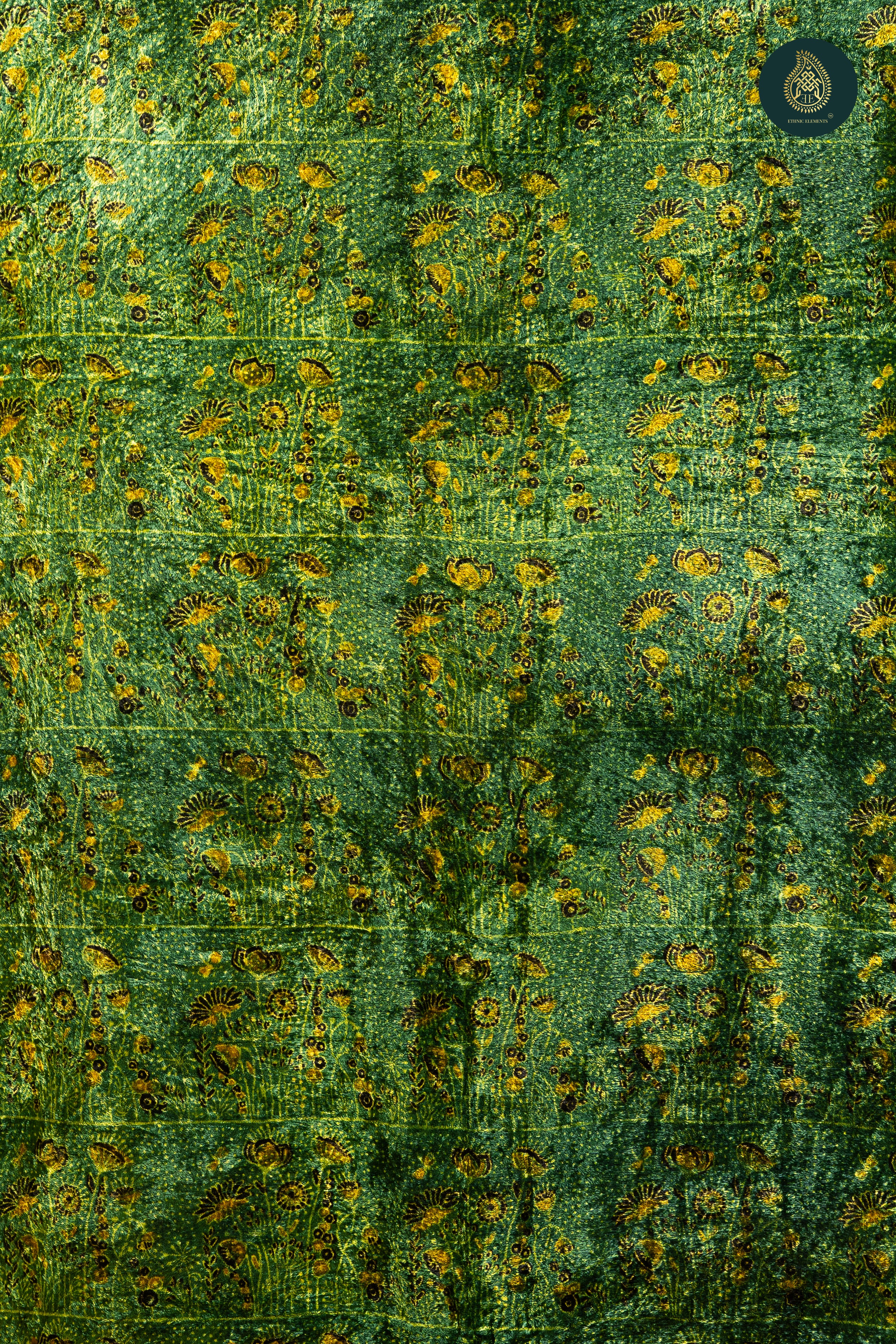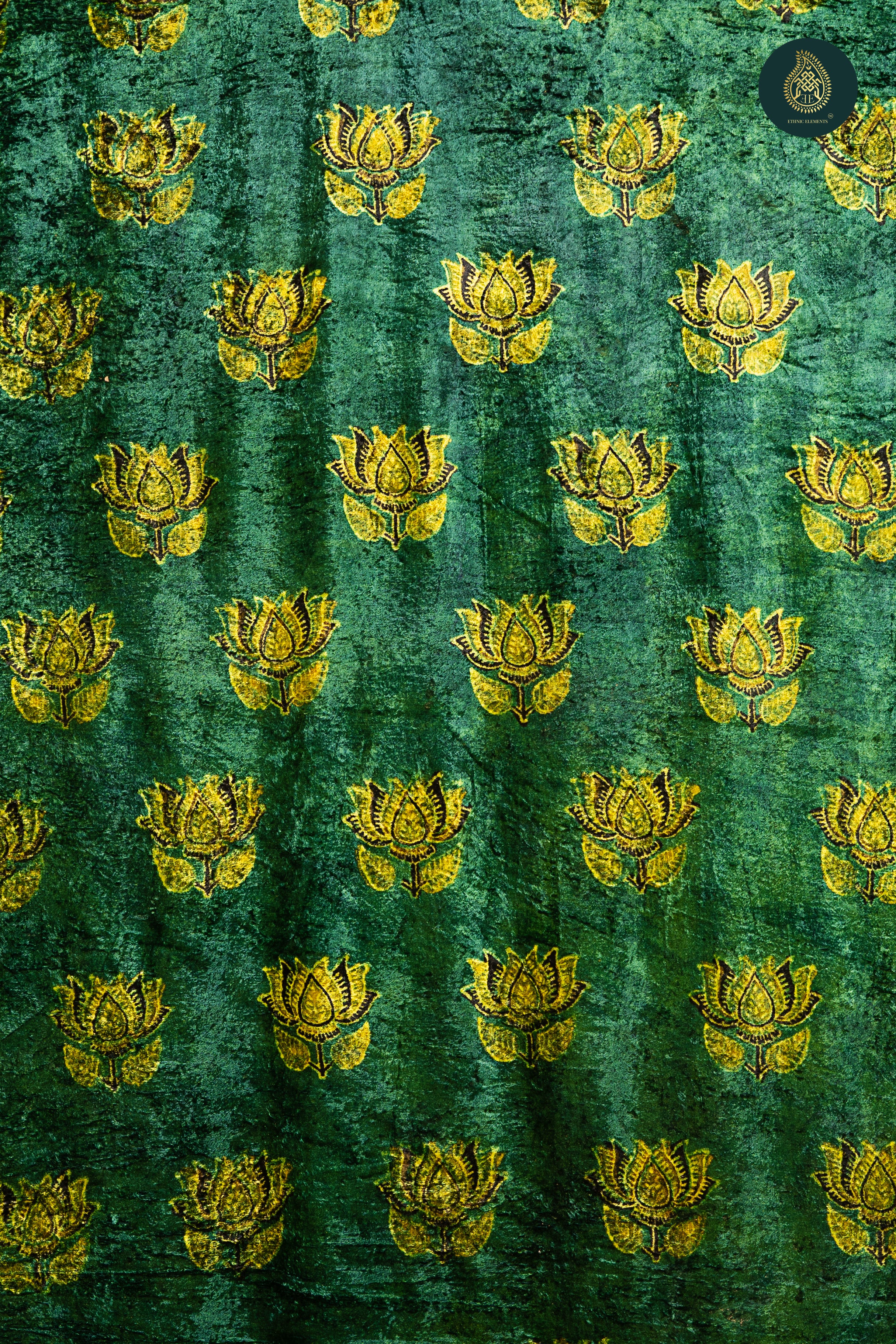Ajrakh Velvet Anitique Golden Lotus in Greenery