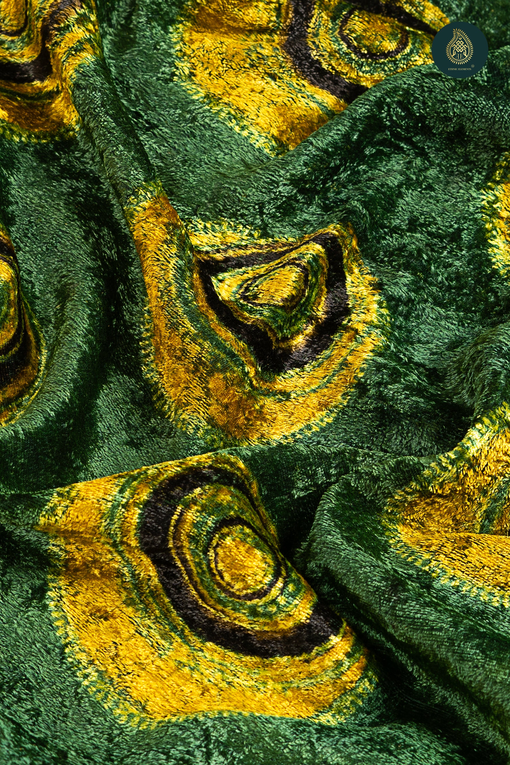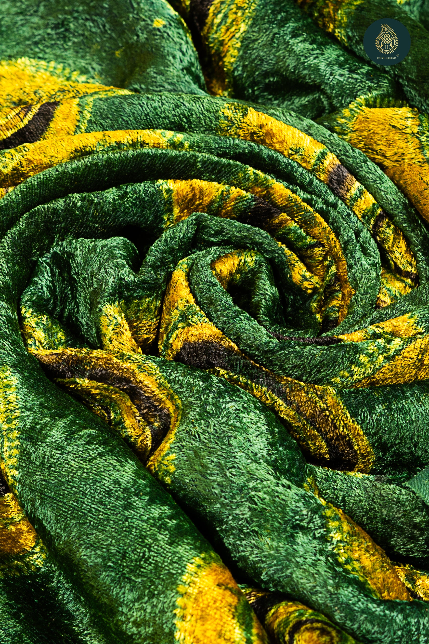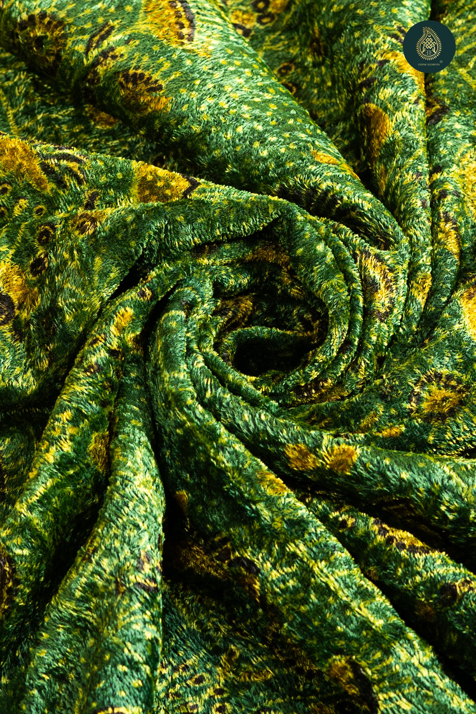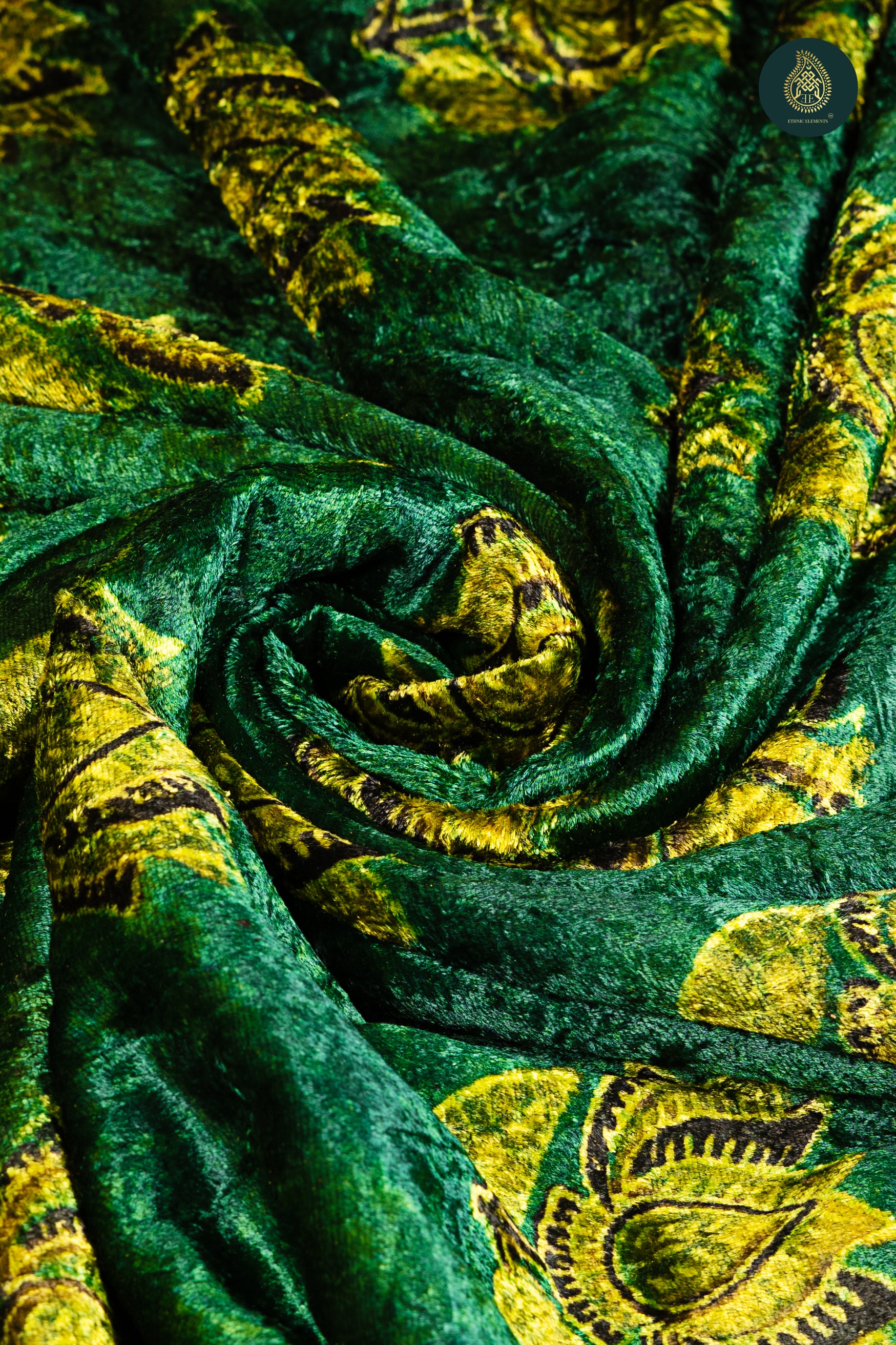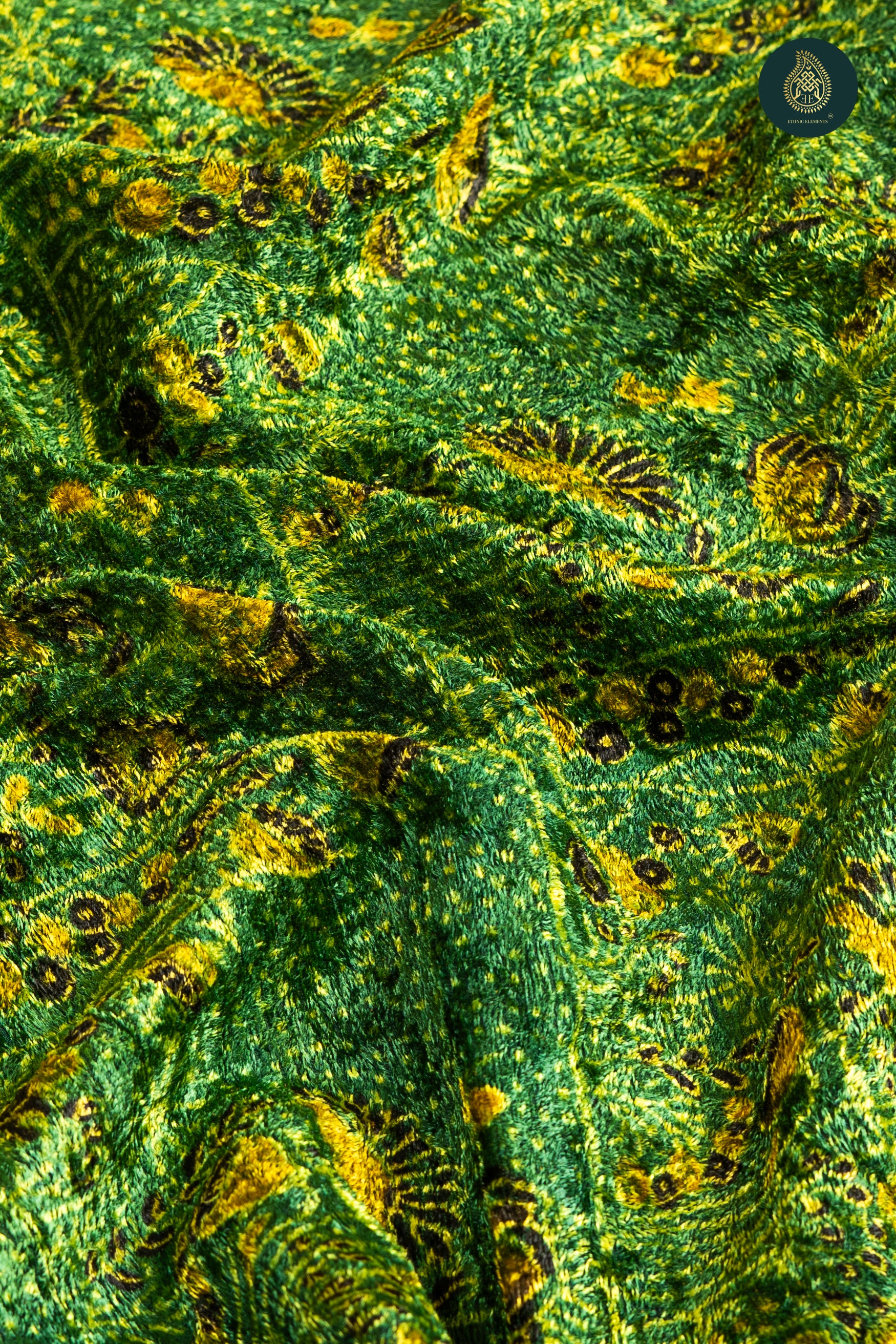 Ajrakh Velvet Anitique Feathered Green Majesty