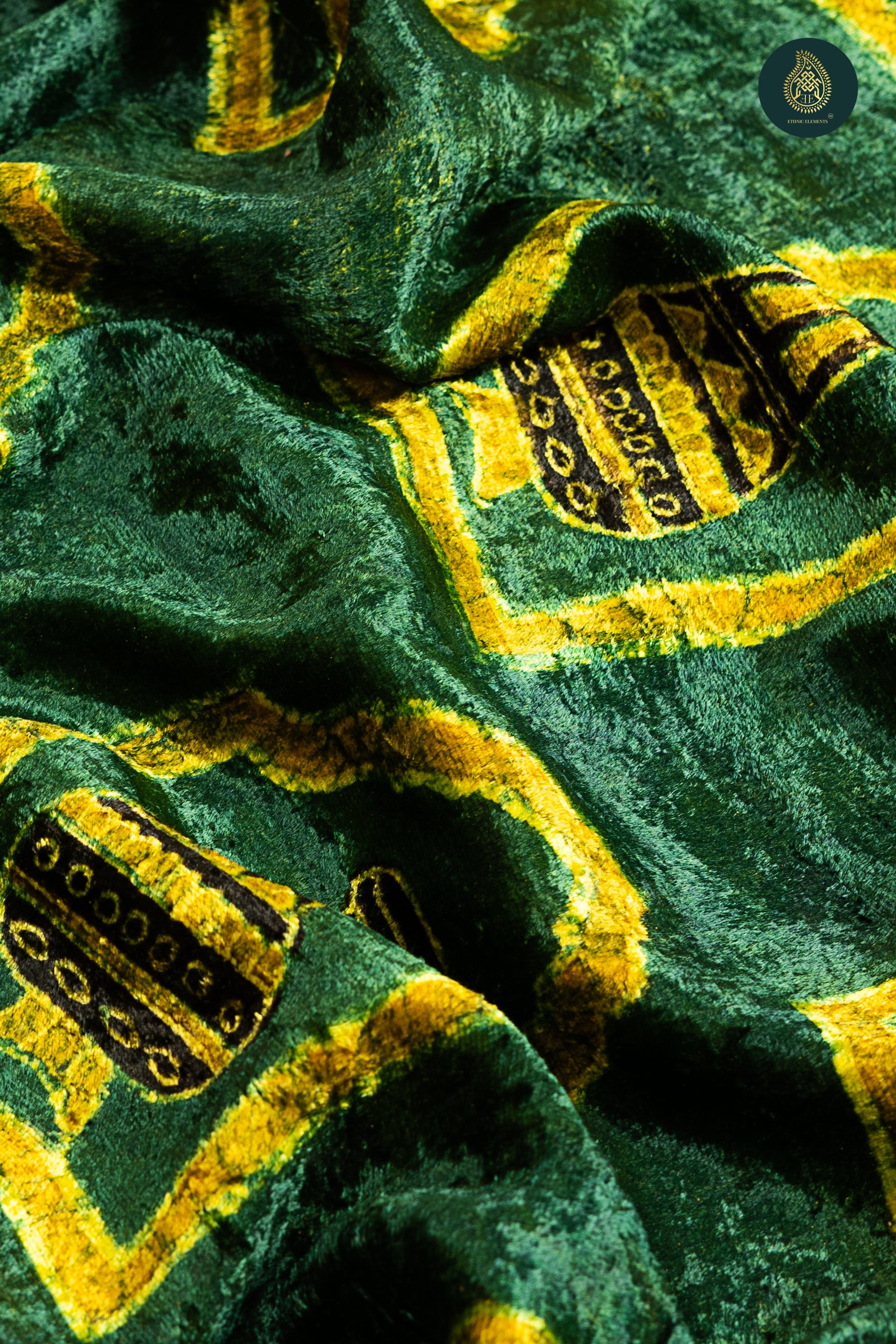 Ajrakh Velvet Anitique Green Eden Radiance