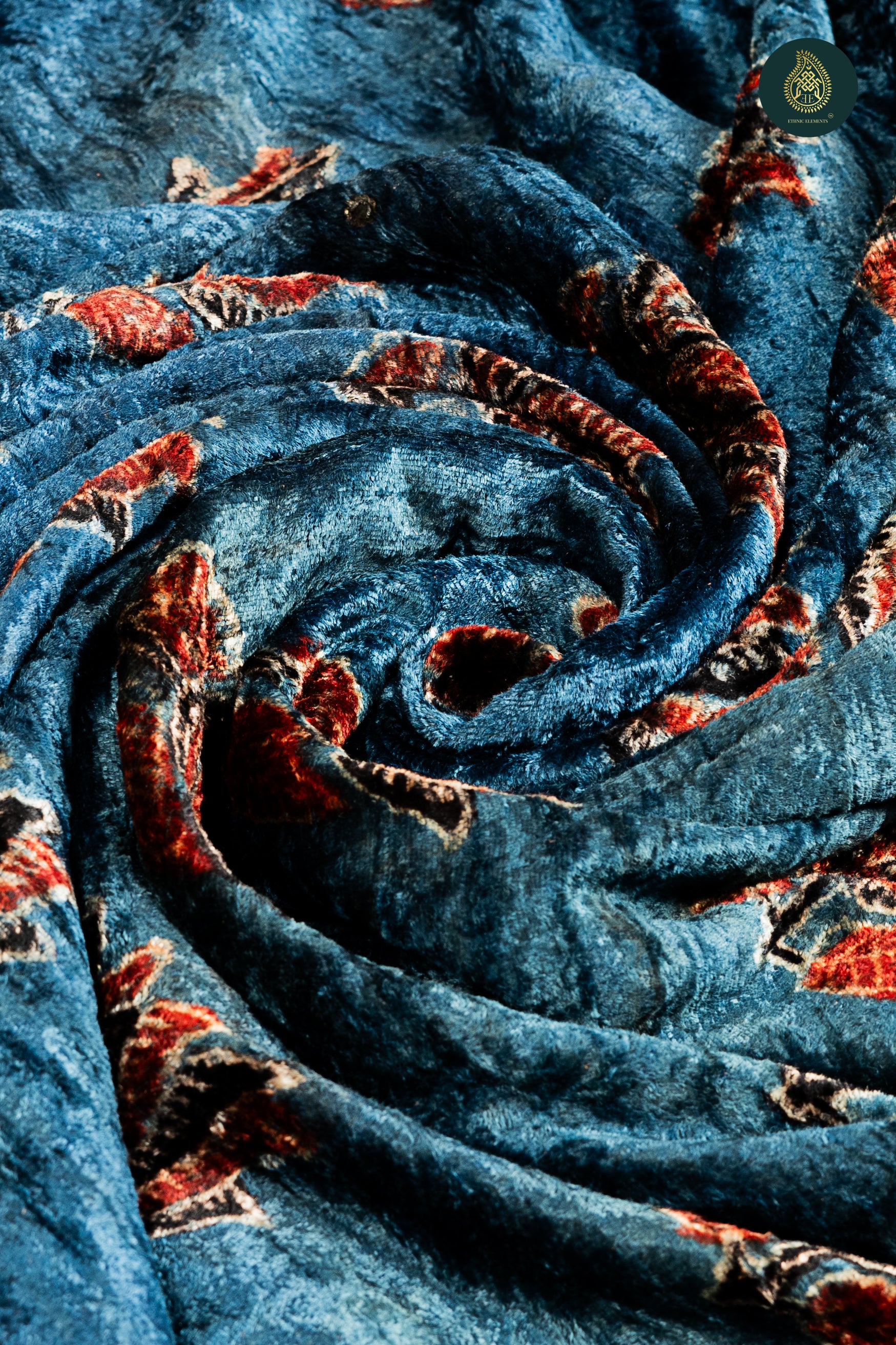 Ajrakh Velvet Anitique Floral Aquaness Harmony