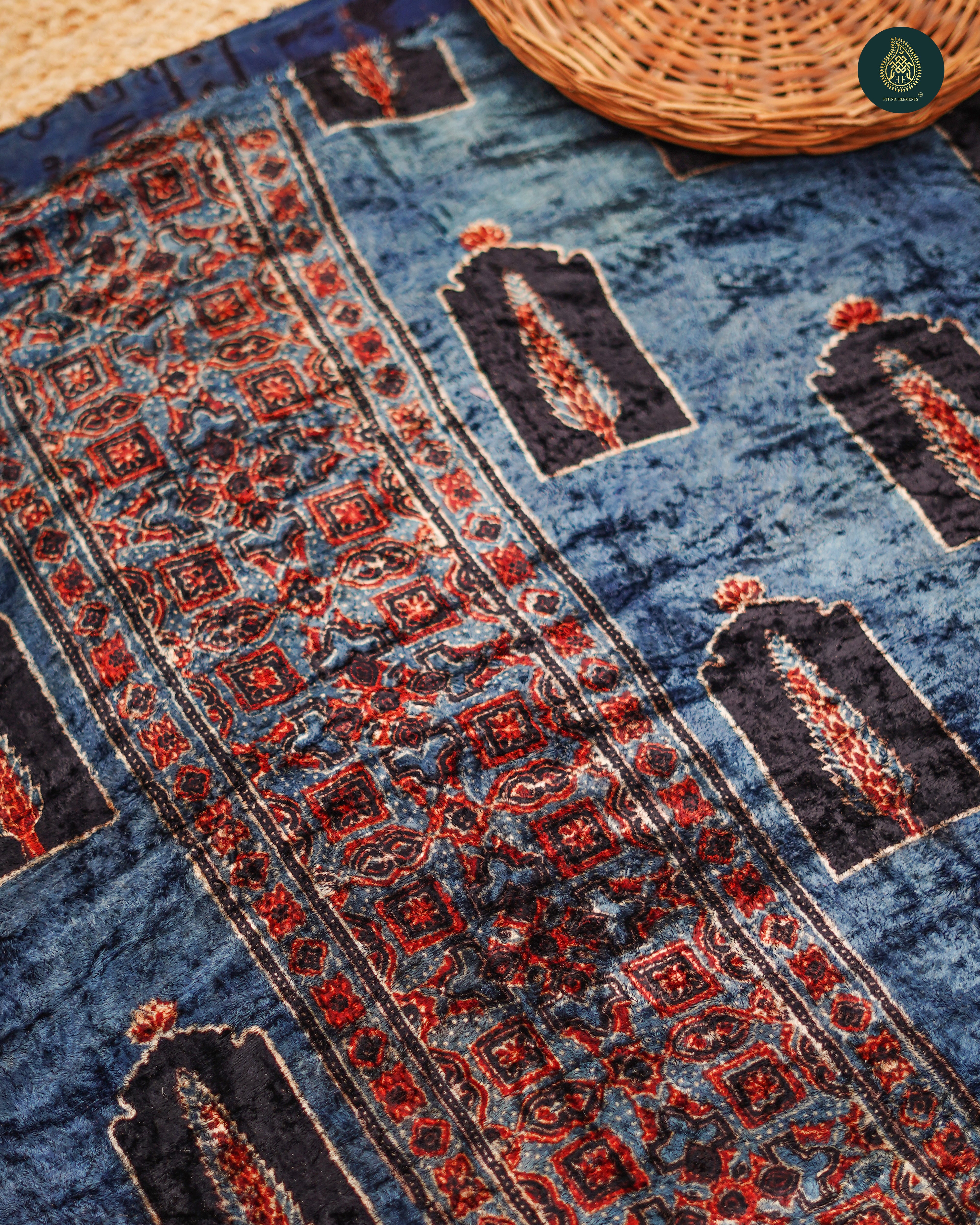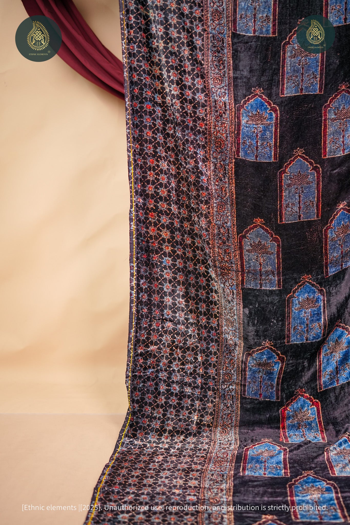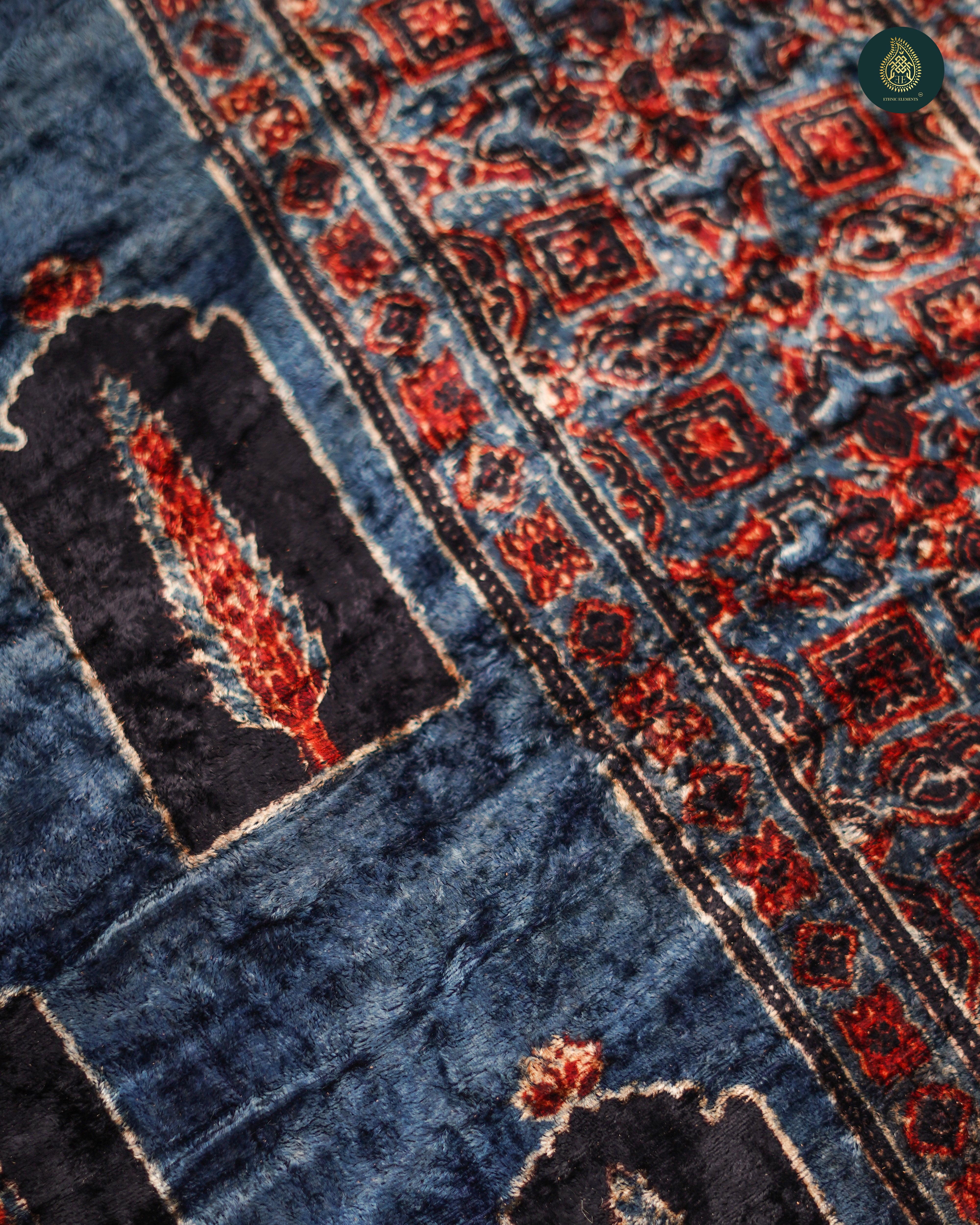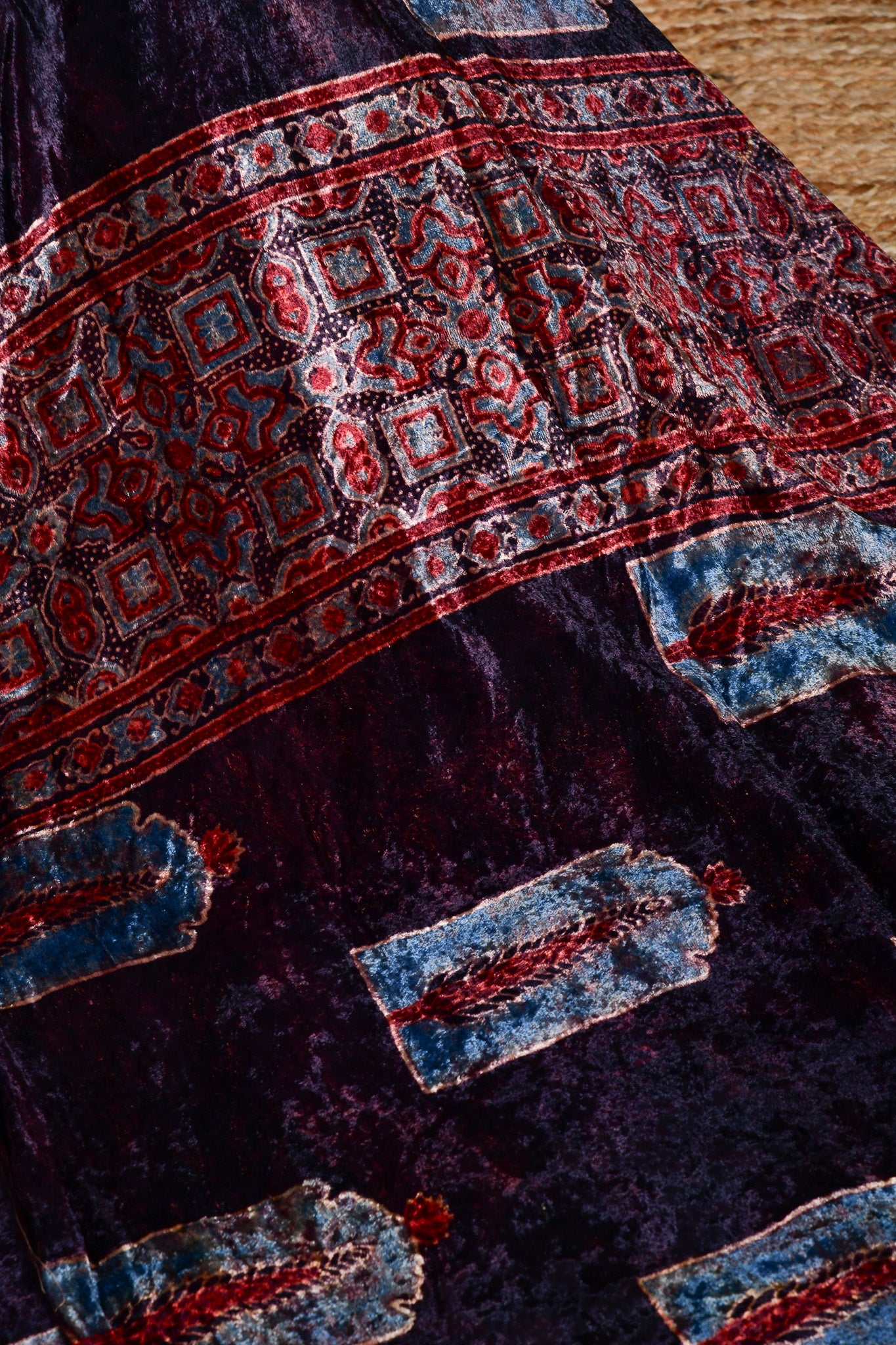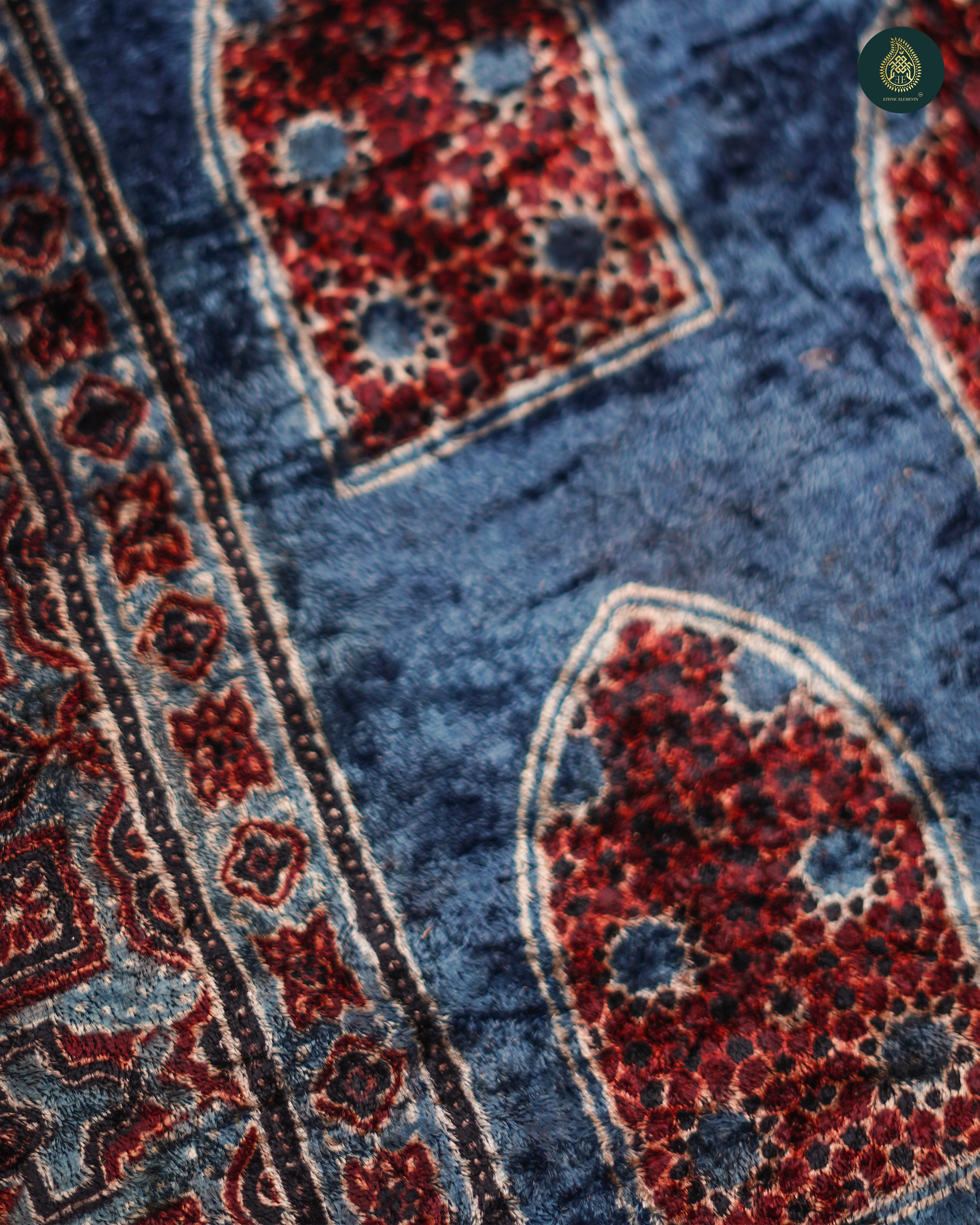 Ajrakh Velvet Anitique Sandal Sky Bloom