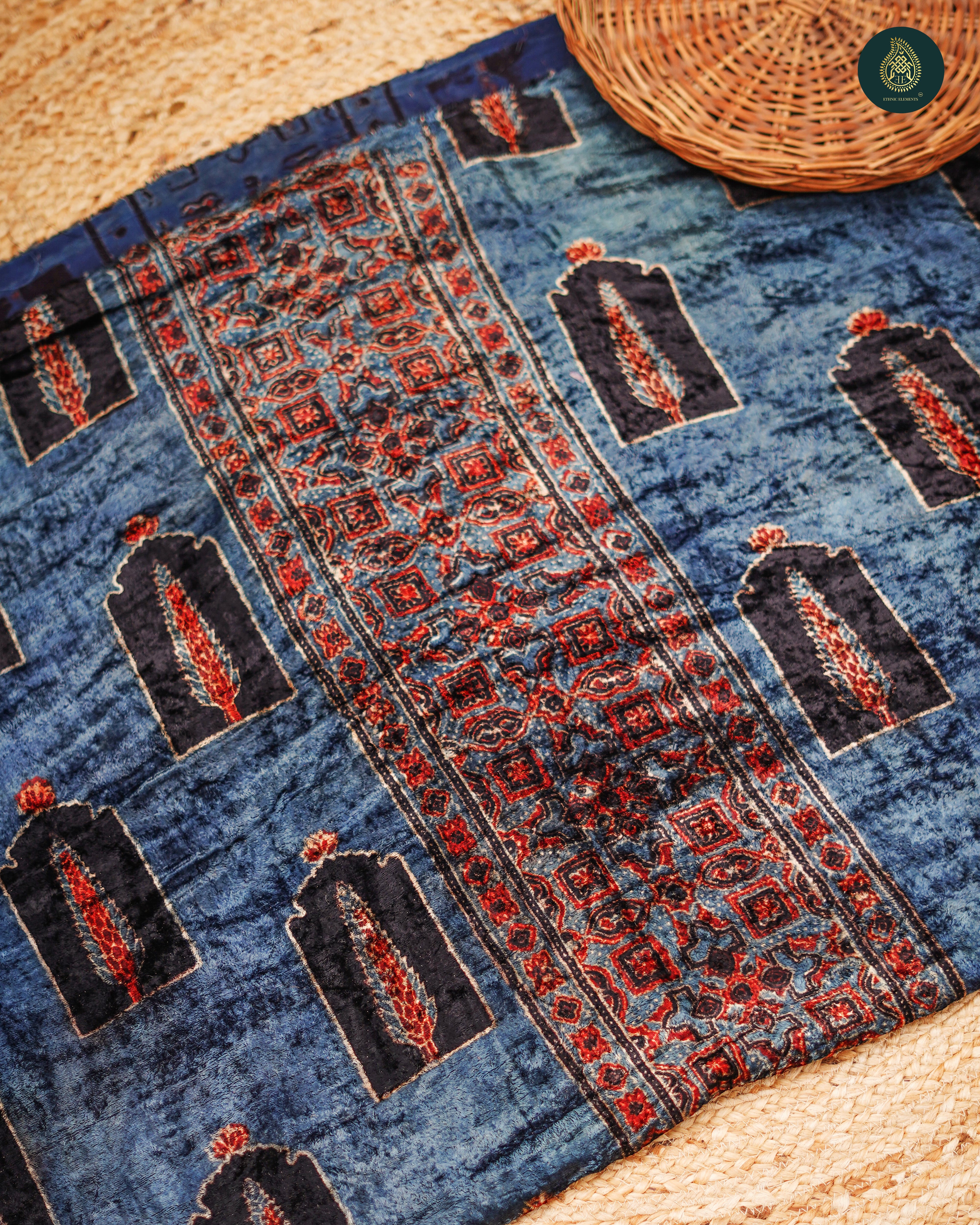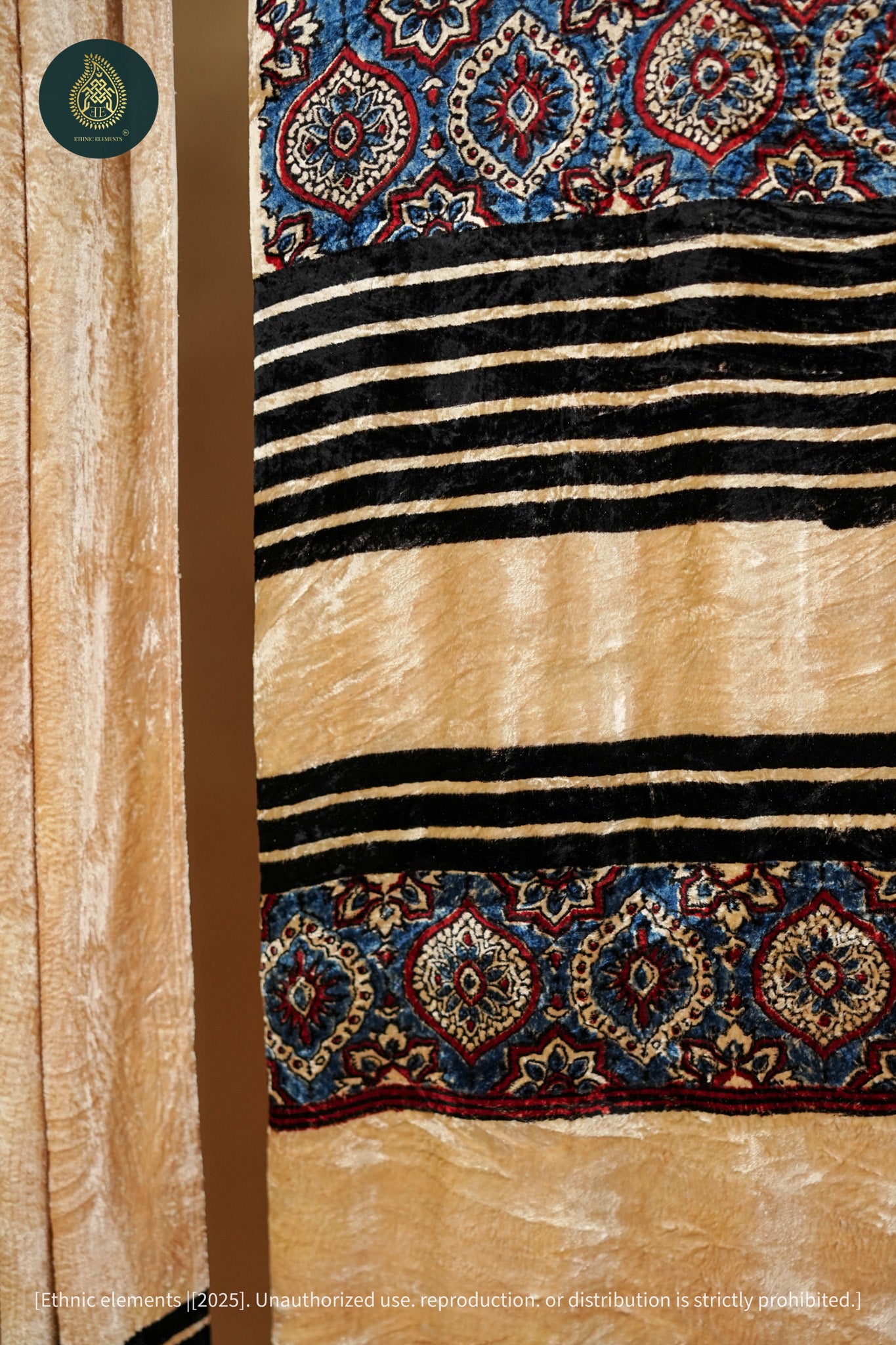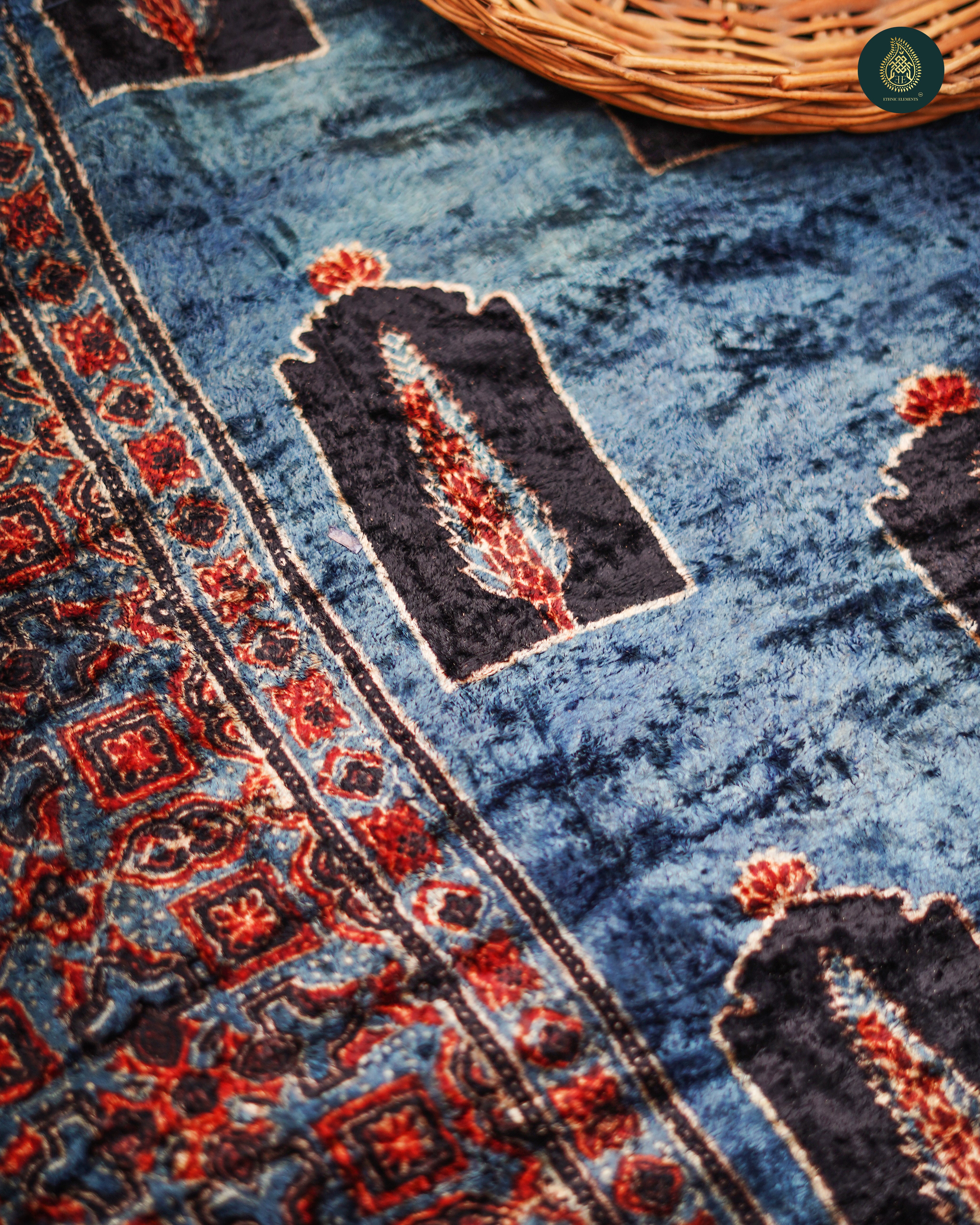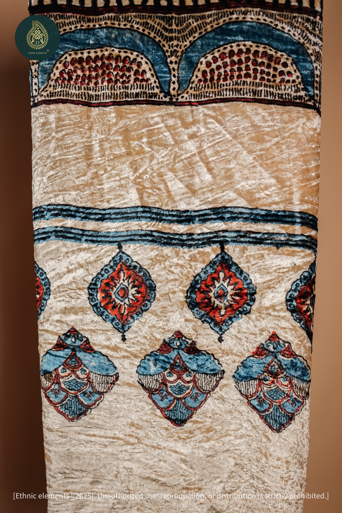 Ajrakh Velvet Anitique Sandal Sky Bloom