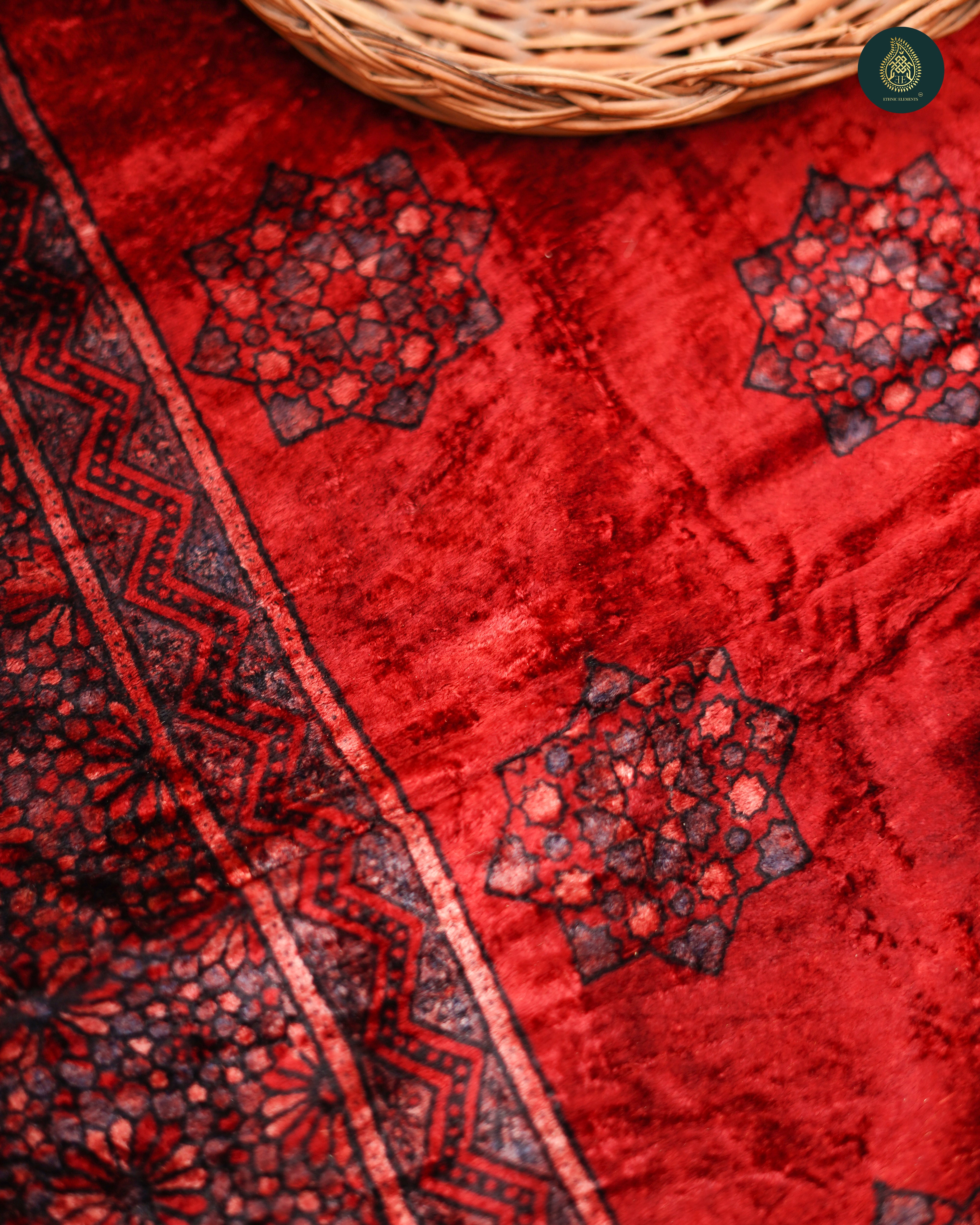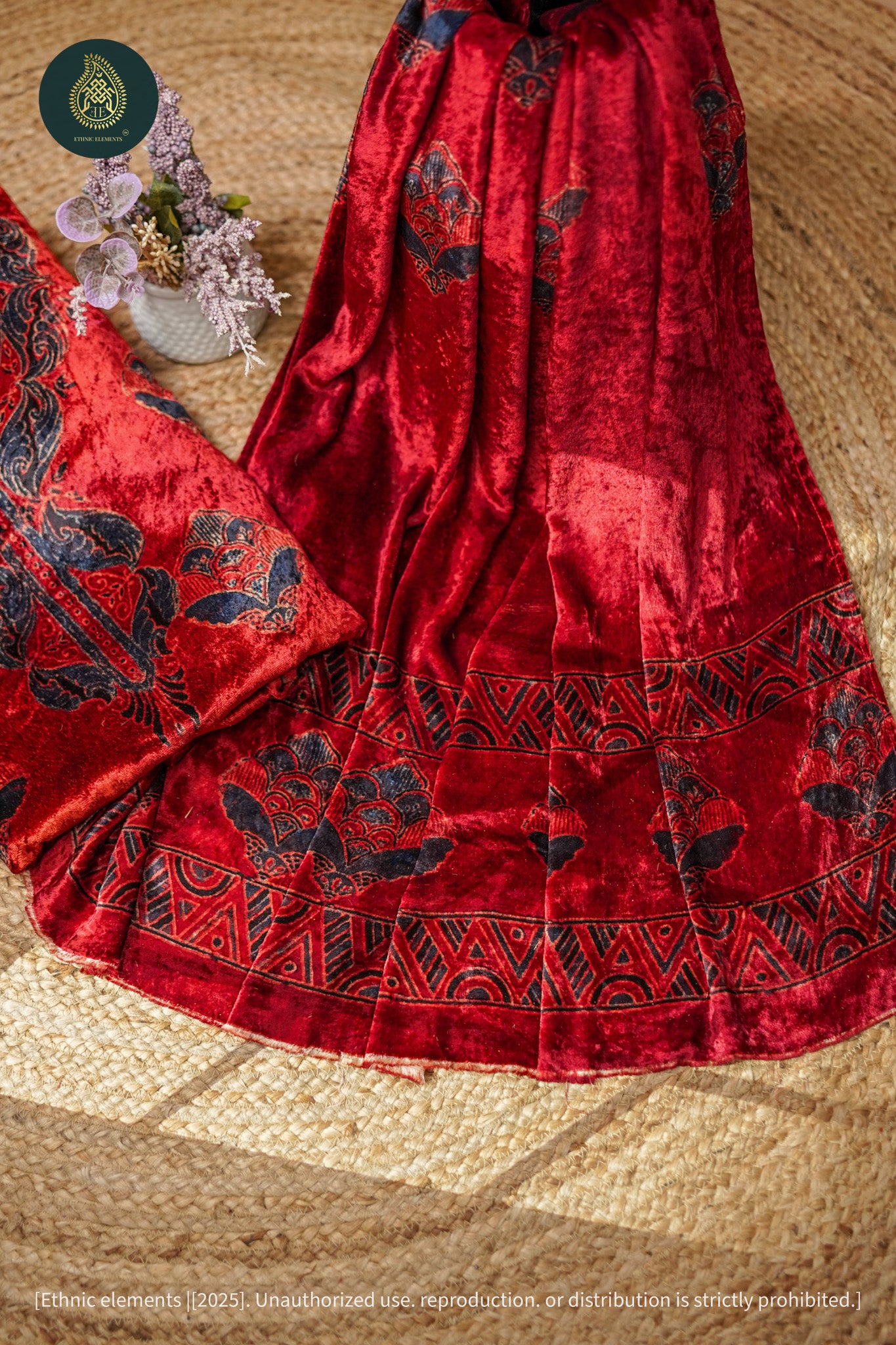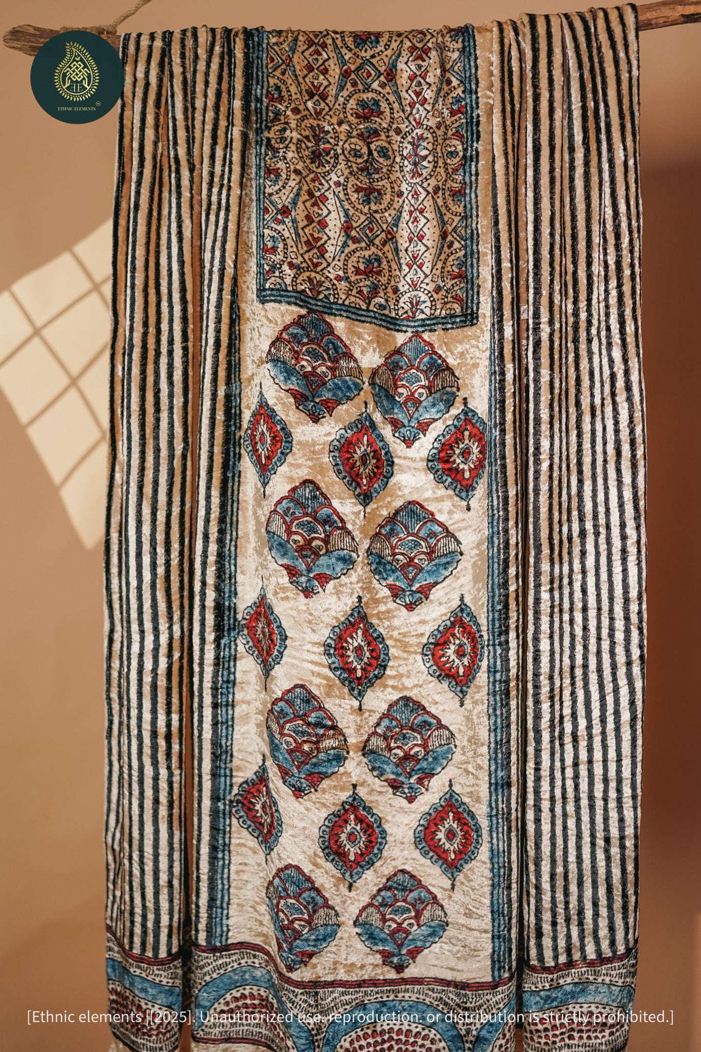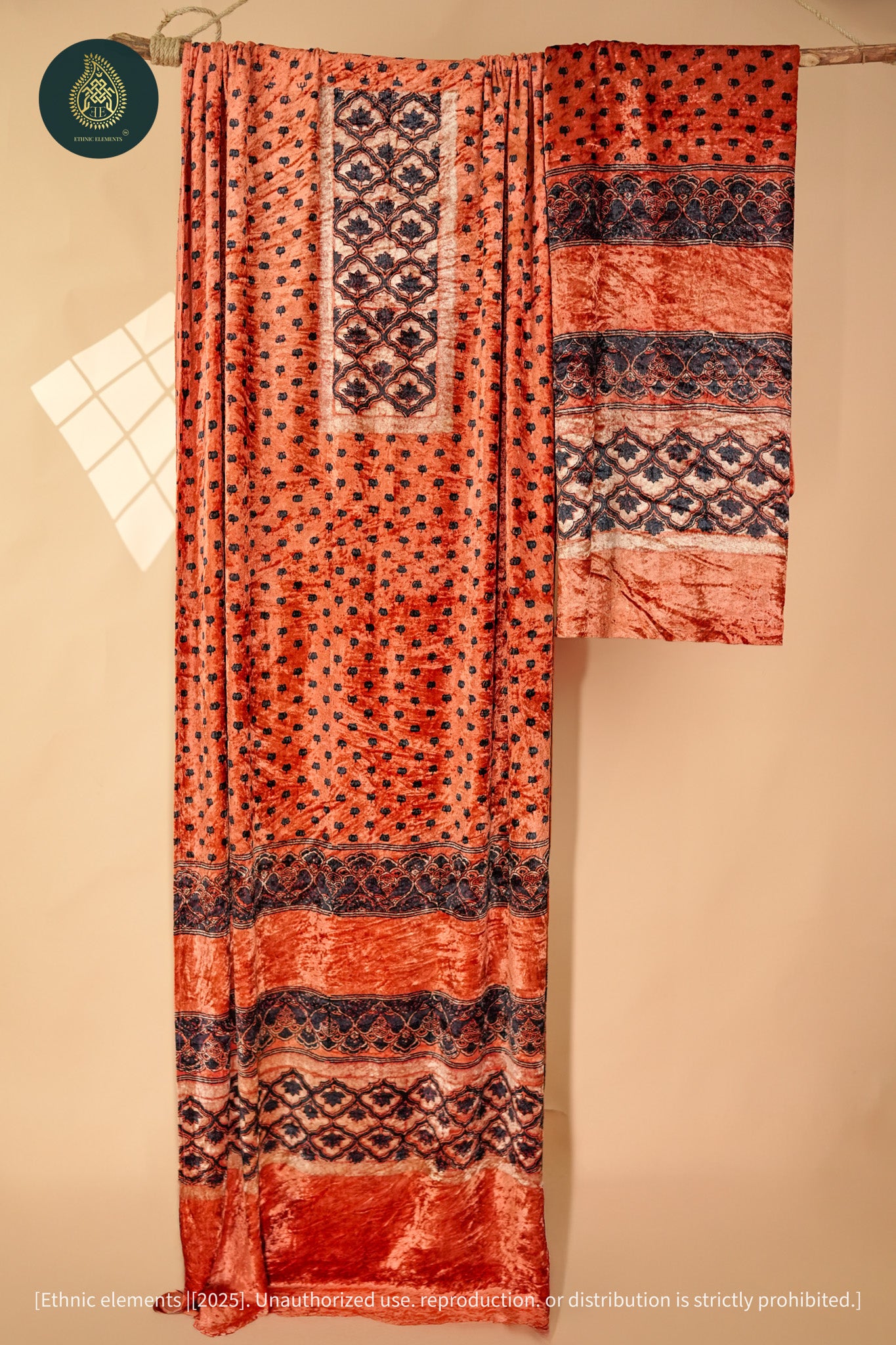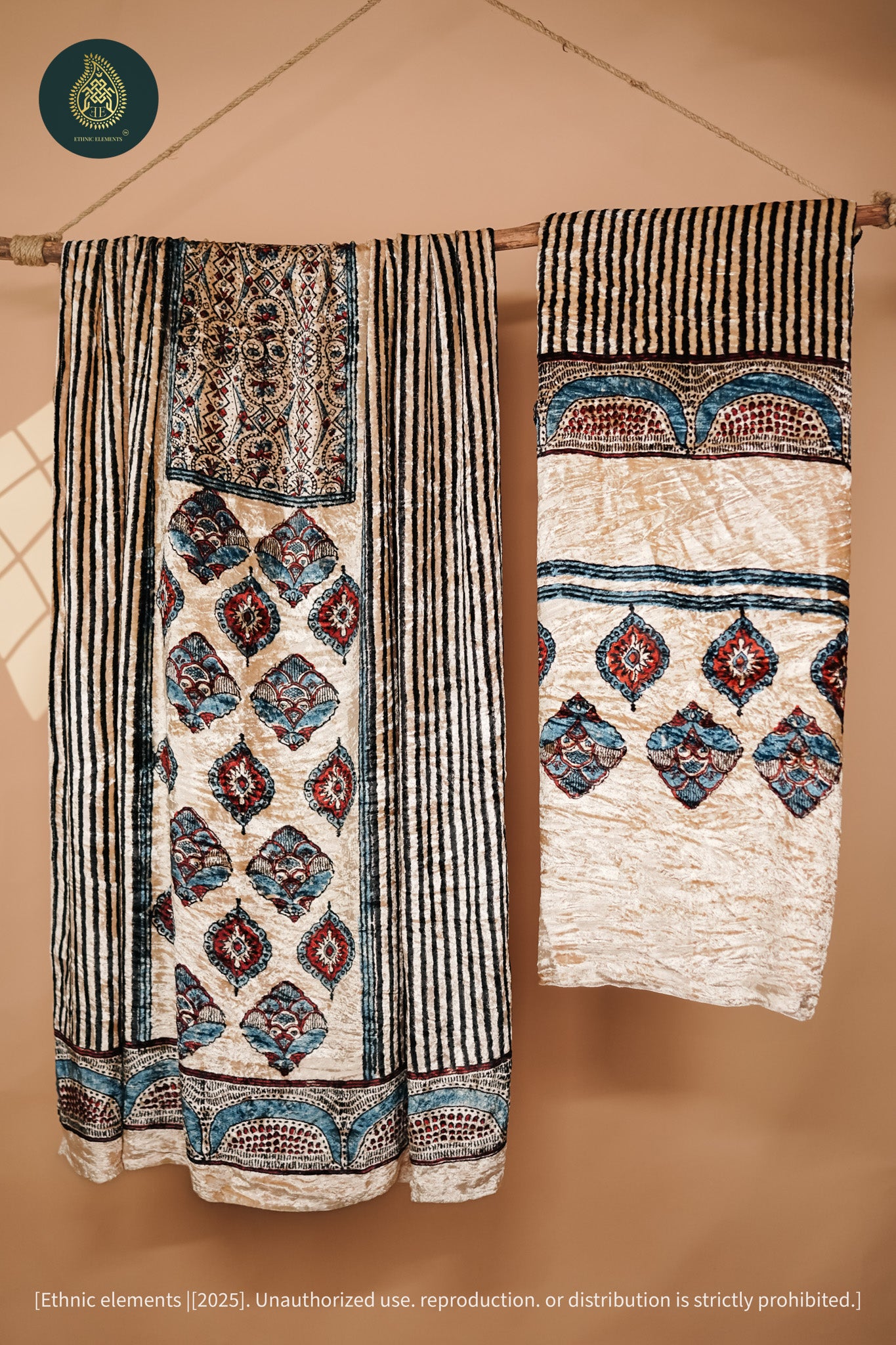 Ajrakh Velvet Anitique Sandal Sky Bloom