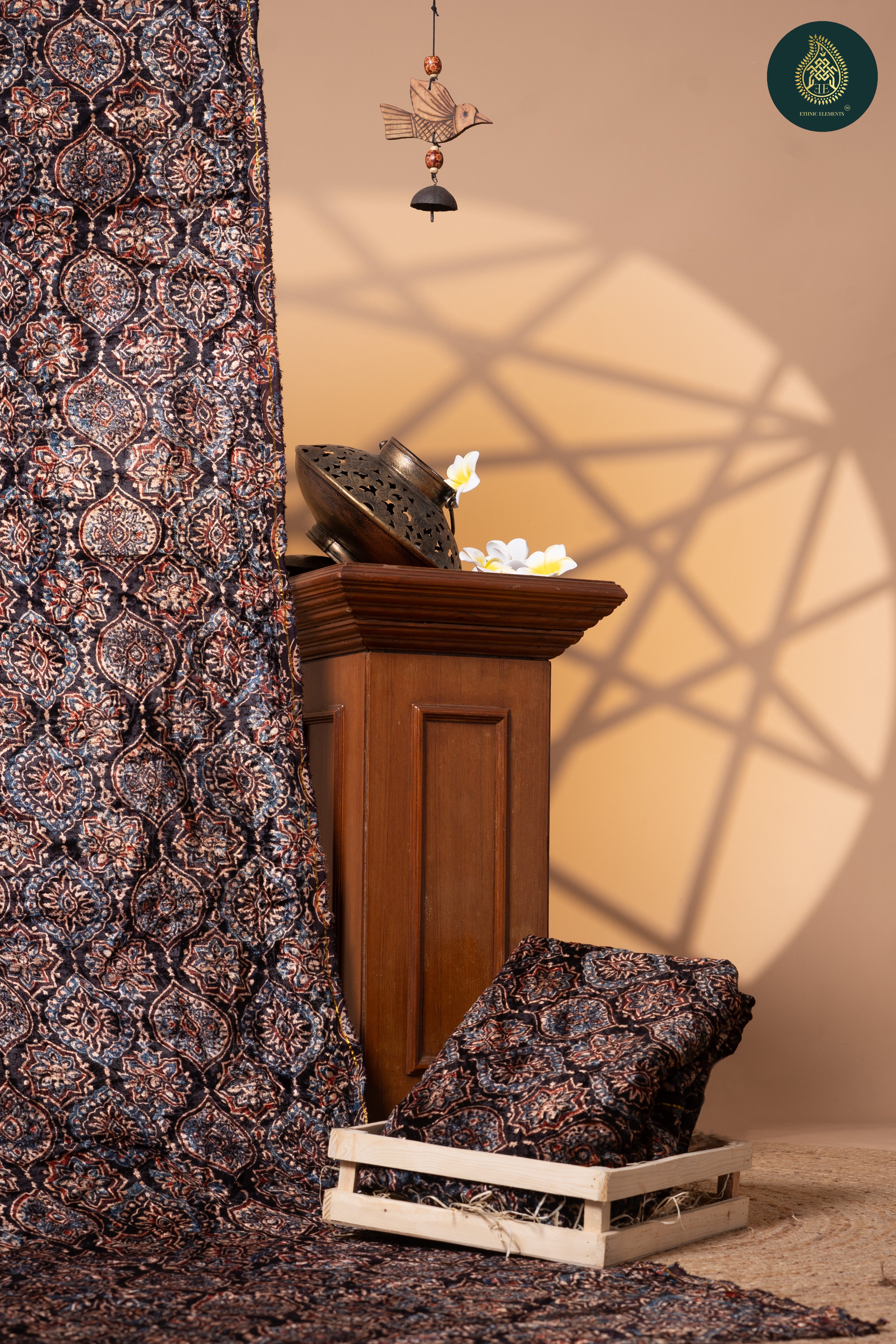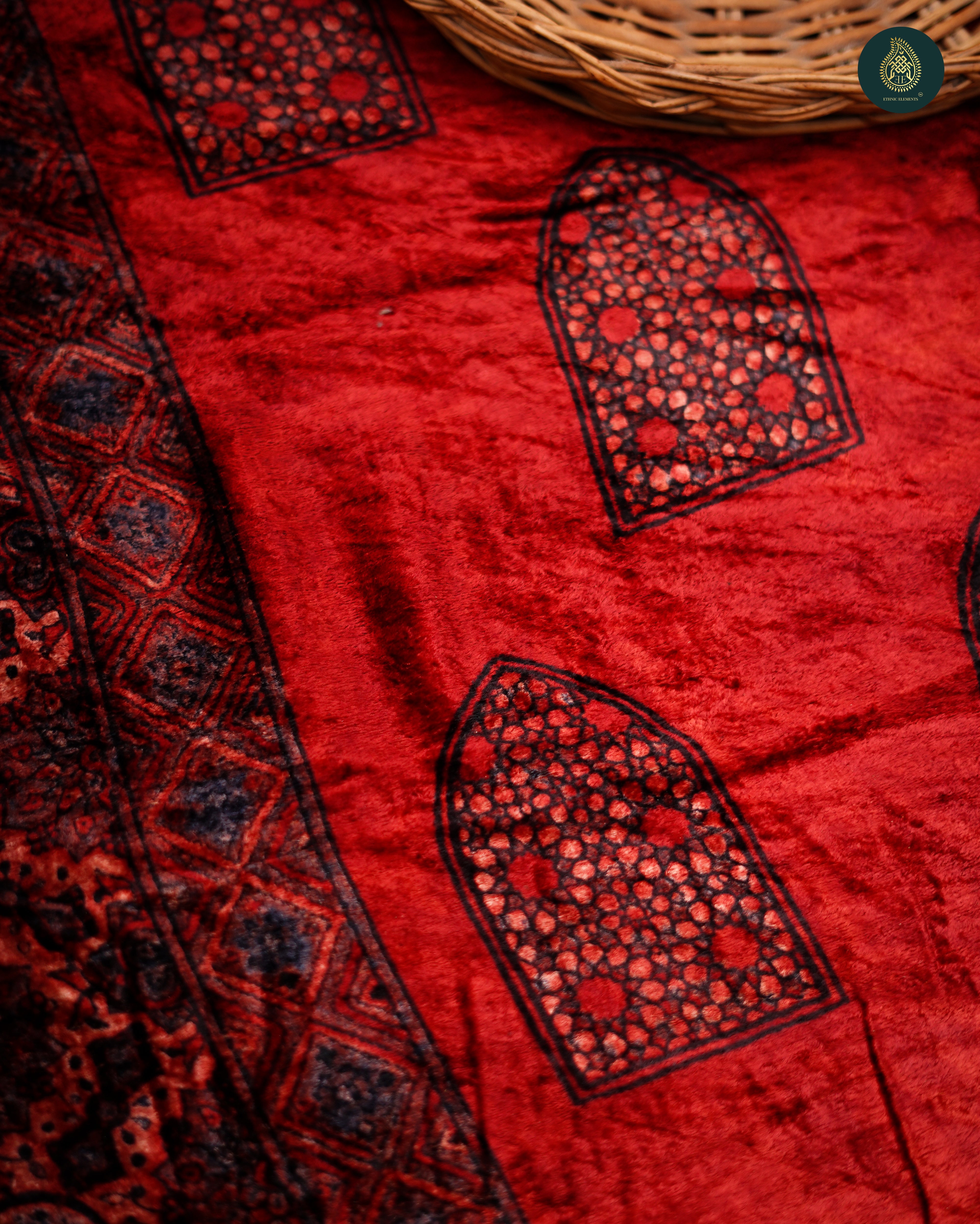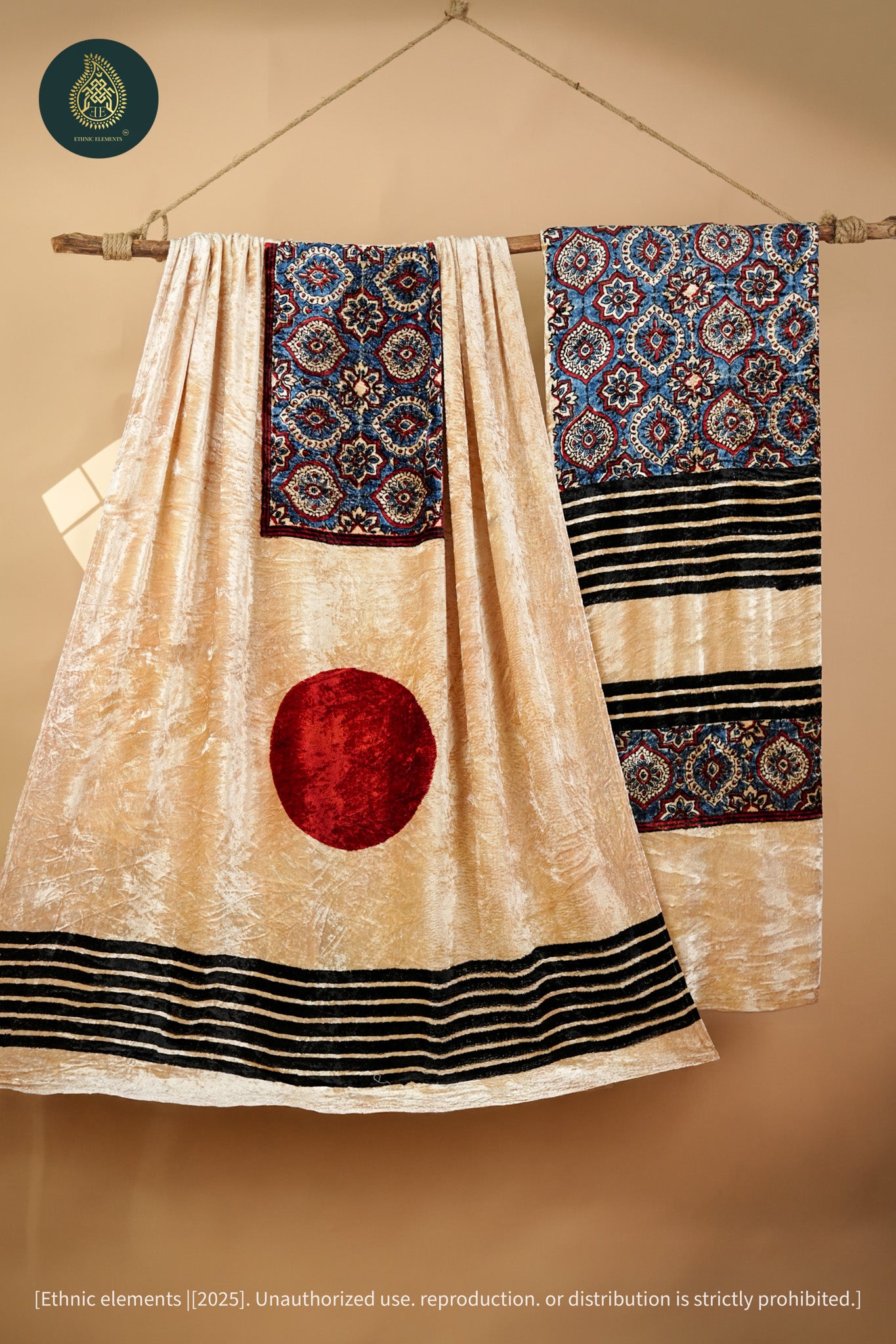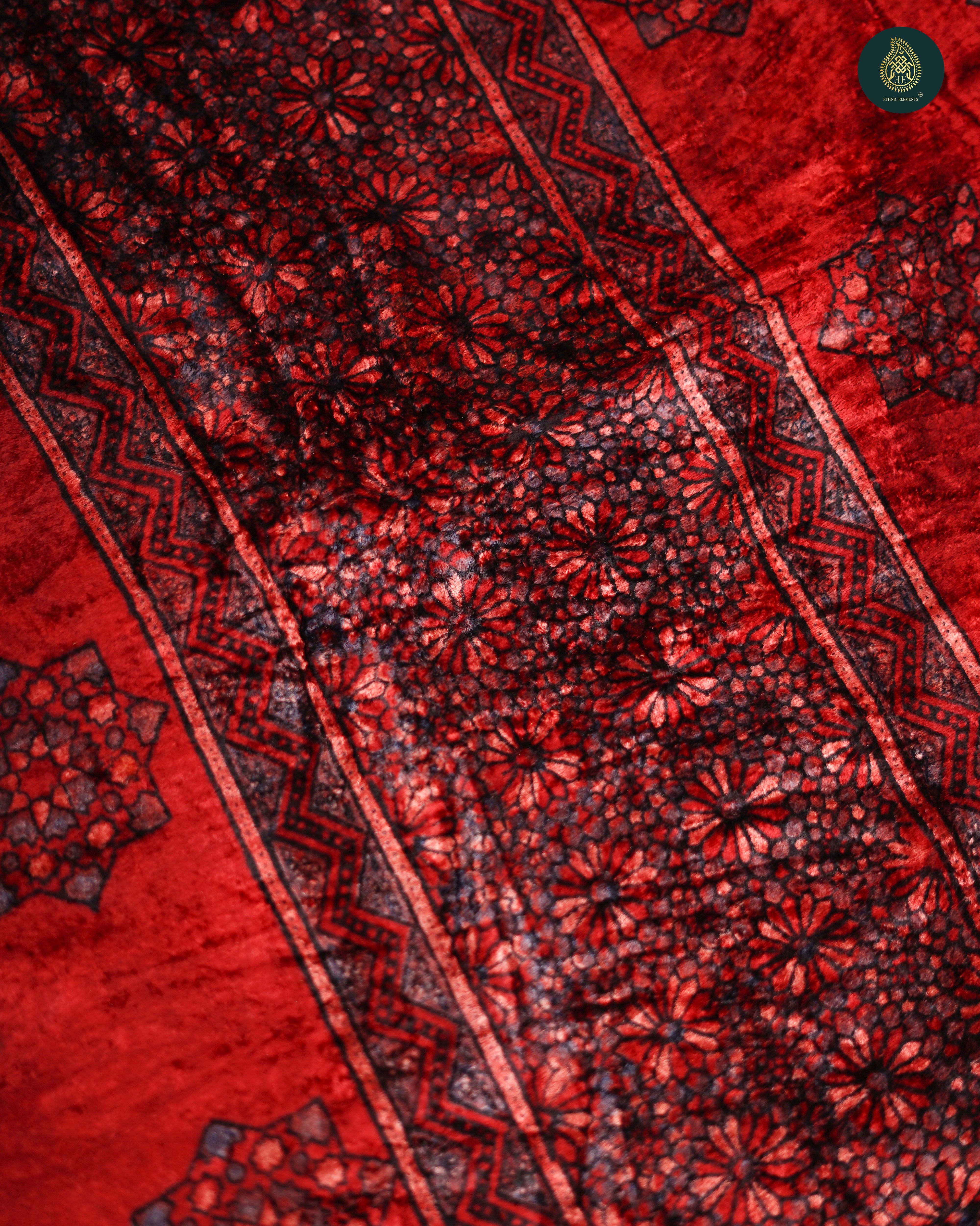 Ajrakh Velvet Anitique Sandal Sky Bloom