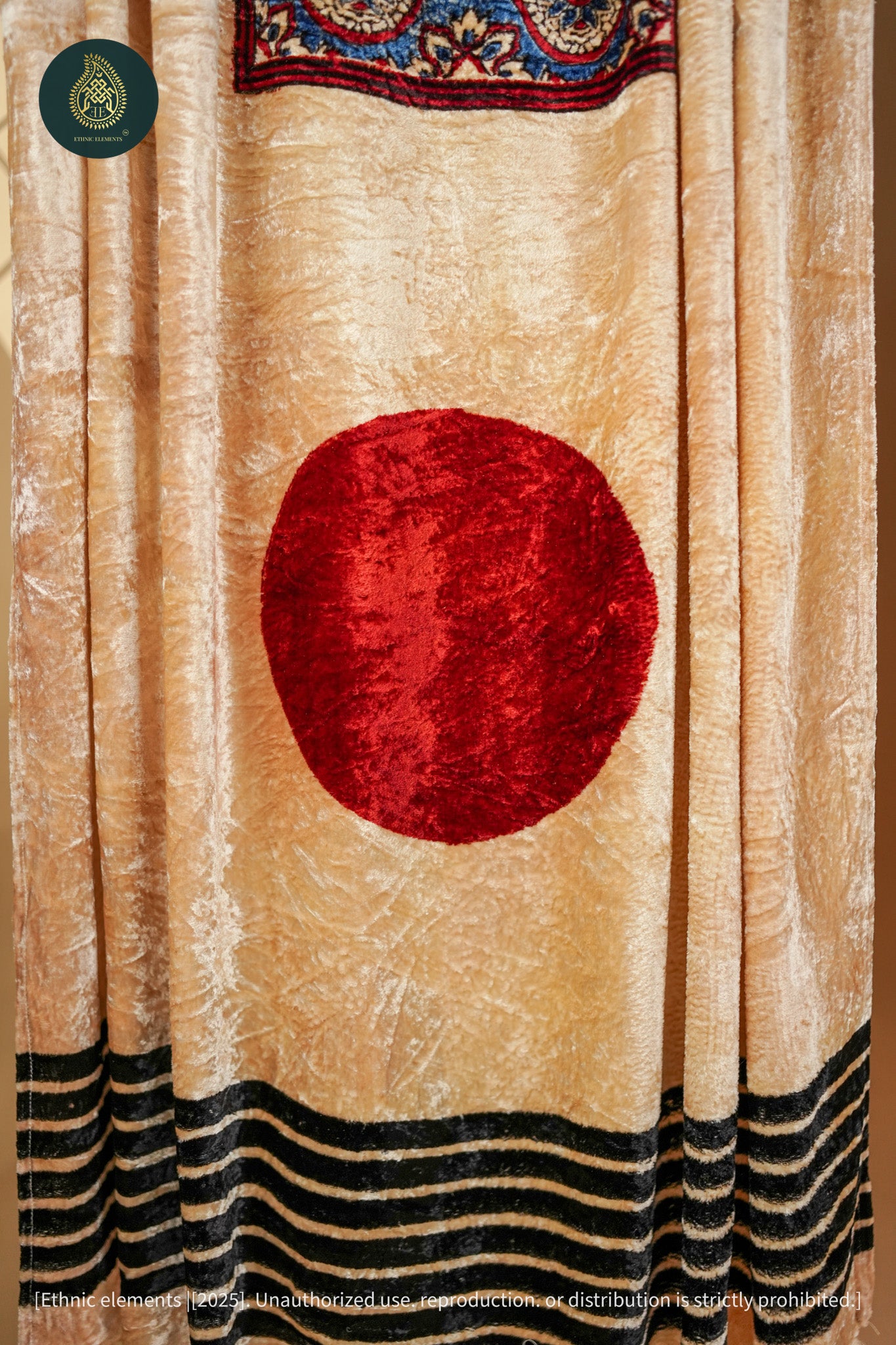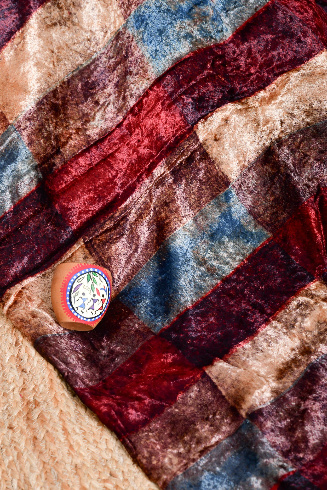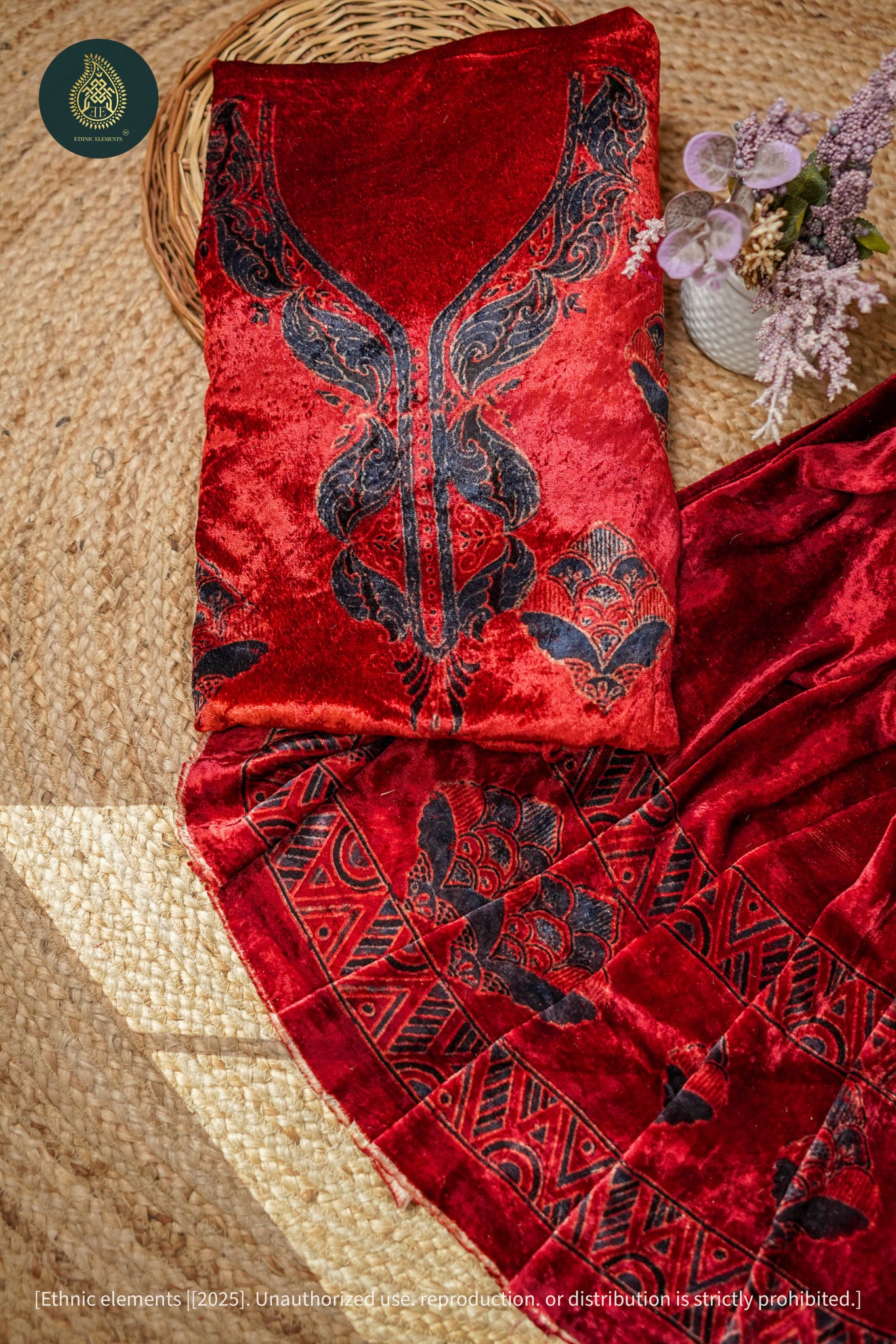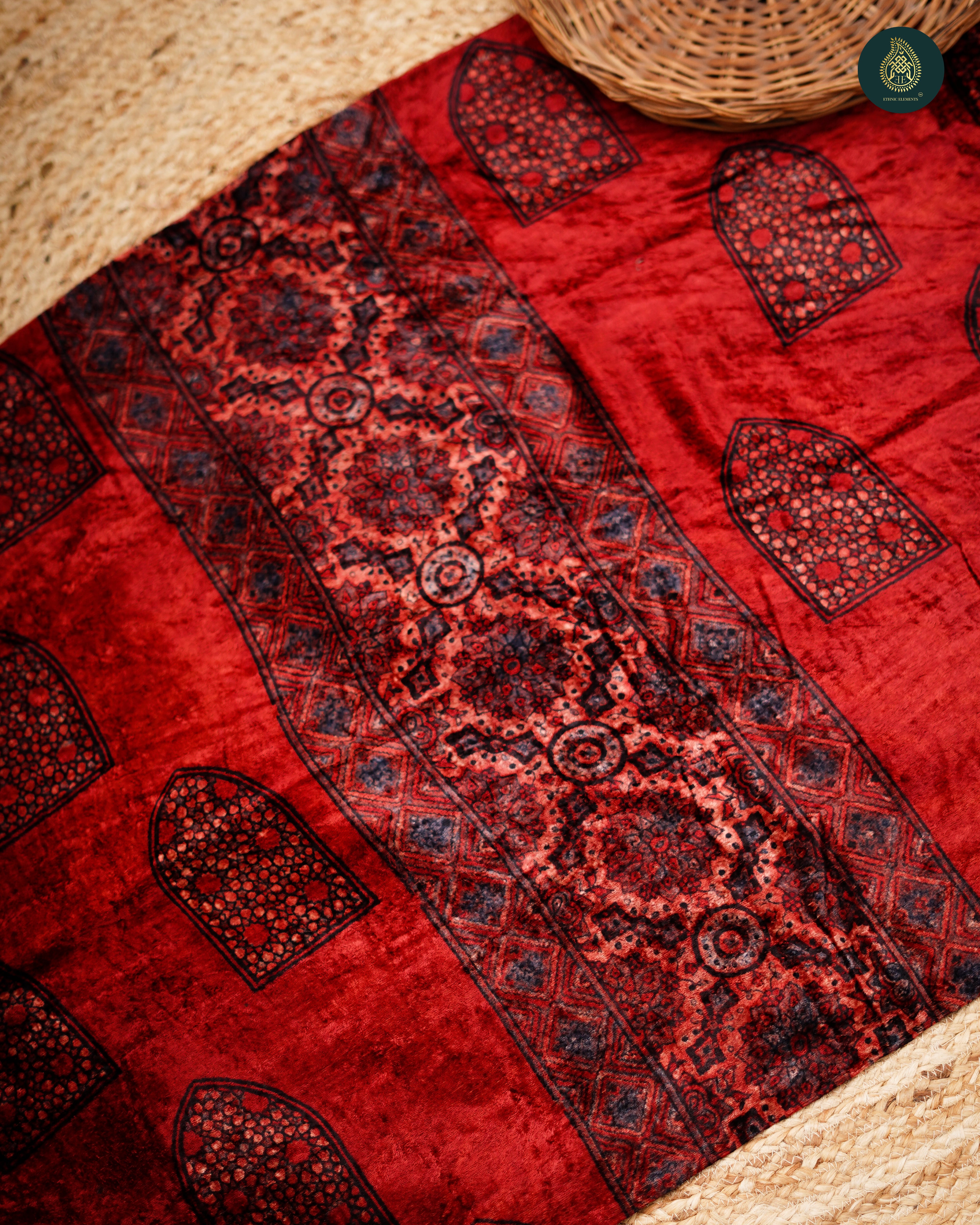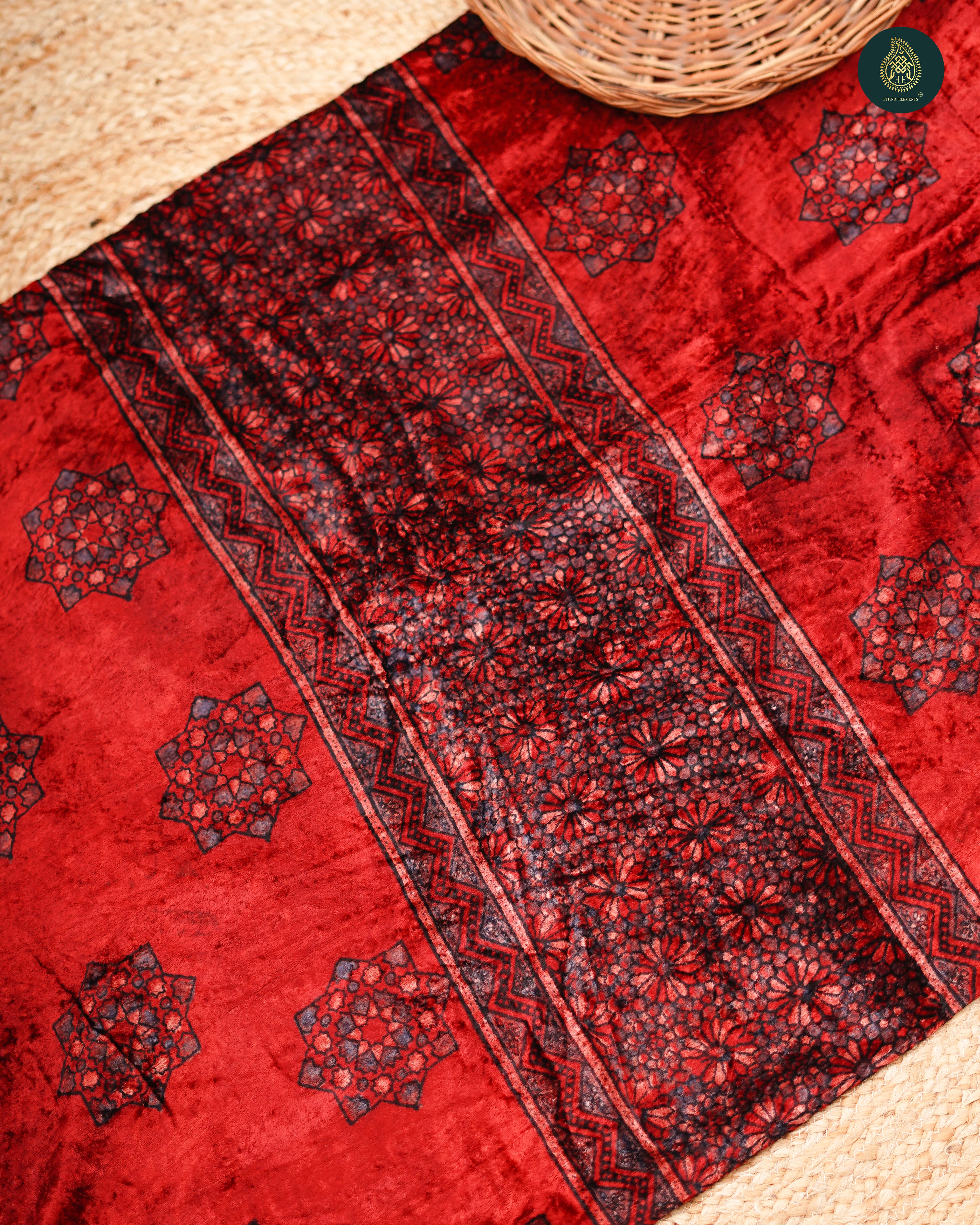 Ajrakh Velvet Anitique Sandal Sky Bloom