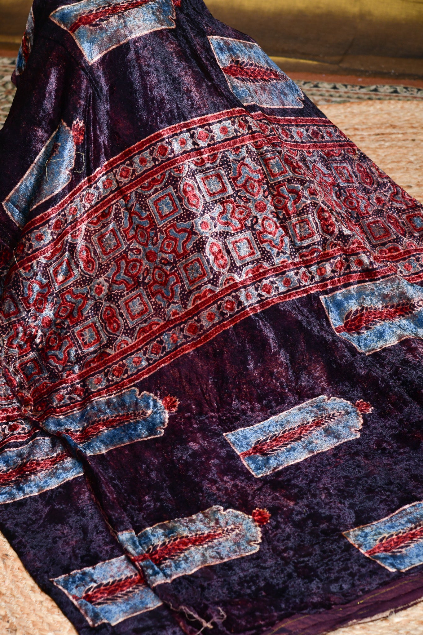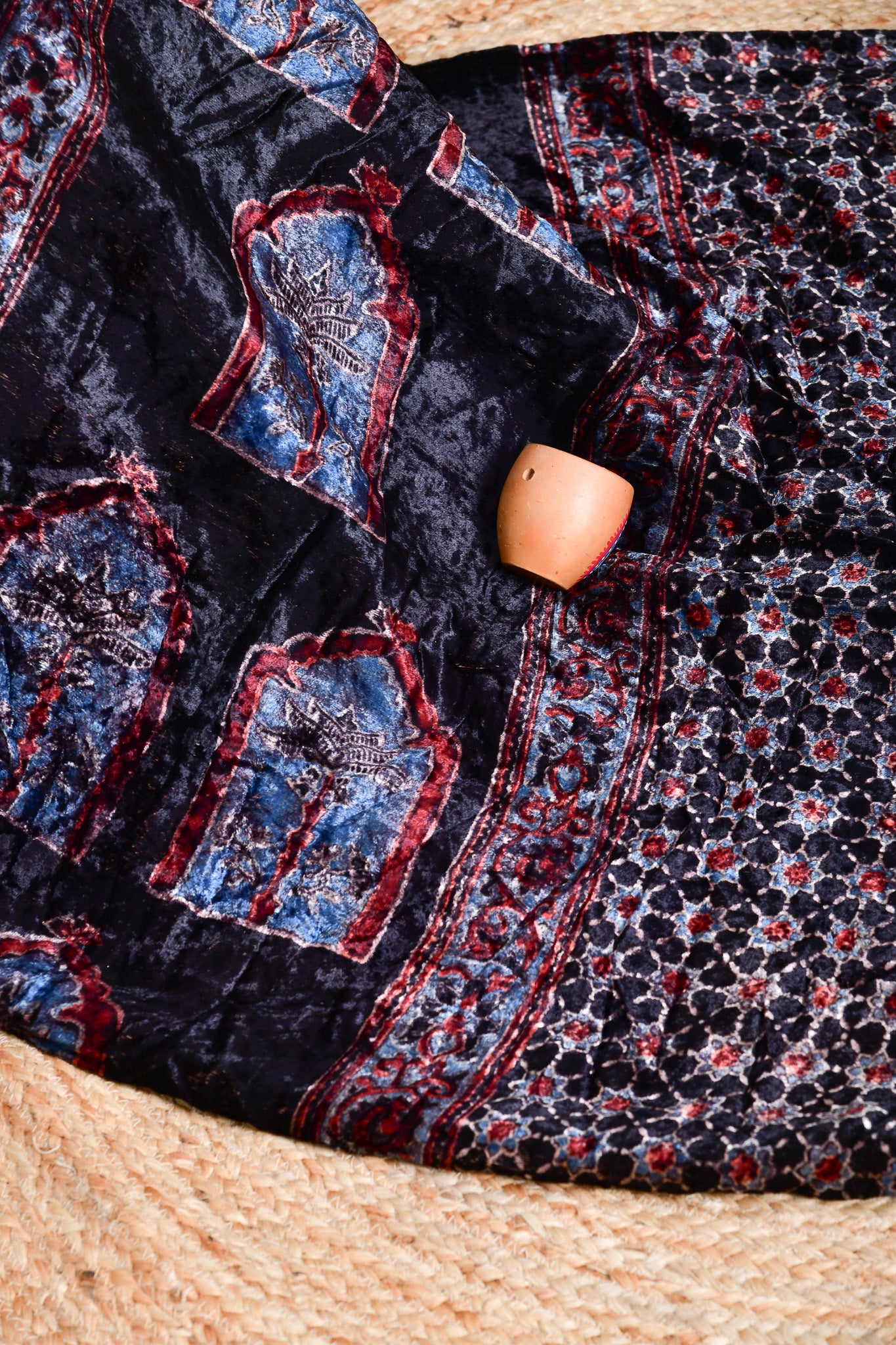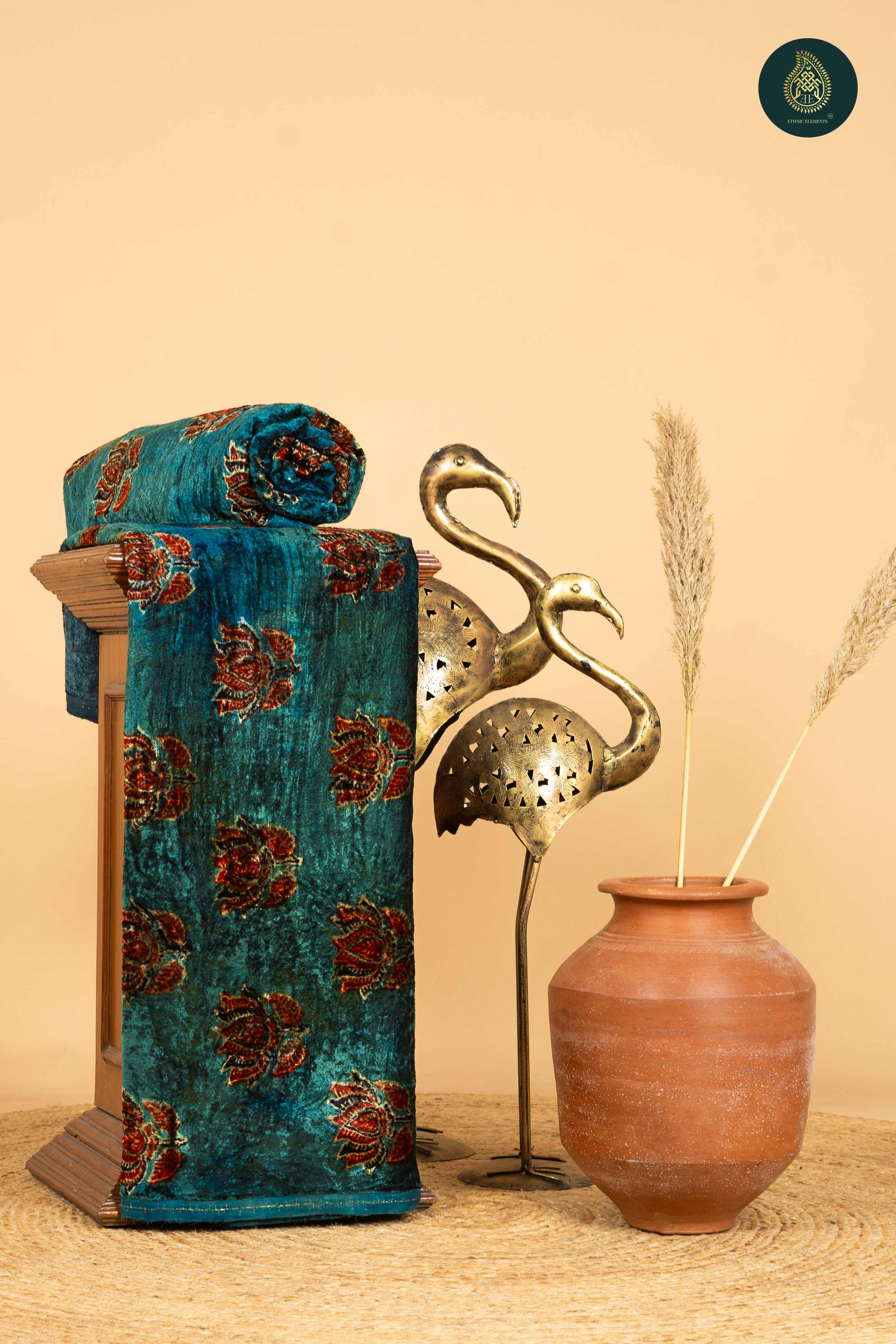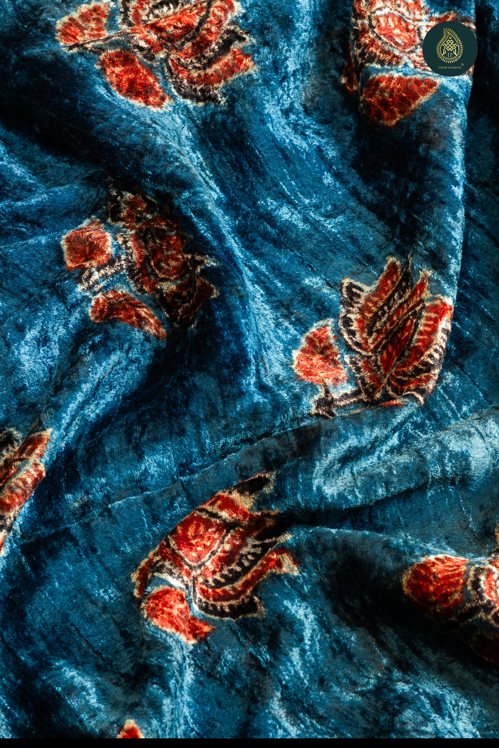 Ajrakh Velvet Anitique Floral Aquaness Harmony
