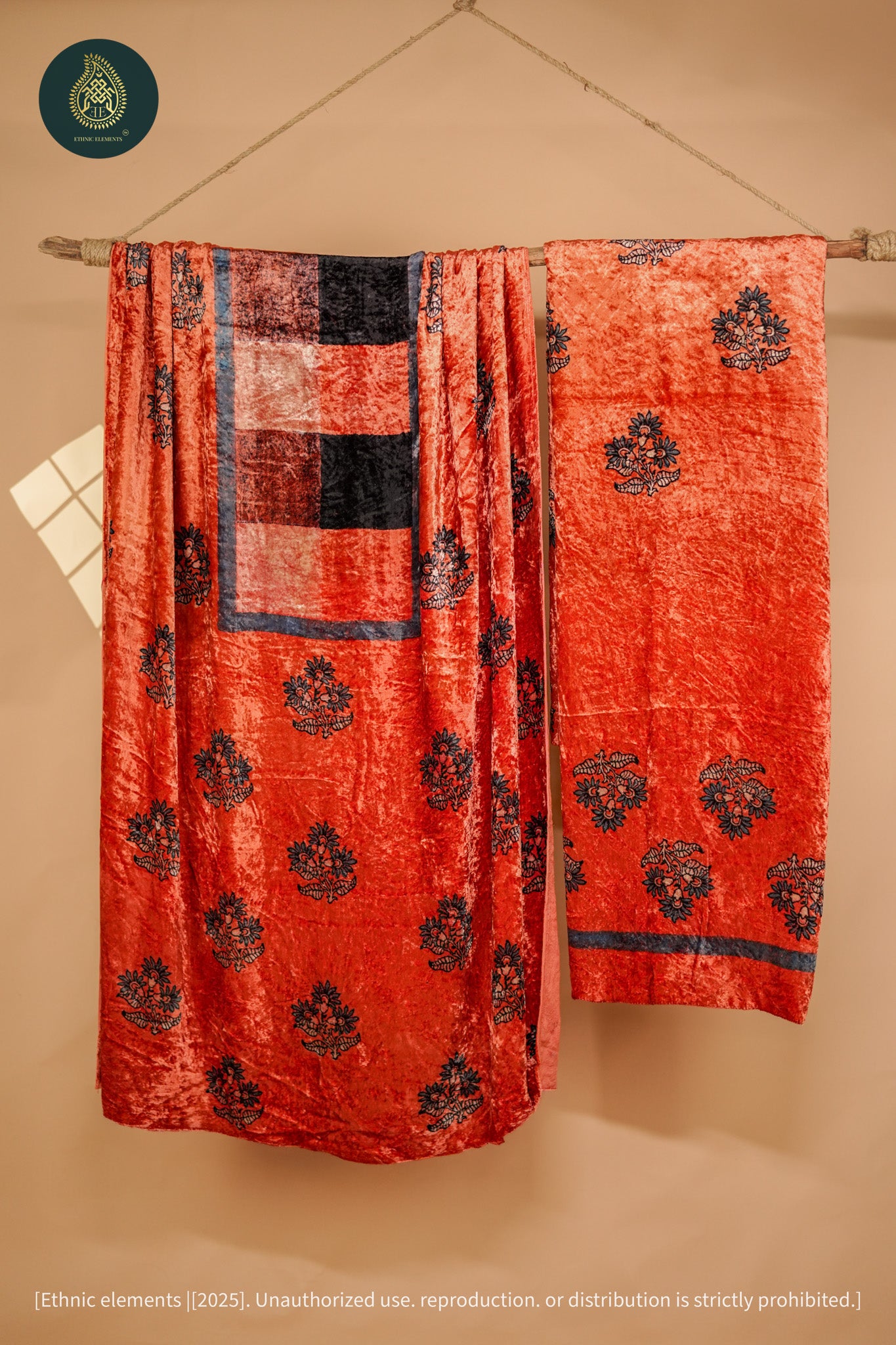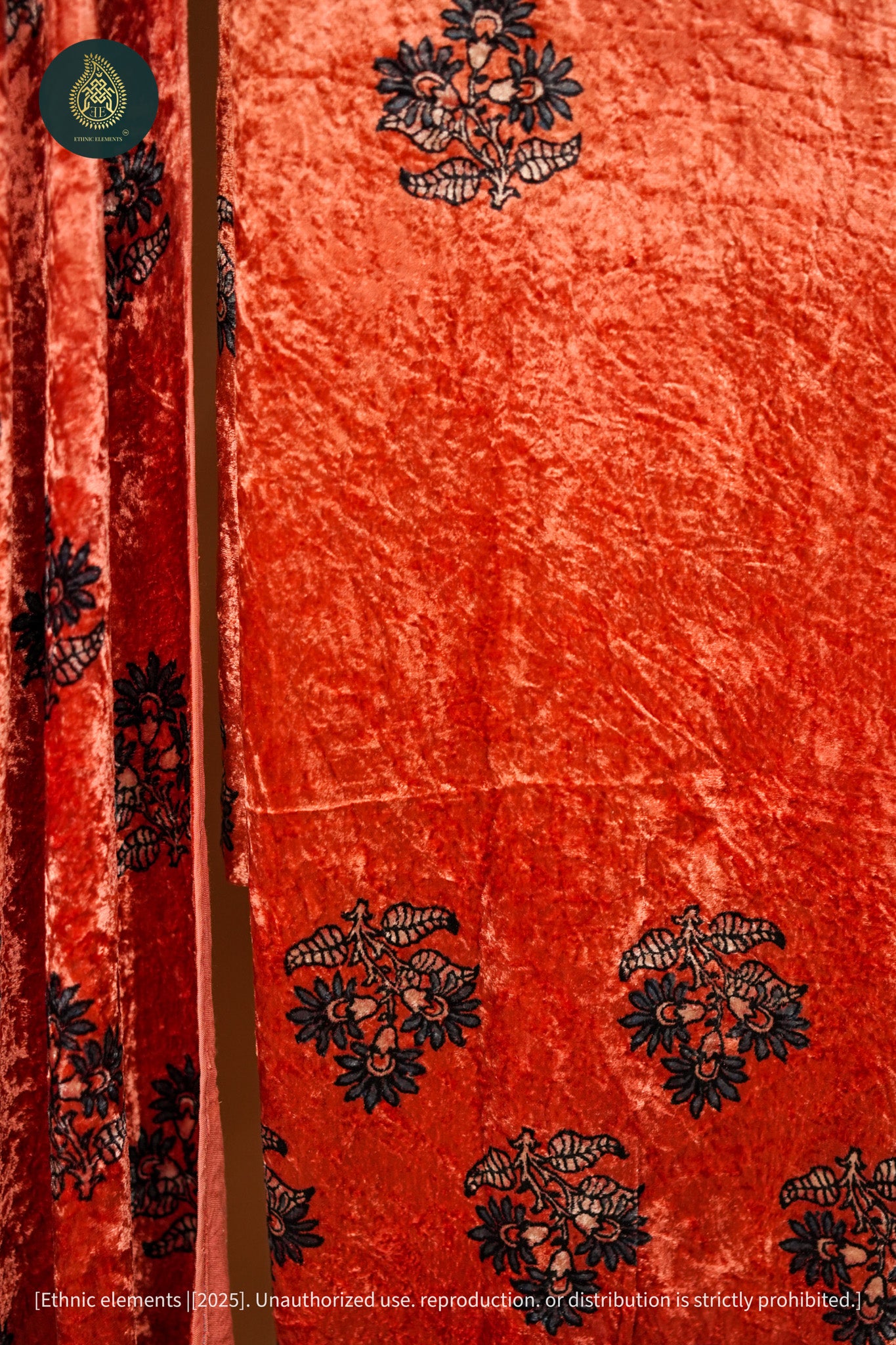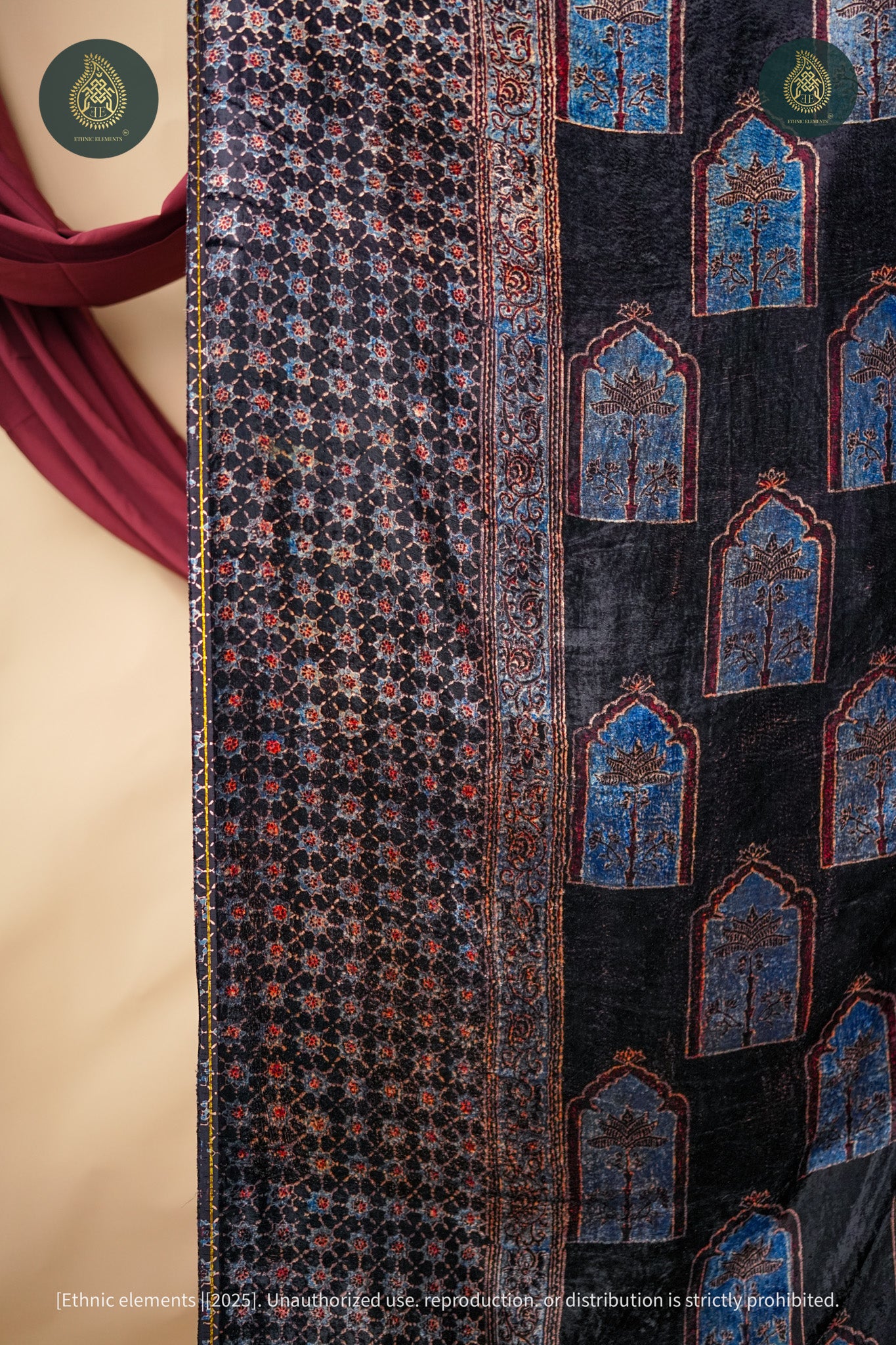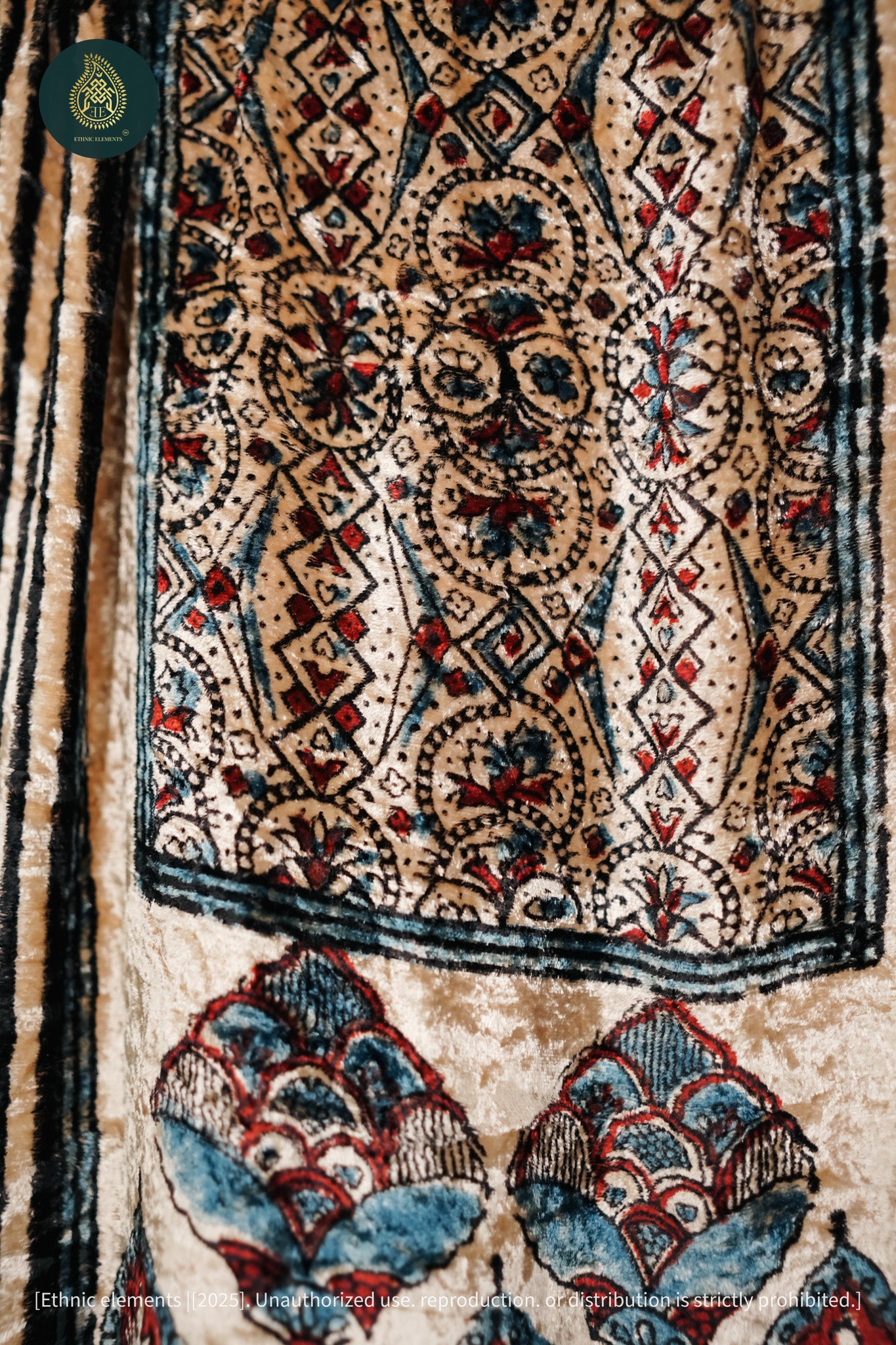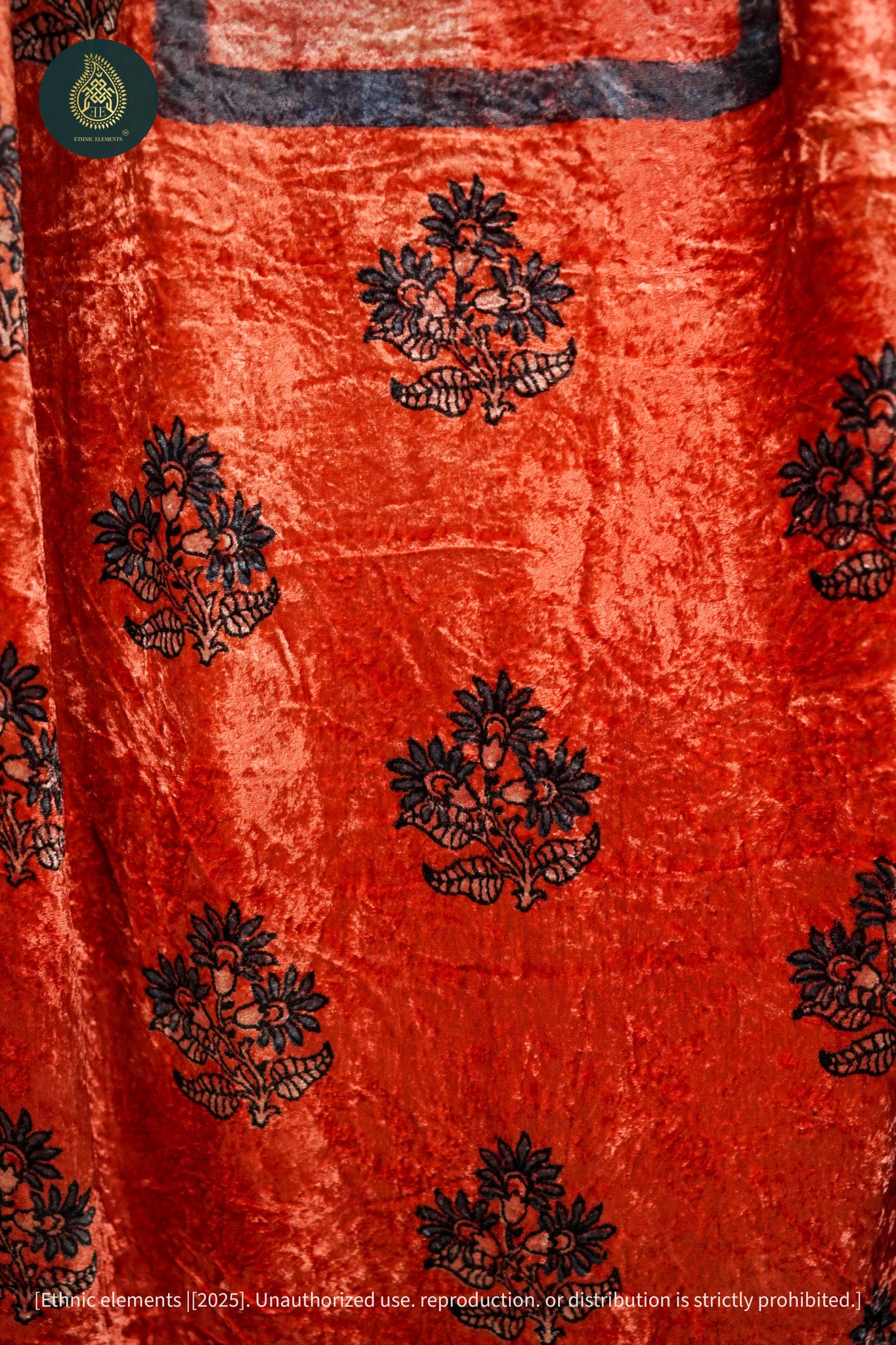 Ajrakh Velvet Anitique Floral Aquaness Harmony