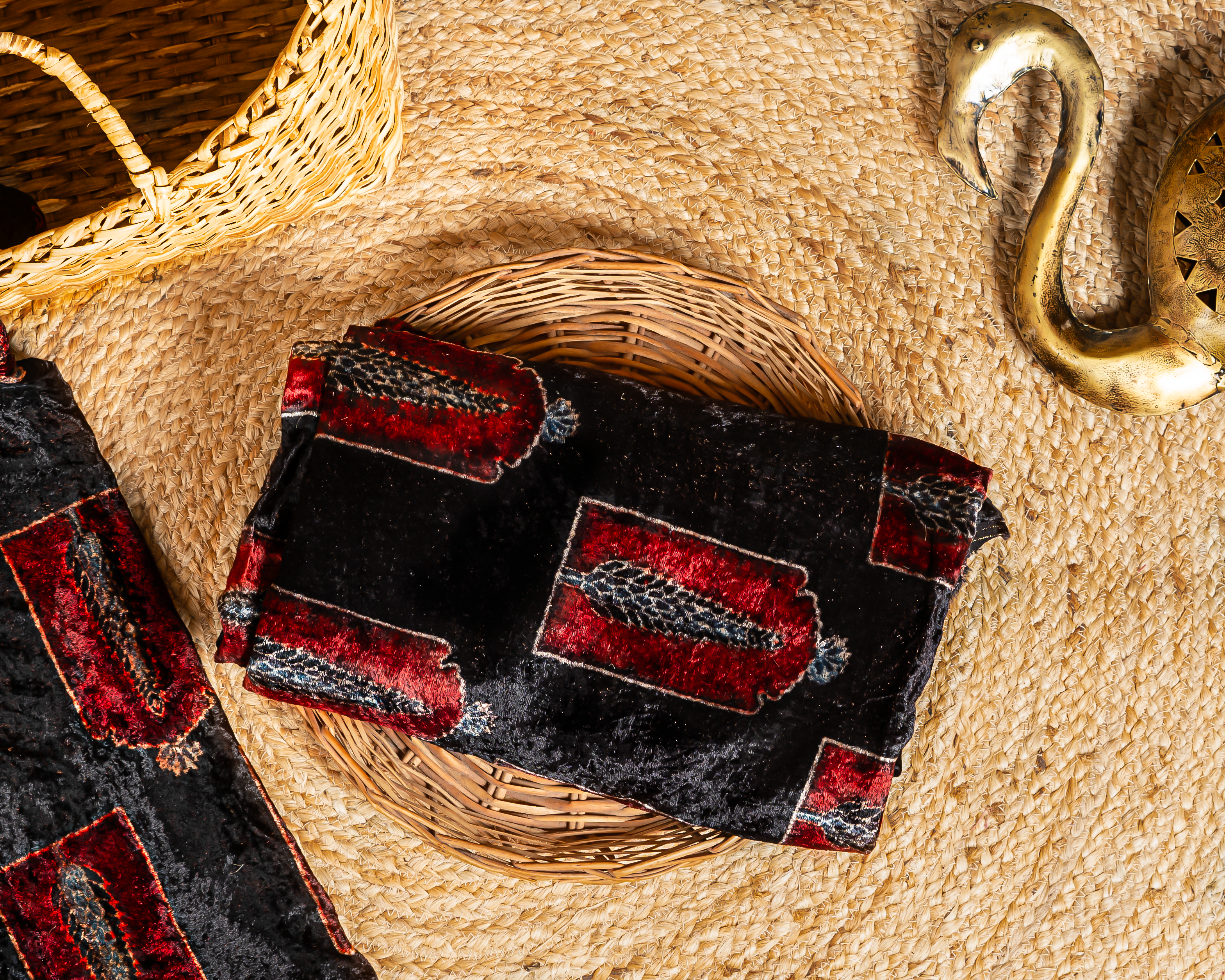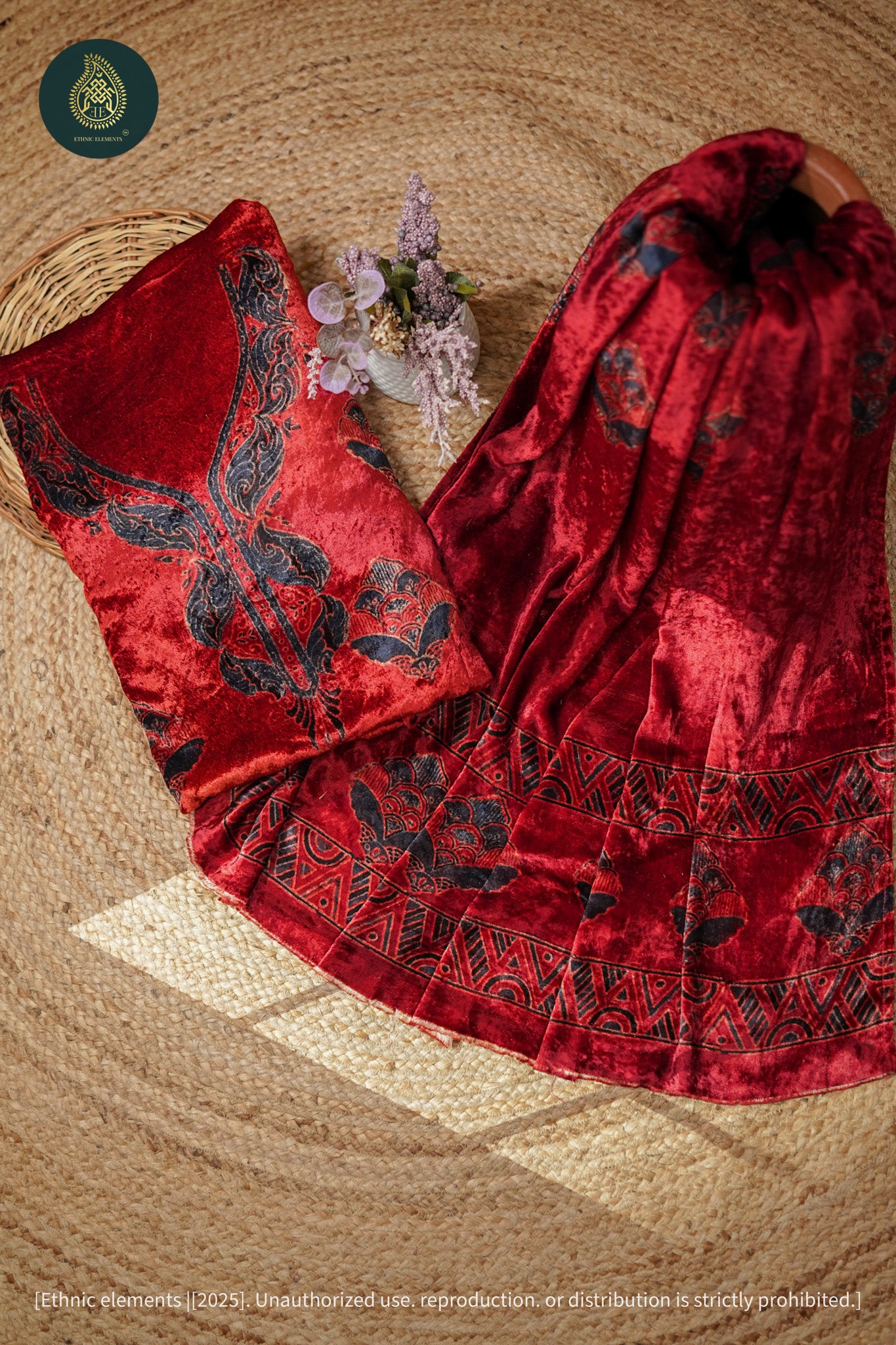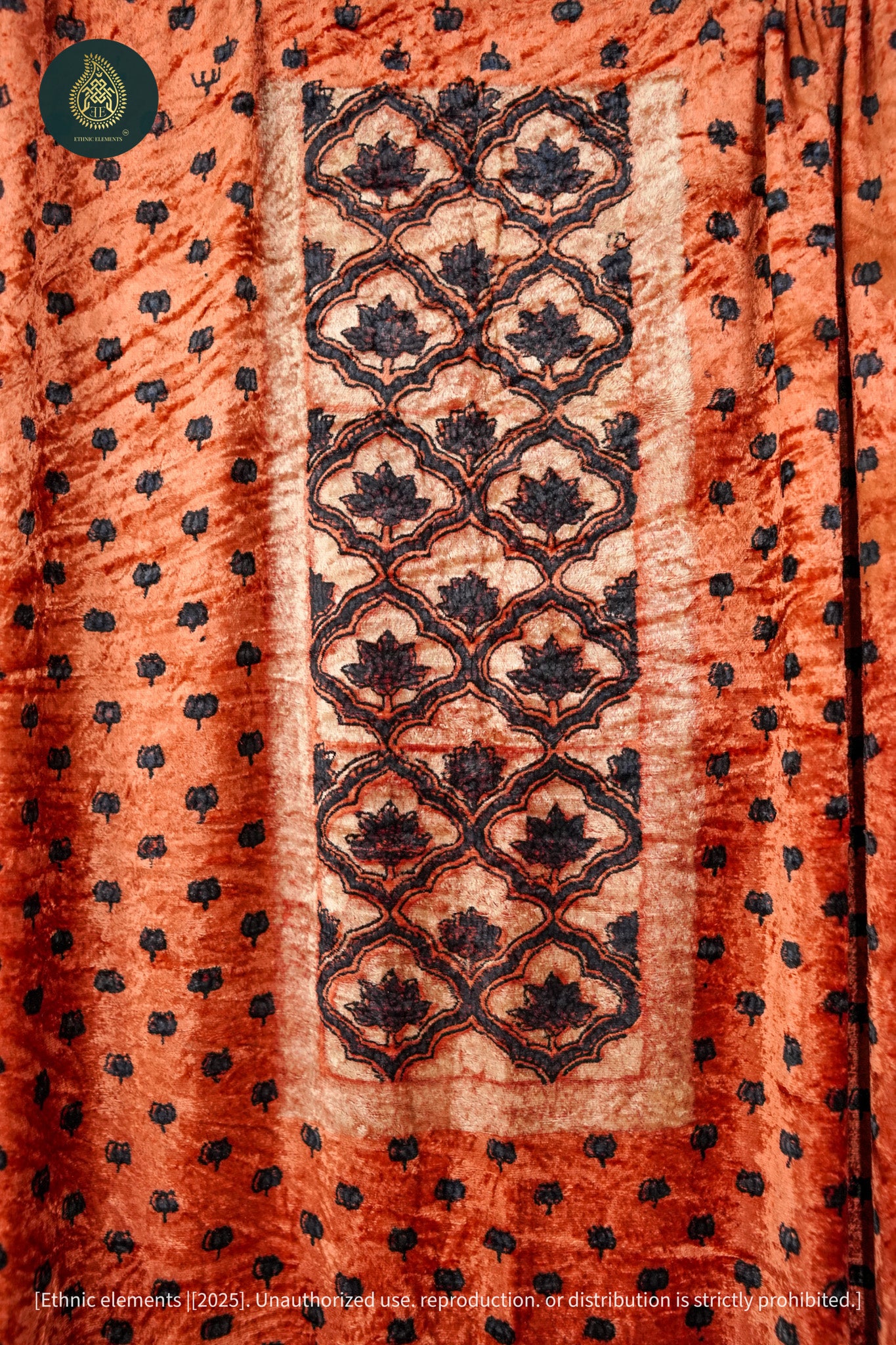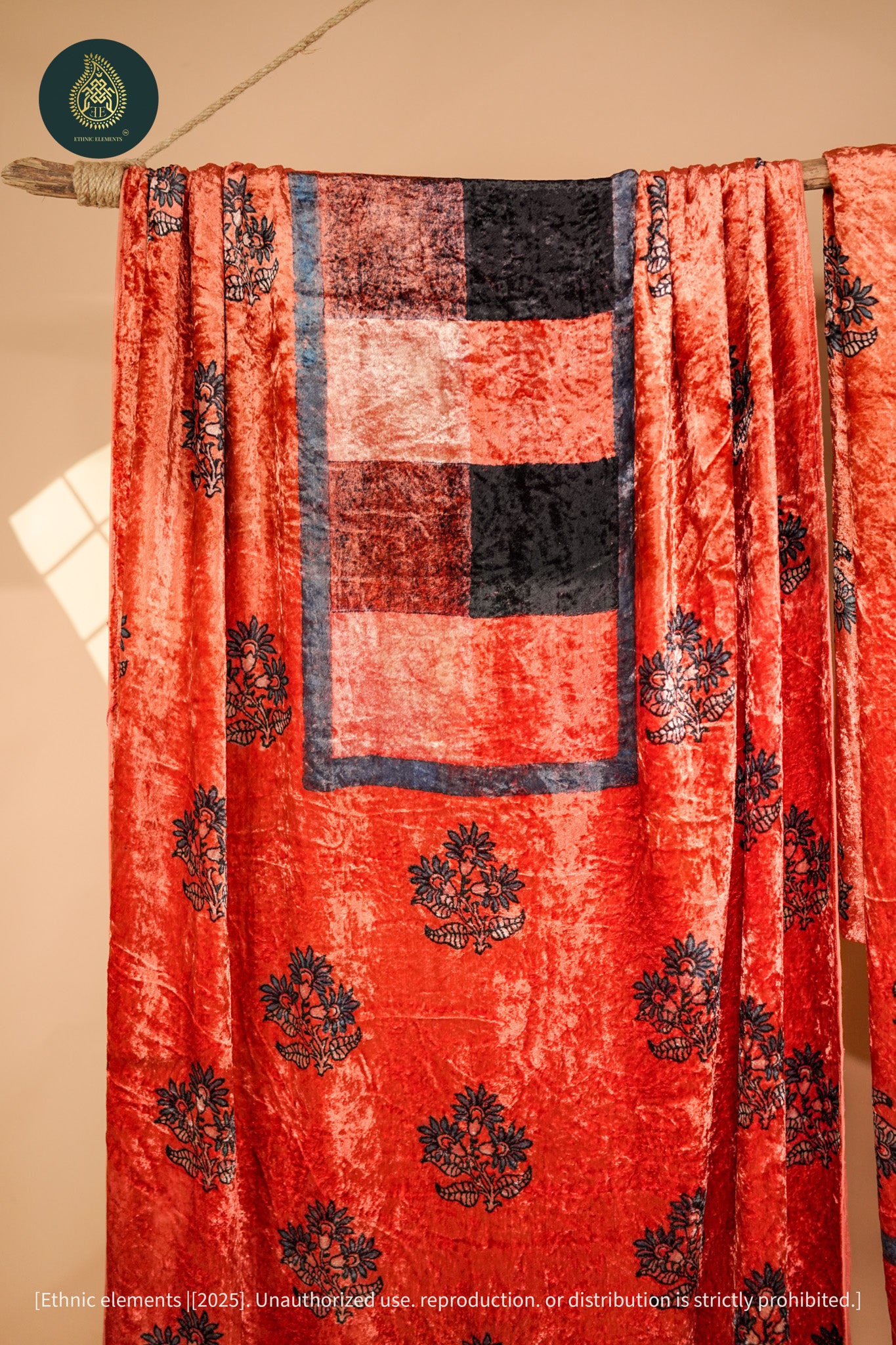 Ajrakh Velvet Anitique Floral Aquaness Harmony