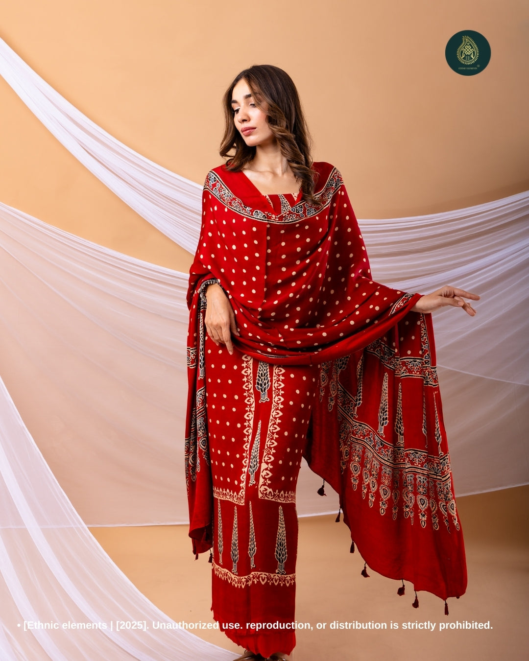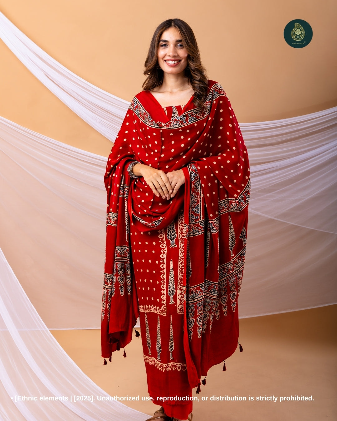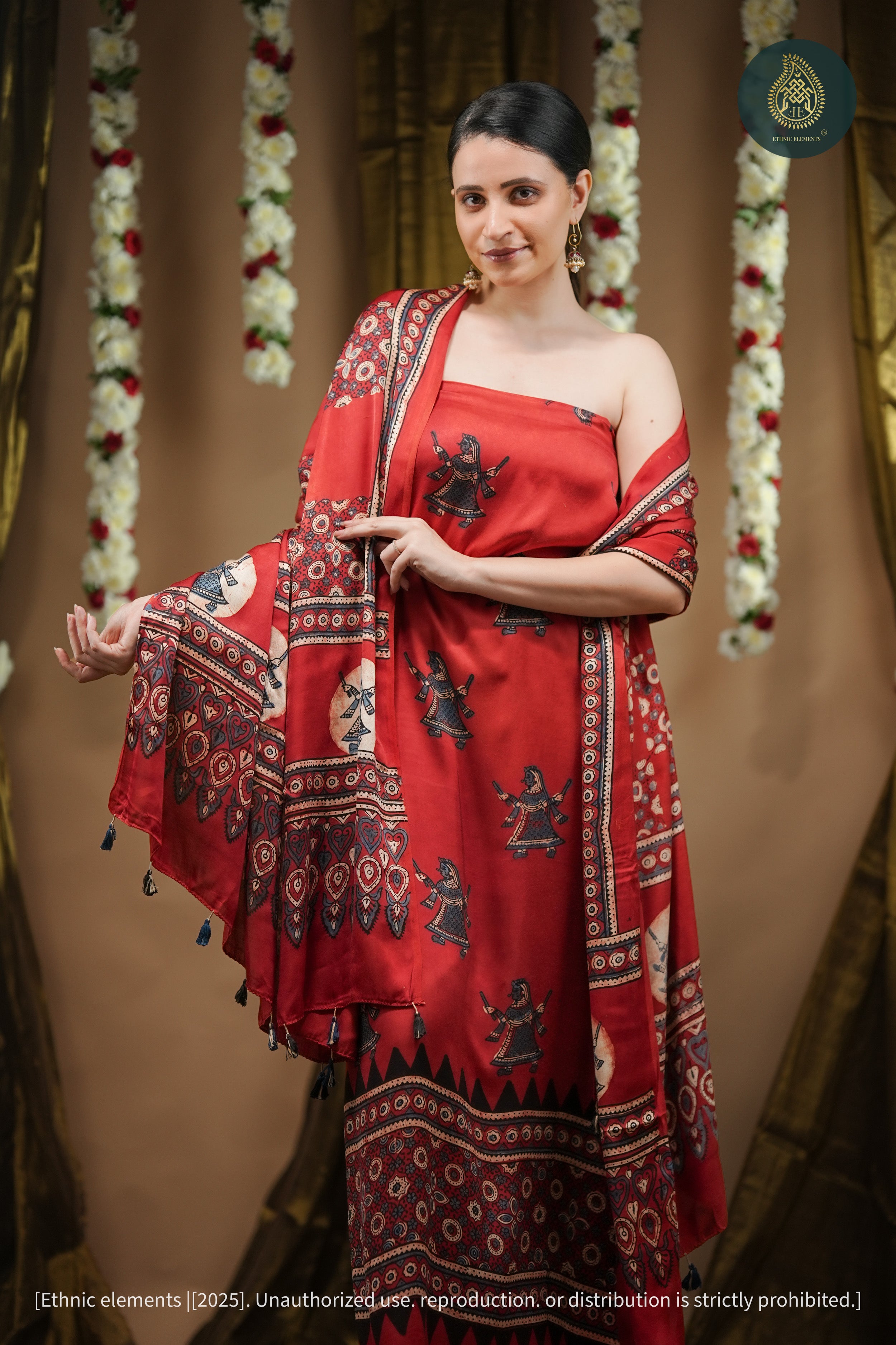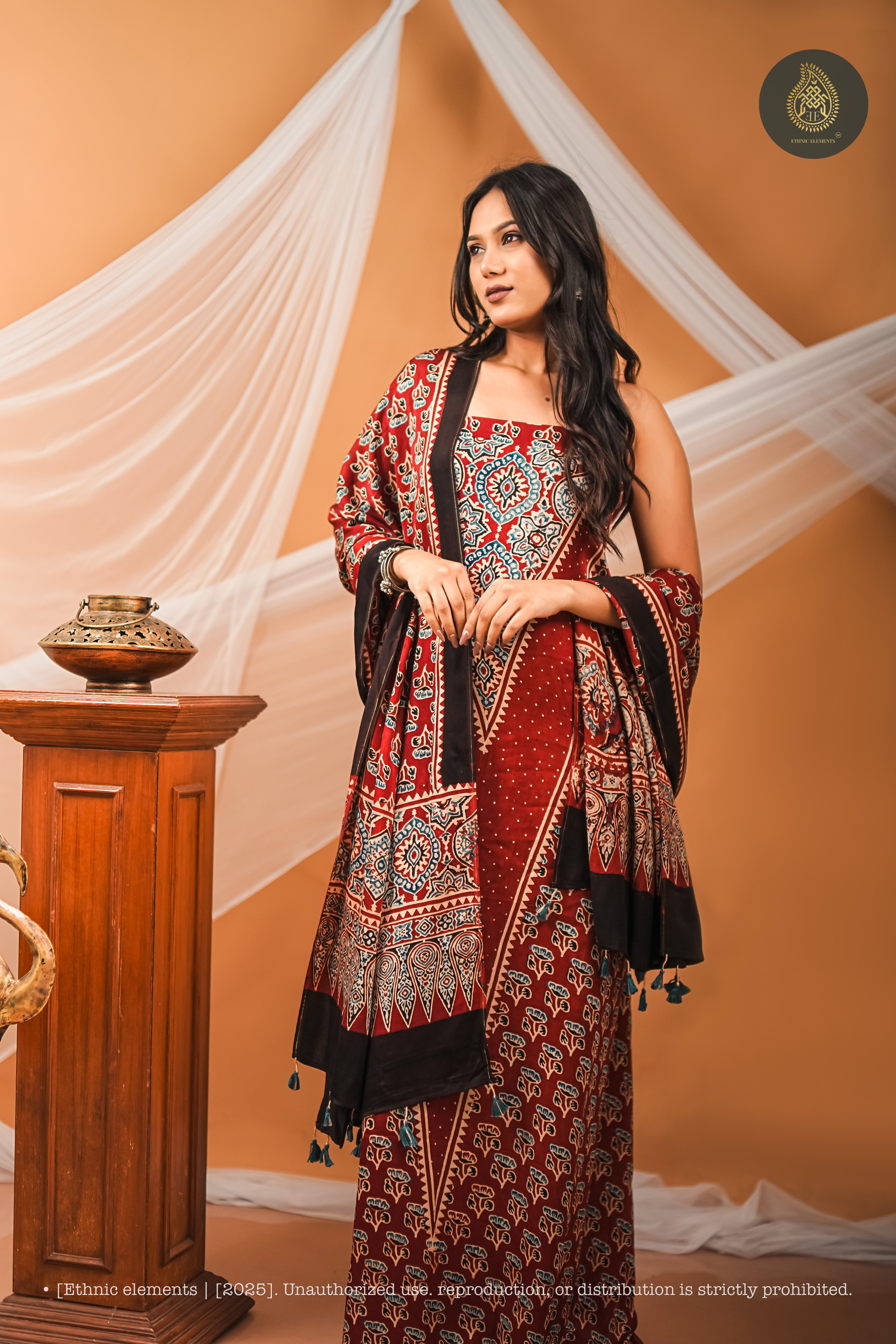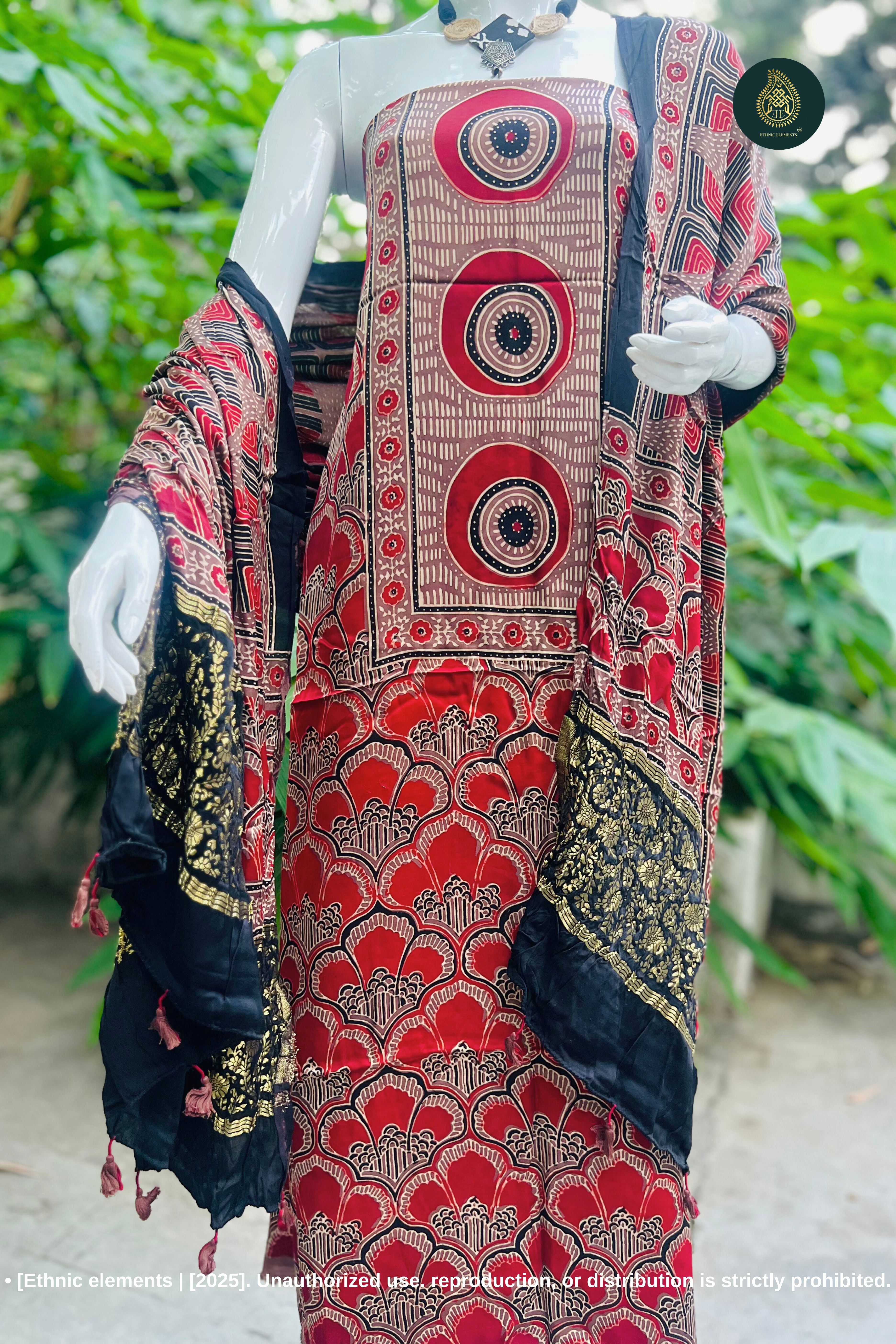 Lal Raas Ajrakh Modal Silk Suit Set 3Pc