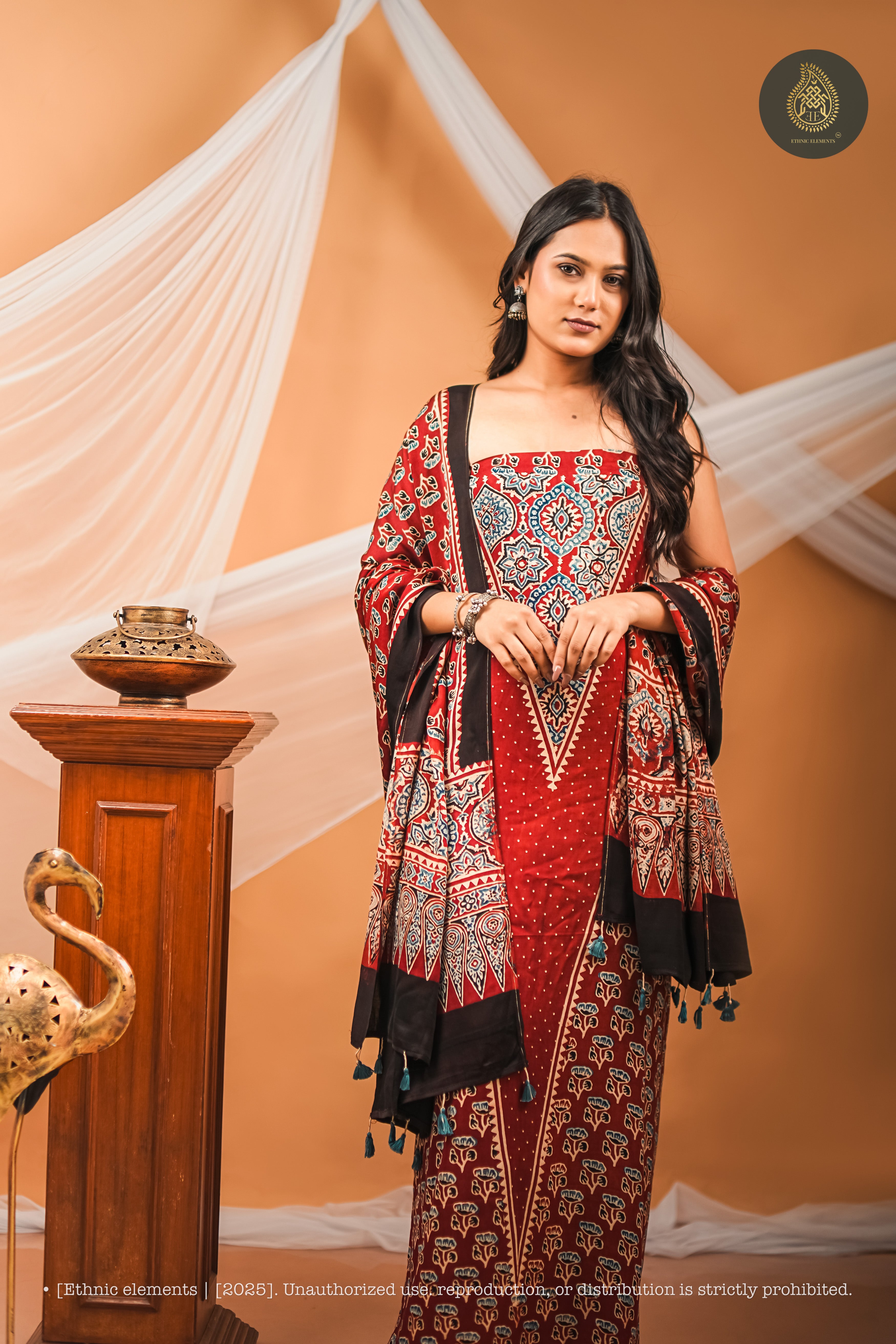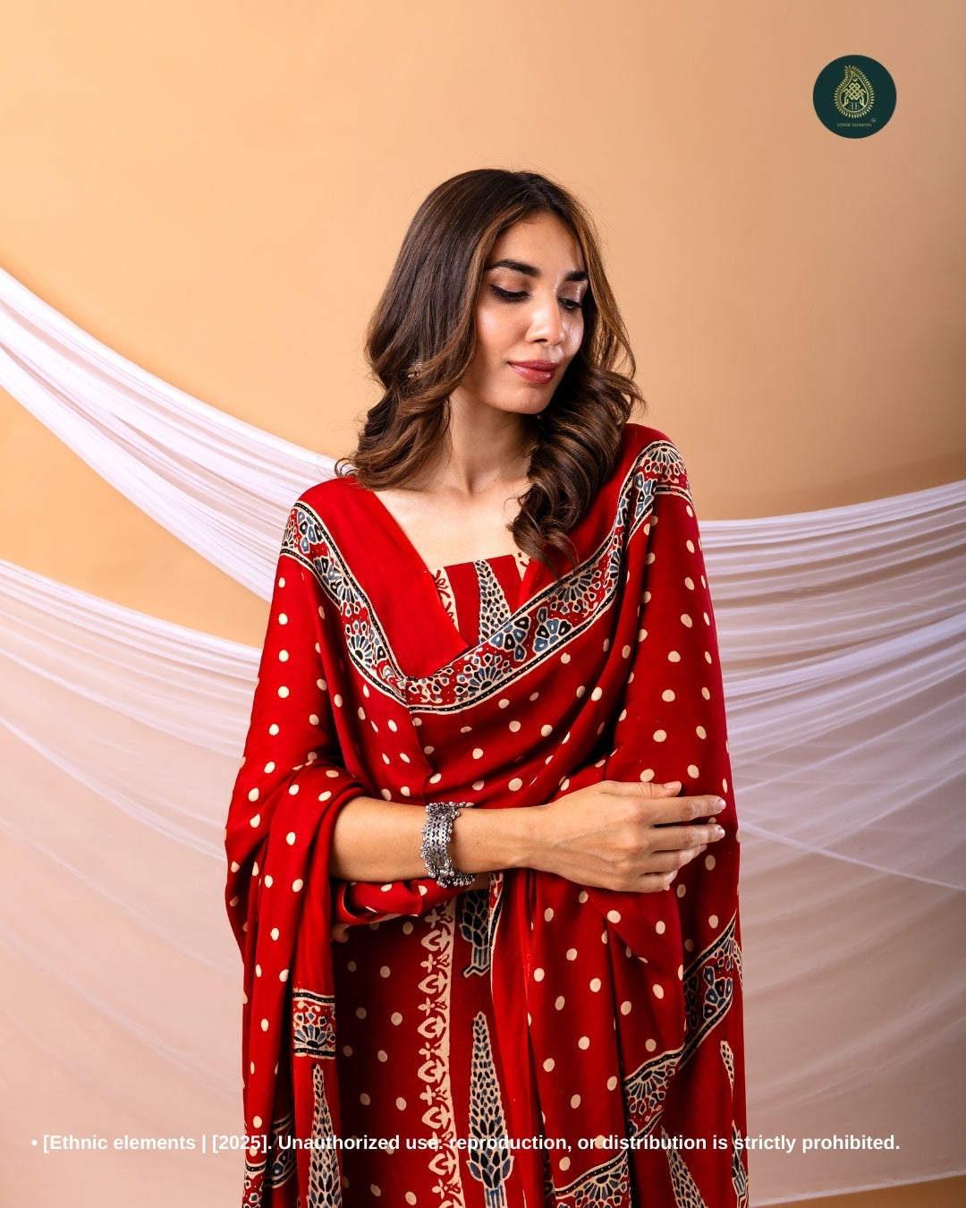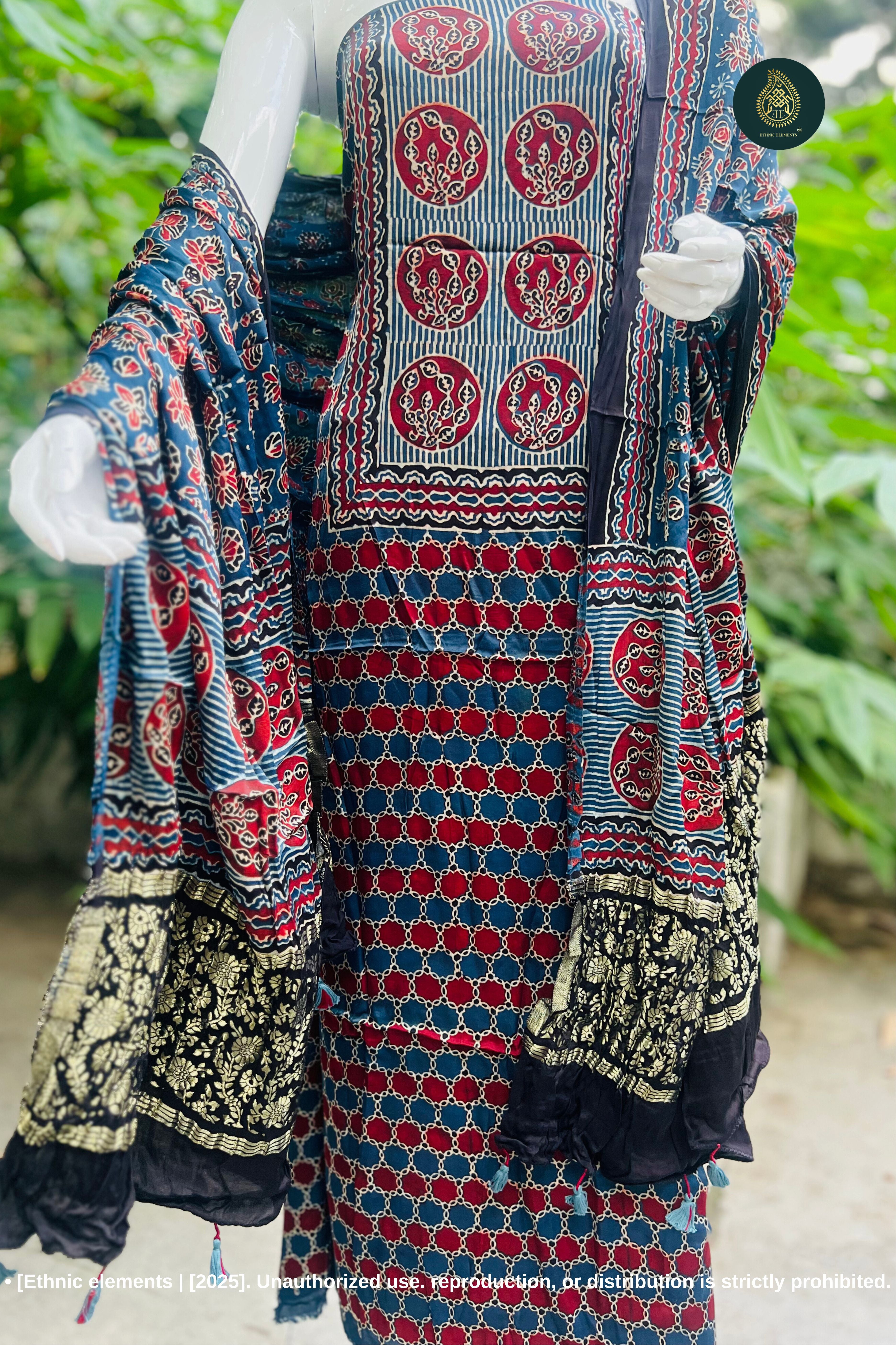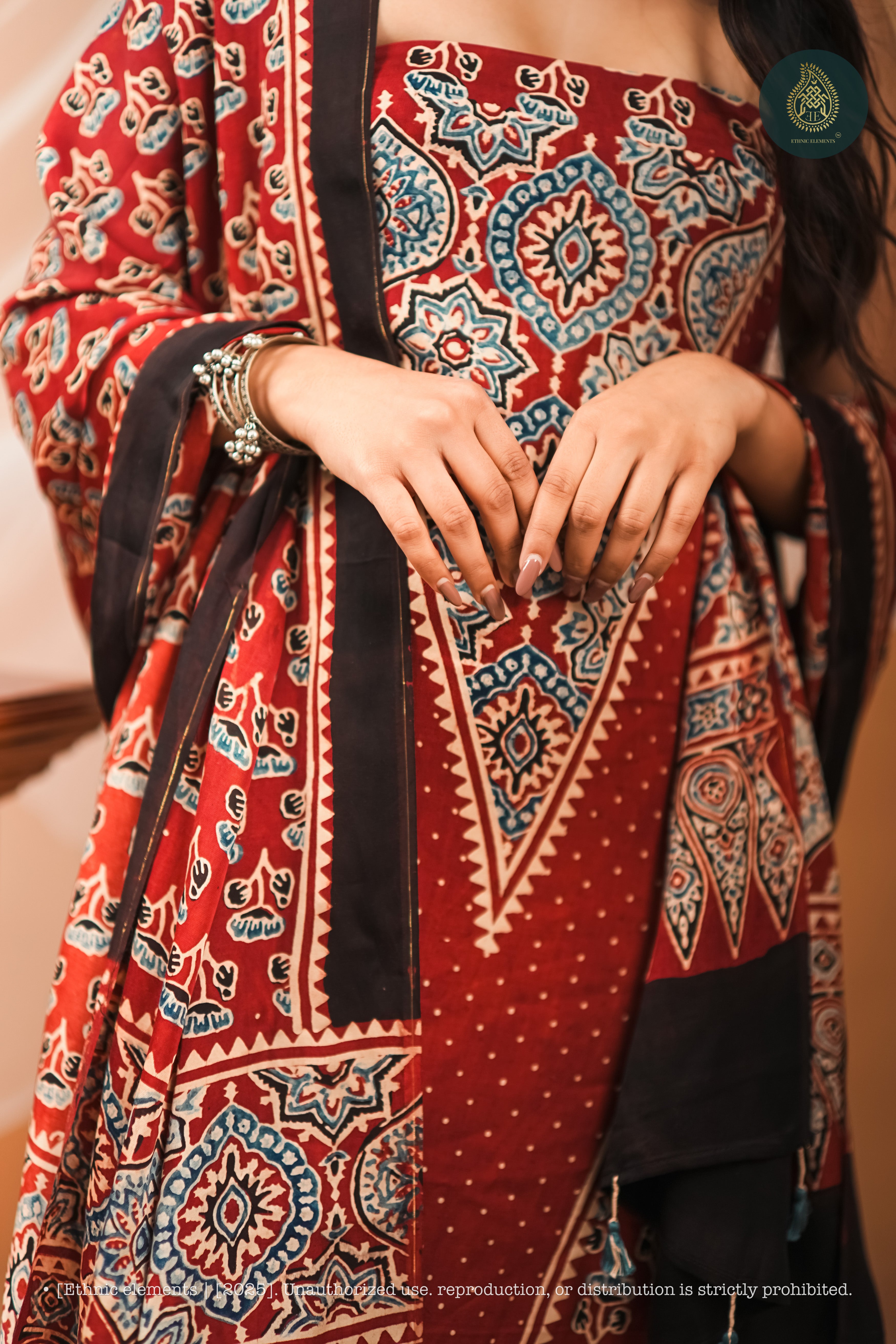 Lal Raas Ajrakh Modal Silk Suit Set 3Pc