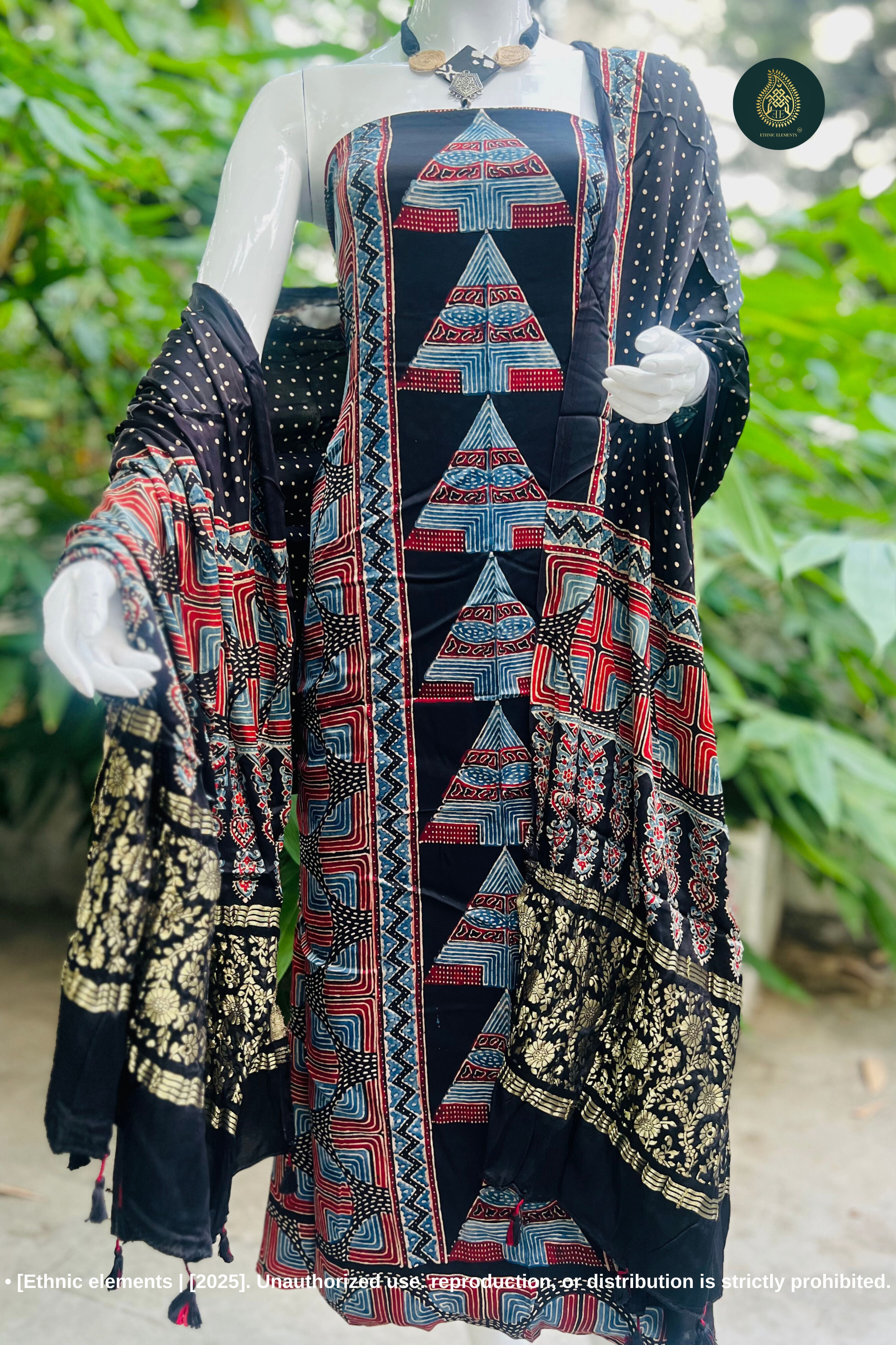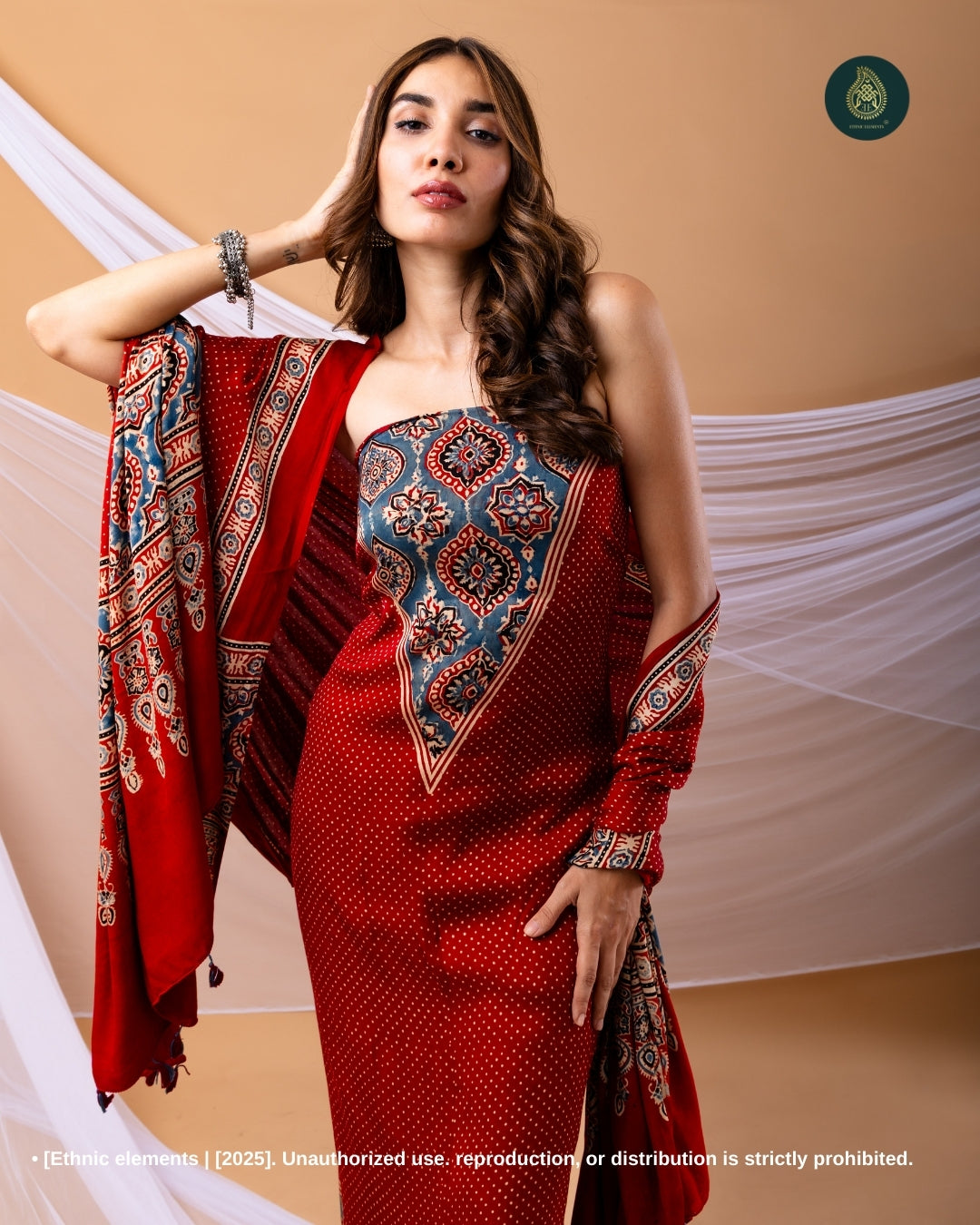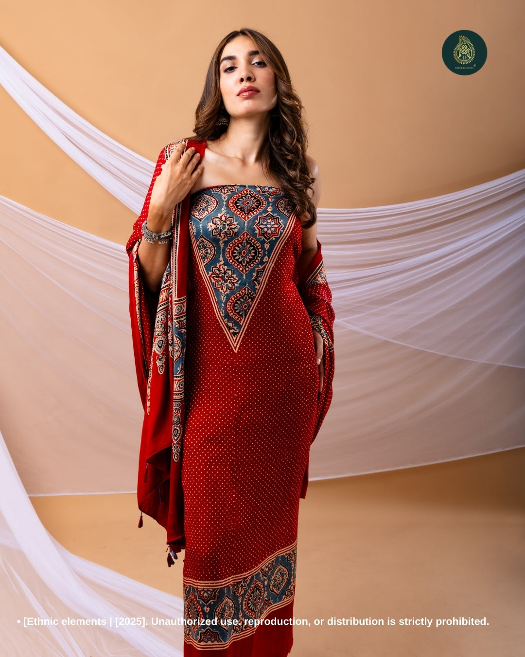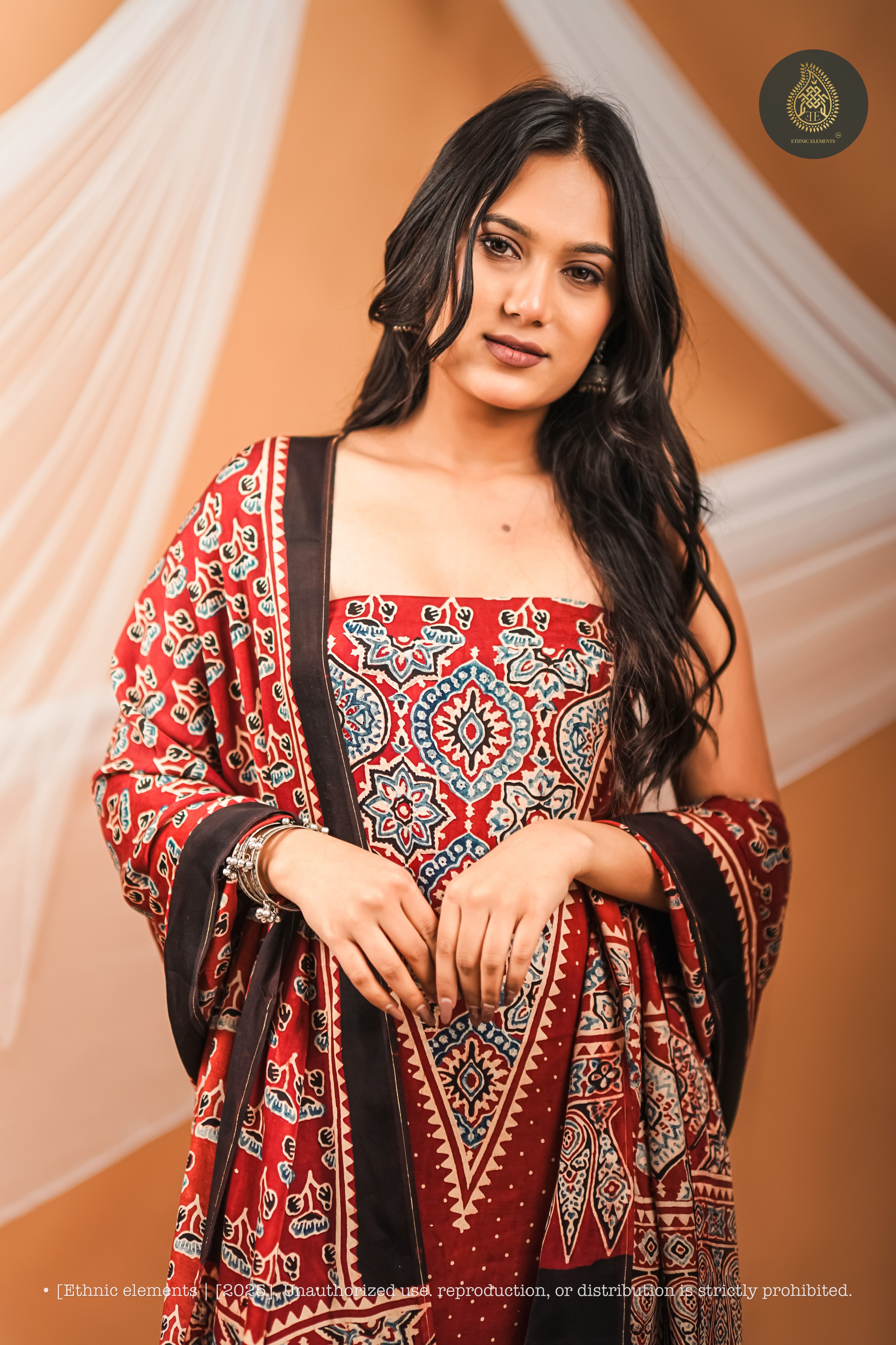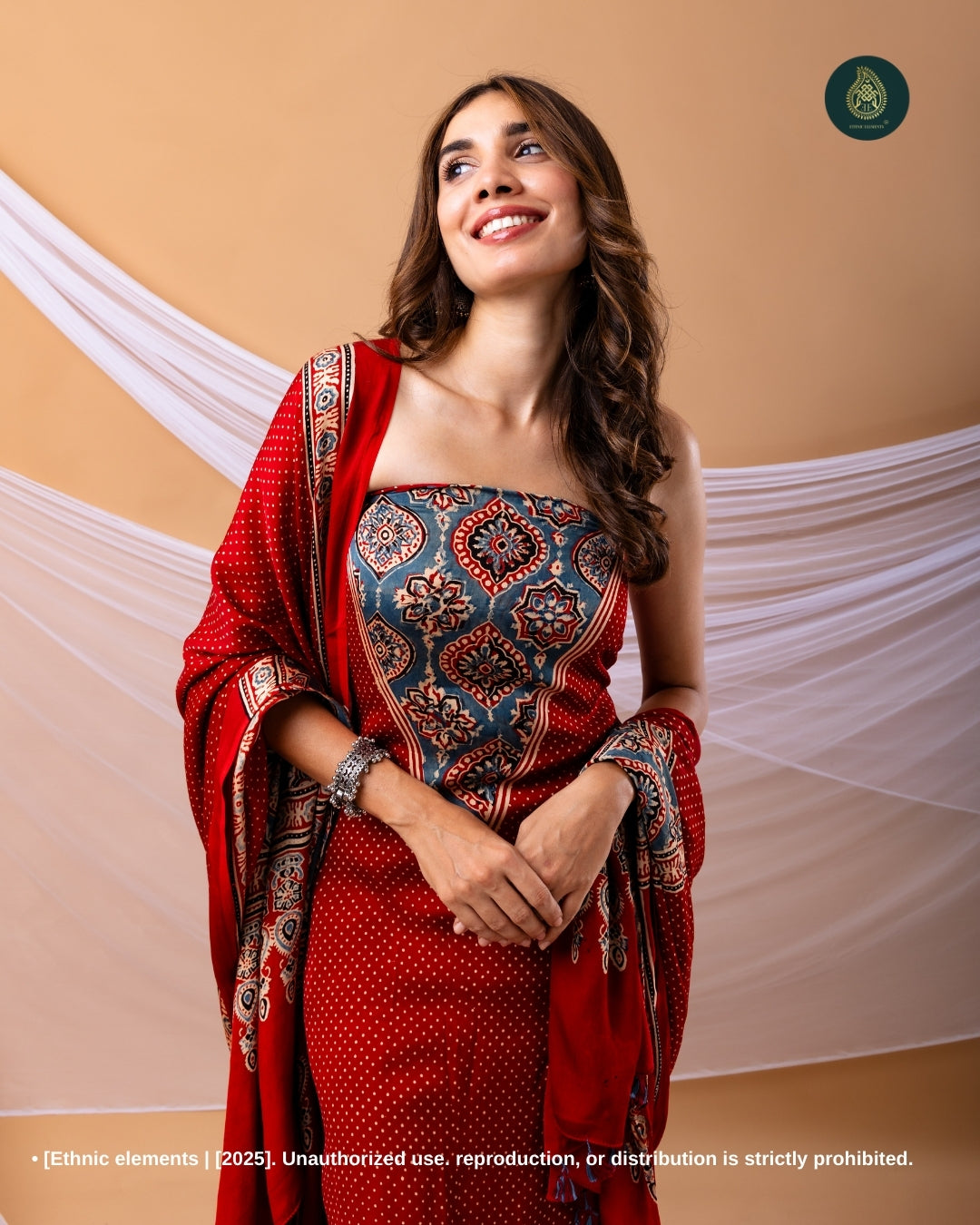 Lal Raas Ajrakh Modal Silk Suit Set 3Pc