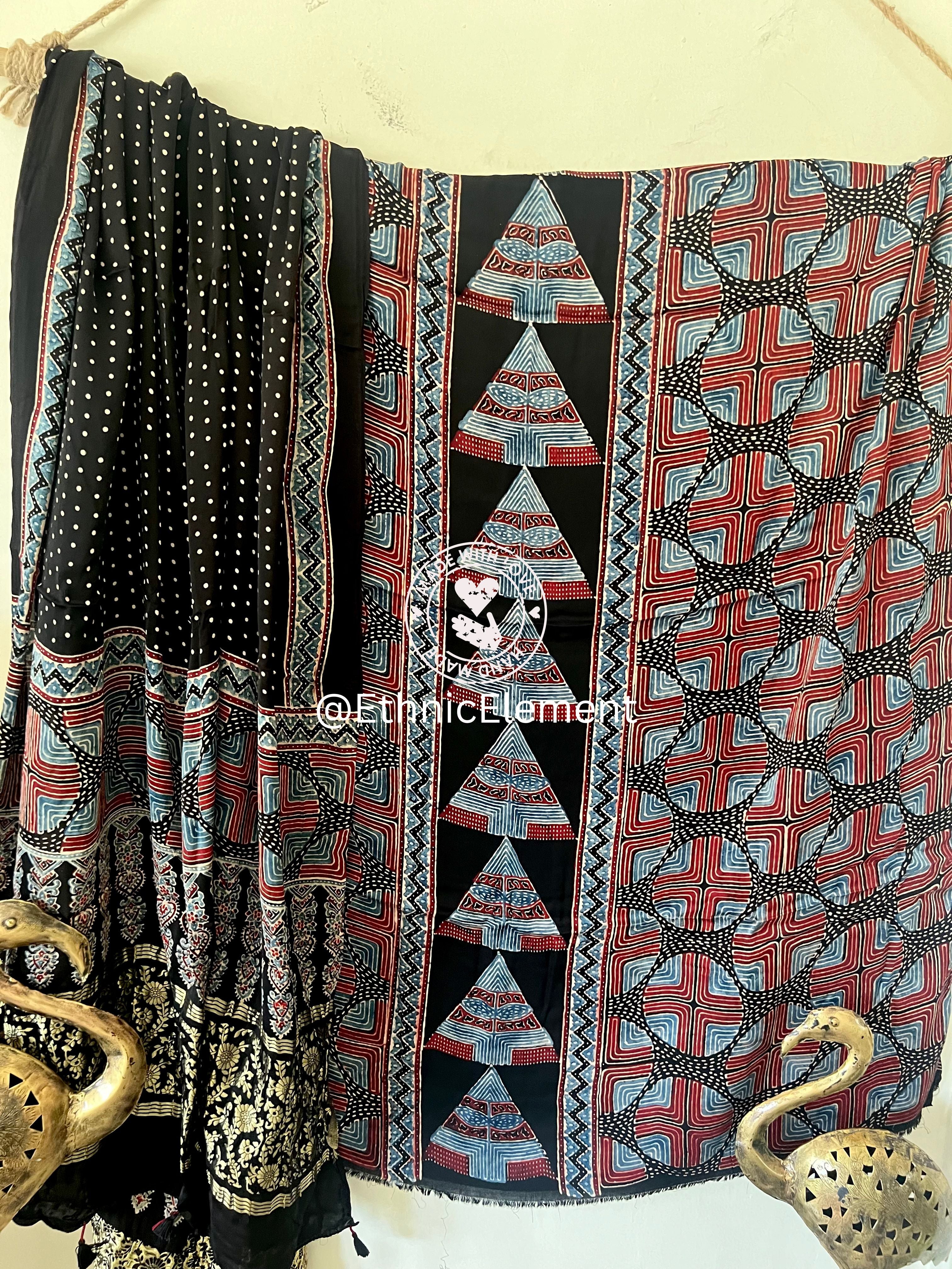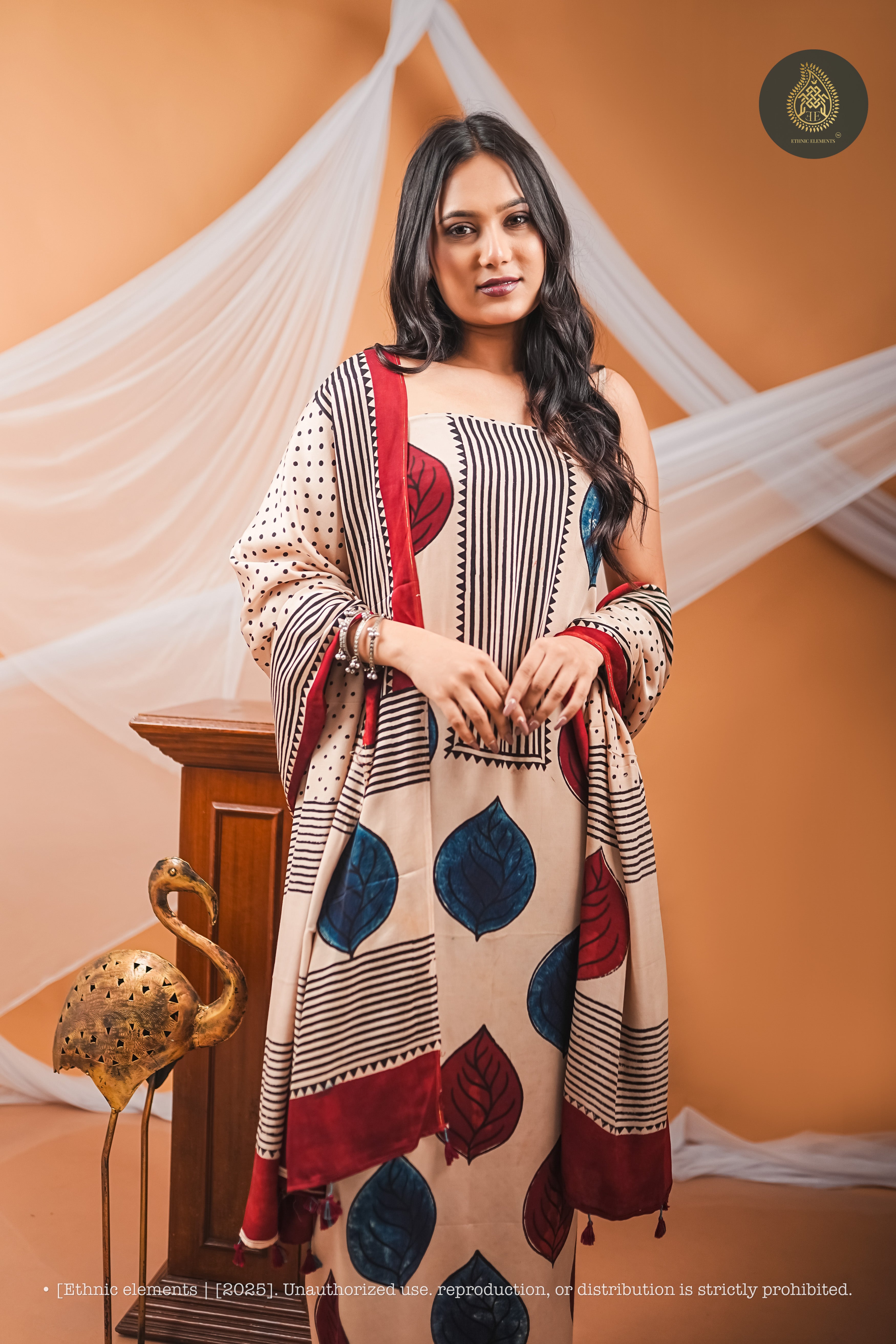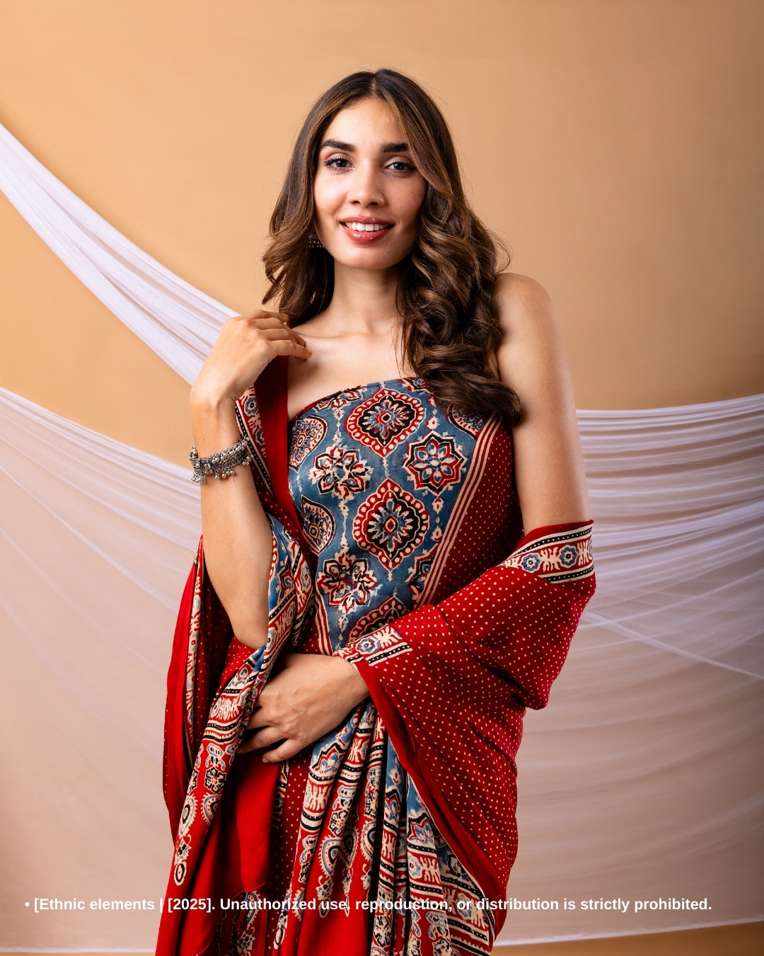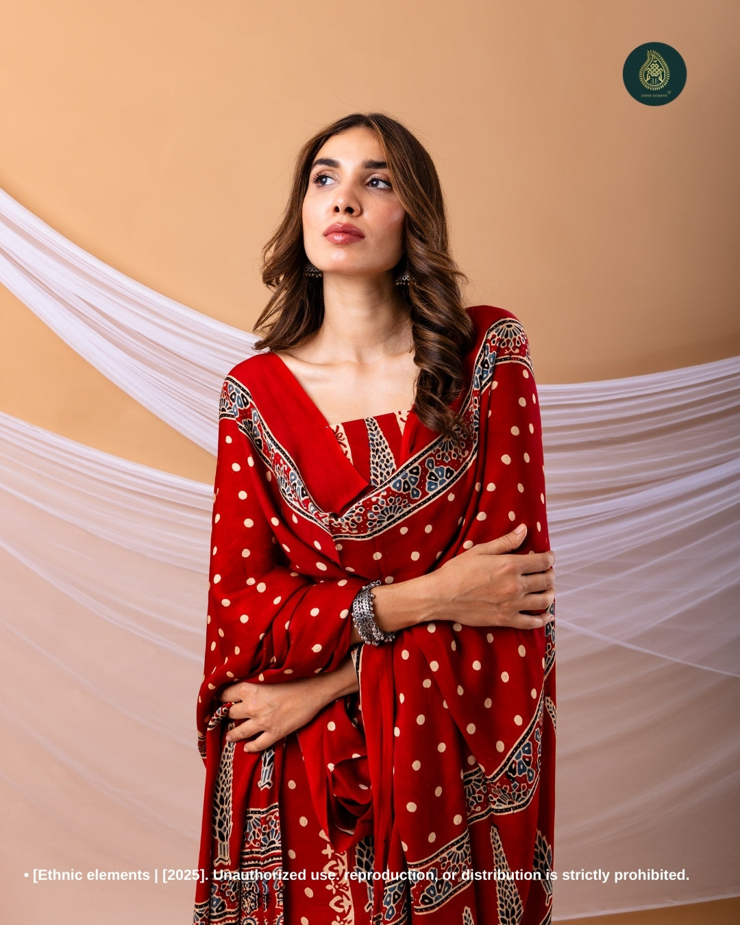 Lal Raas Ajrakh Modal Silk Suit Set 3Pc