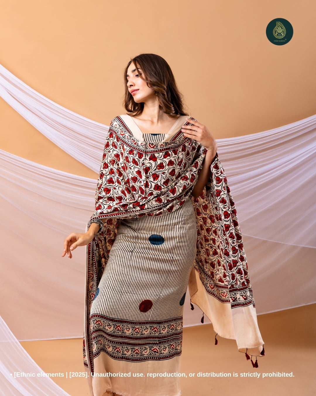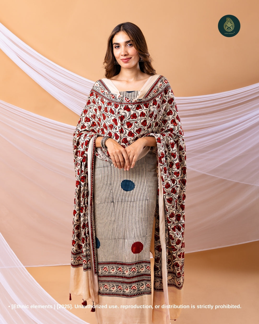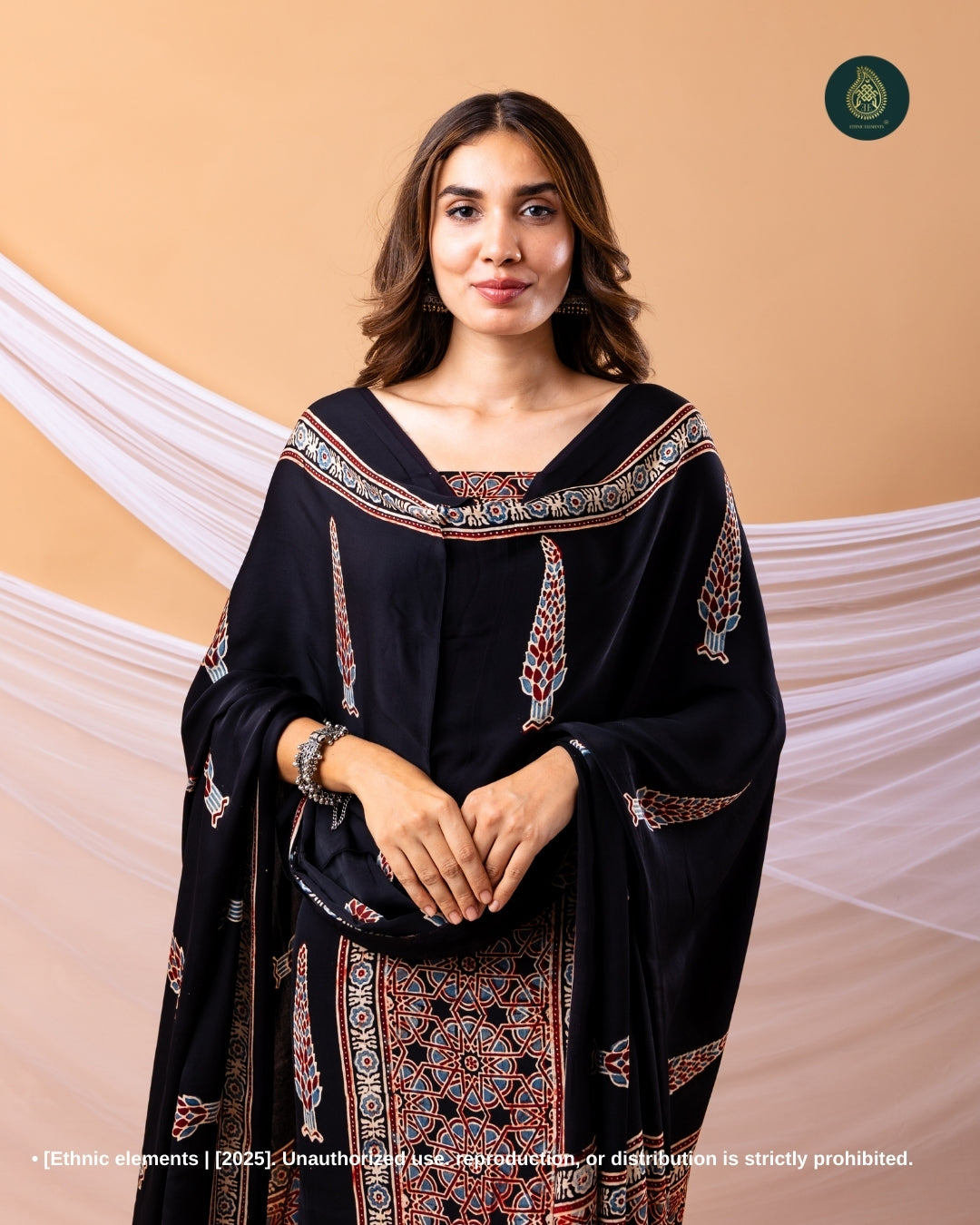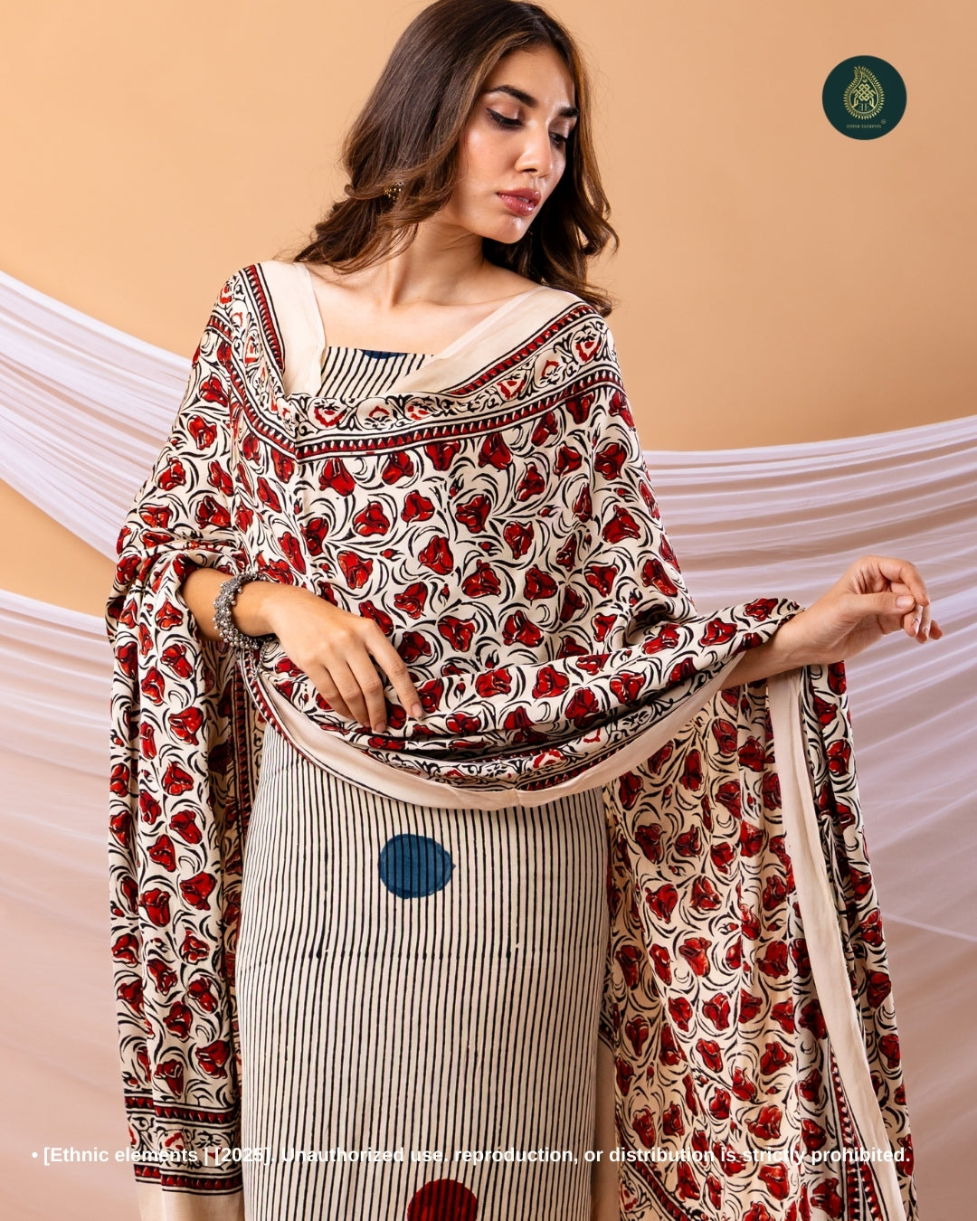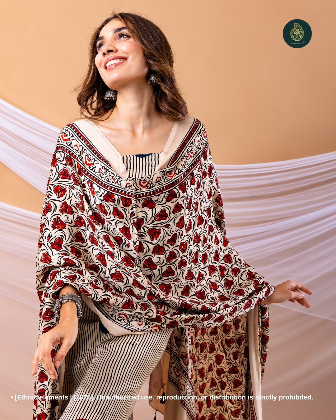Lal Raas Ajrakh Modal Silk Suit Set 3Pc