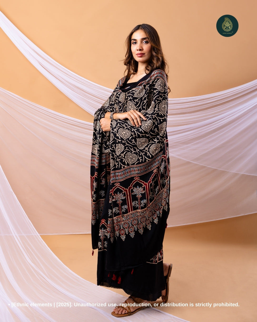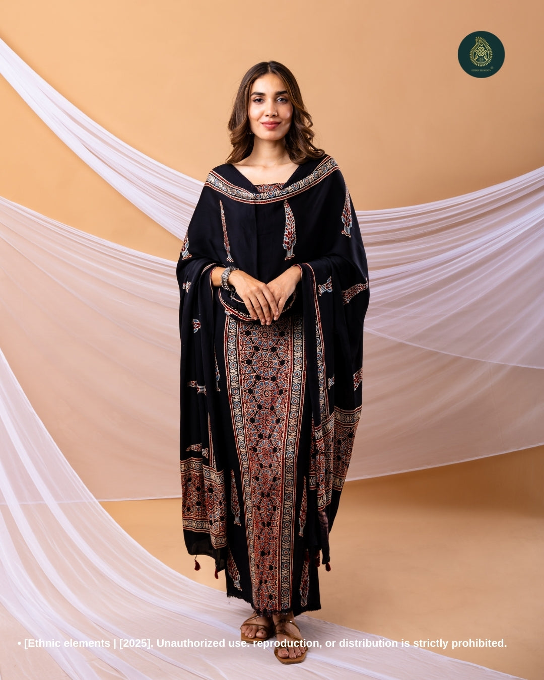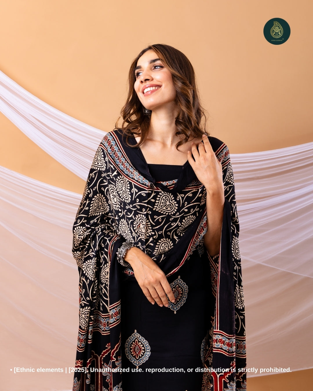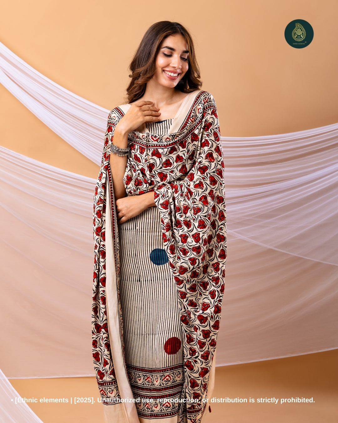 Lal Raas Ajrakh Modal Silk Suit Set 3Pc