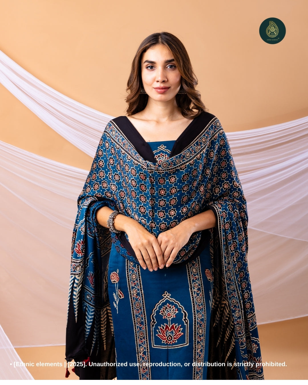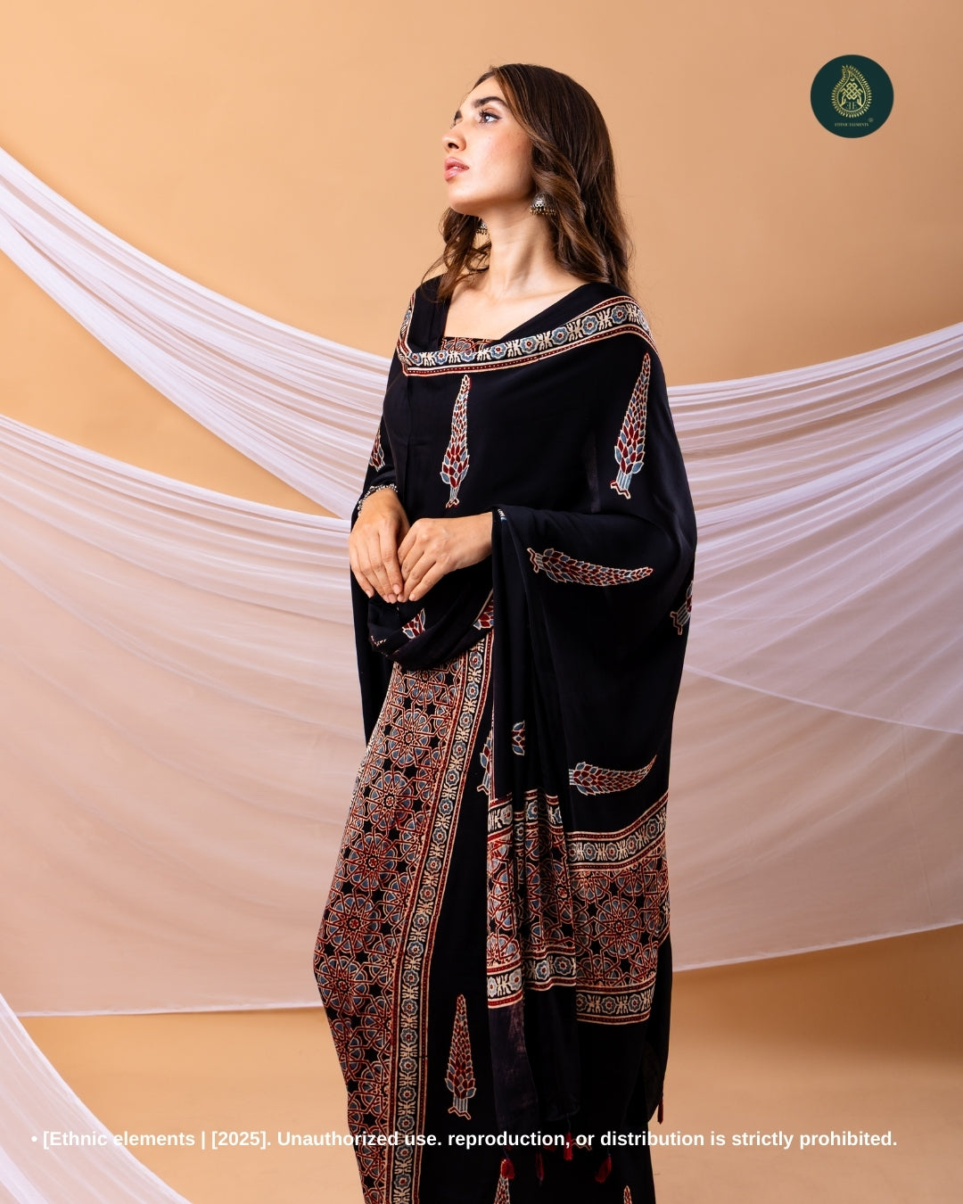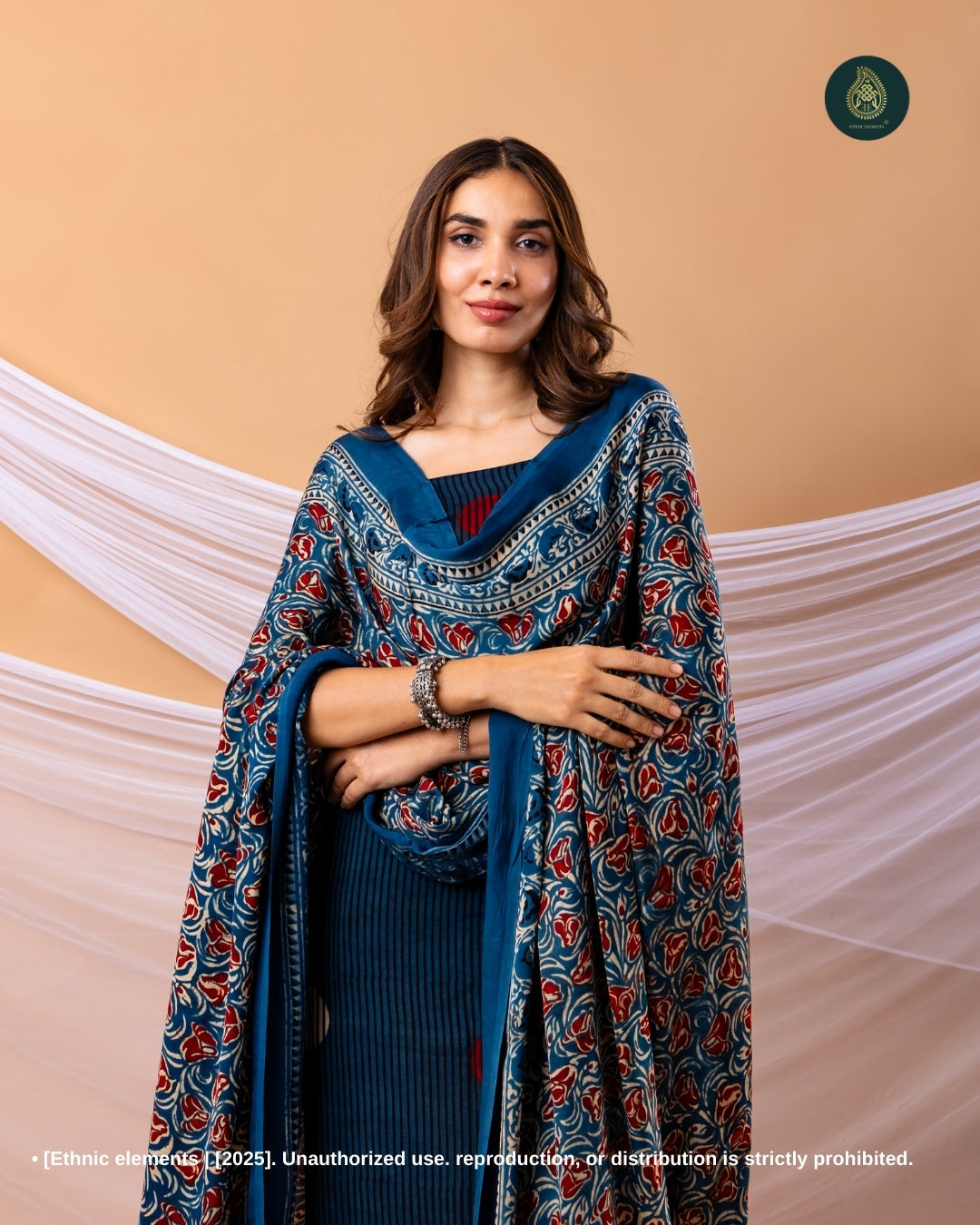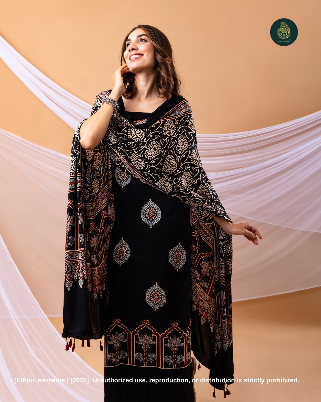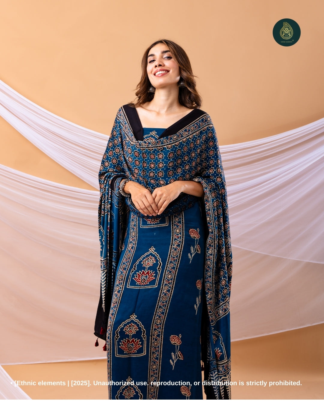 Lal Raas Ajrakh Modal Silk Suit Set 3Pc