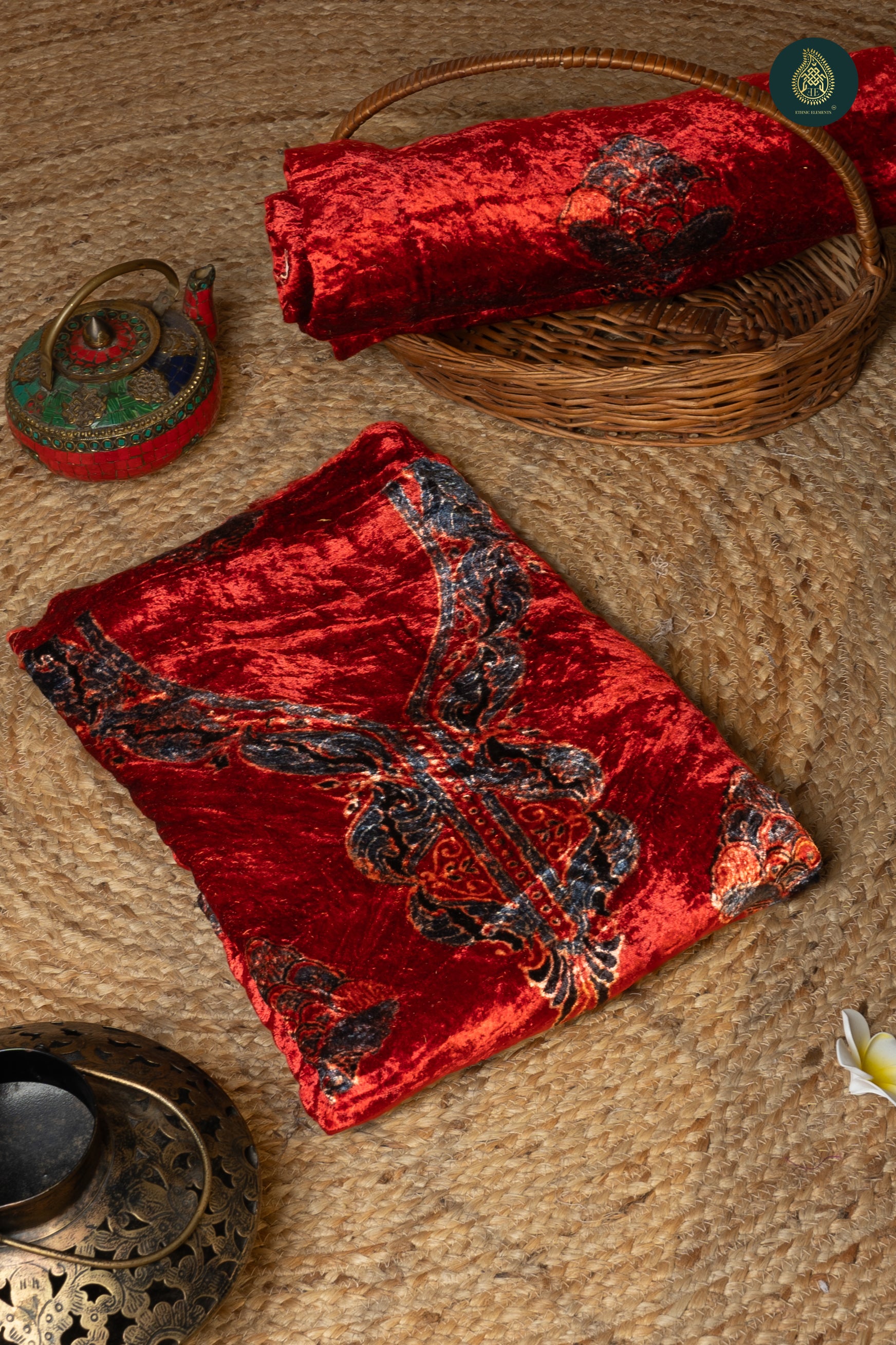 Velvet Ajrakh/Ajrak fabric for kurta. The Ajrakh blocks are made using wooden blocks and organic natural colors. This is only a kurta fabric piece.