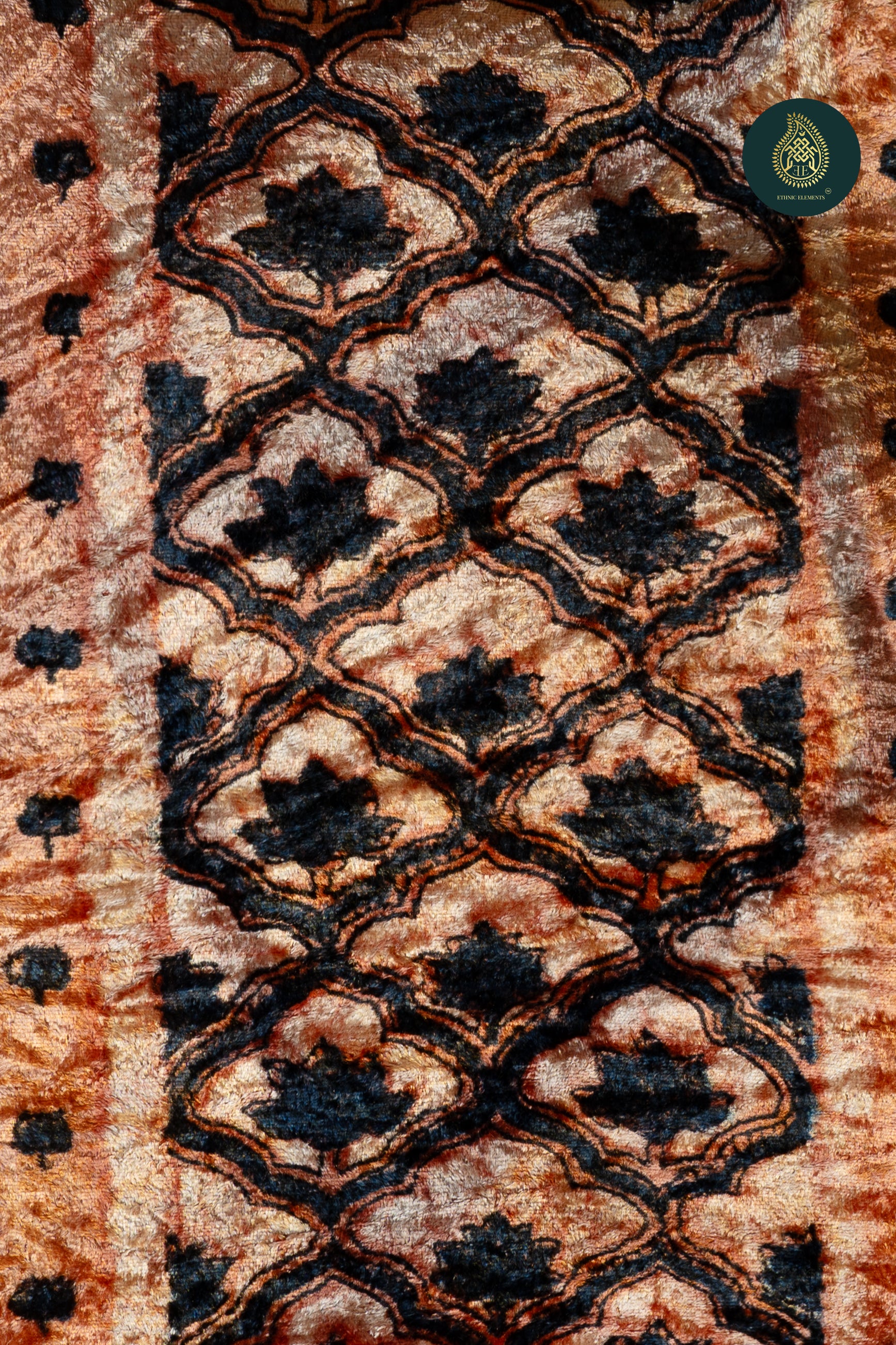 Ajrakh Velvet Anitique Sable Peach
