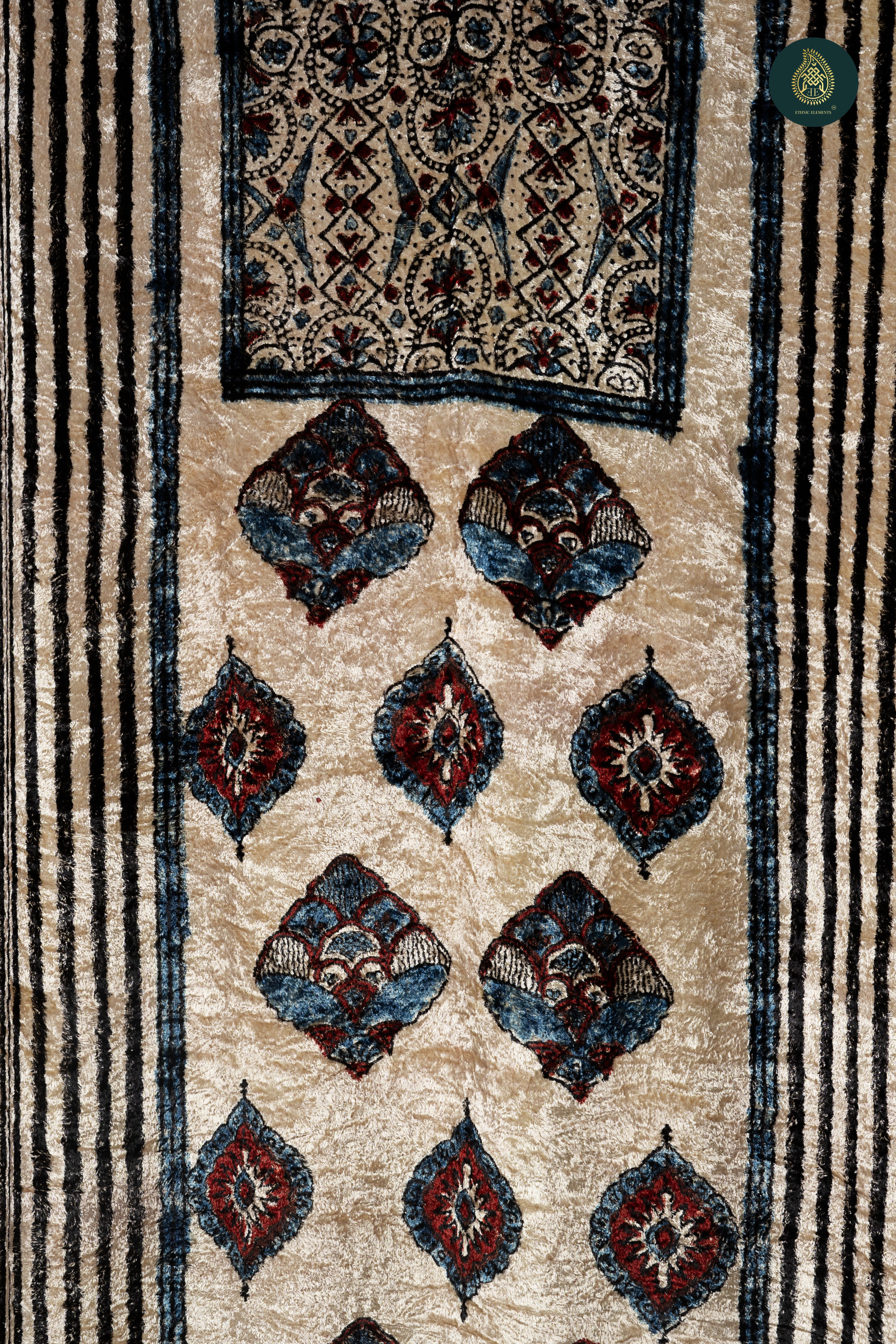 Ajrakh Velvet Anitique Sandal Sky Bloom