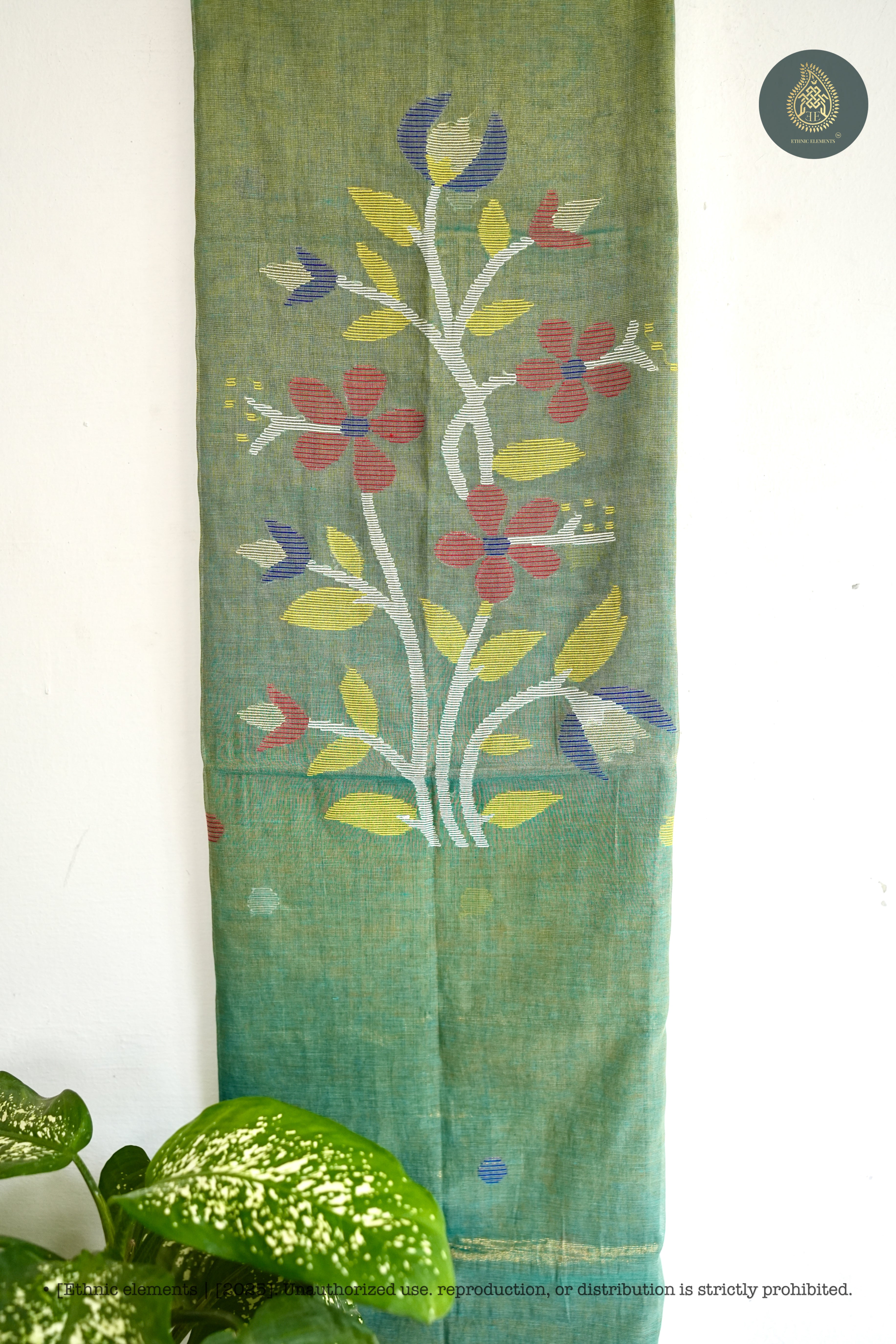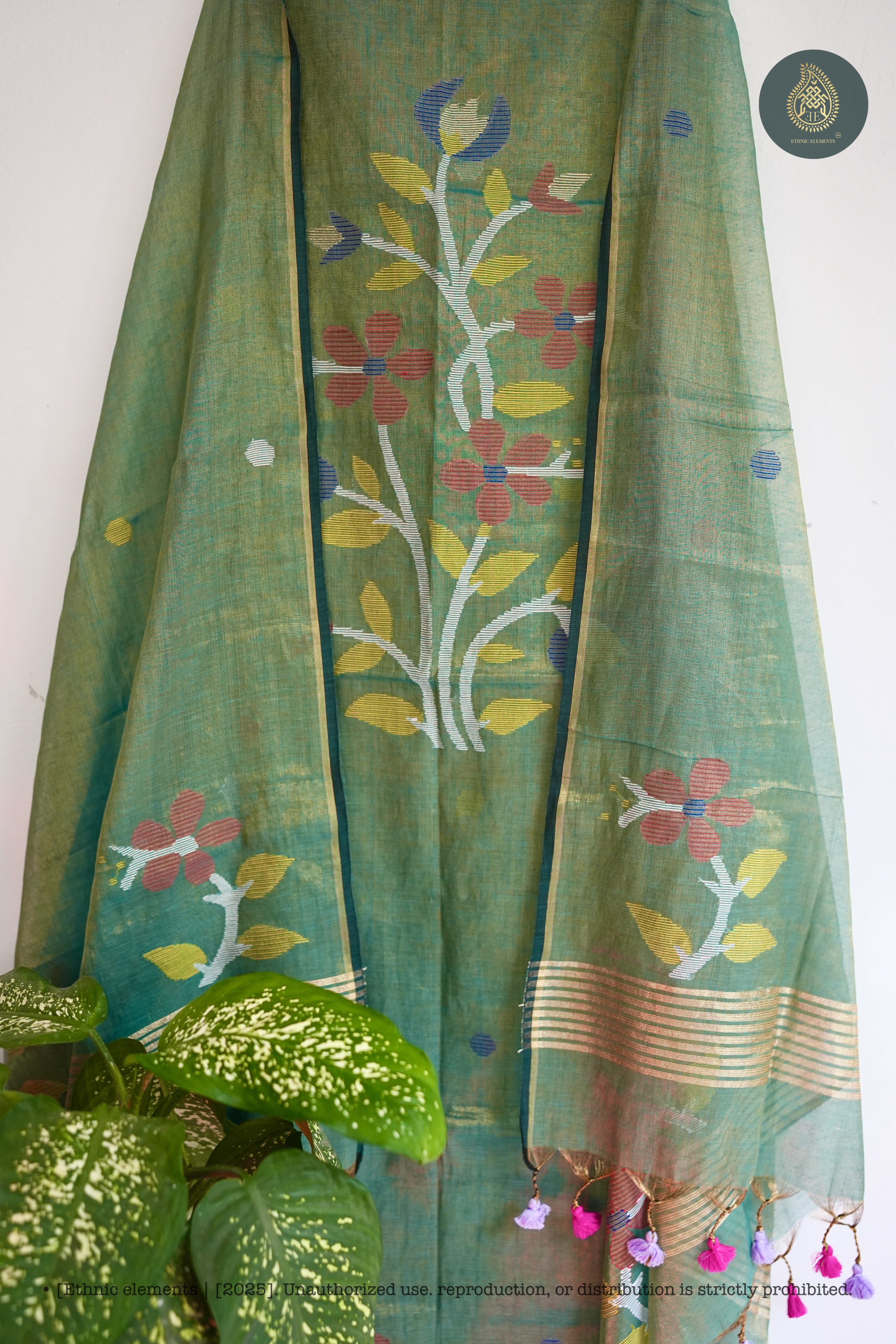 Tissue Maheswari Silk Unstitched 2pcs Suit Set- Moss Green