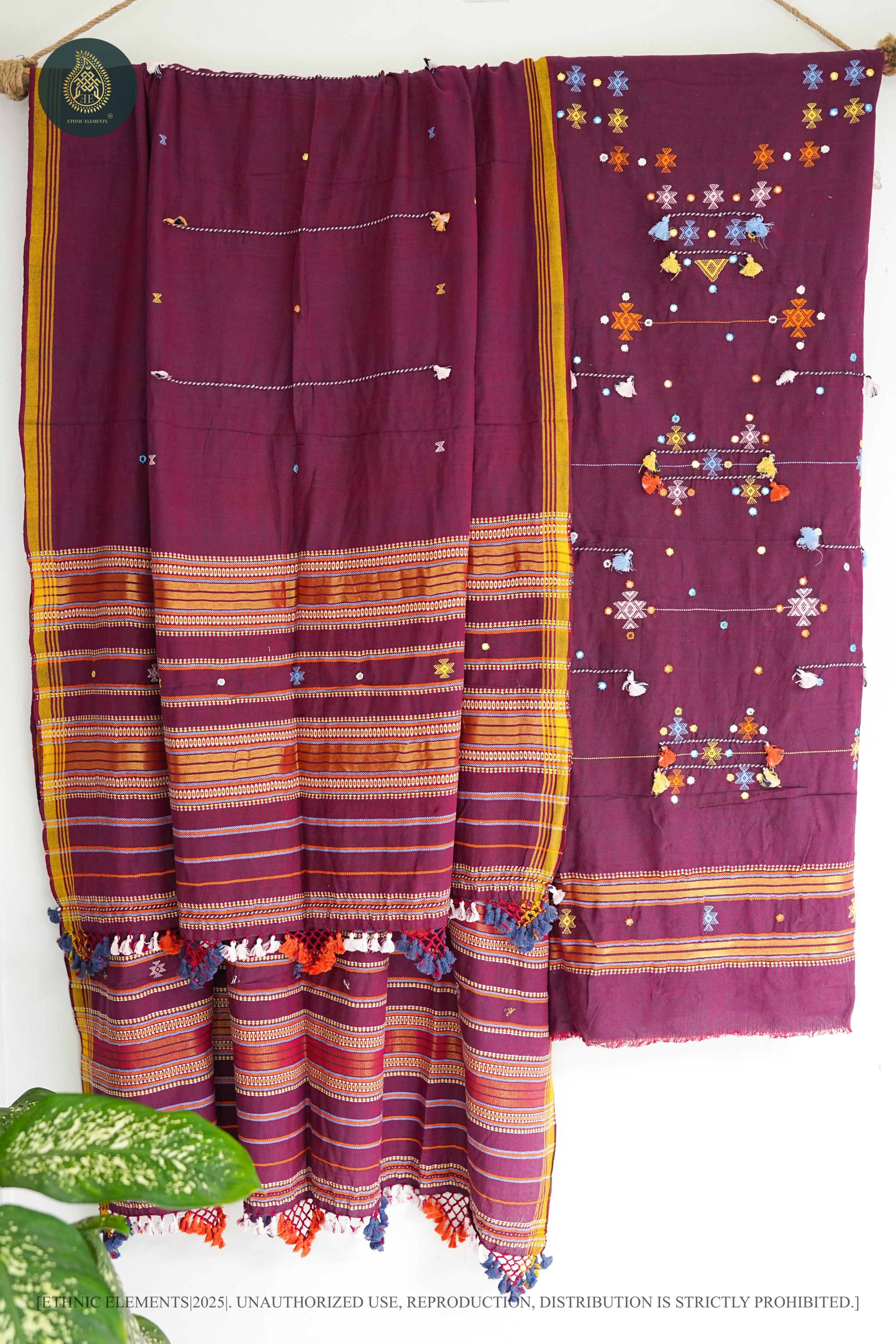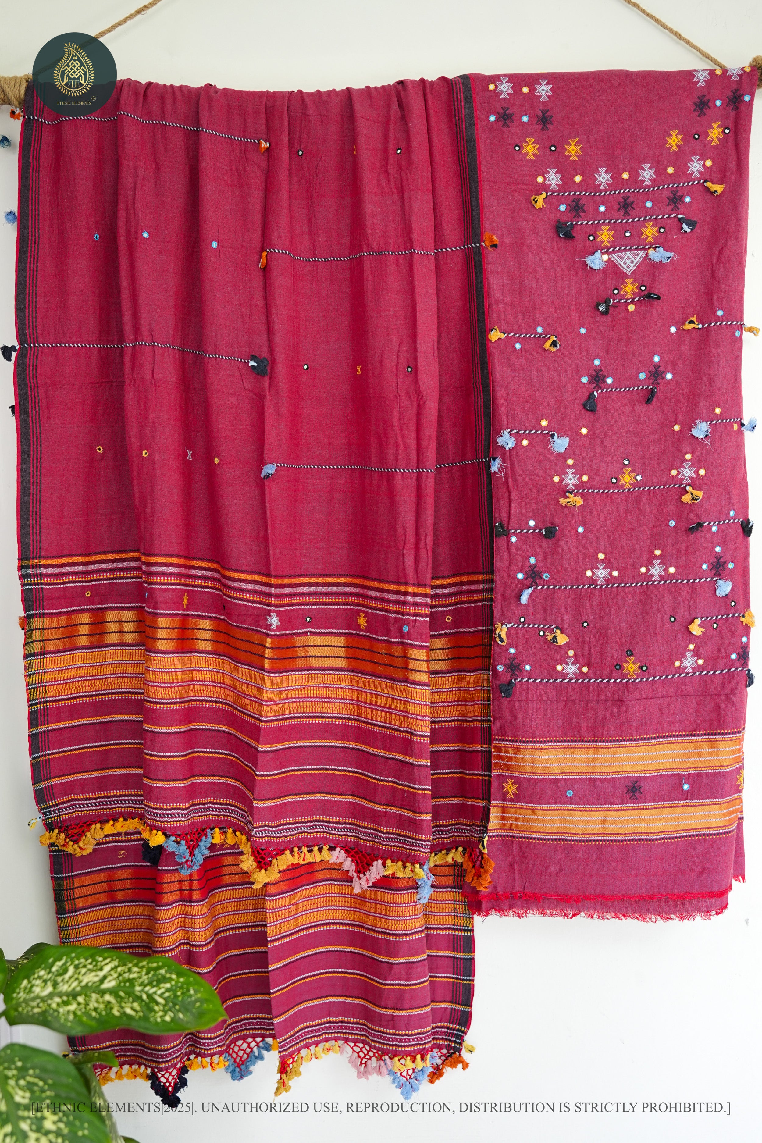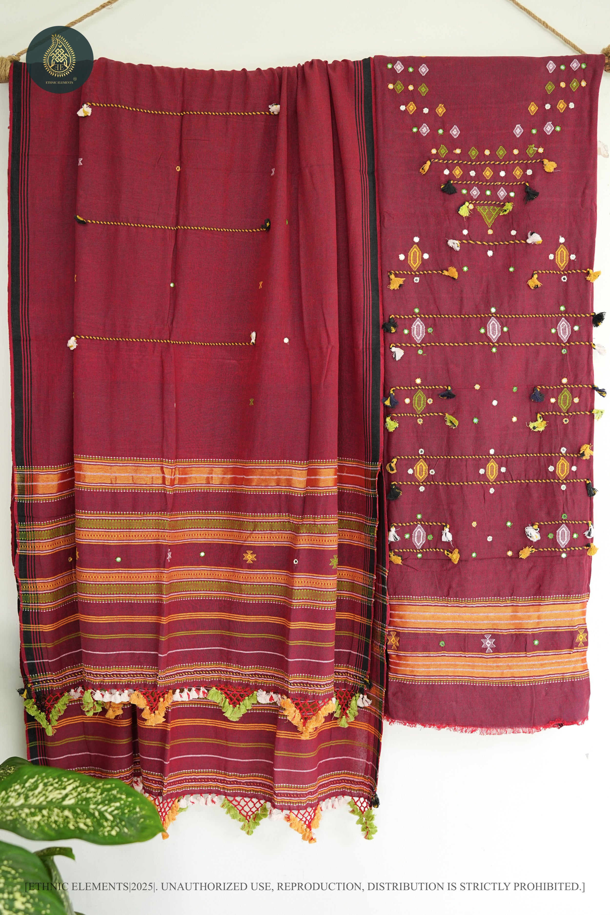Handloom Bhujodi Kala Cotton - Maroon Aura