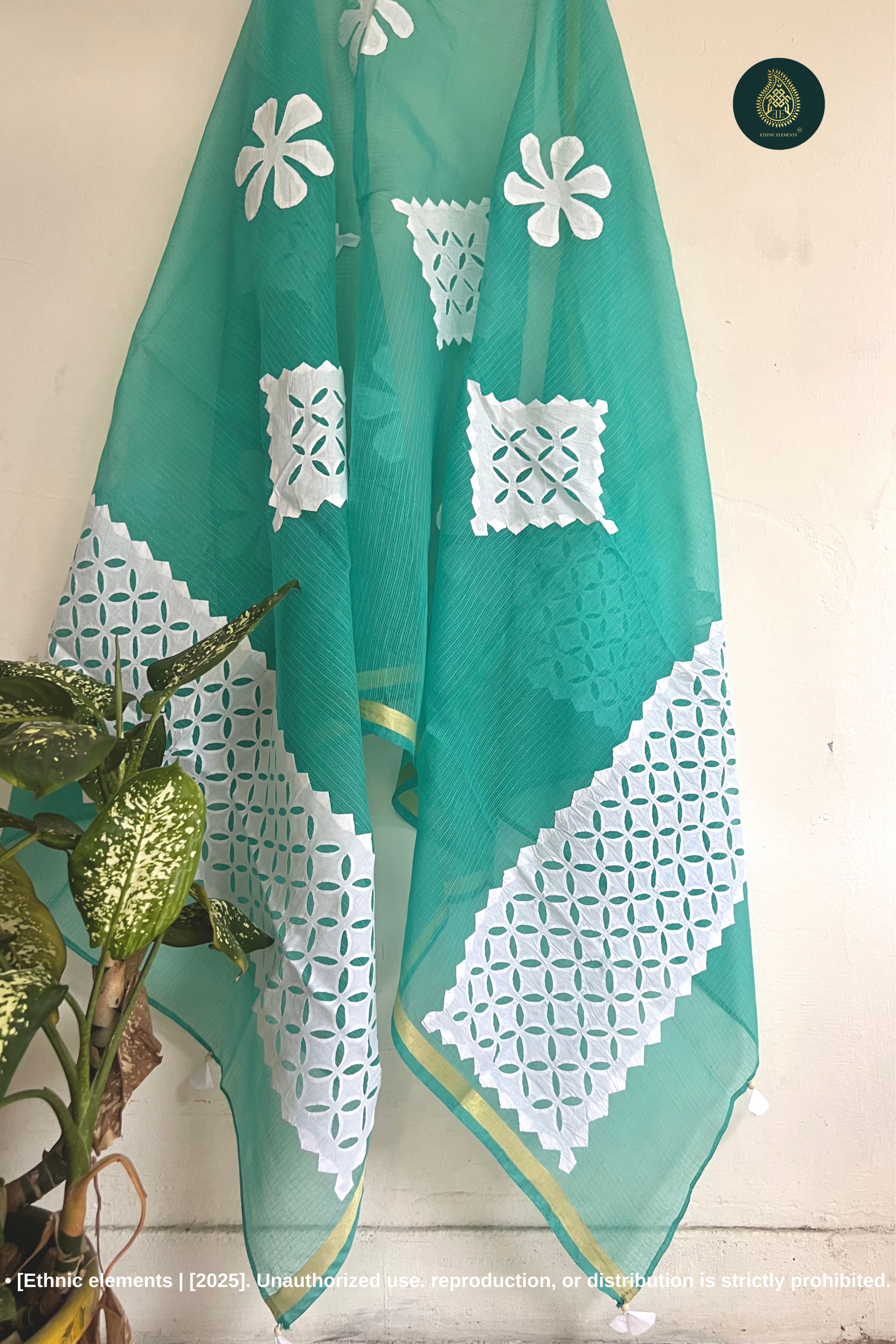 Barmer Cut Work Applique Kota Doria Cotton Suit Set 3pcs - Frozen Mint