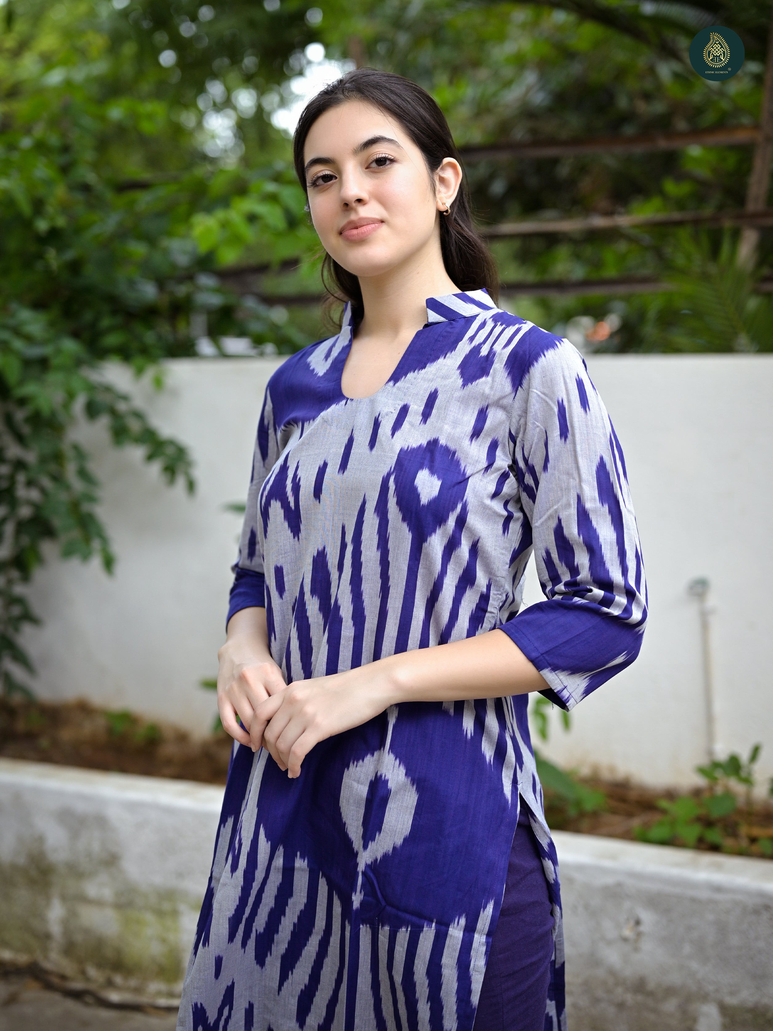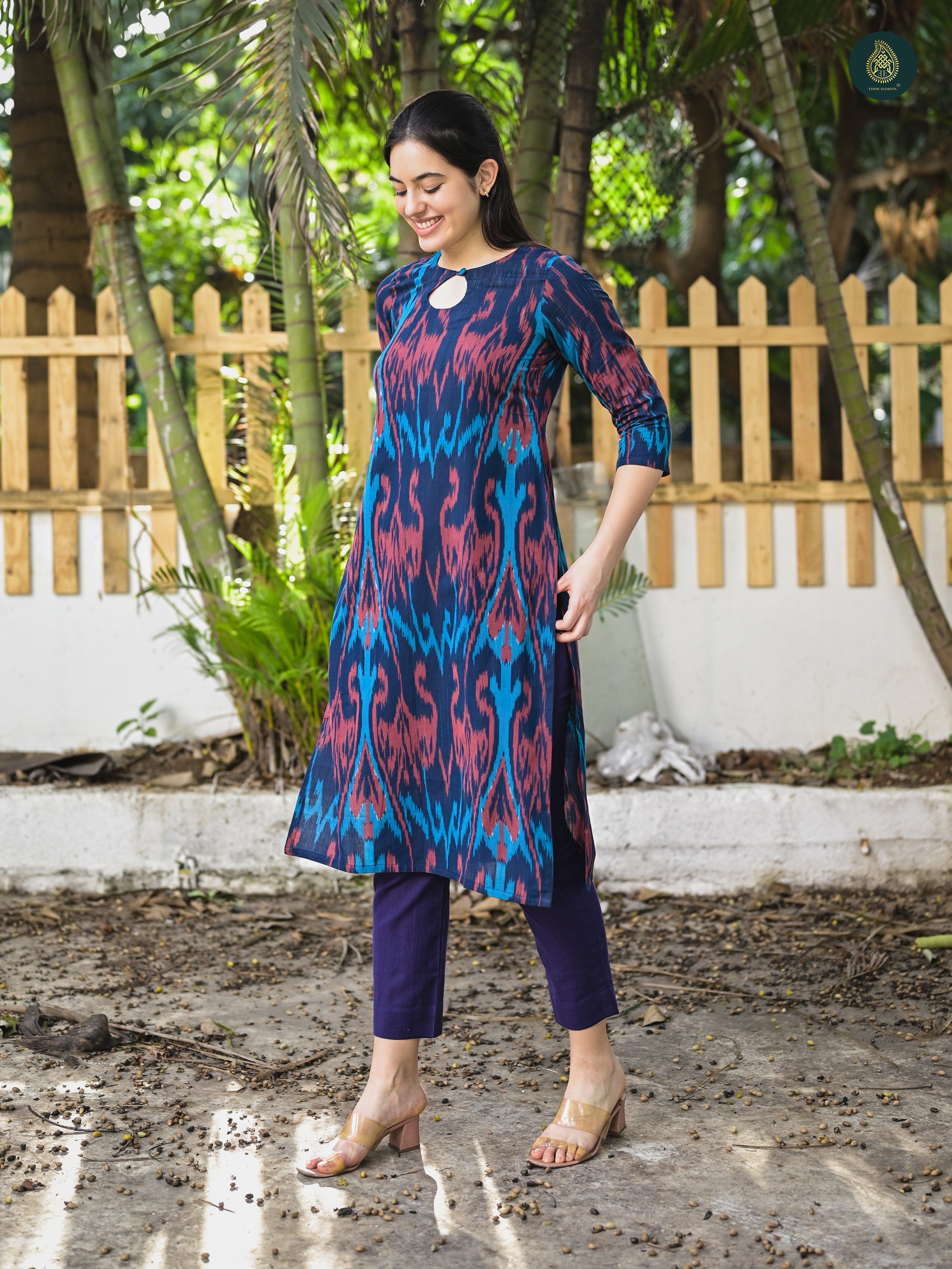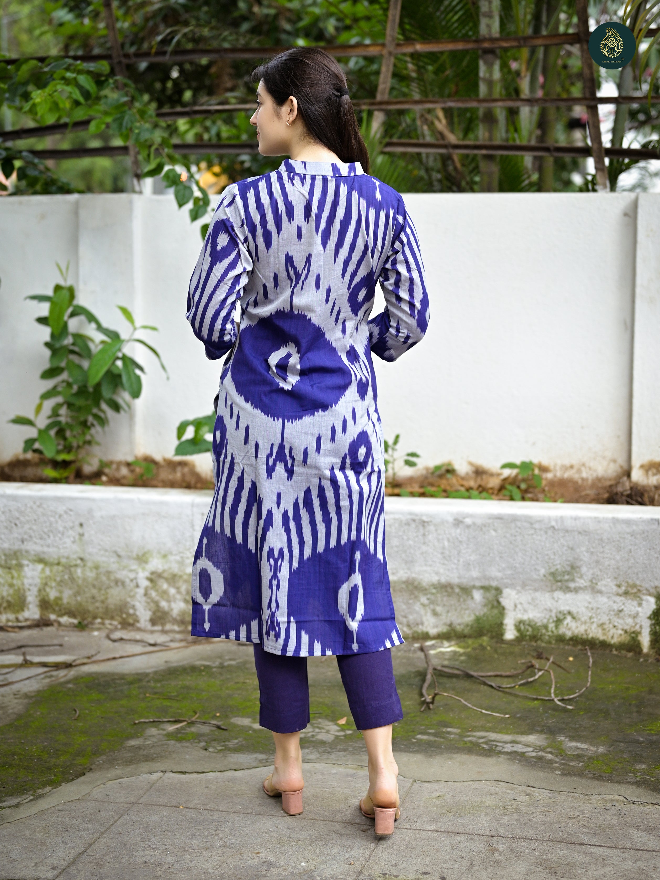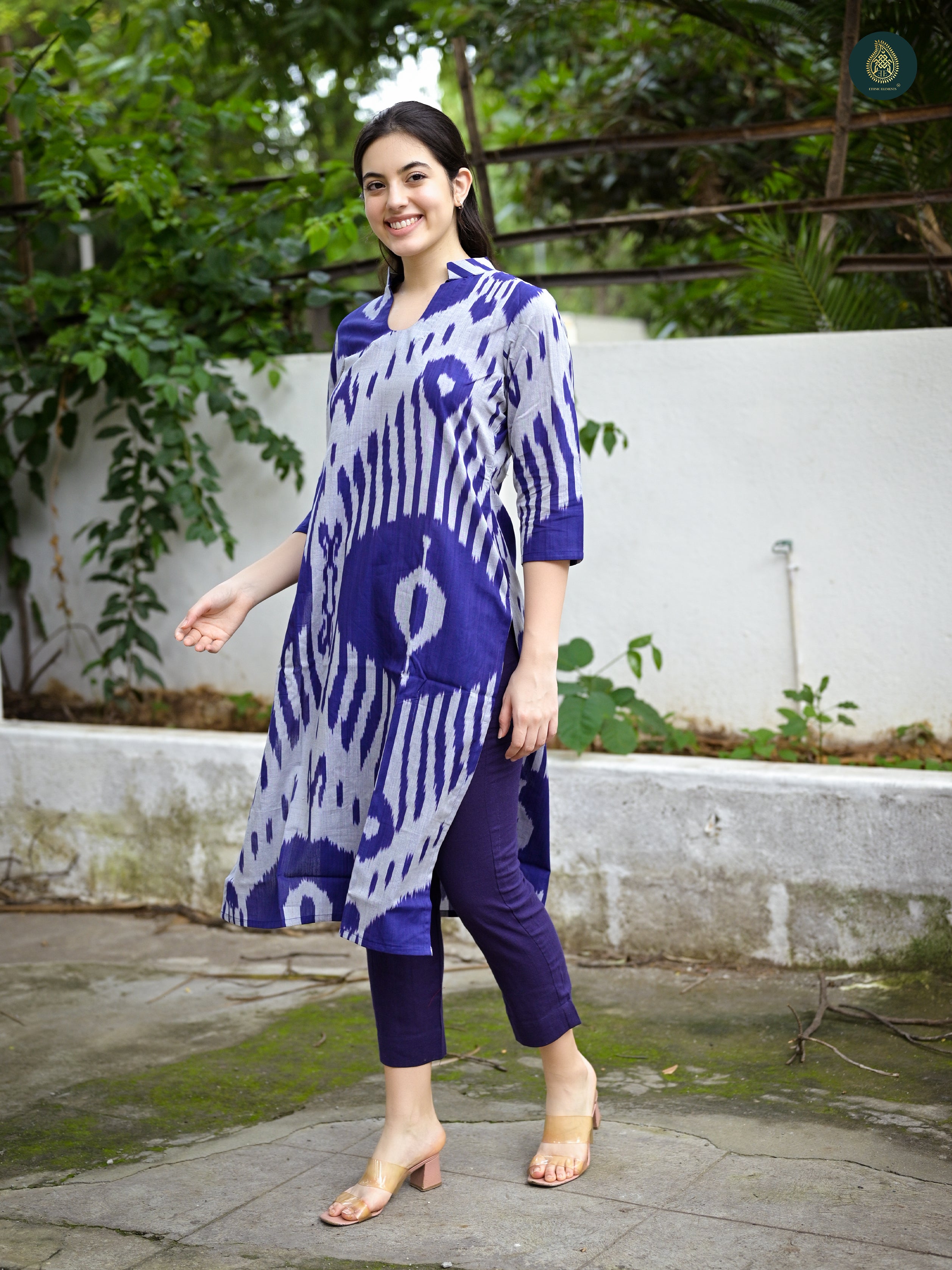 Stitched 2pc Uzbek Ikkat Suit Set - Dark Blue