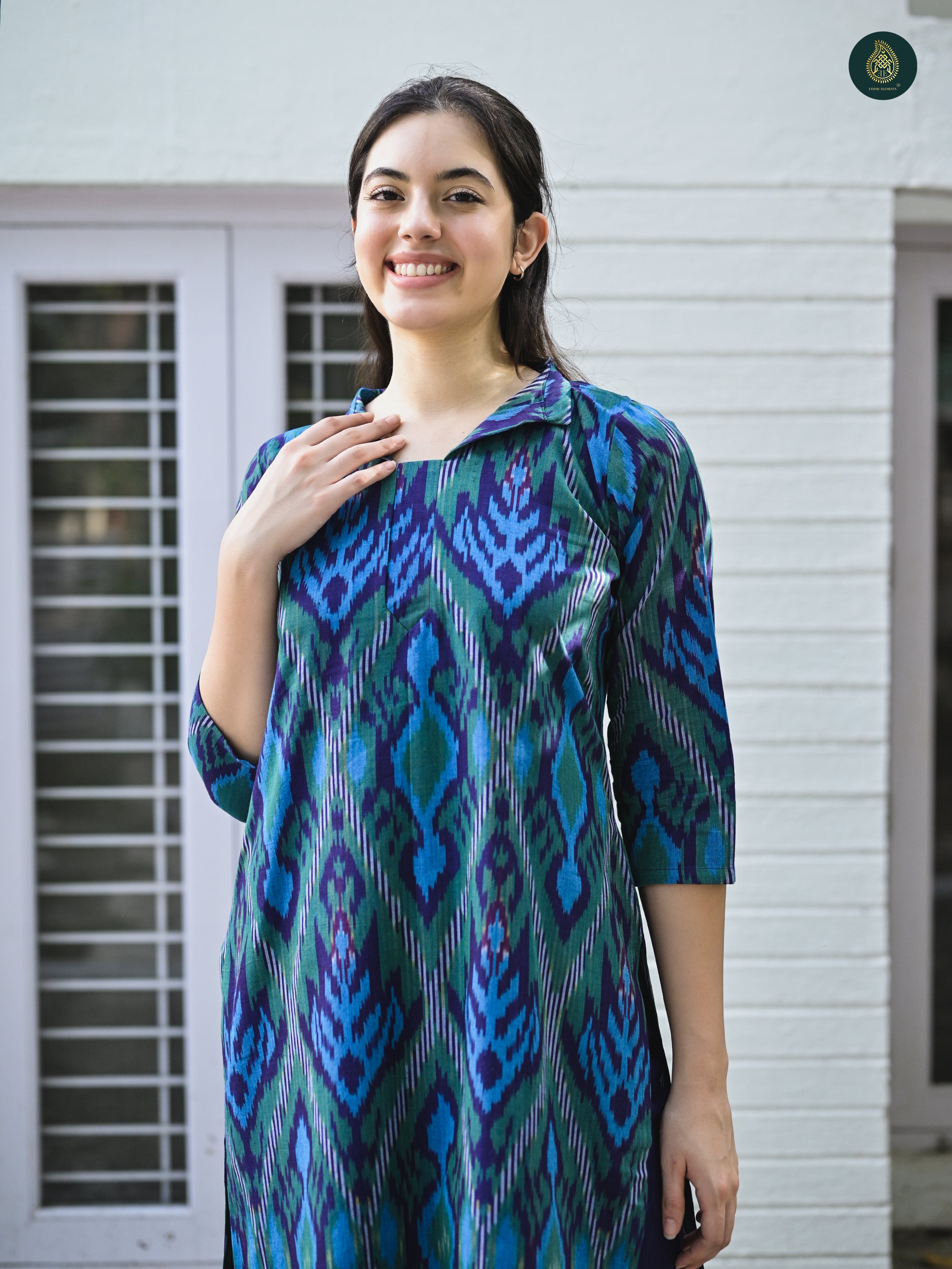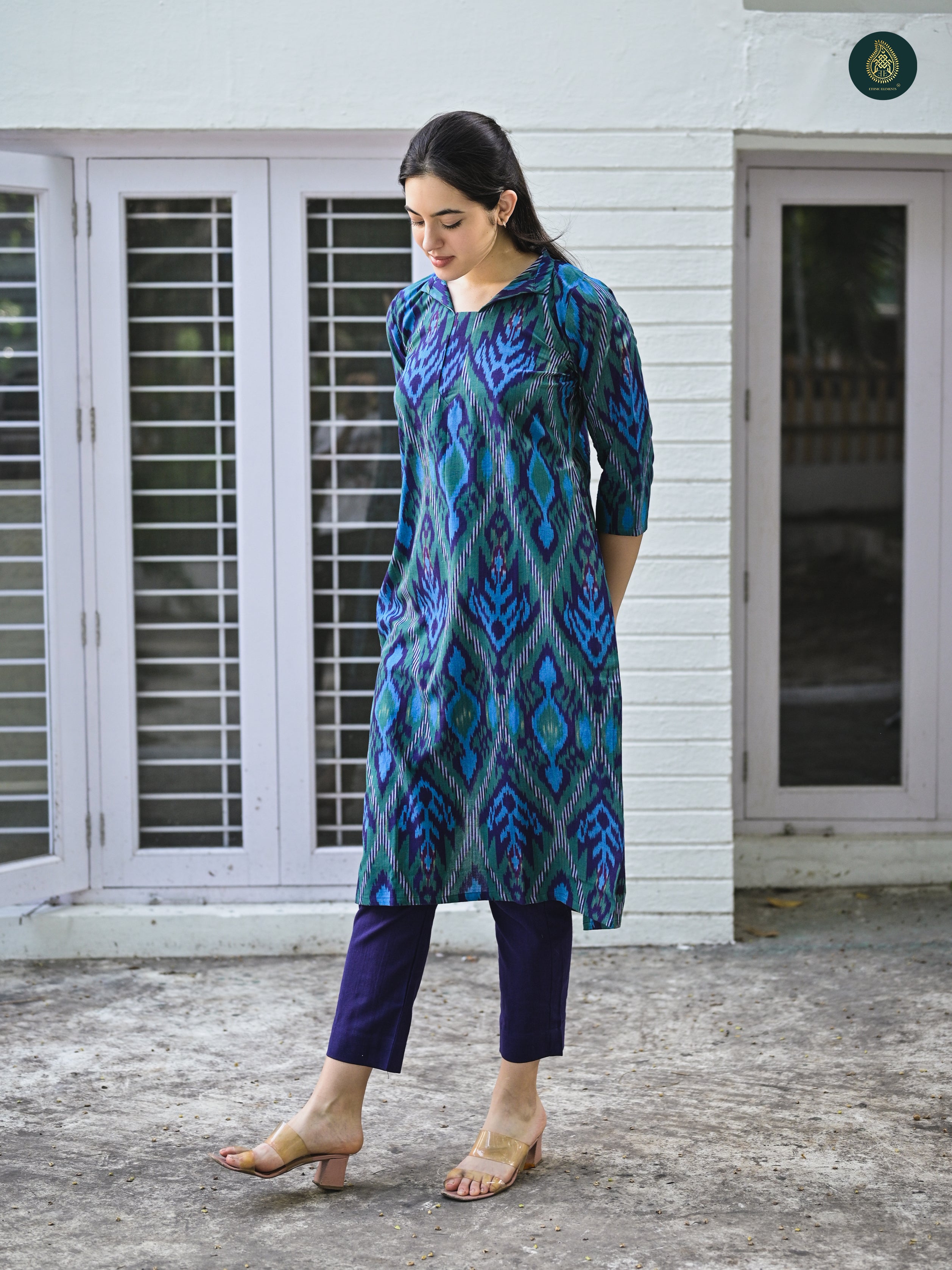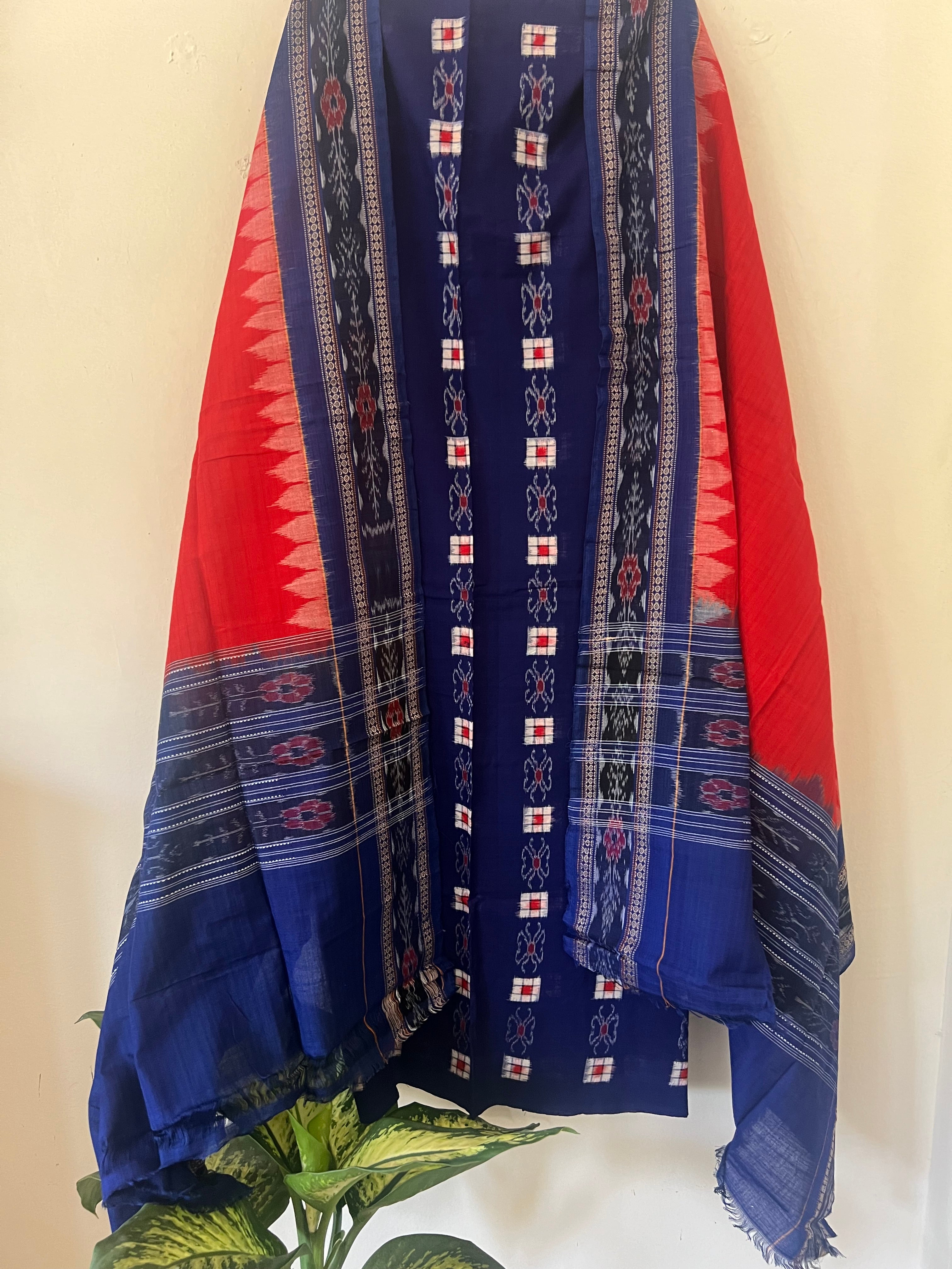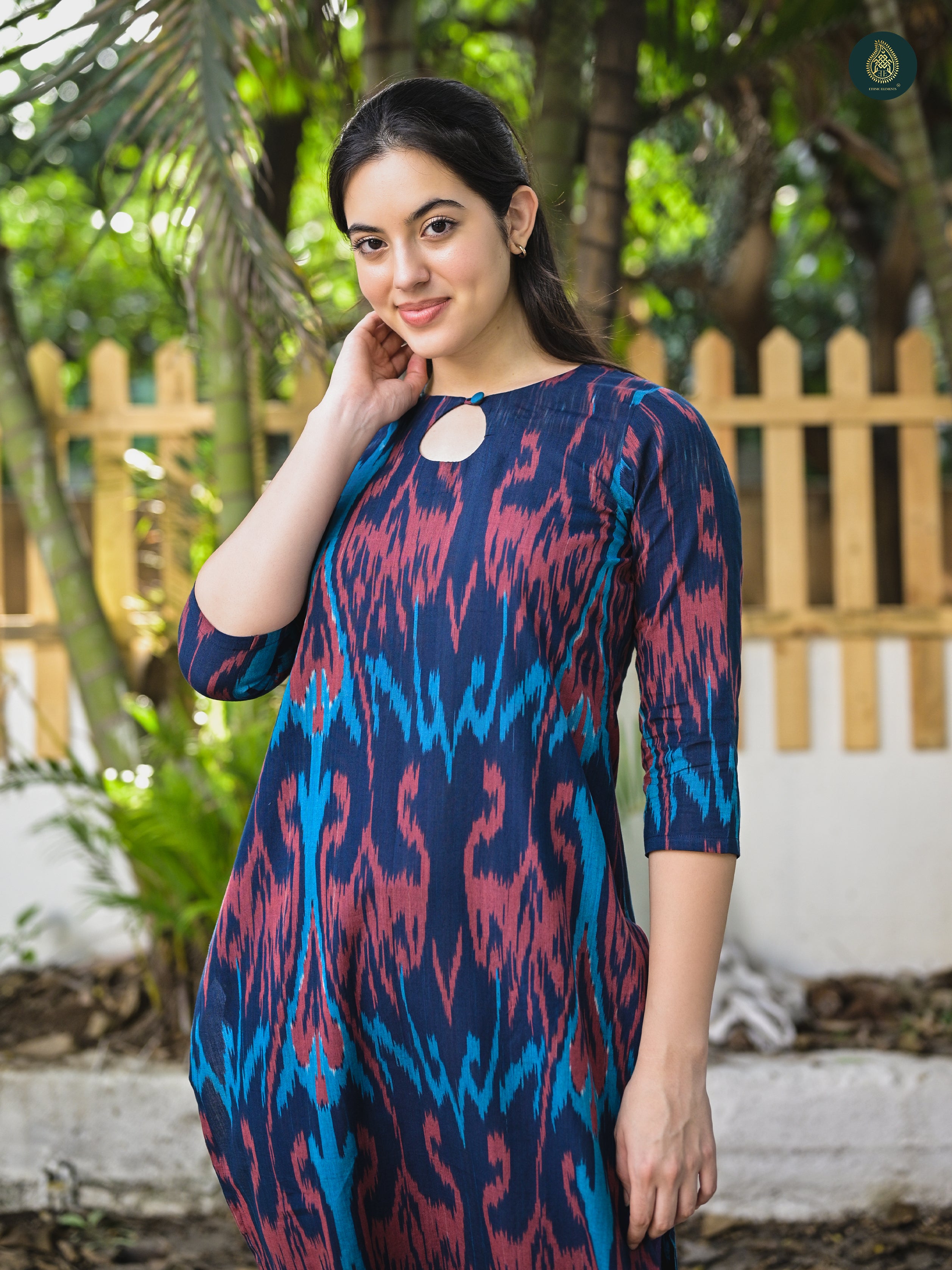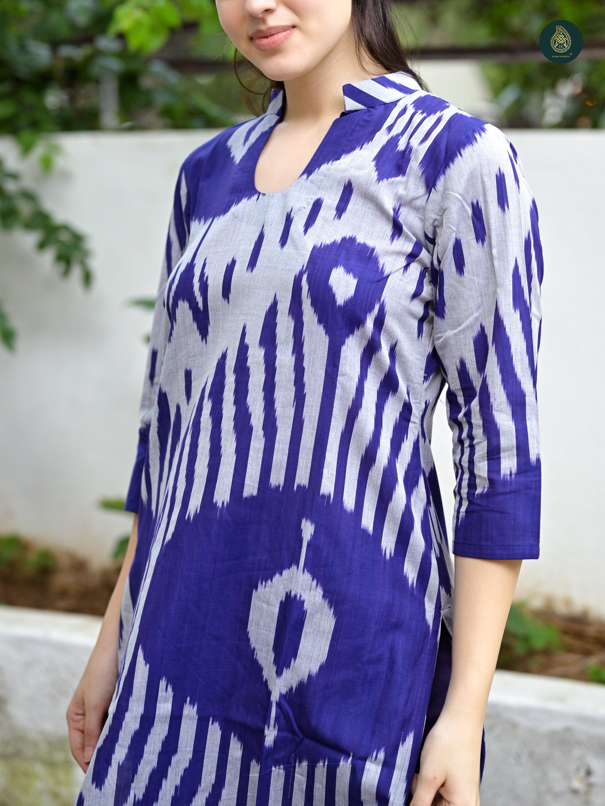 Stitched 2pc Uzbek Ikkat Suit Set - Dark Blue