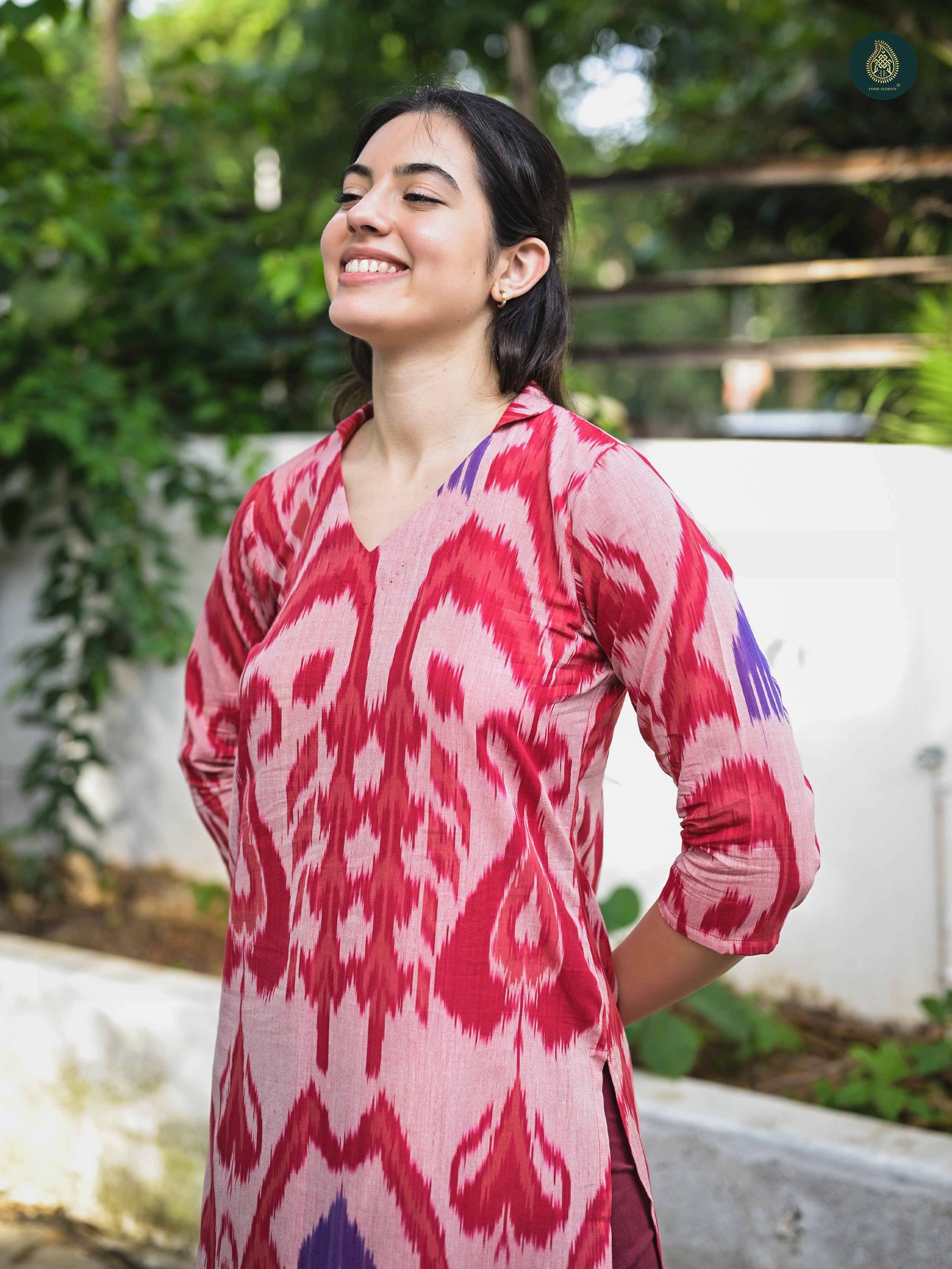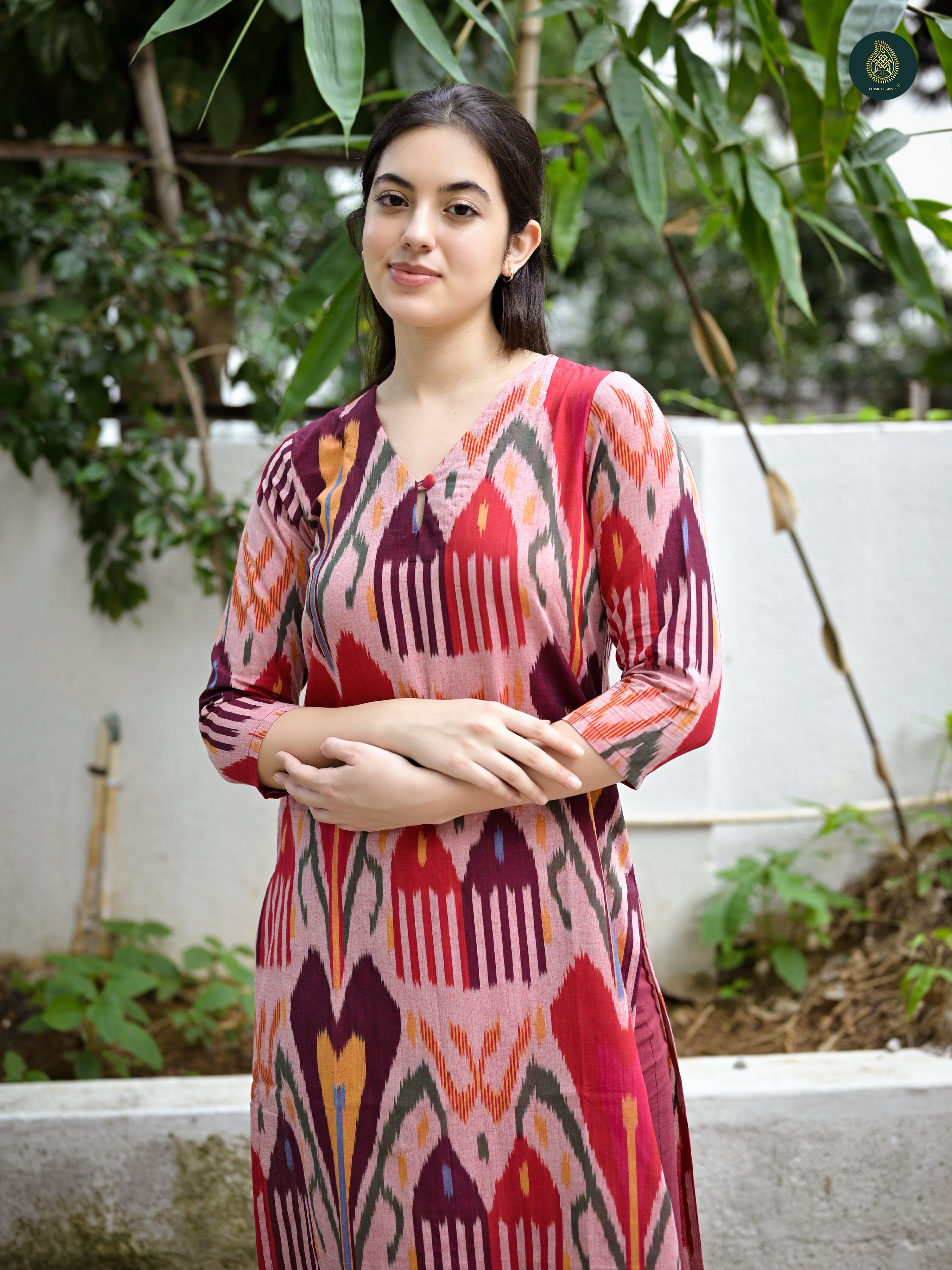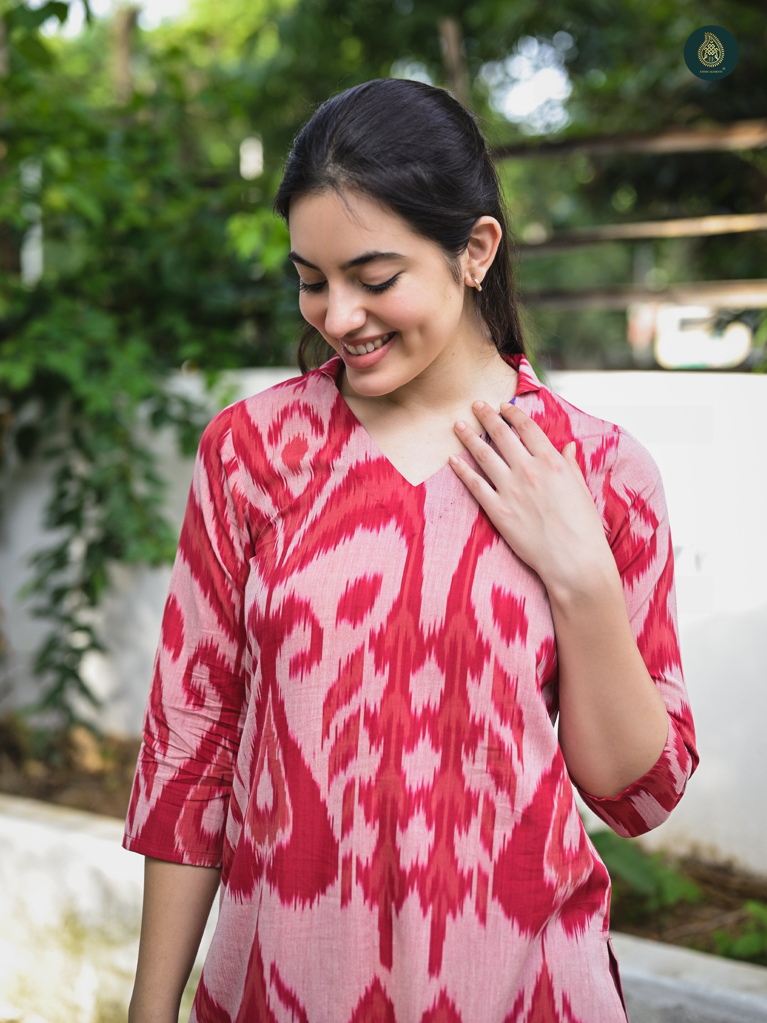 Stitched 2pc Uzbek Ikkat Suit Set - Cherry Red