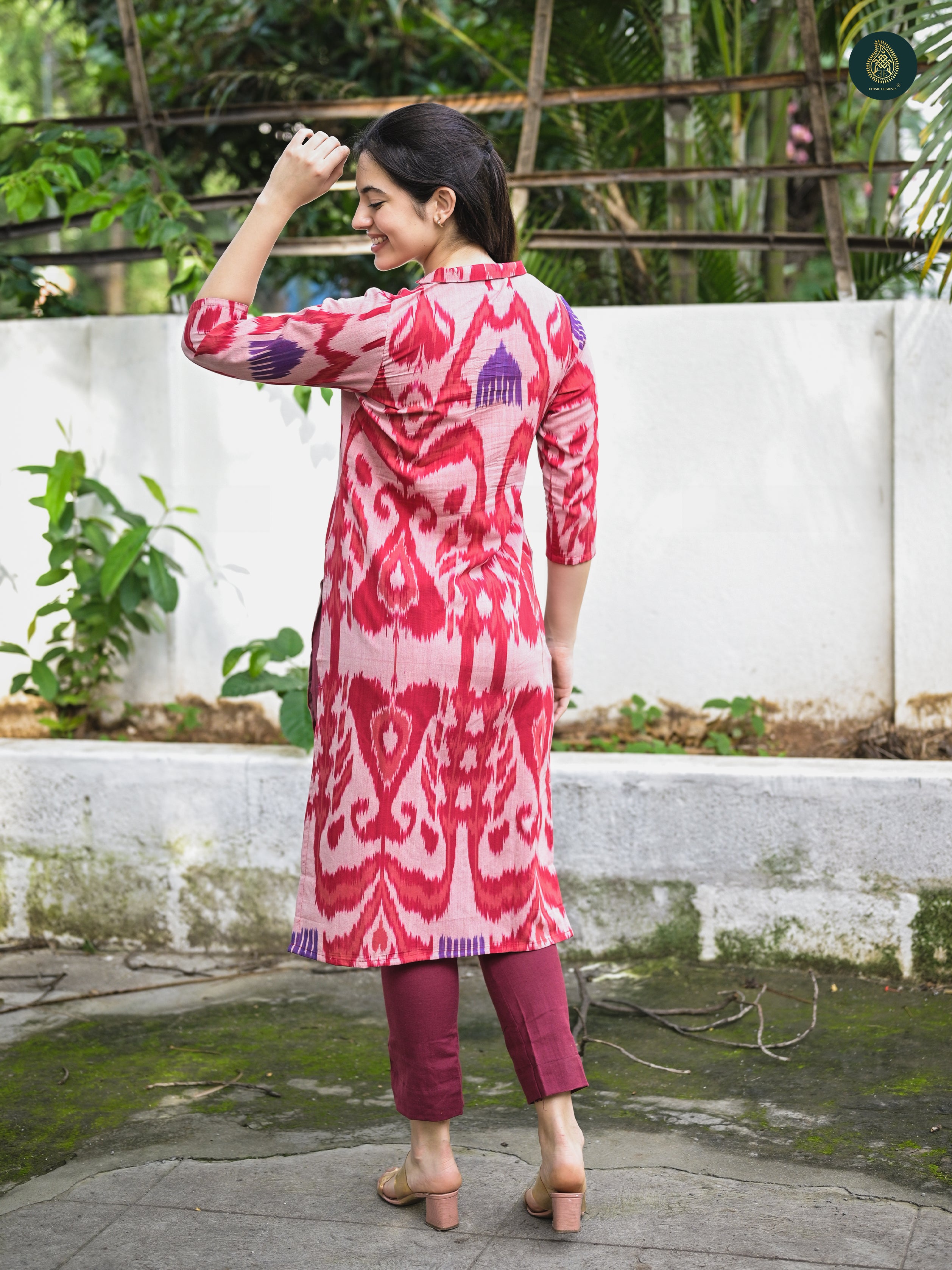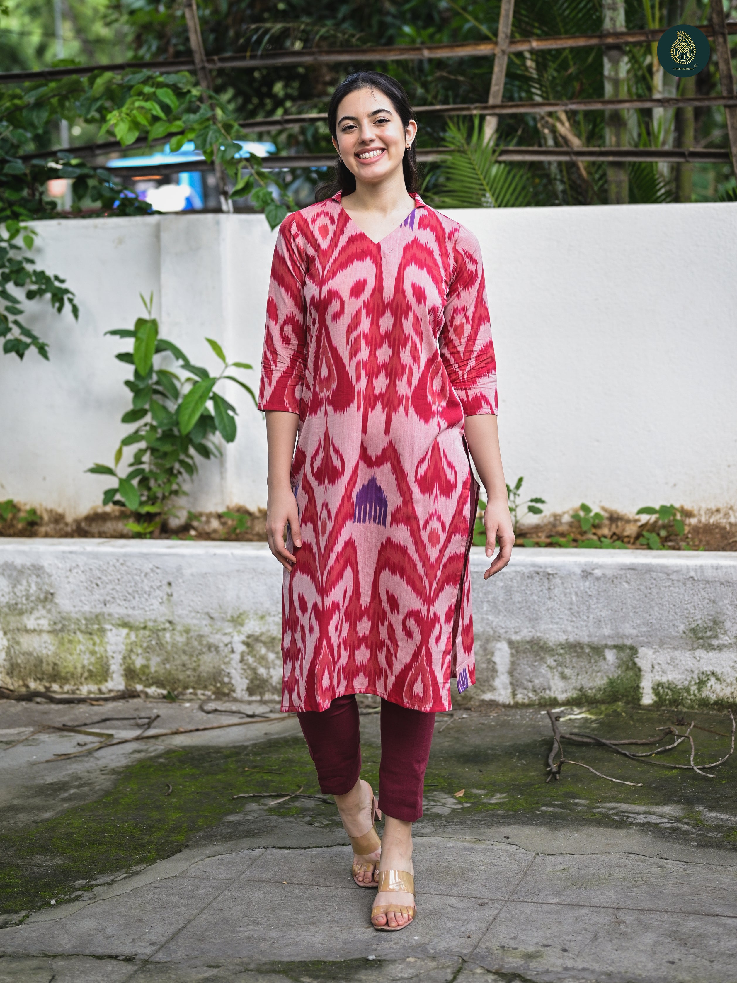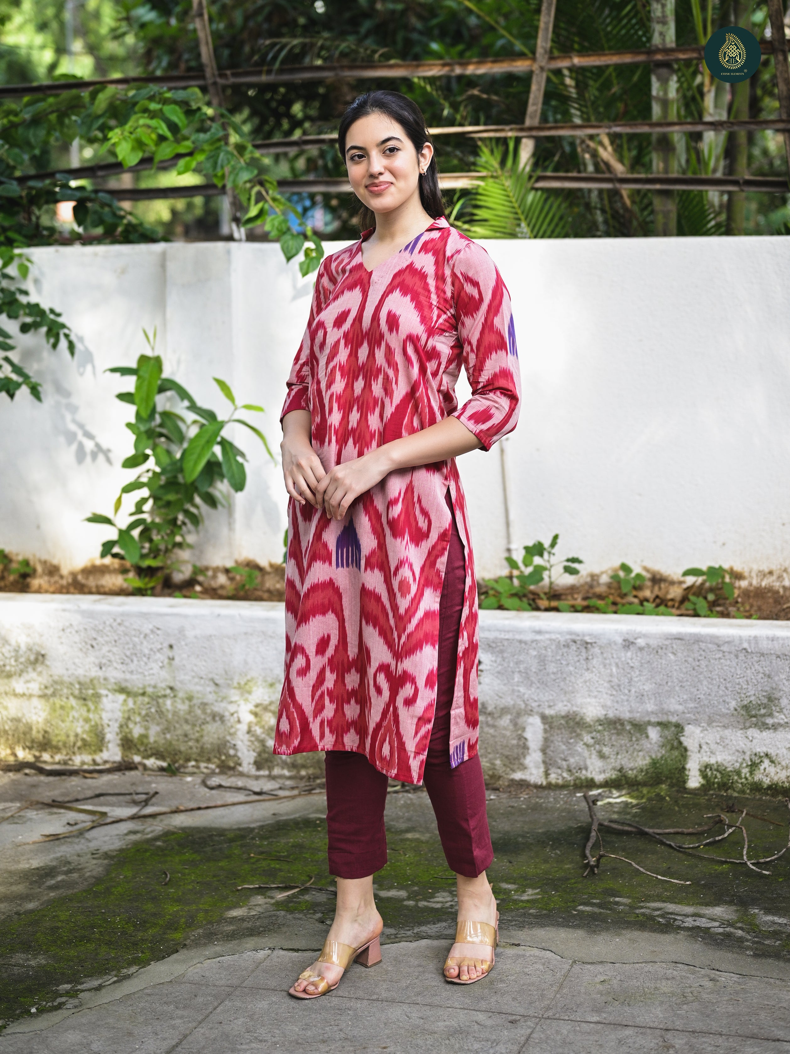 Stitched 2pc Uzbek Ikkat Suit Set - Cherry Red