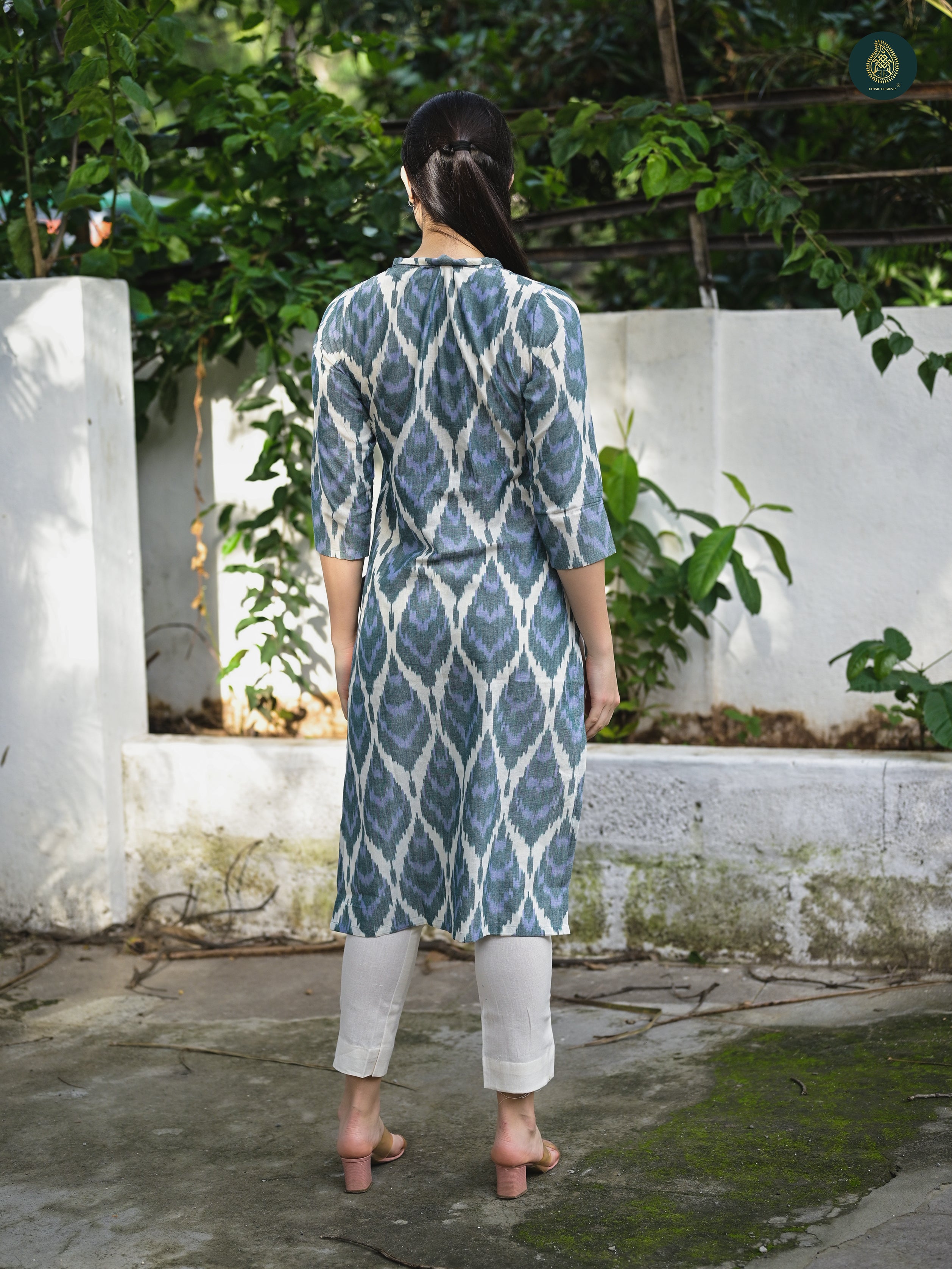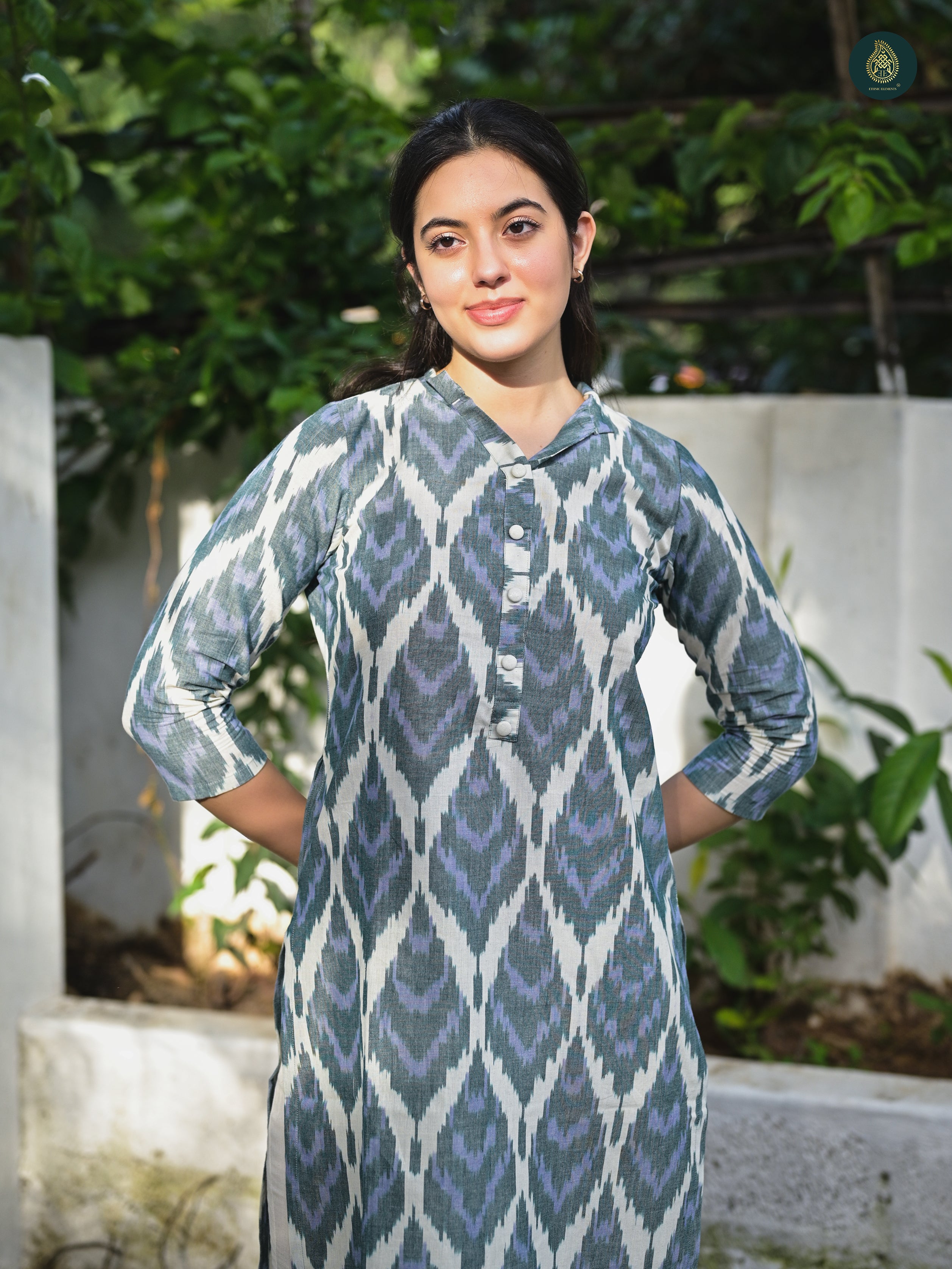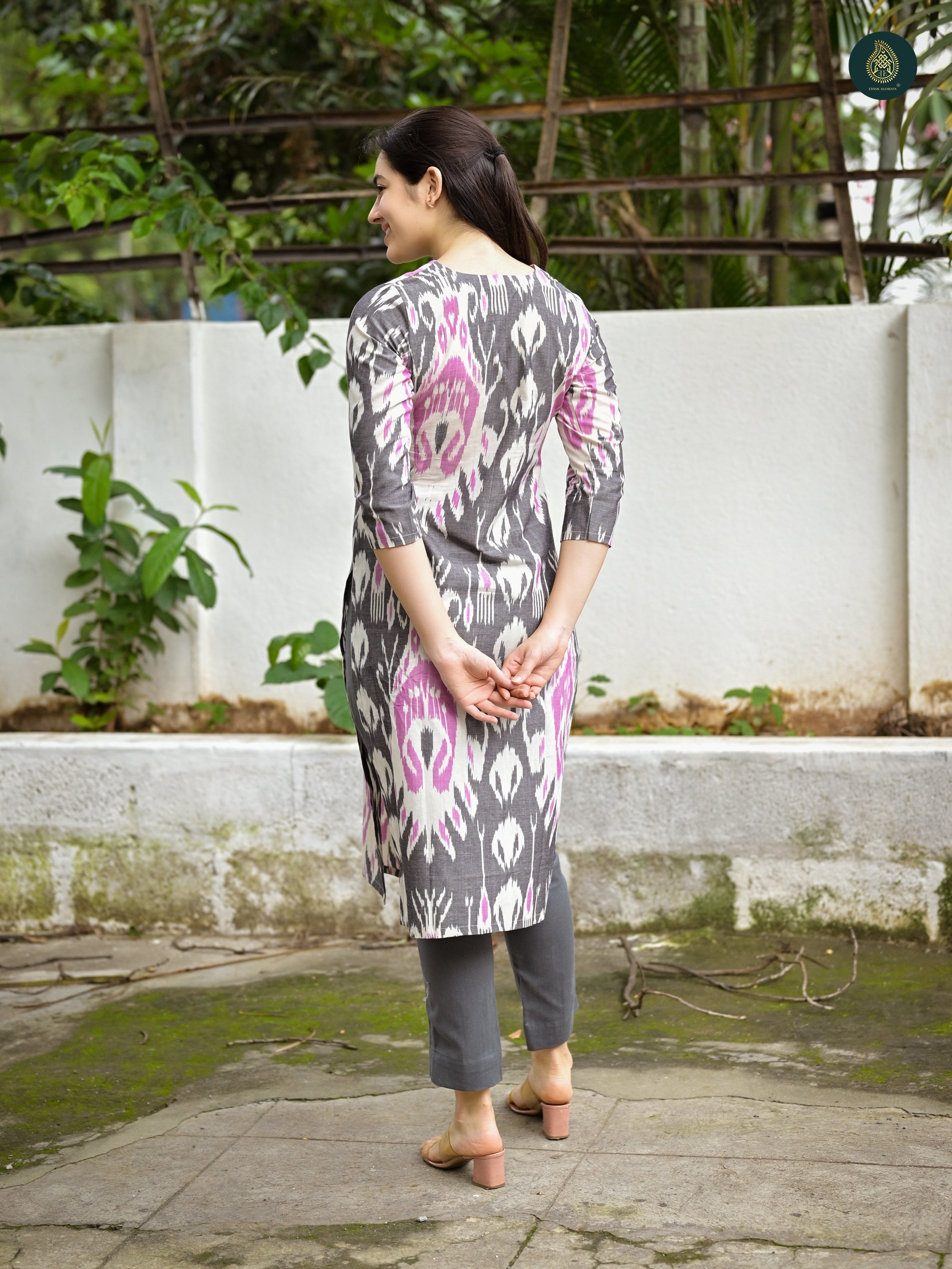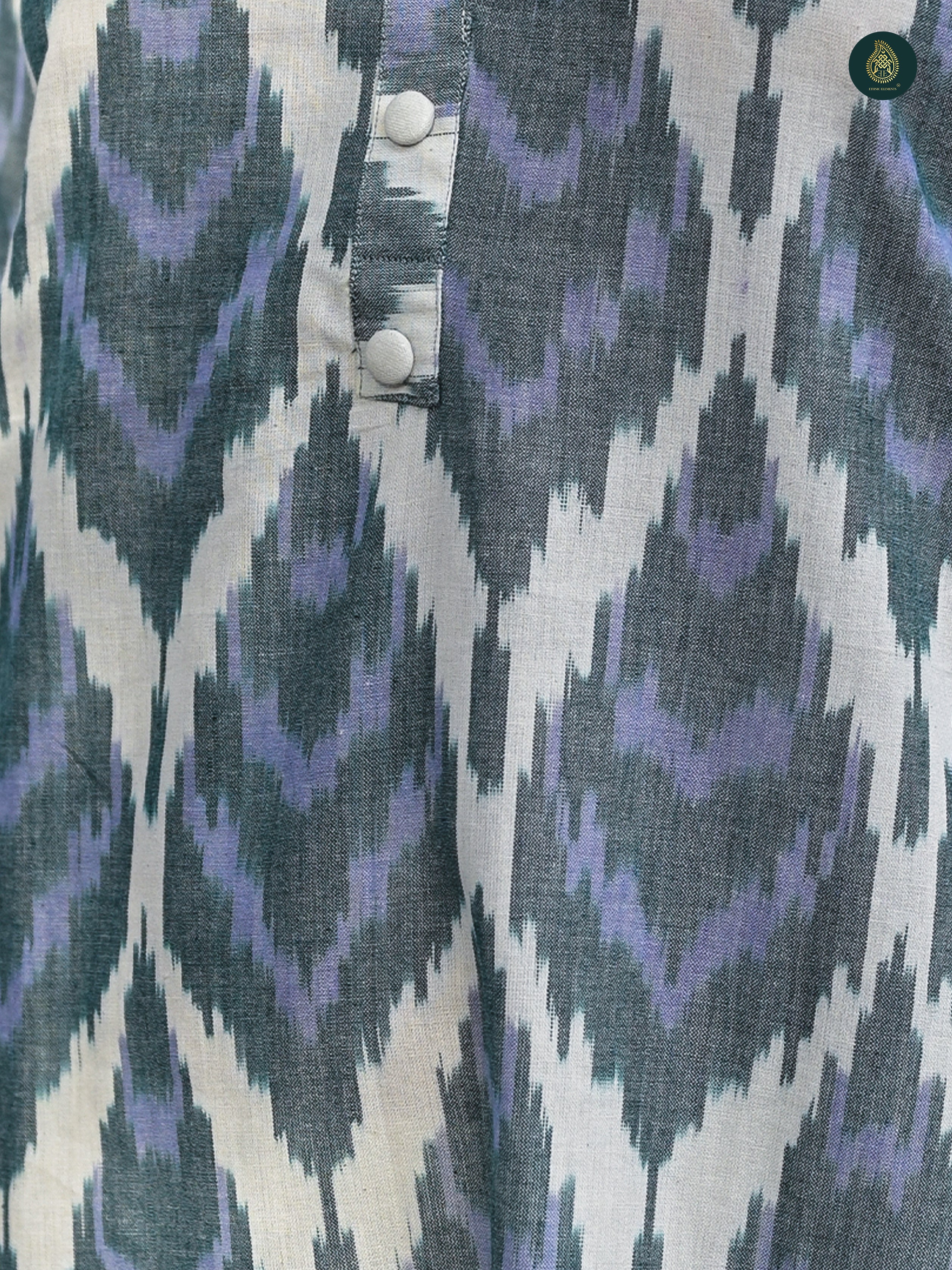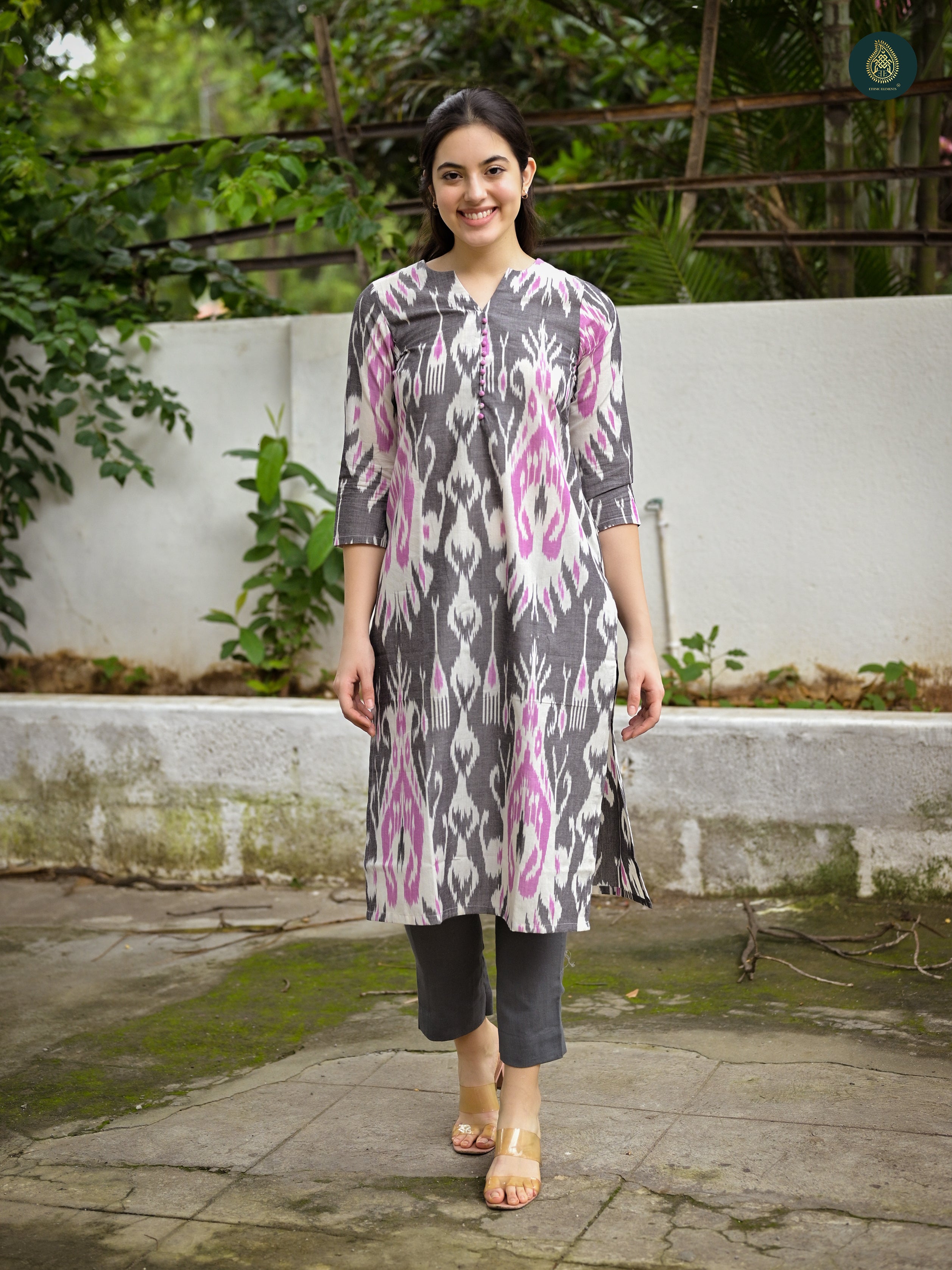 Stitched 2pc Uzbek Ikkat Suit Set - Ashy Grey