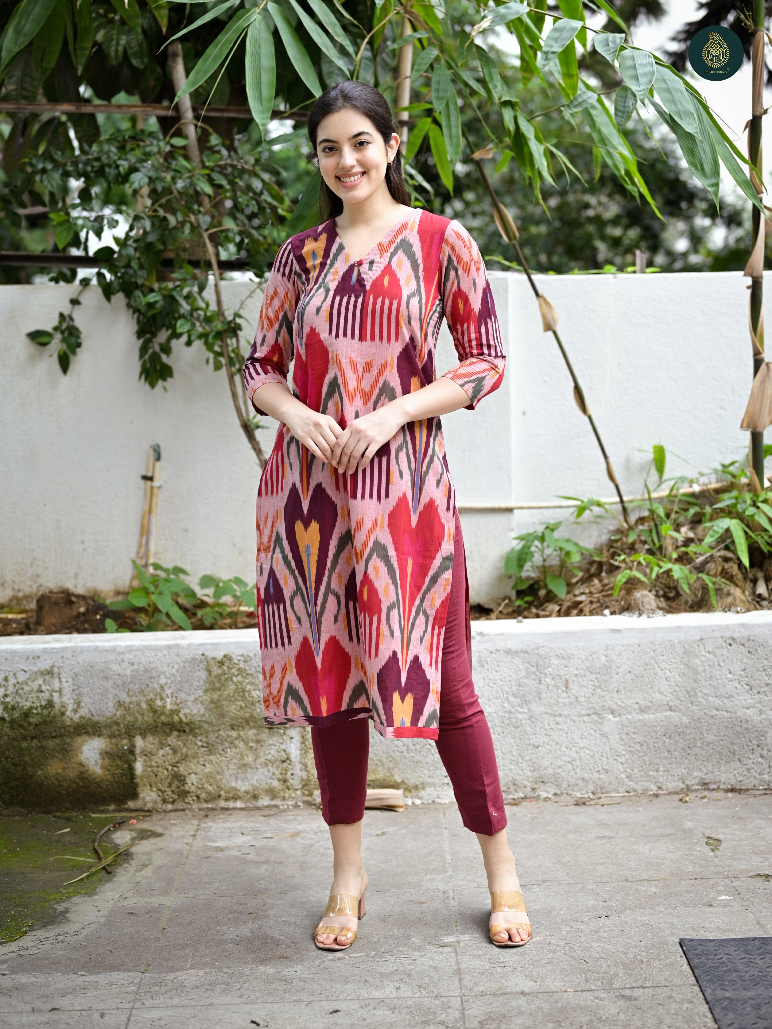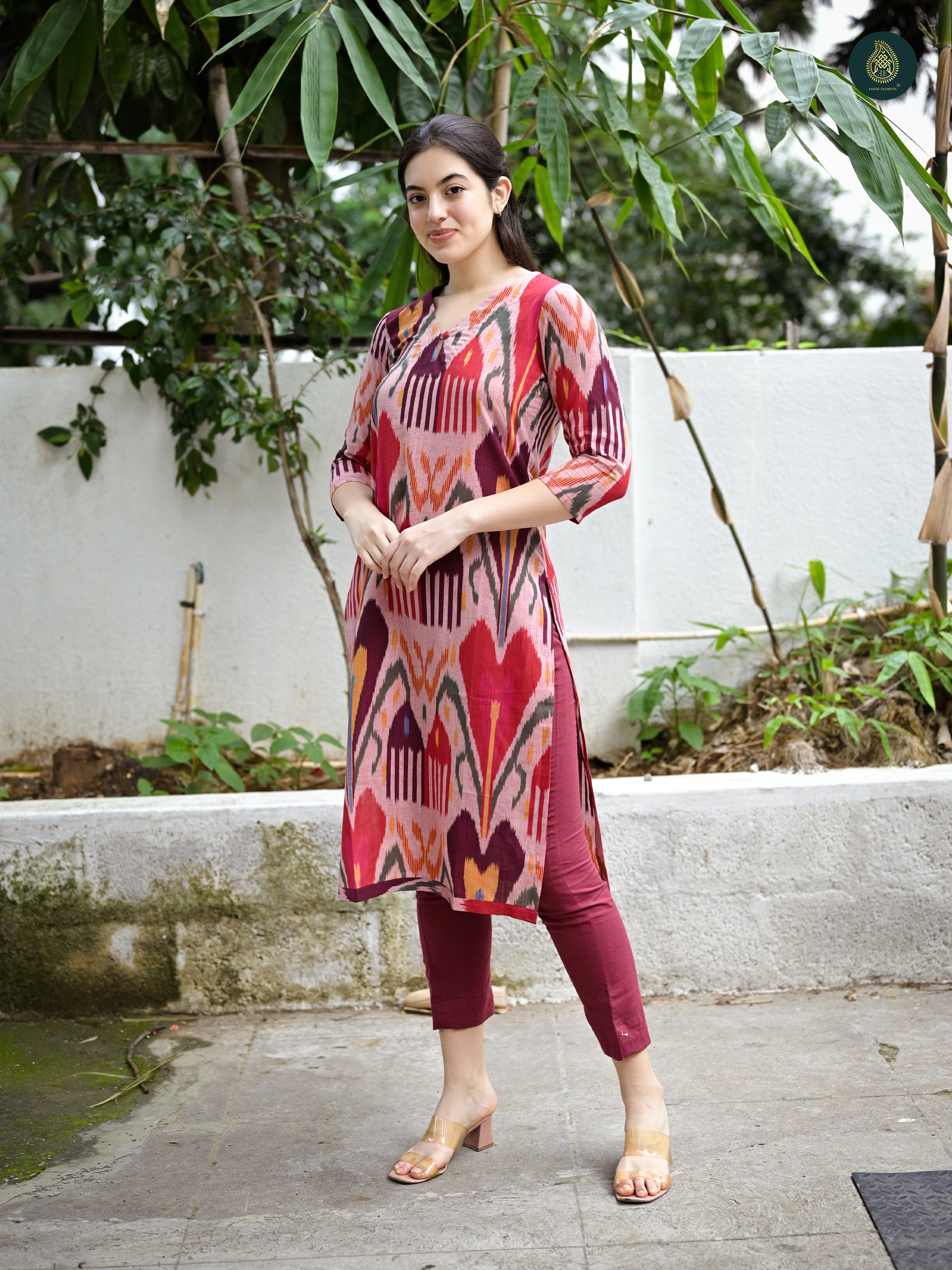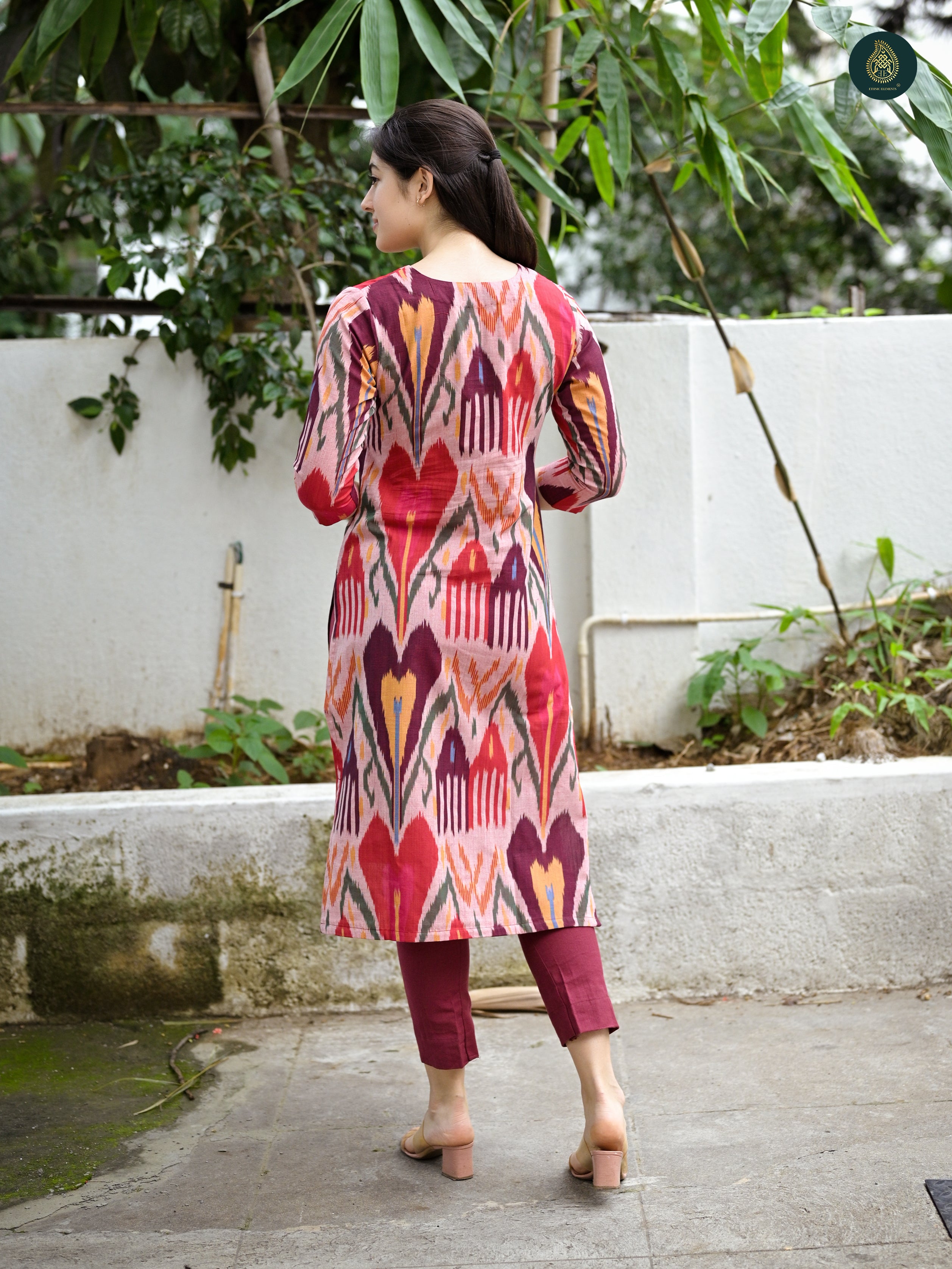 Stitched 2pc Uzbek Ikkat Suit Set - Berry Marron