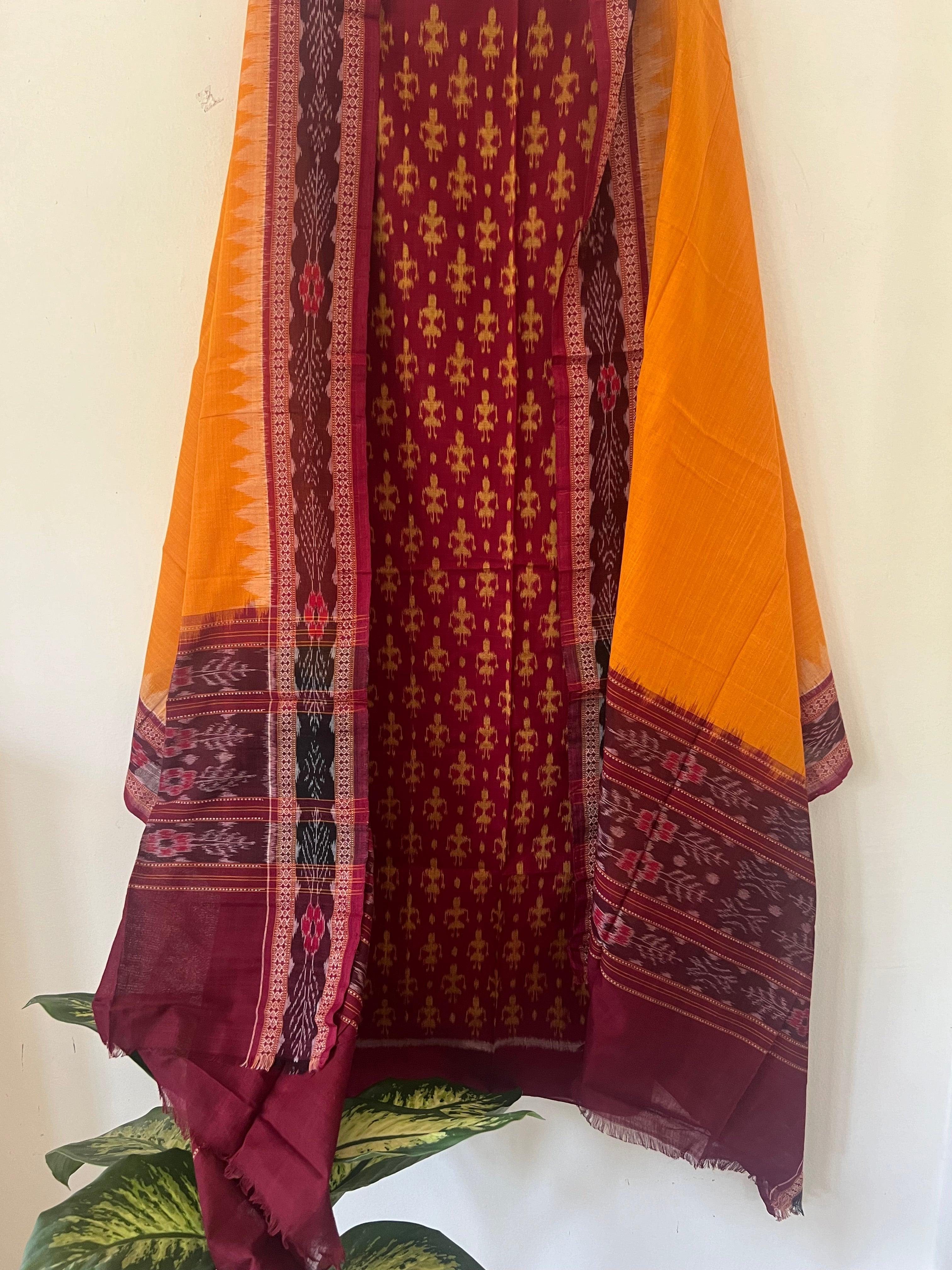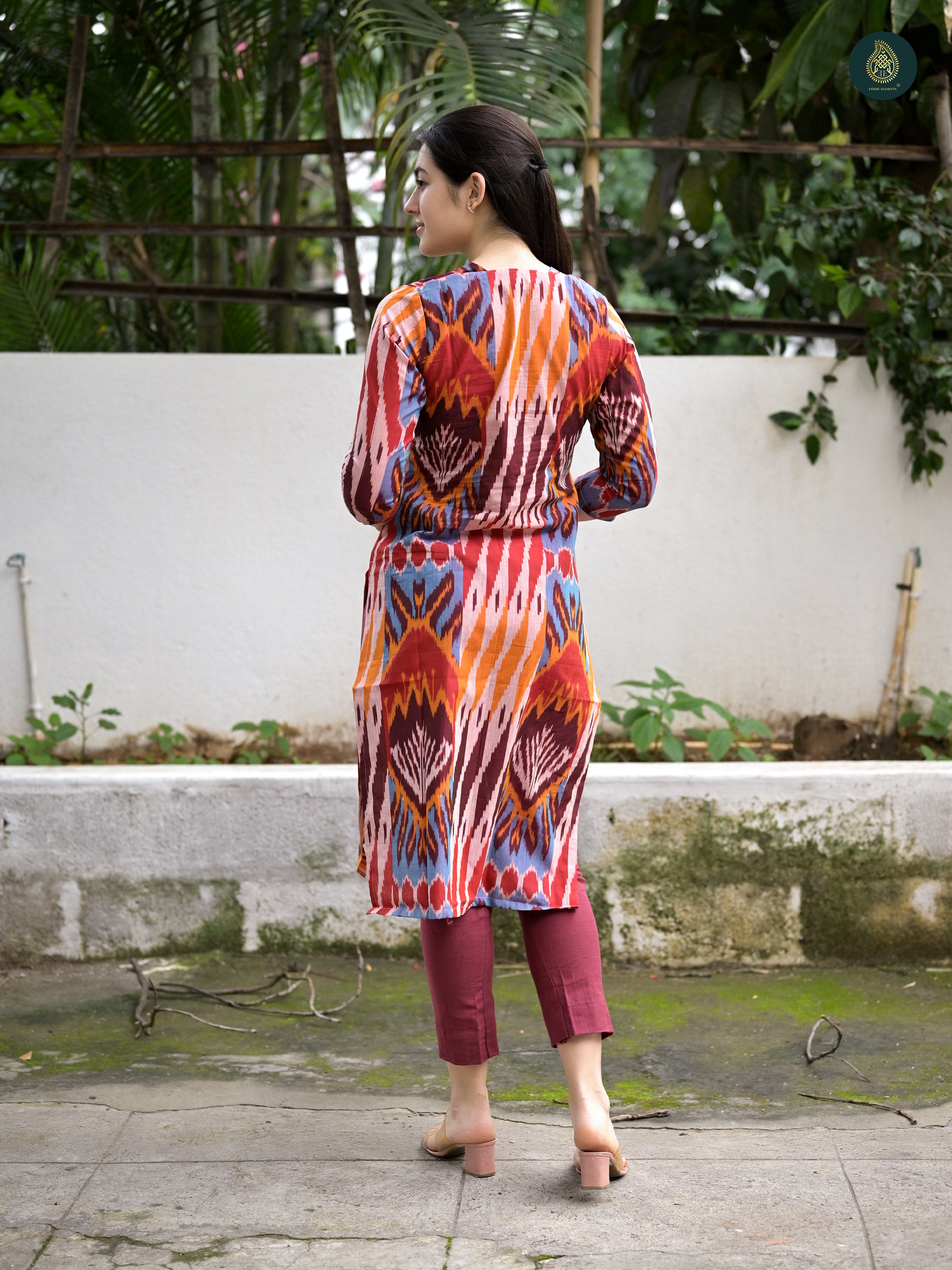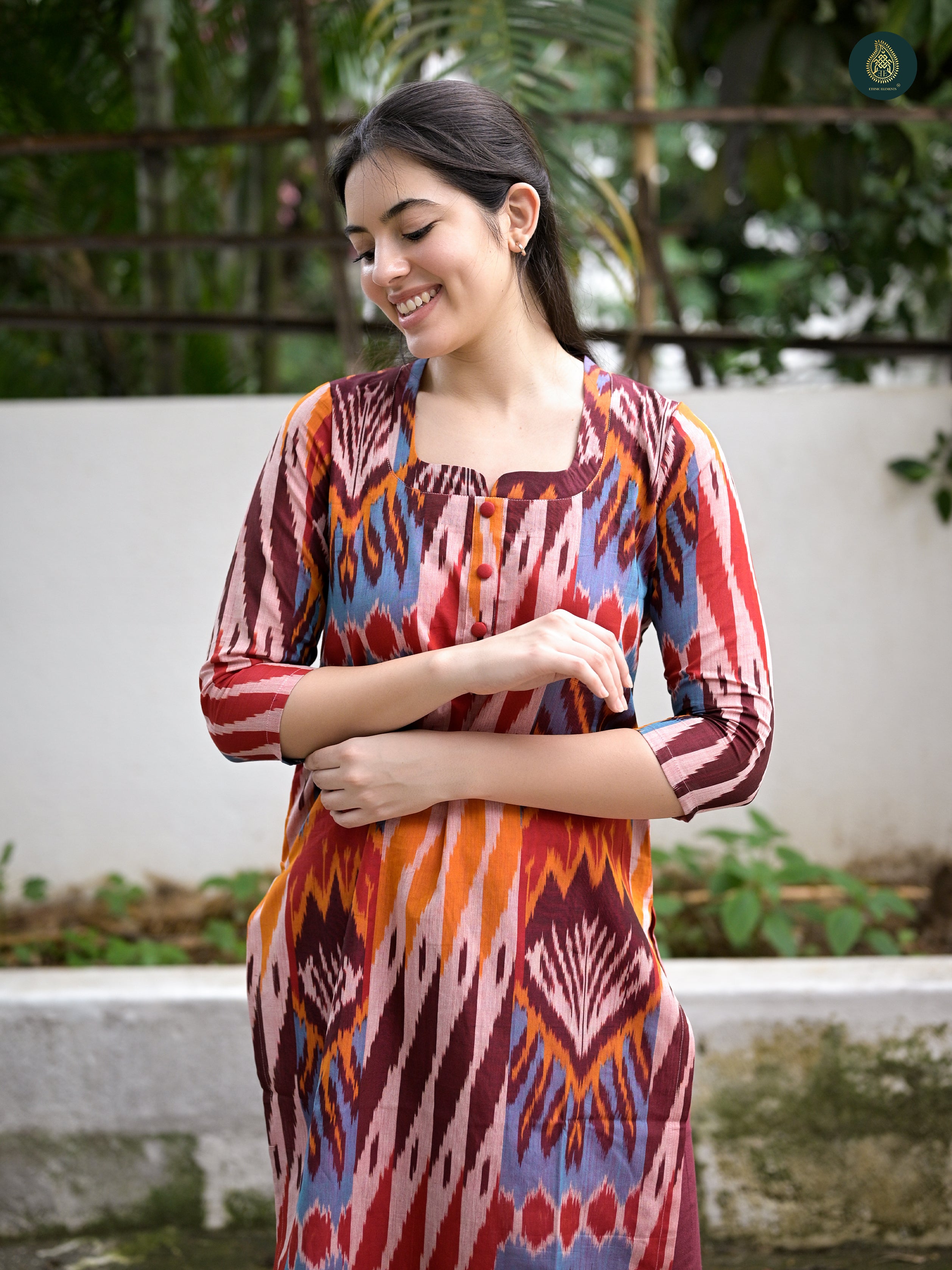 Stitched 2pc Uzbek Ikkat Suit Set - Berry Marron